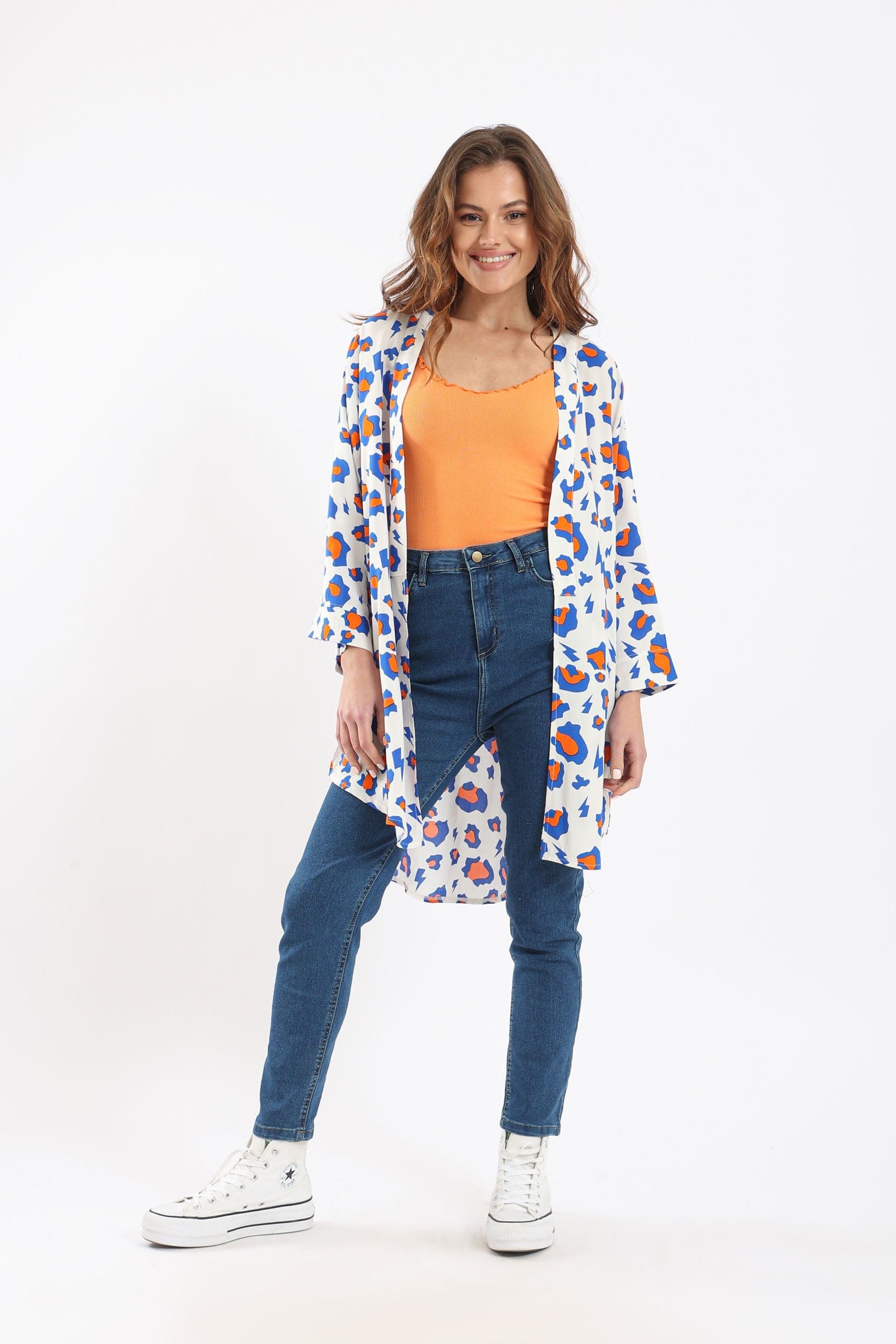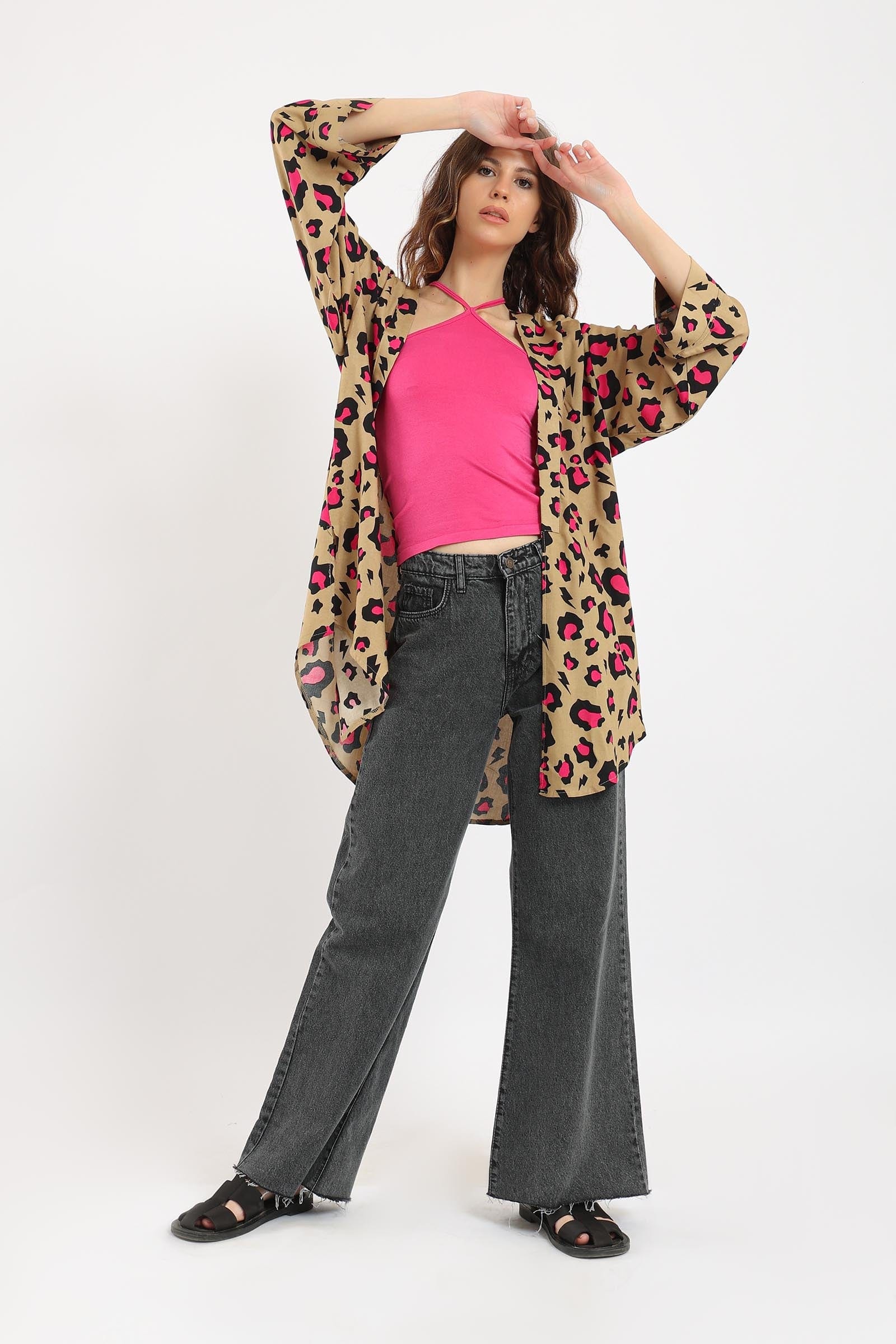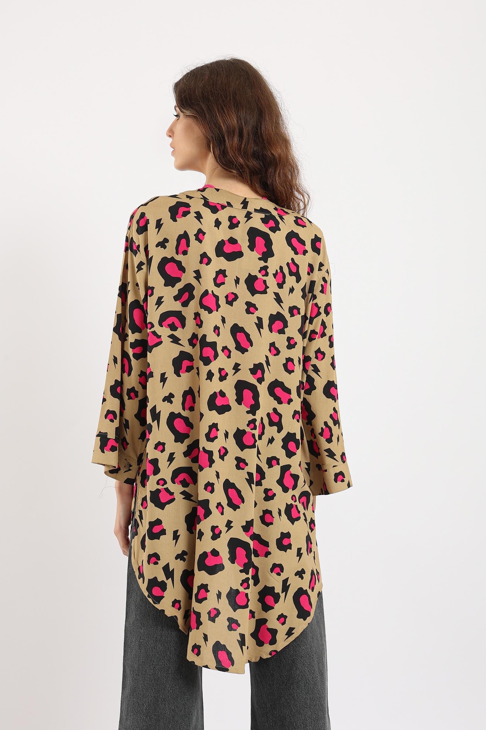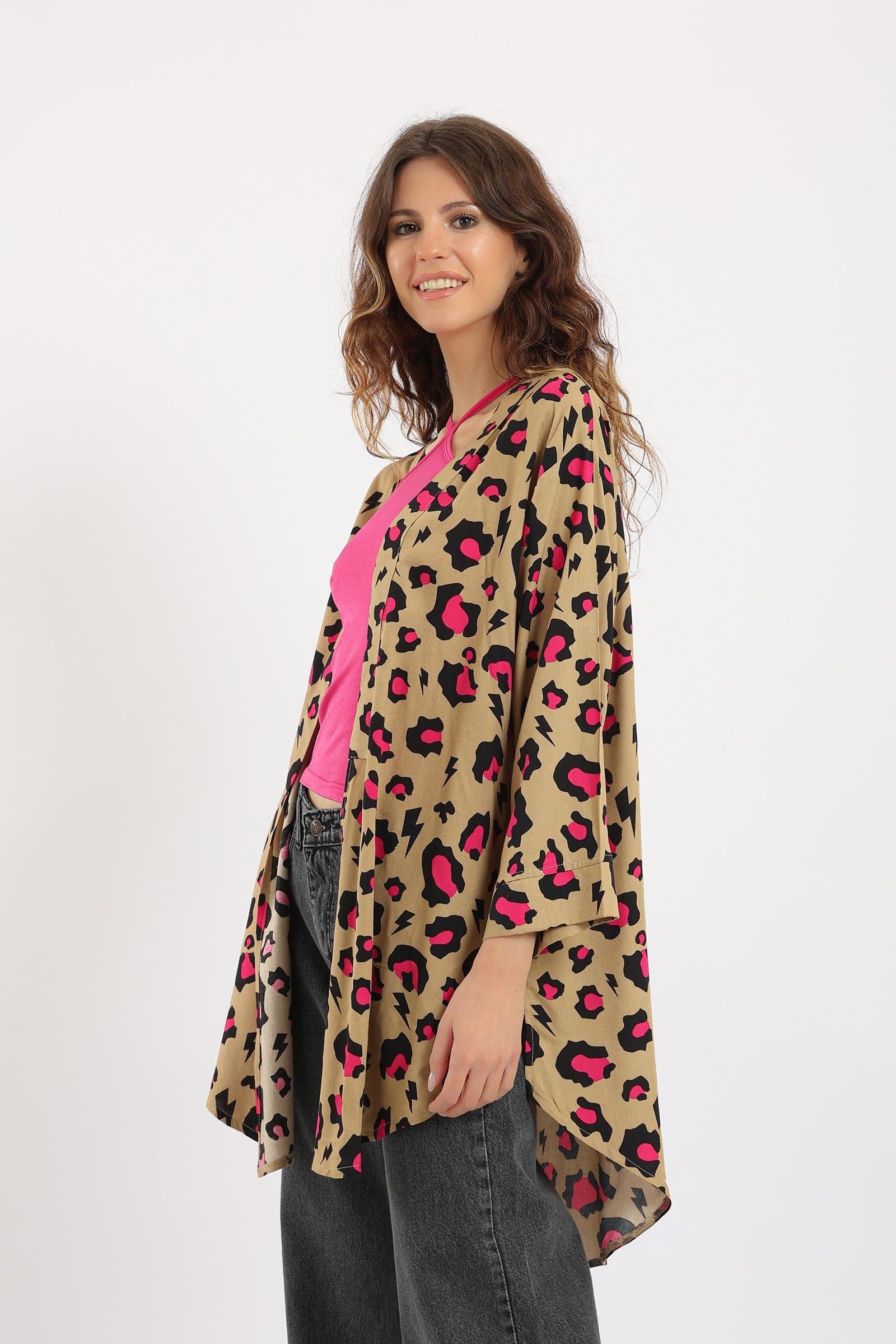 كيمونو بطبعة جلد الفهد كم طويل واسع