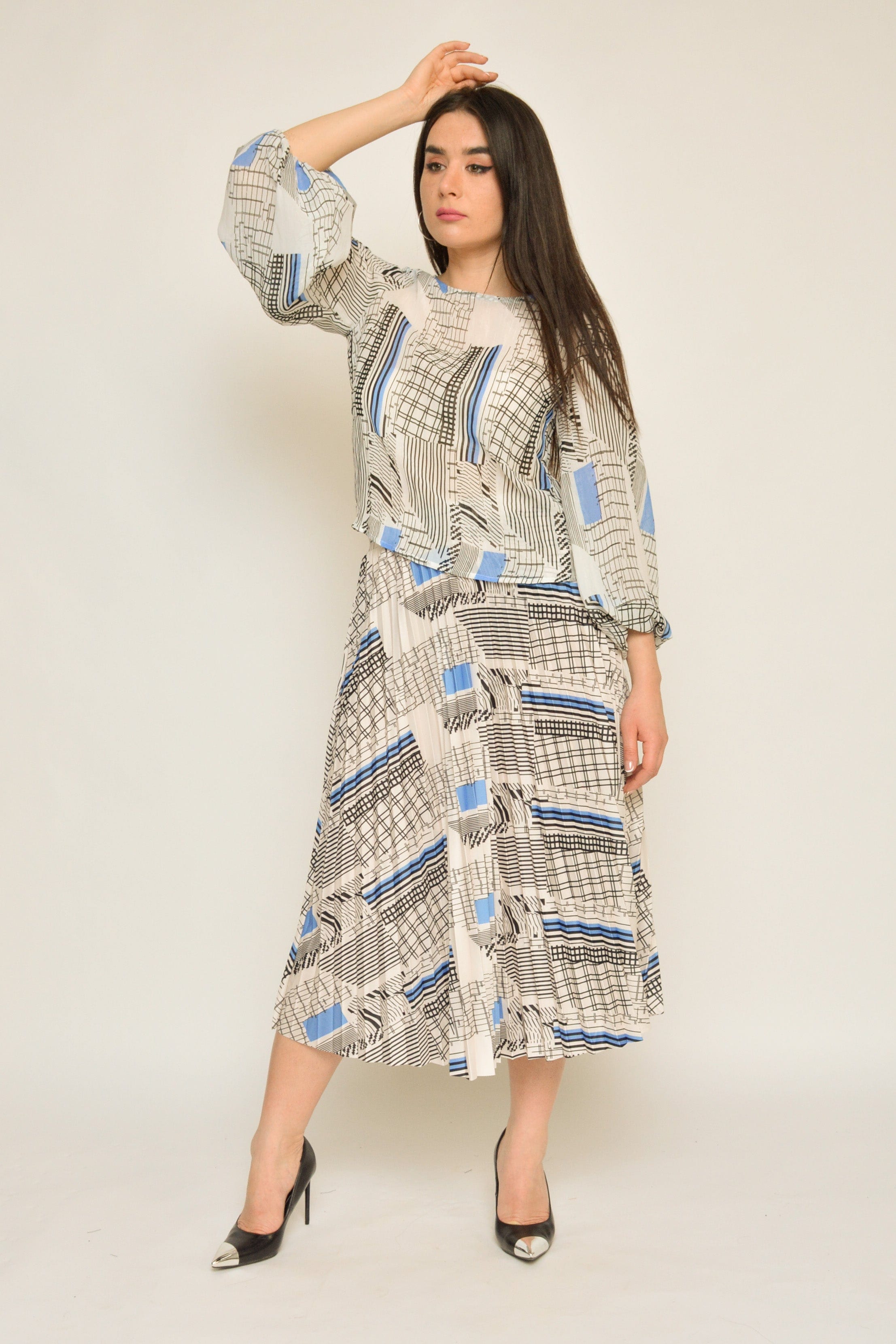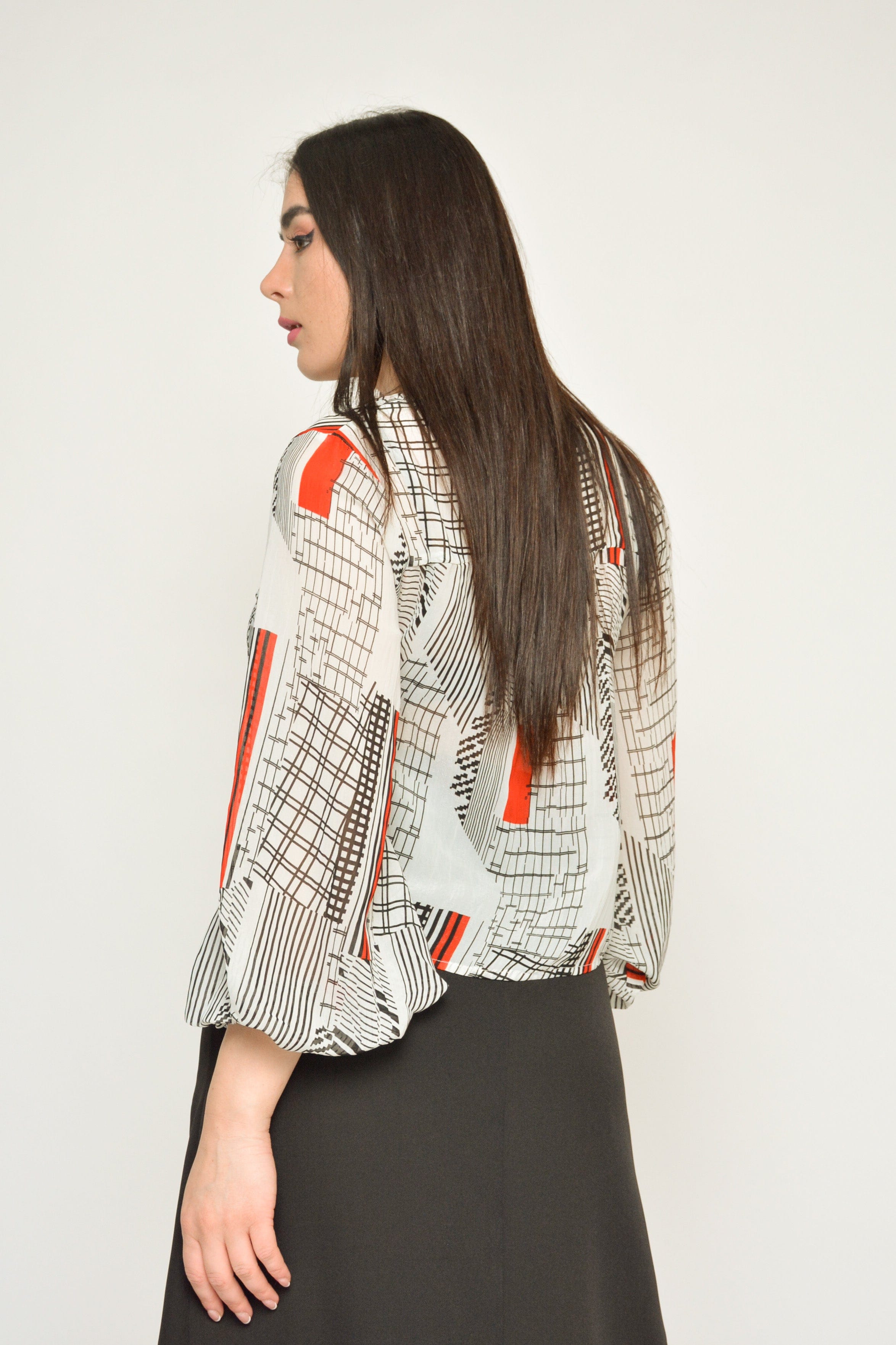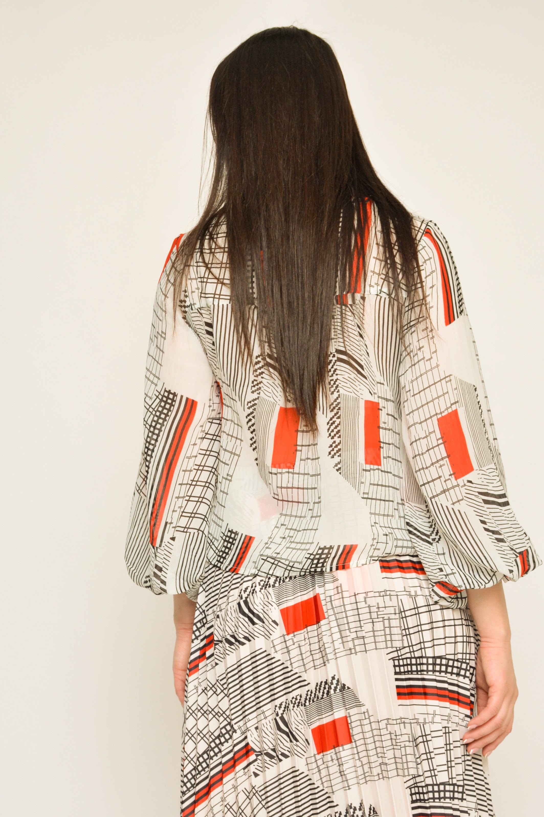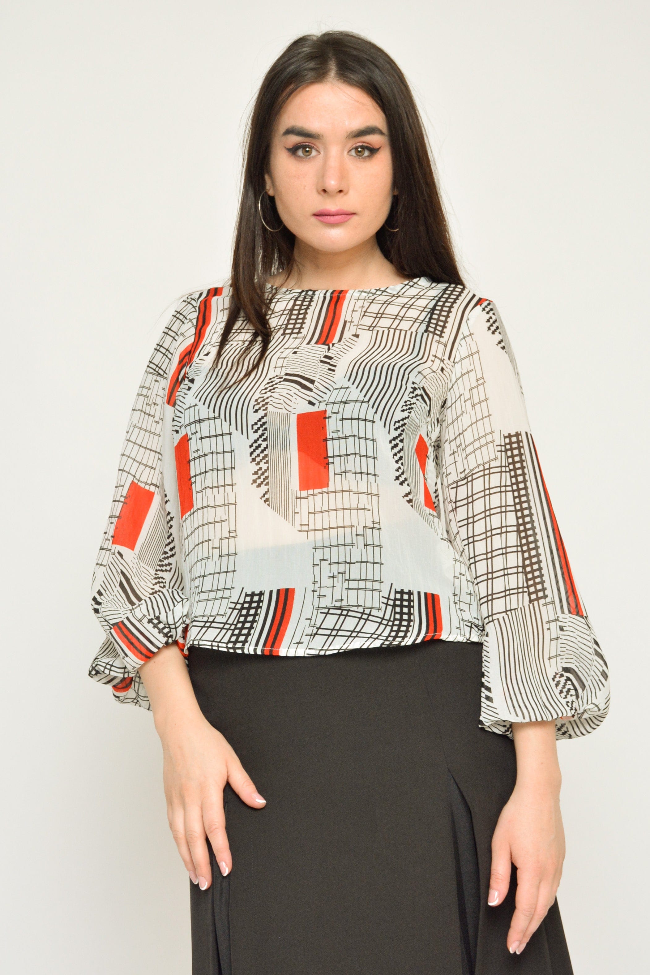 بلوزة منقوشة بكم طويل منفوخة نسائي