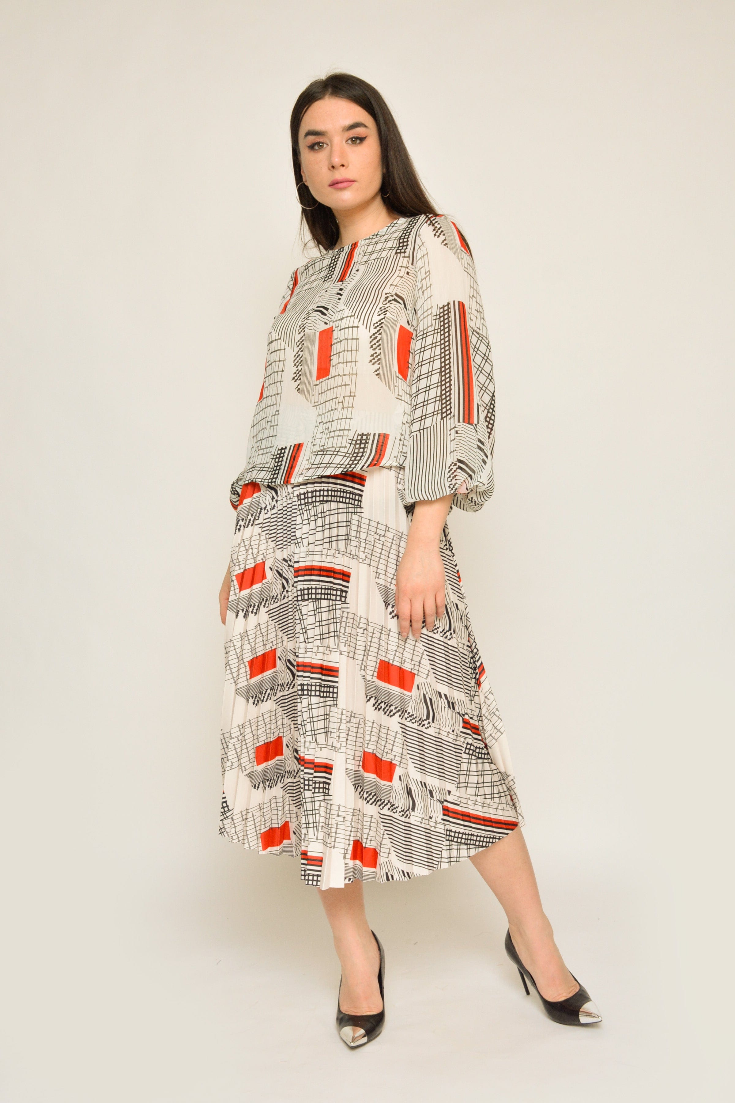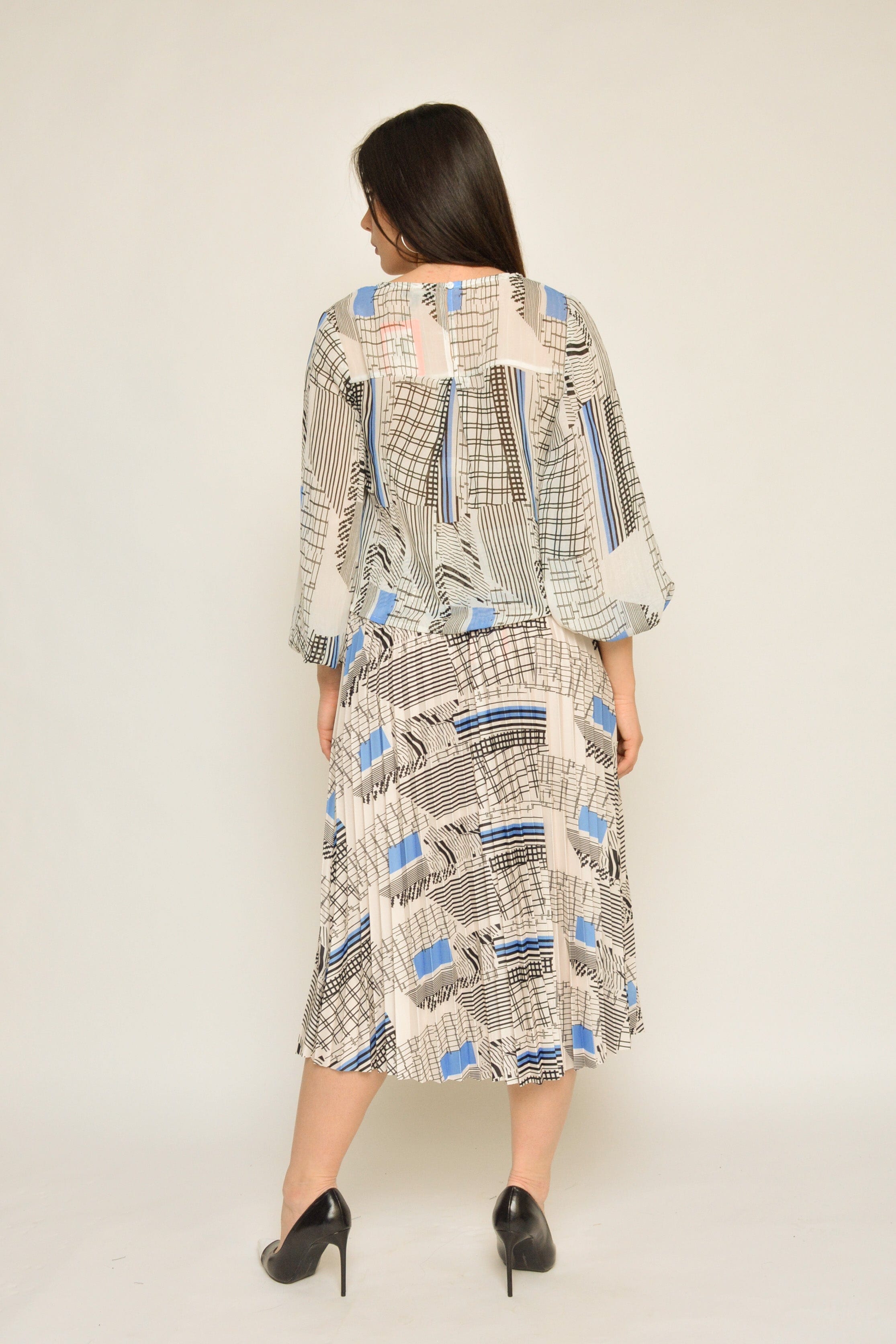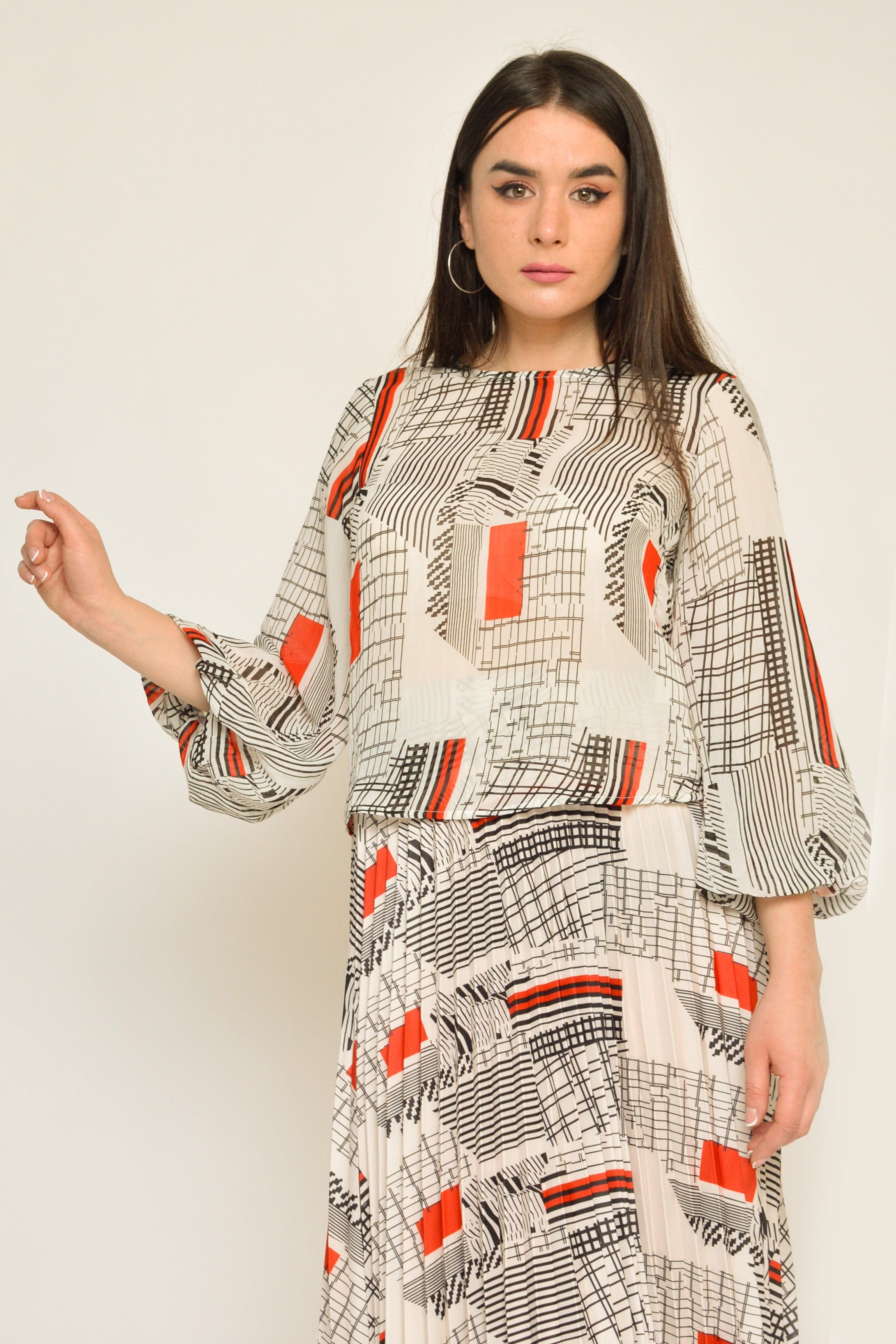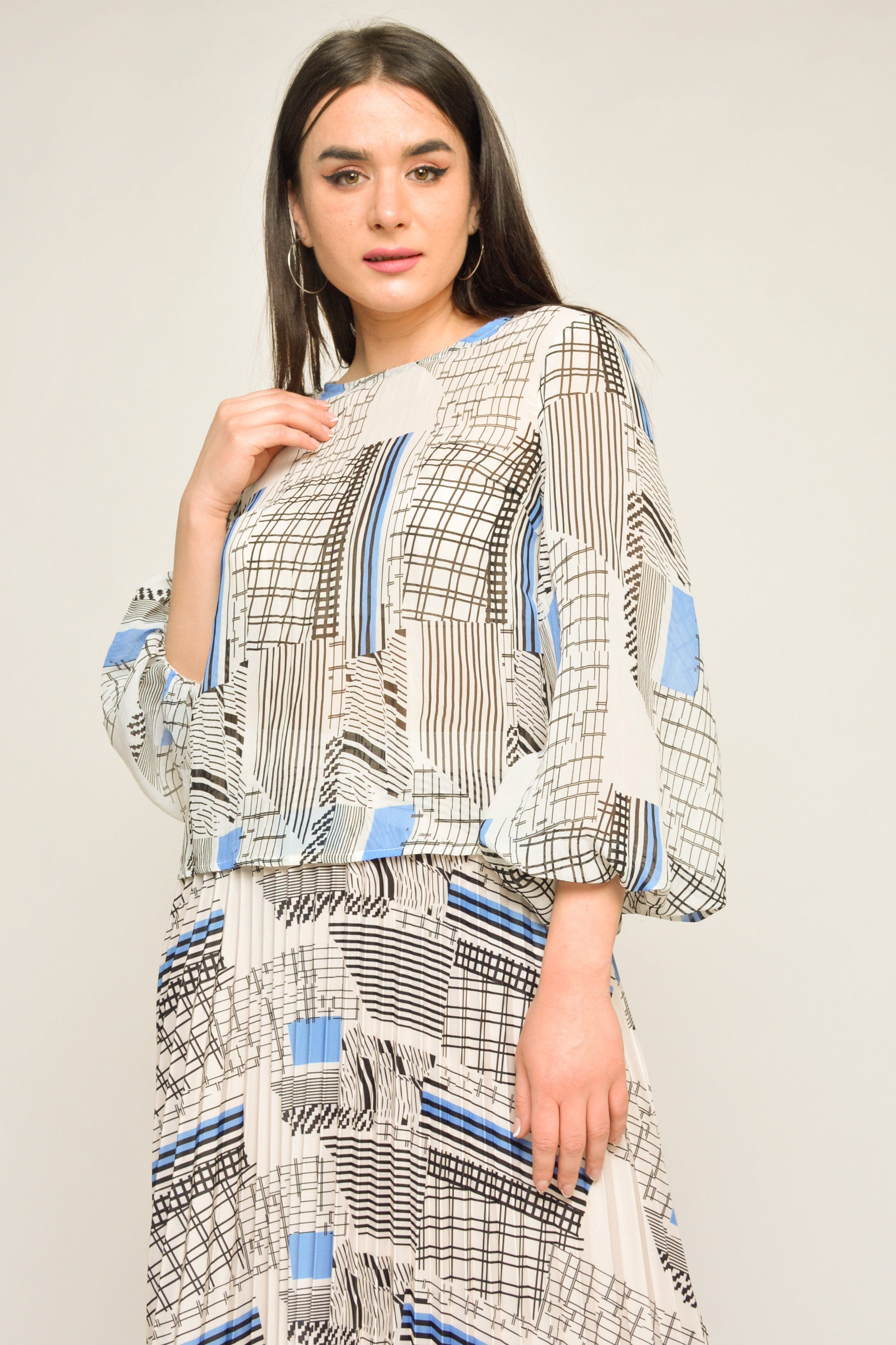 بلوزة منقوشة بكم طويل منفوخة نسائي