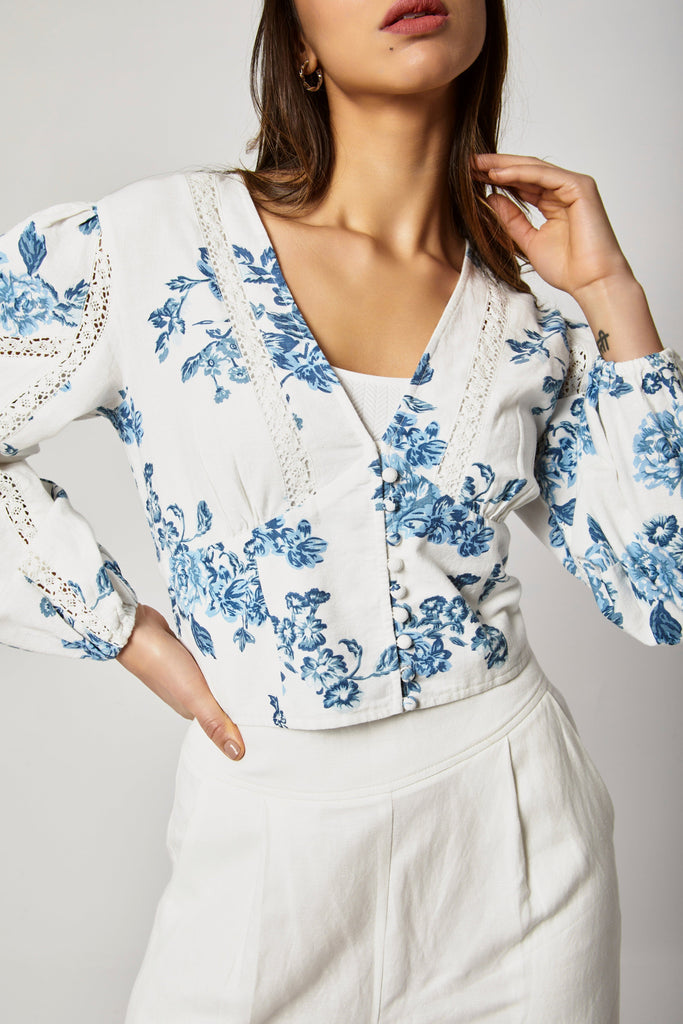 بلوزة مشجرة نص بطن كم طويل منفوخ نسائي