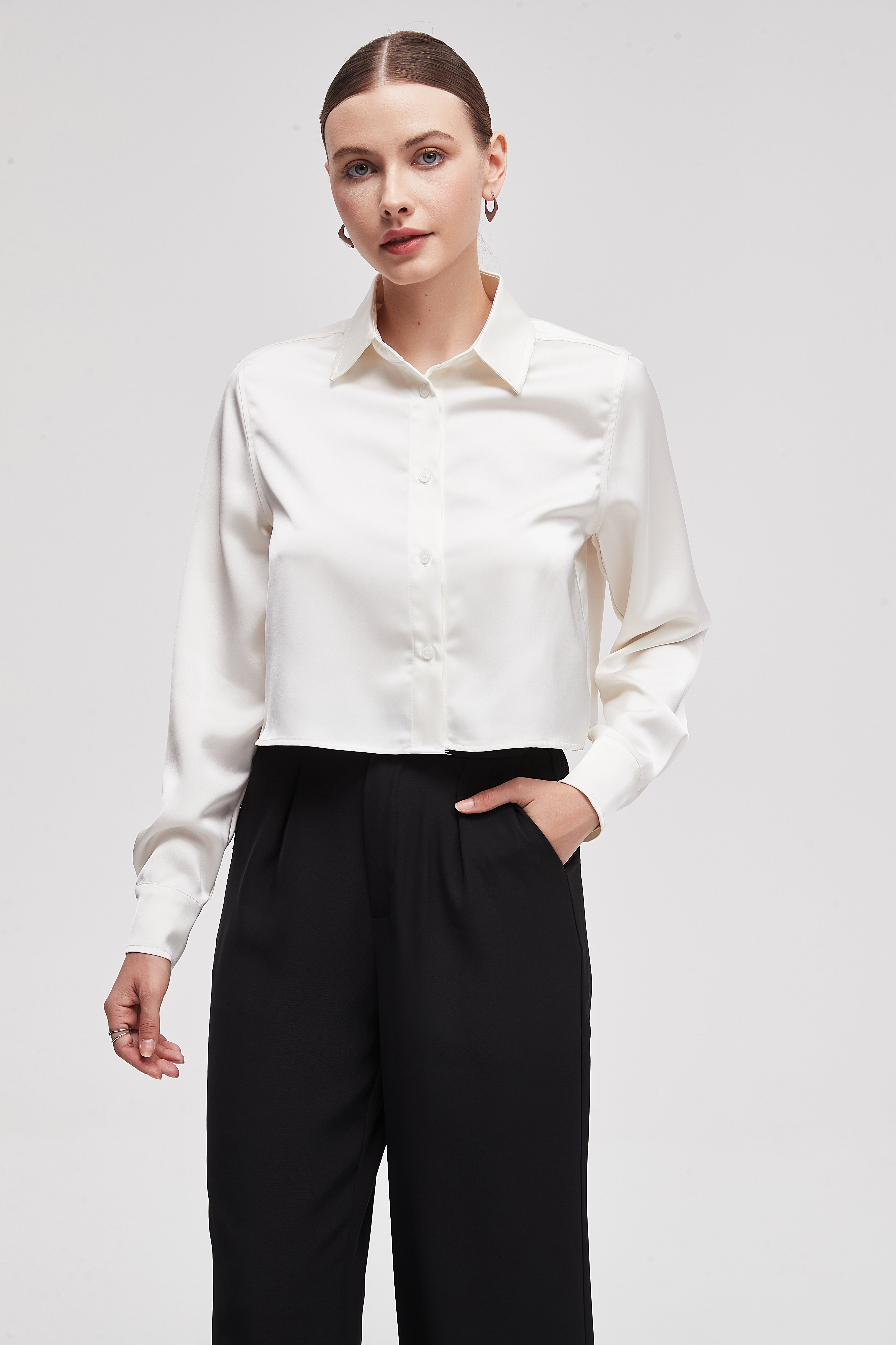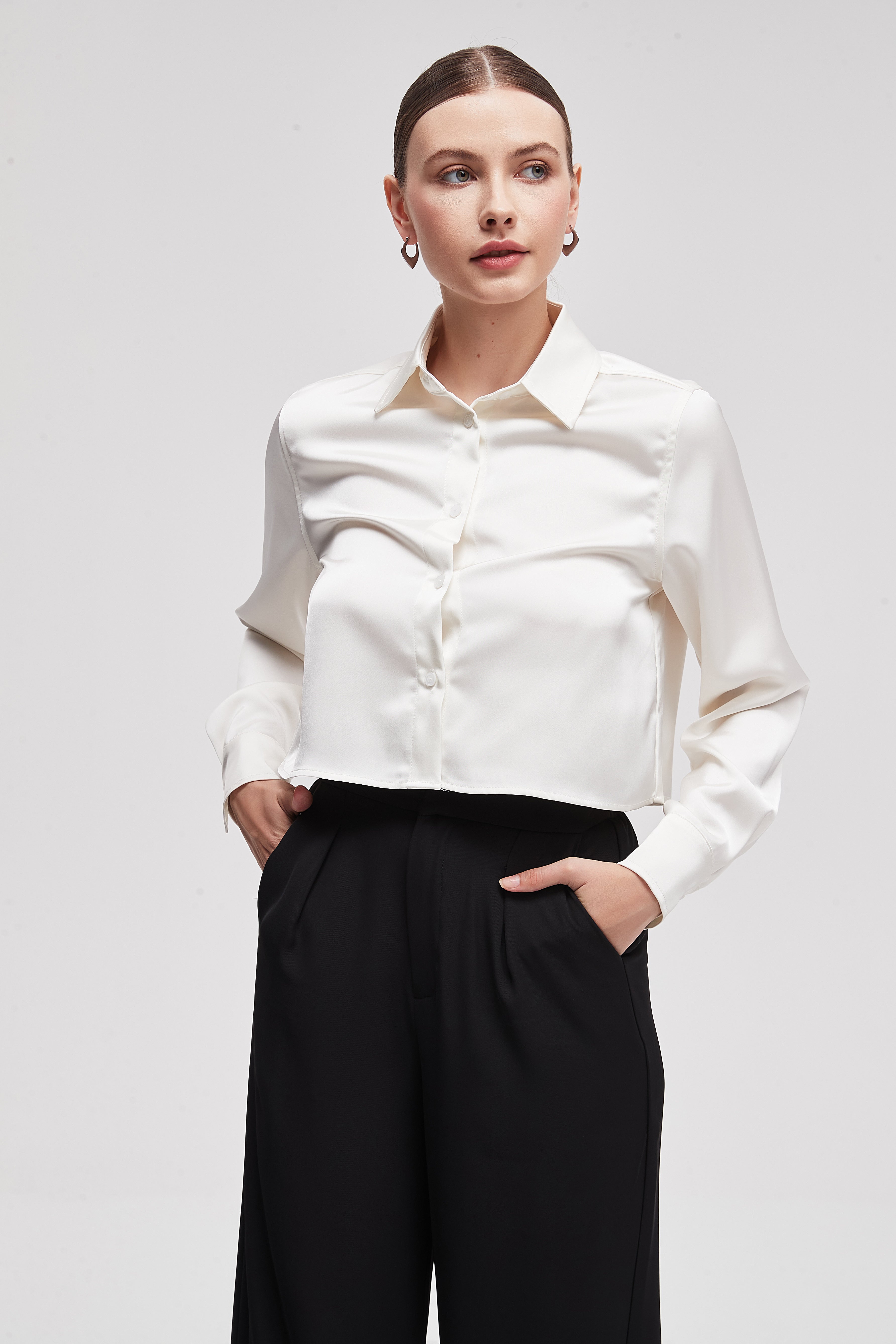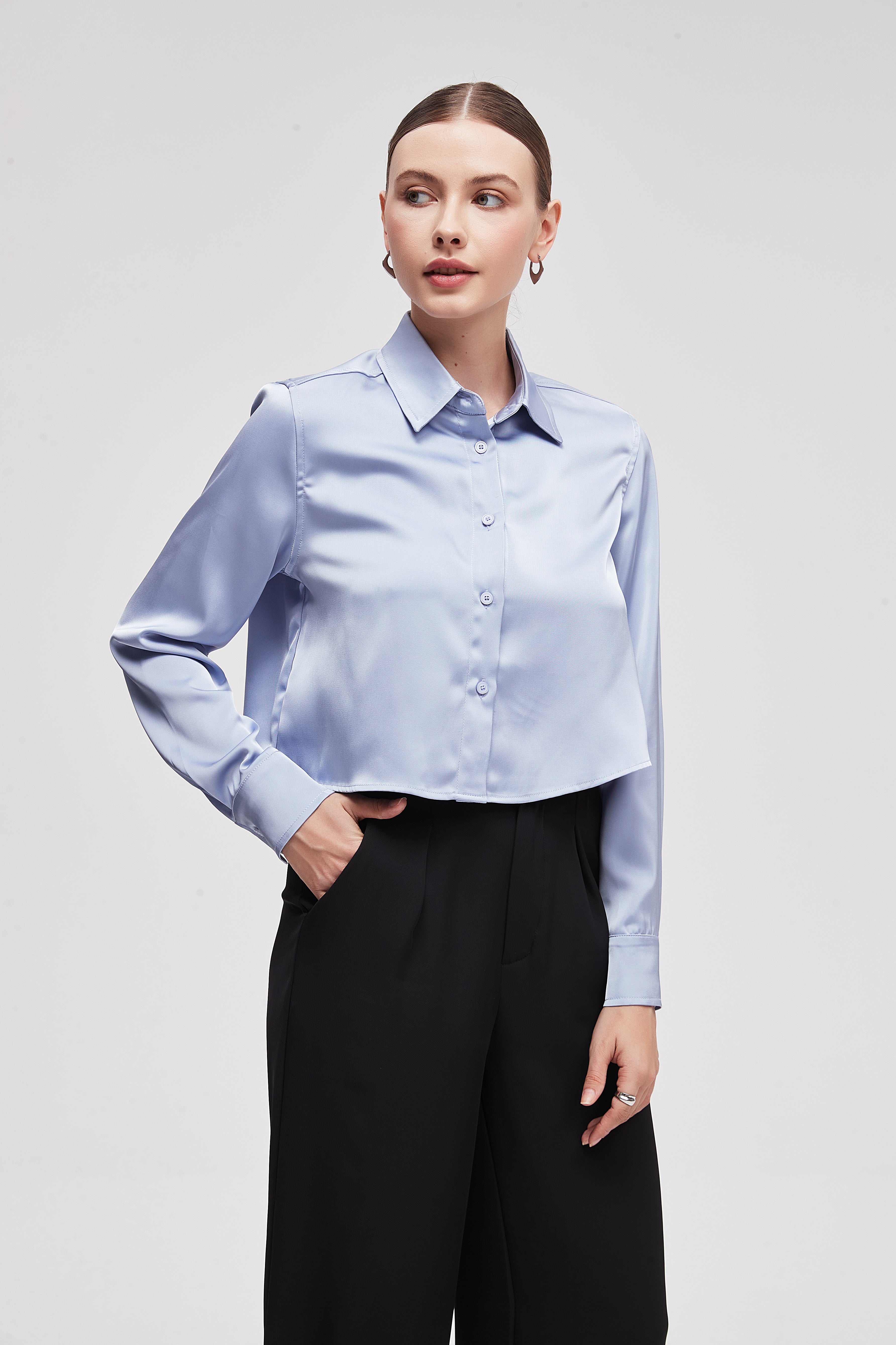 بلوزة بتصميم قميص بأكمام طويلة وياقة قميص