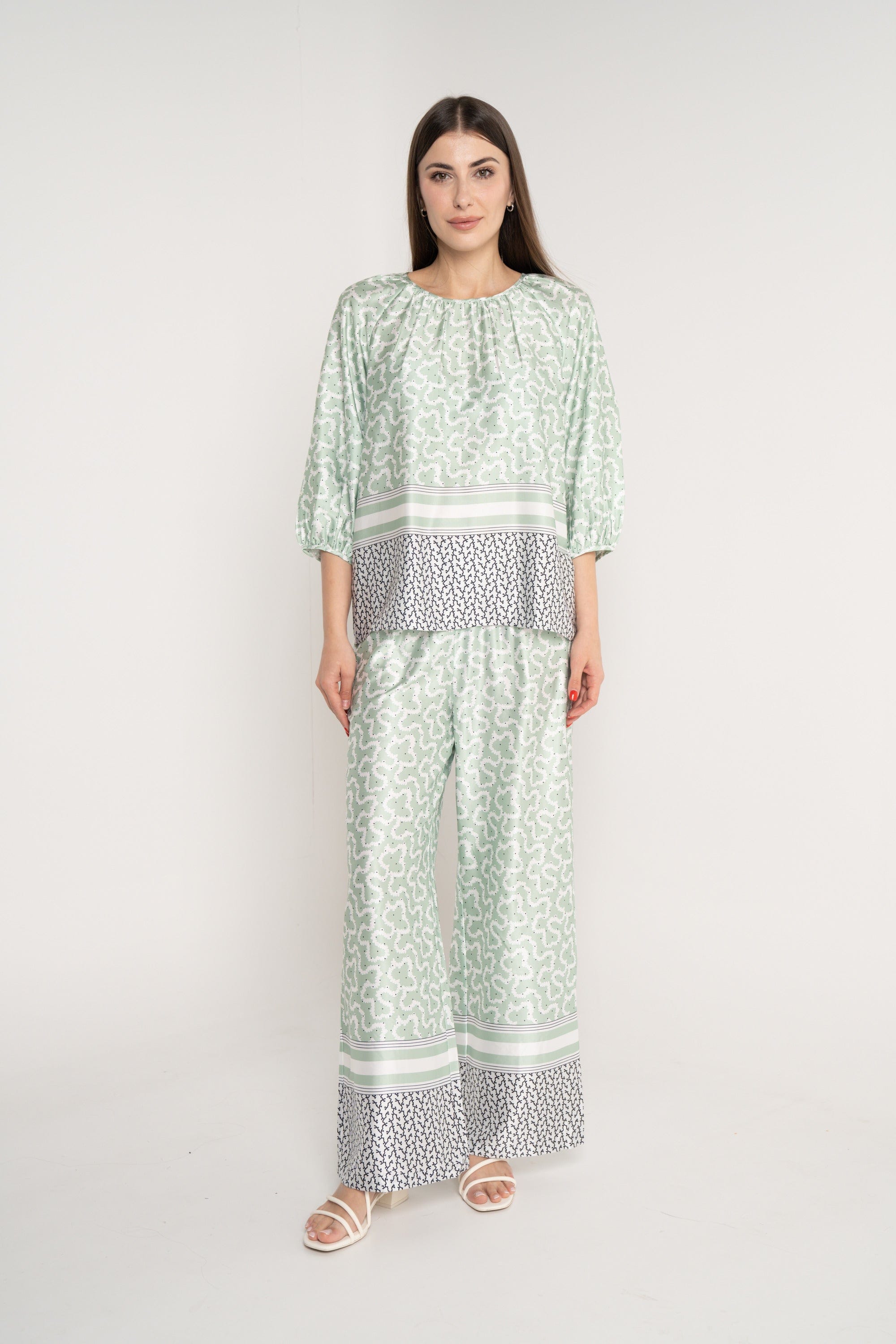 بنطلون طويل منقوش واسع سادة خصر مرتفع