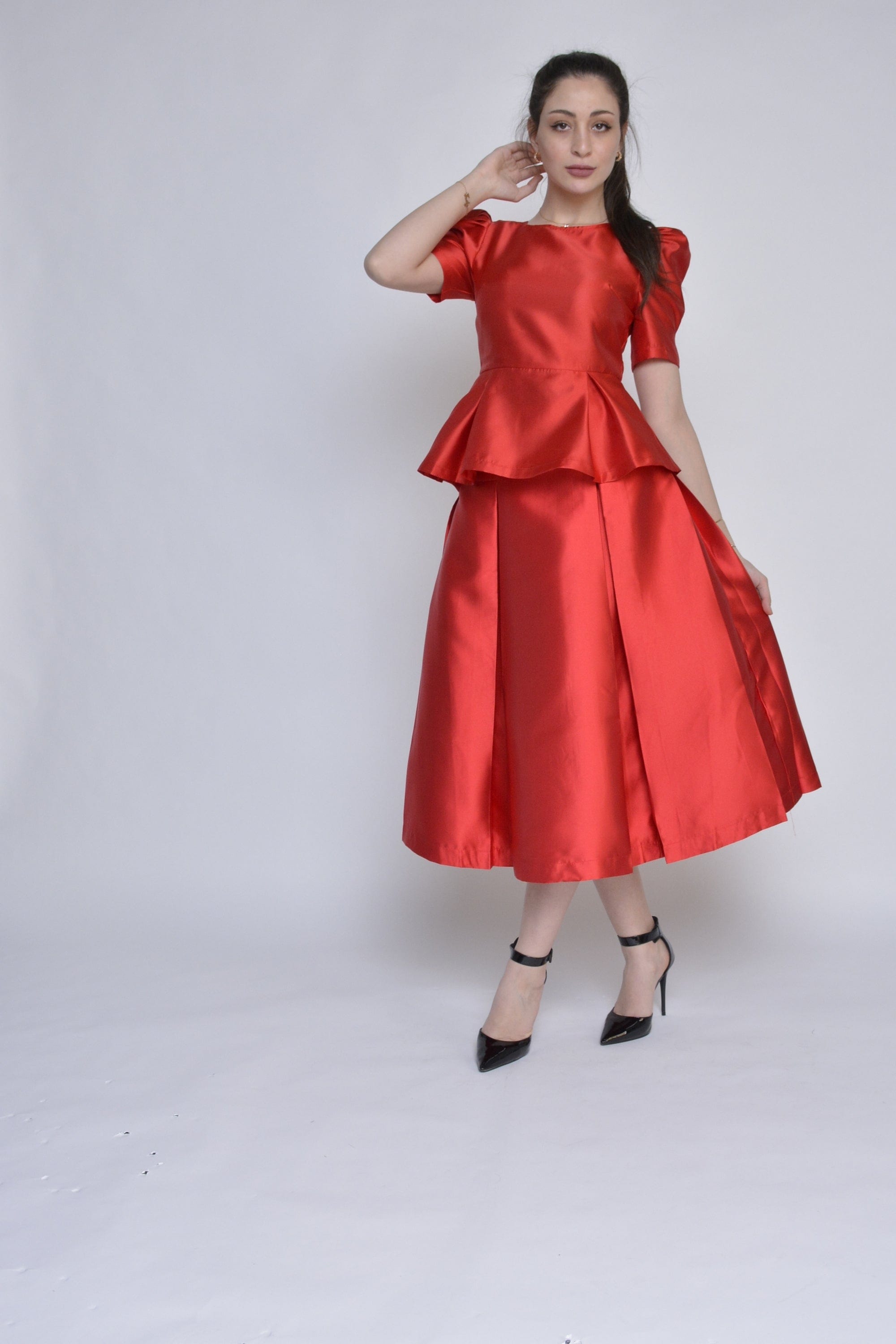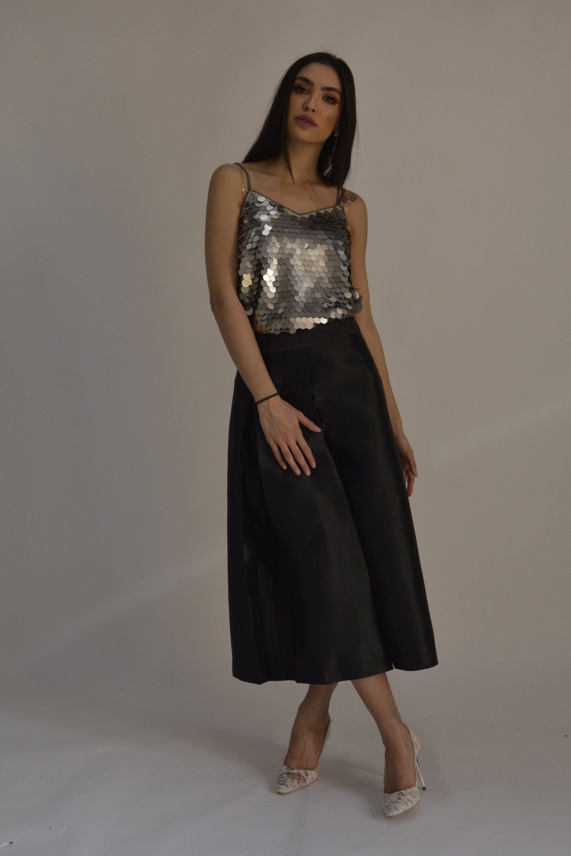 تنورة ميدي سهرة قماش تفتا سادة ناعمة