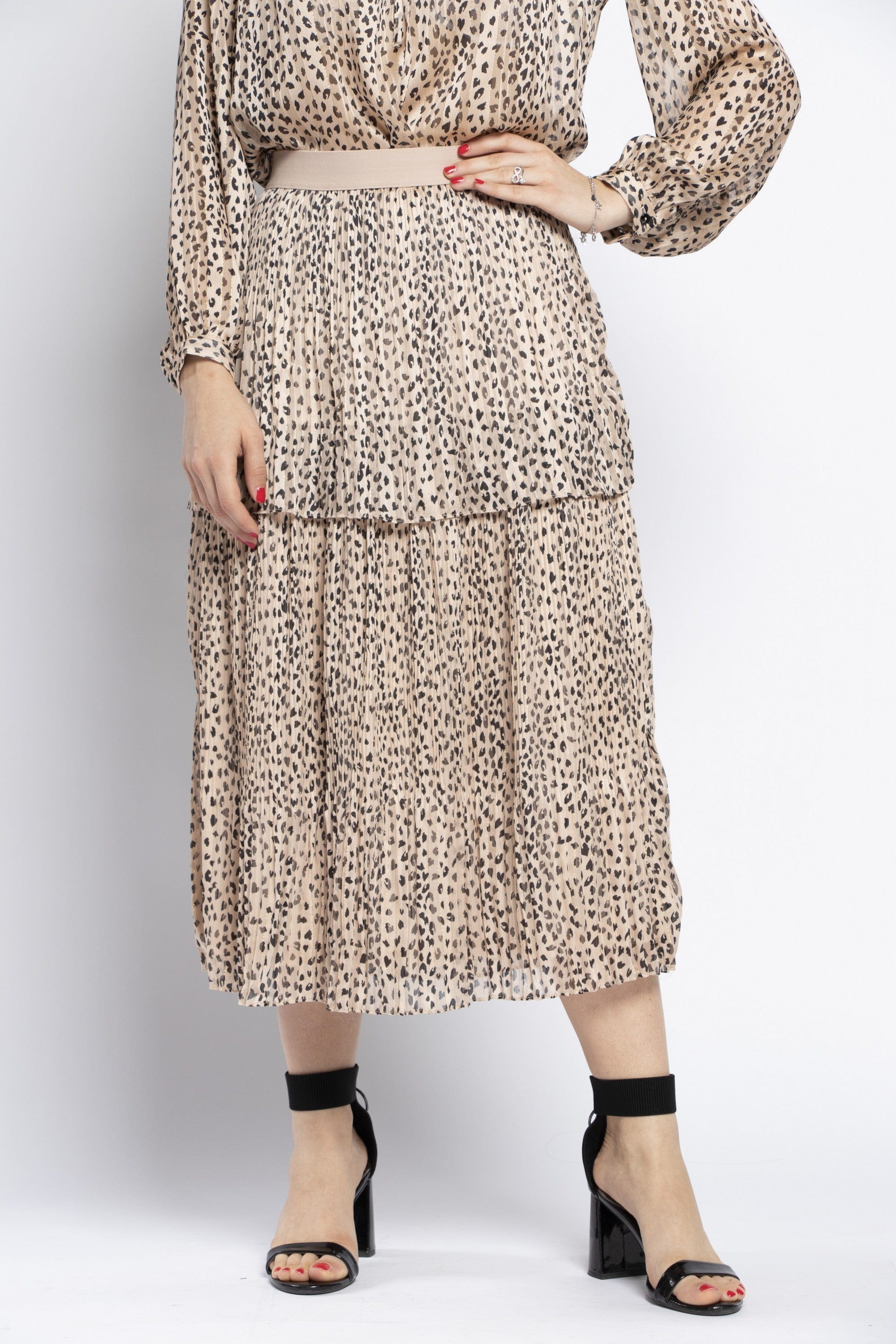 تنورة ميدي واسعه من طبقتين مطبوعة بنقشة جلد النمر