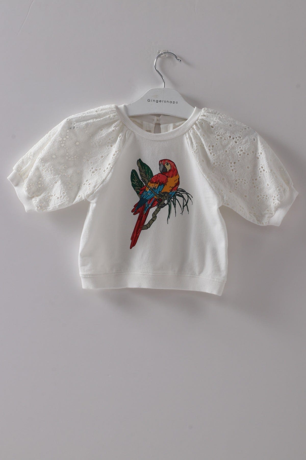 بلوزة بكم منفوخ مخرم مزينة بطبعة بغبغان