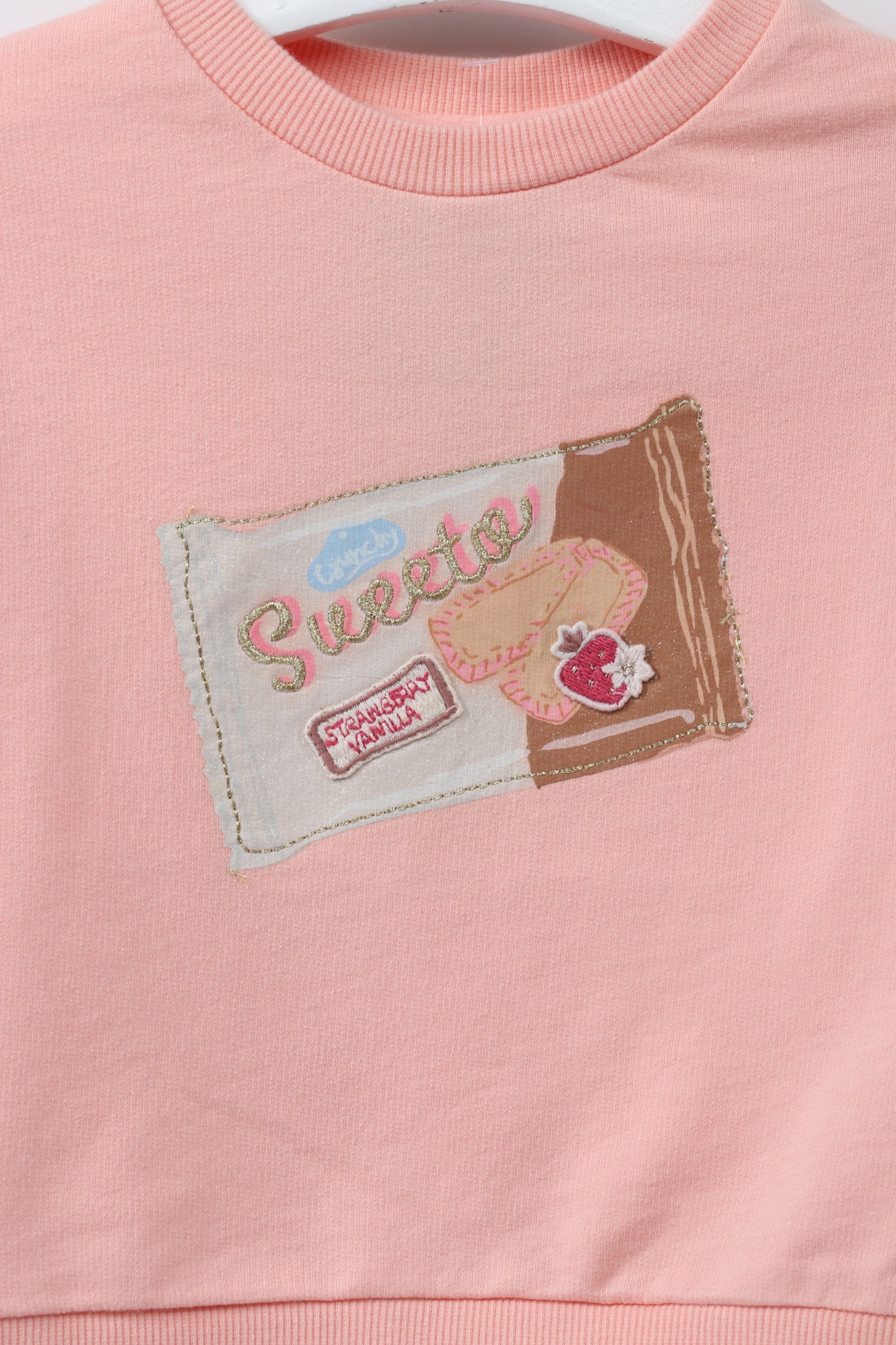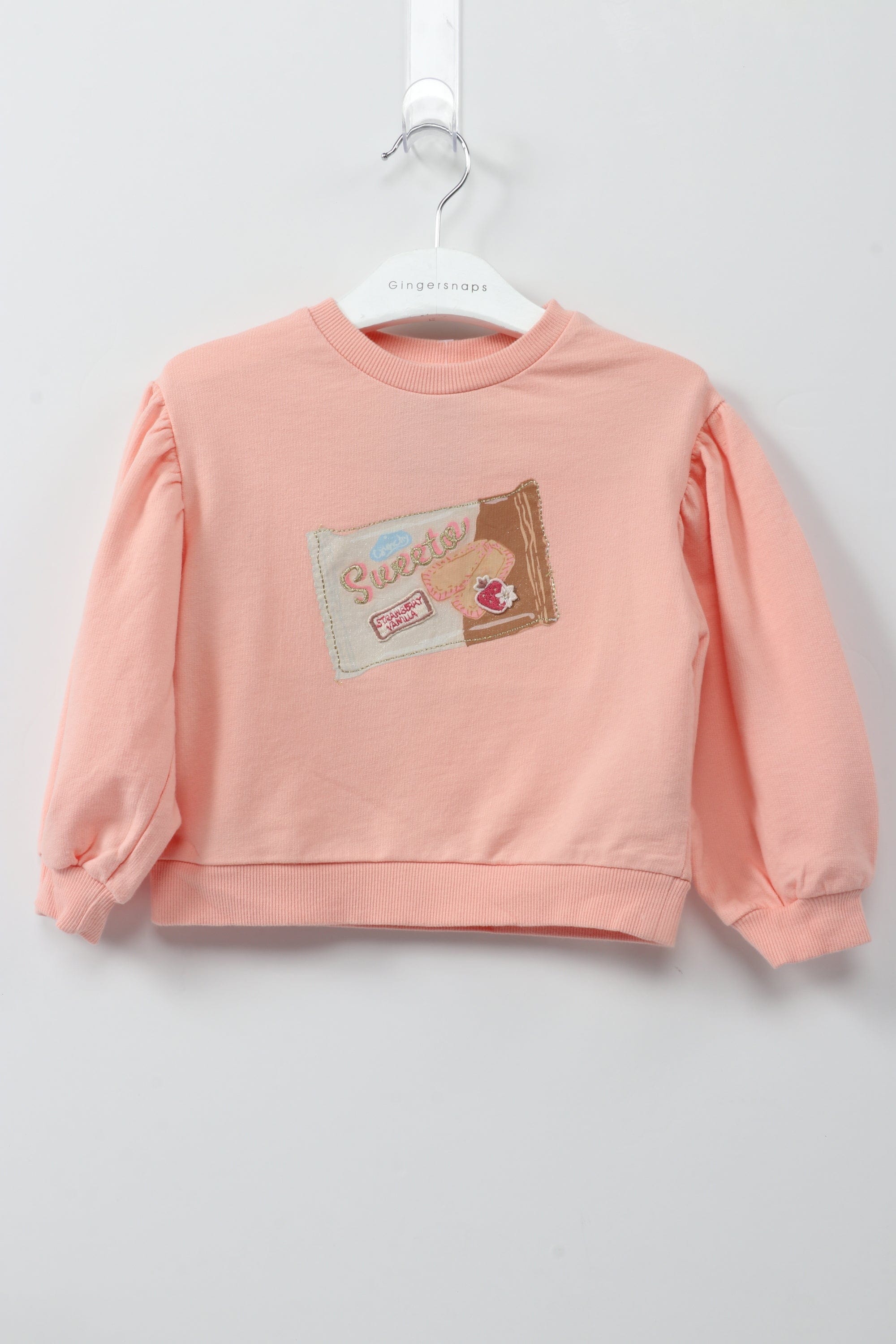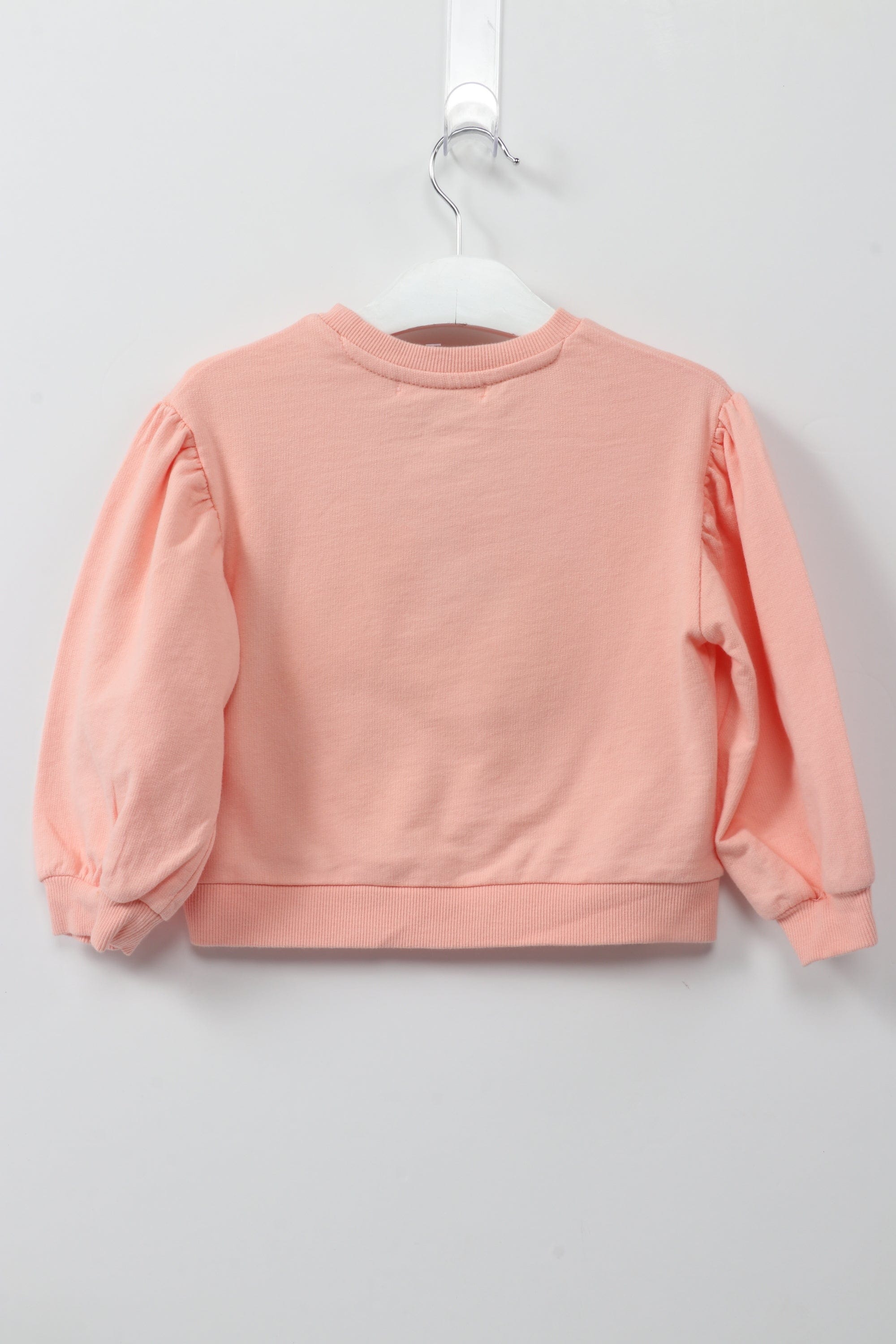 بلوفر بناتي بطبعة بكم منفوخ طويل