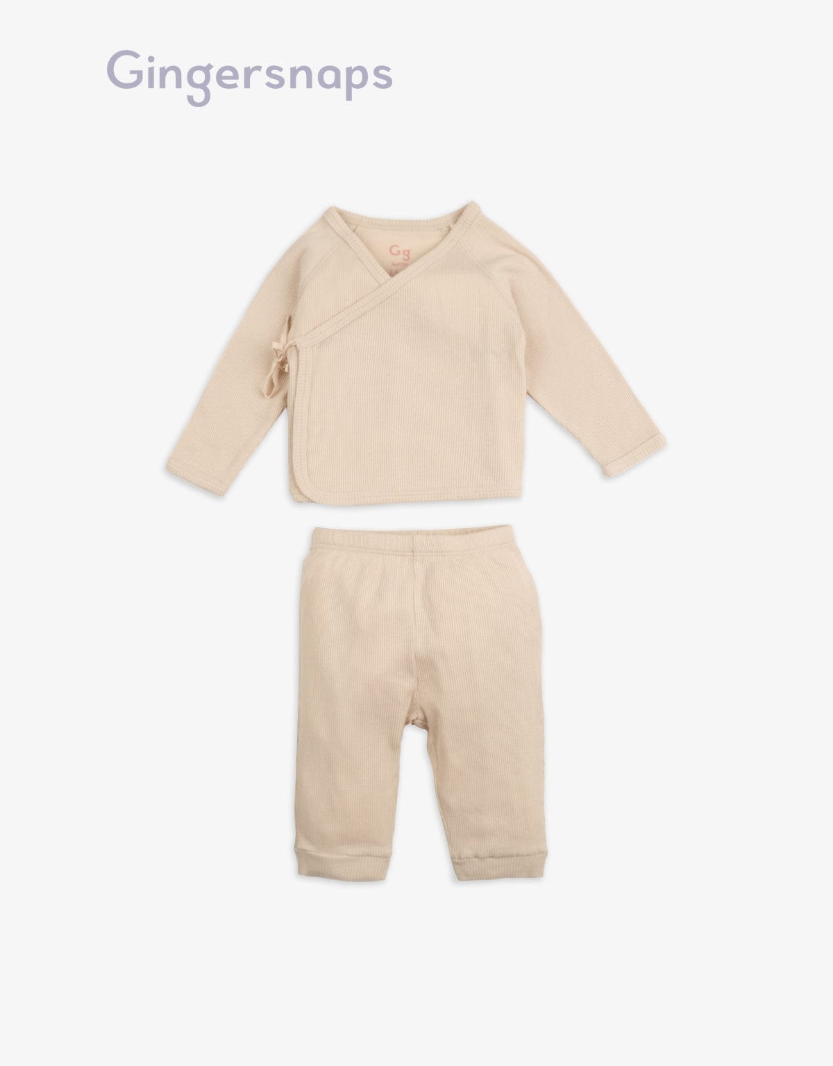 طقم مواليد ولادي سادة بلوزة ملفوفة وبنطلون