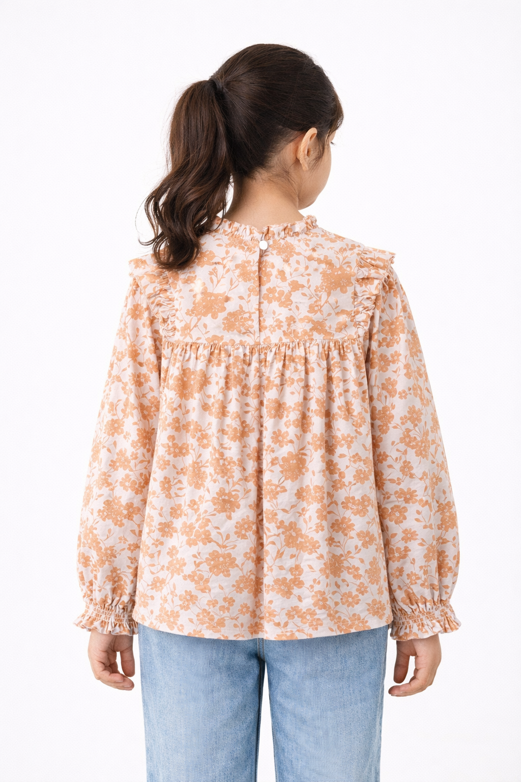 بلوزة منقوشة كم طويل بف بناتي