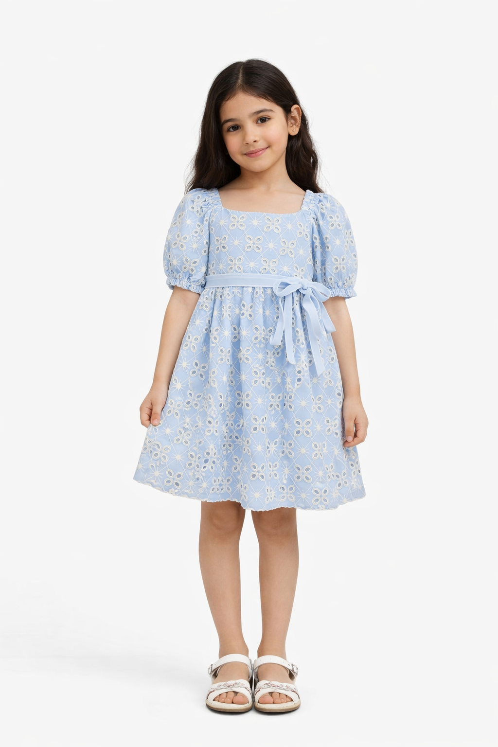 فستان بناتي منسوج مخرم