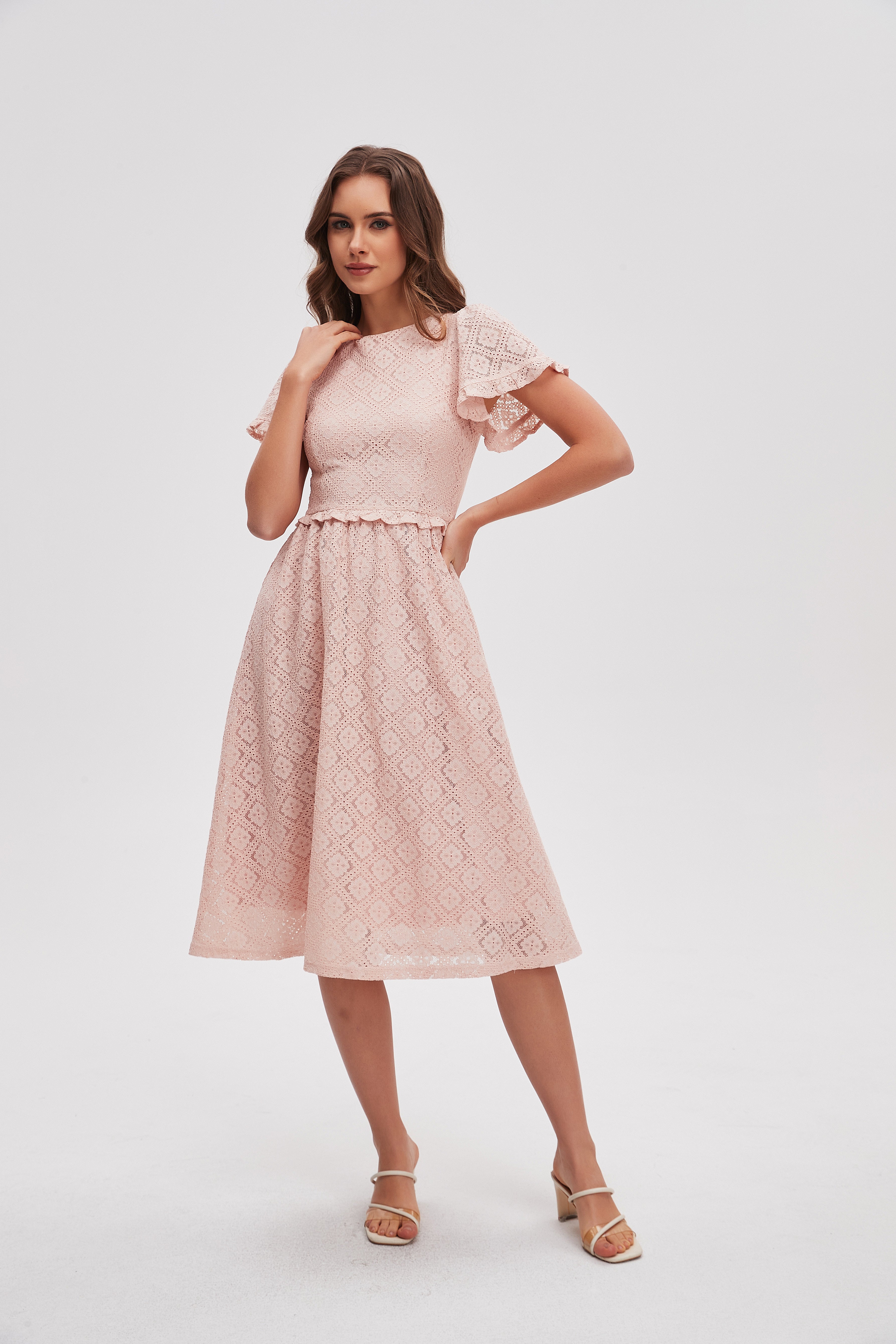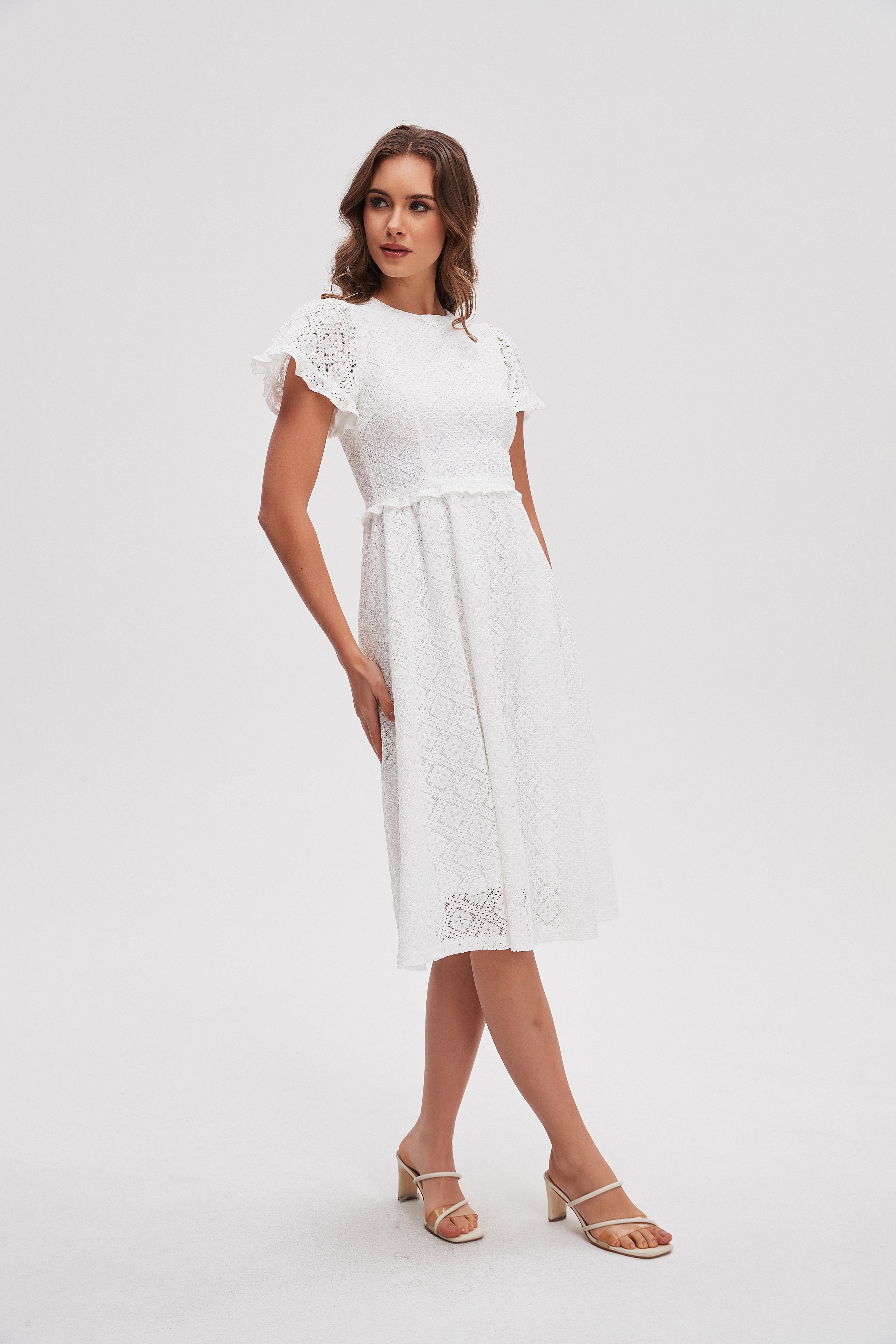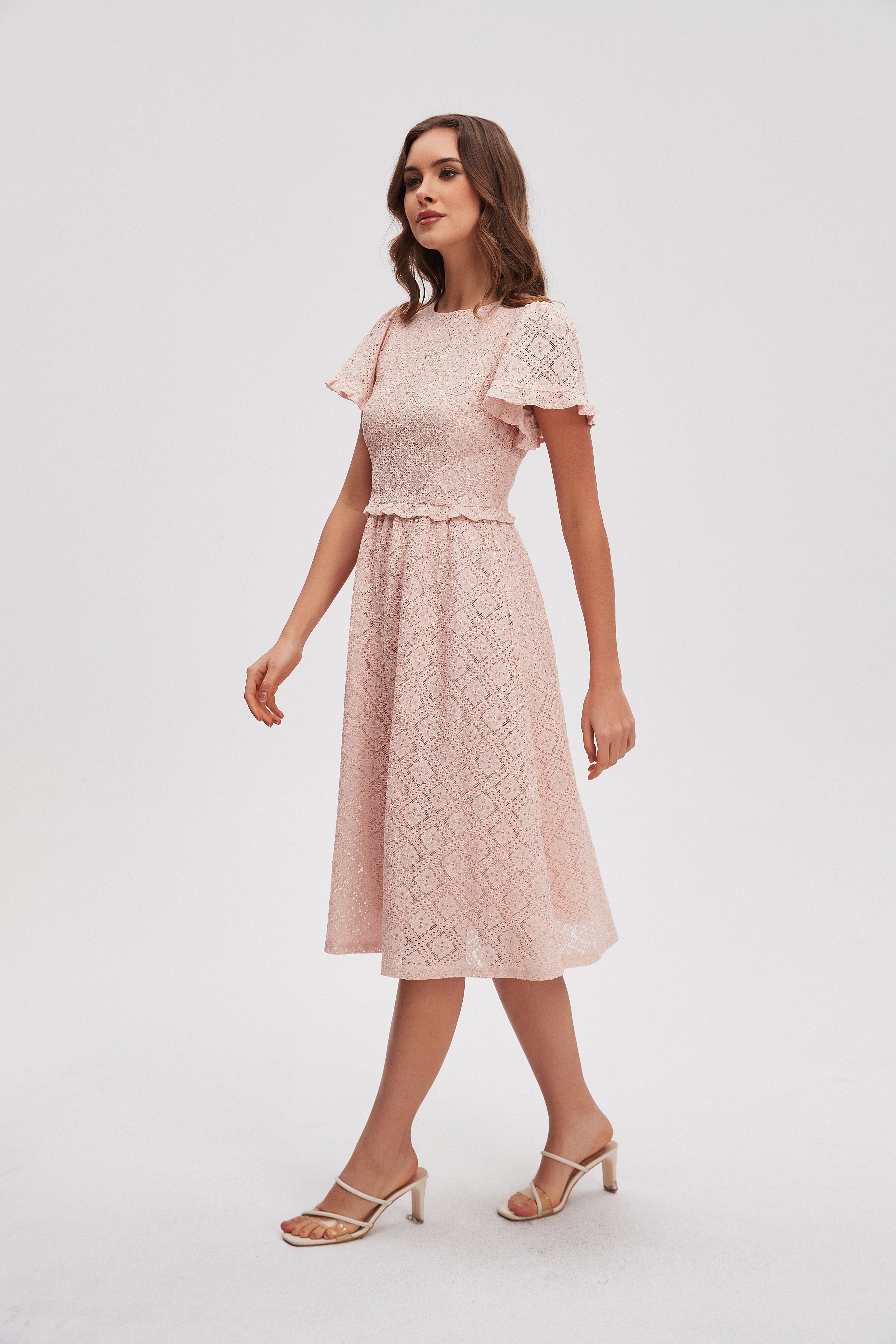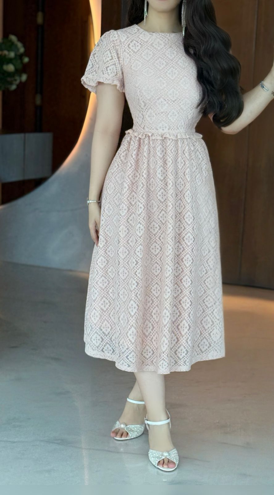 فستان ميدي دانتيل كم قصير