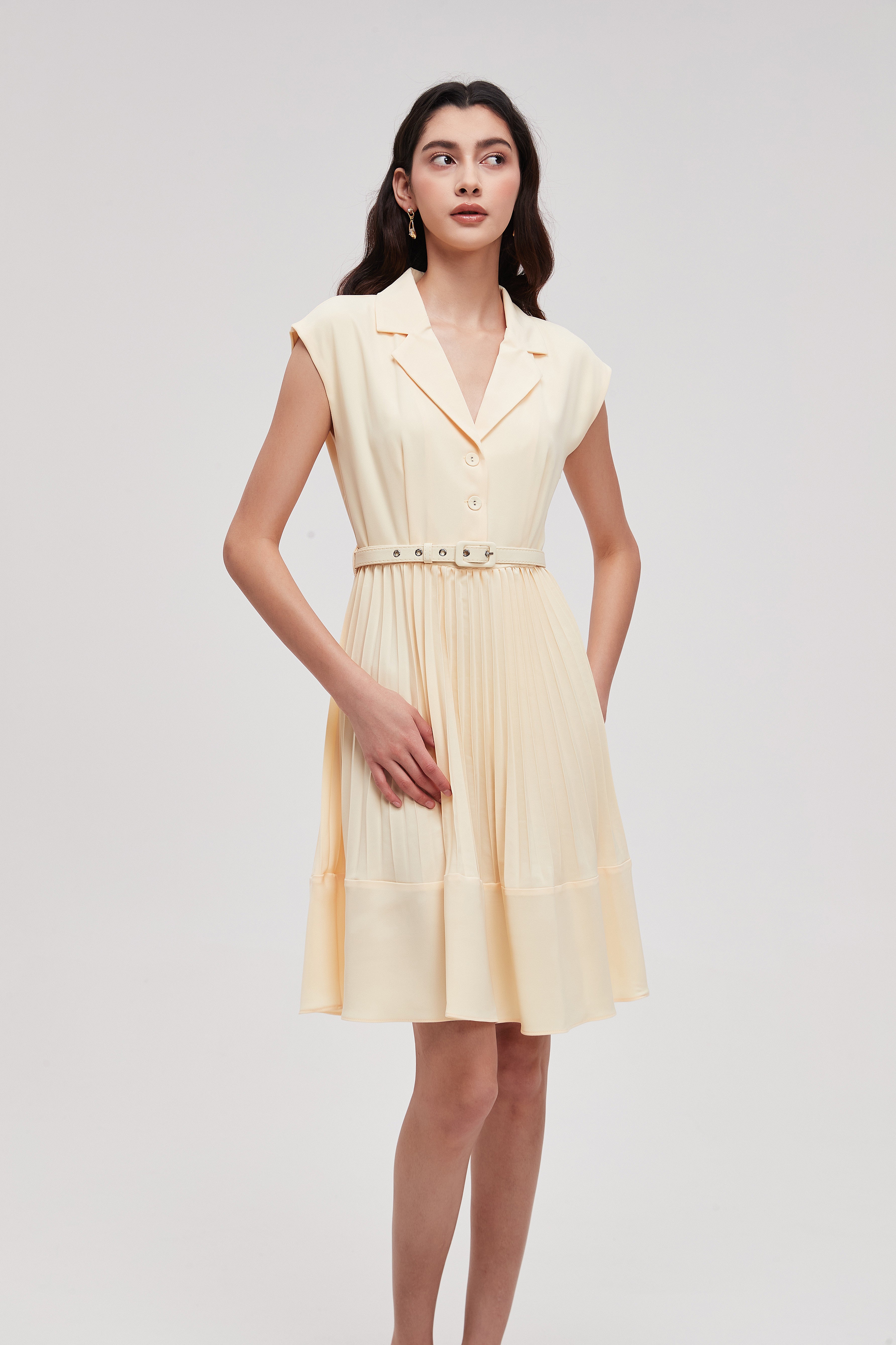فستان بطول الركبة بأكمام قصيرة بليسيه