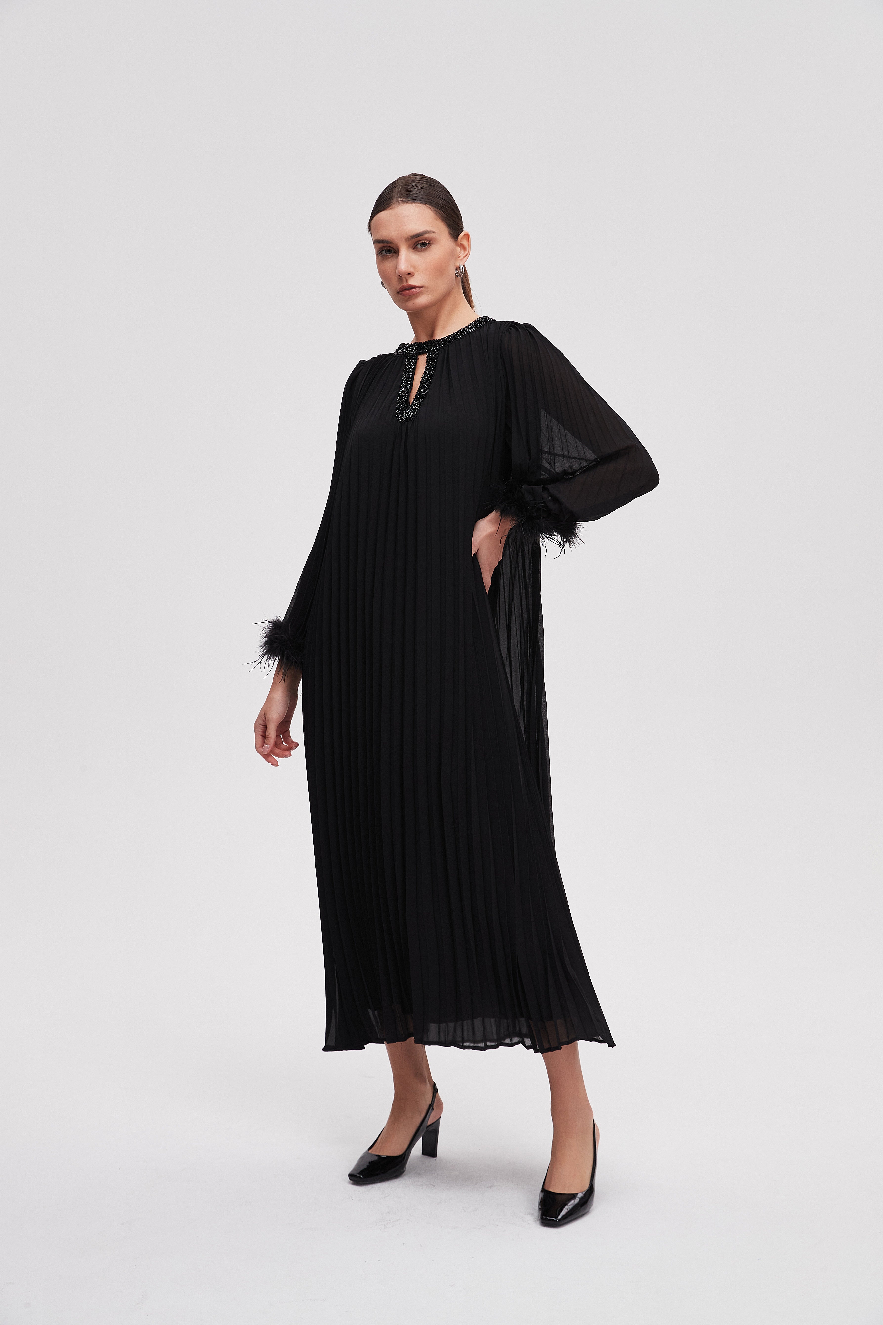 فستان ميدي سادة 3/4 كم