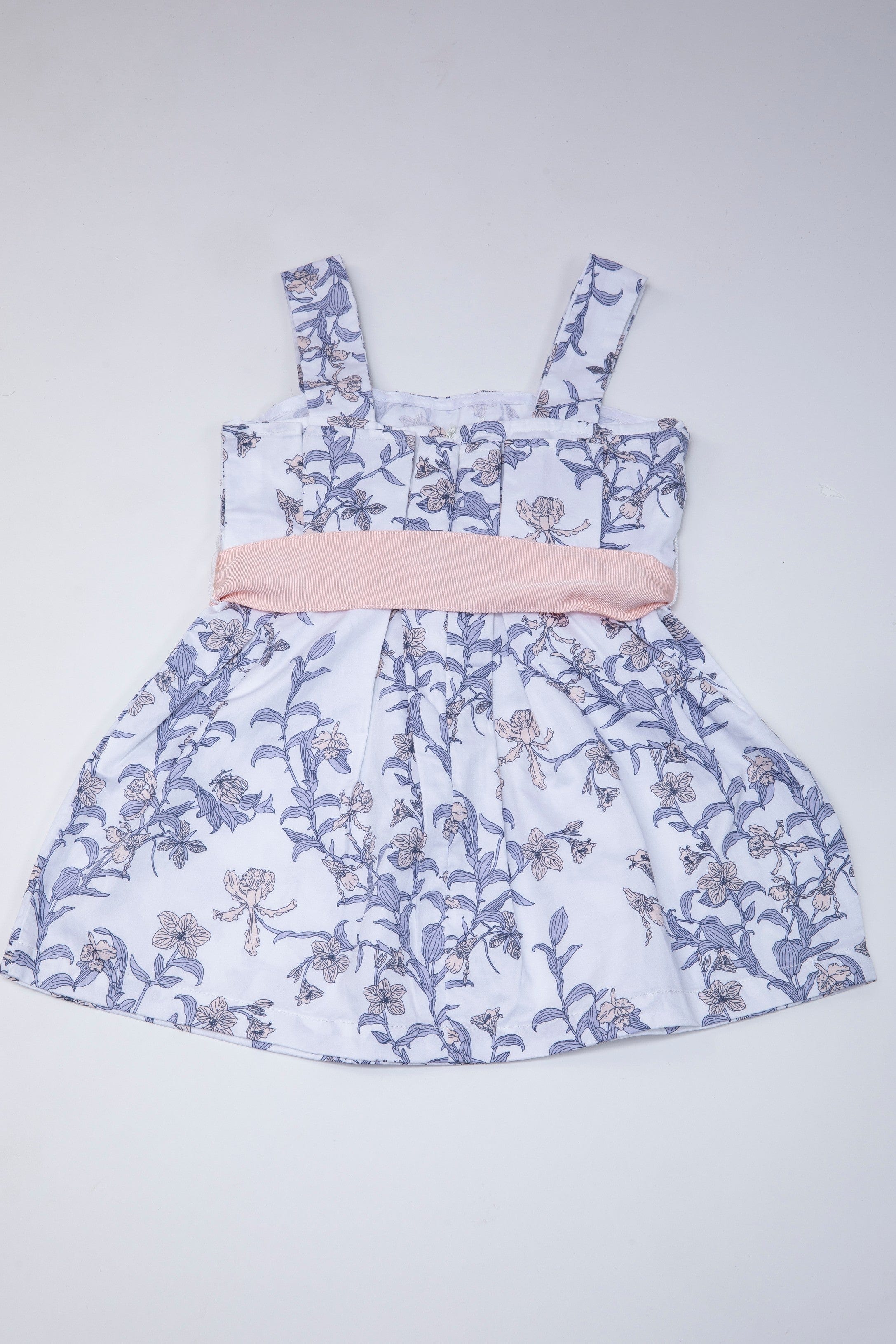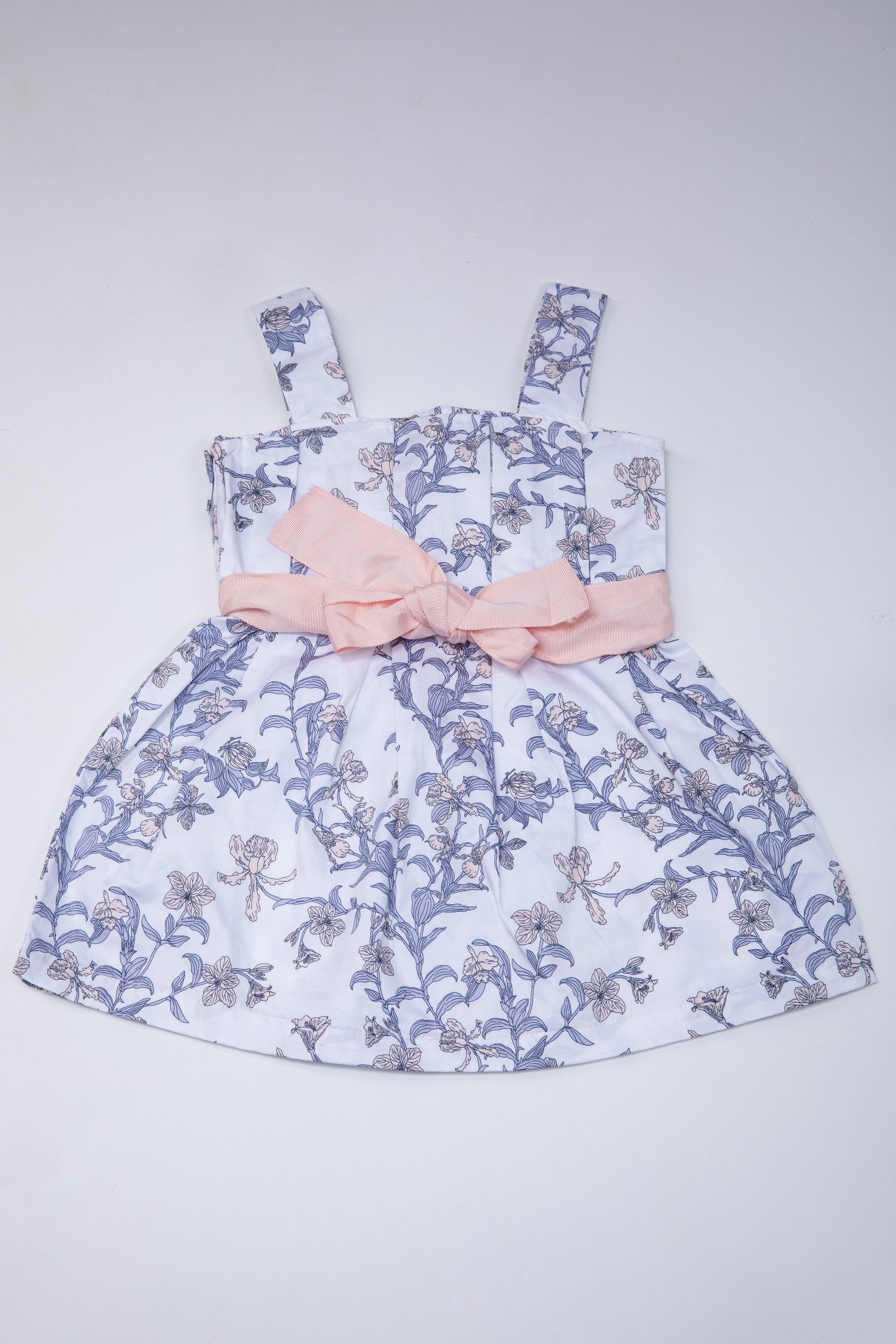 فستان بناتي مشجر حمالات بفيونكة على الخصر