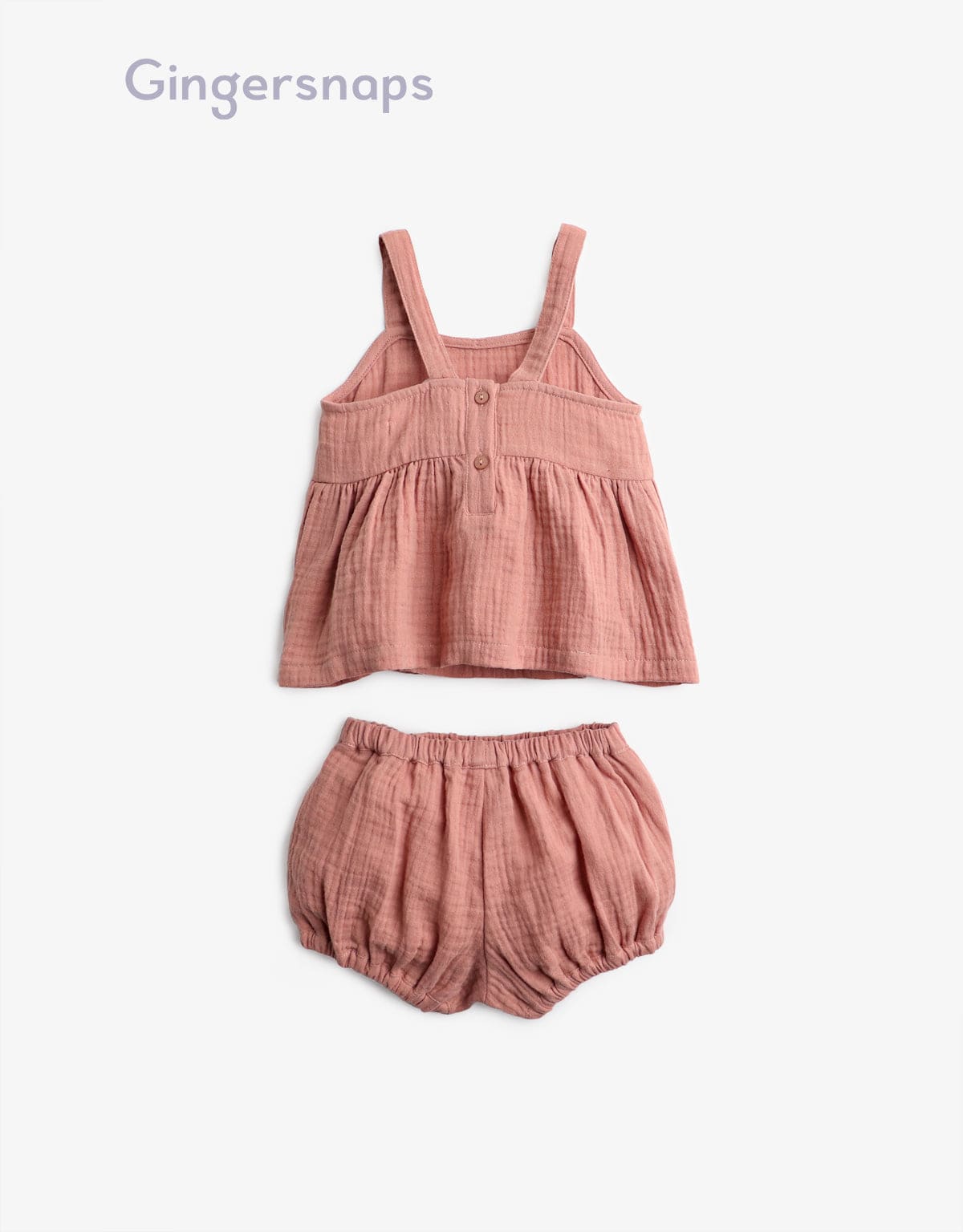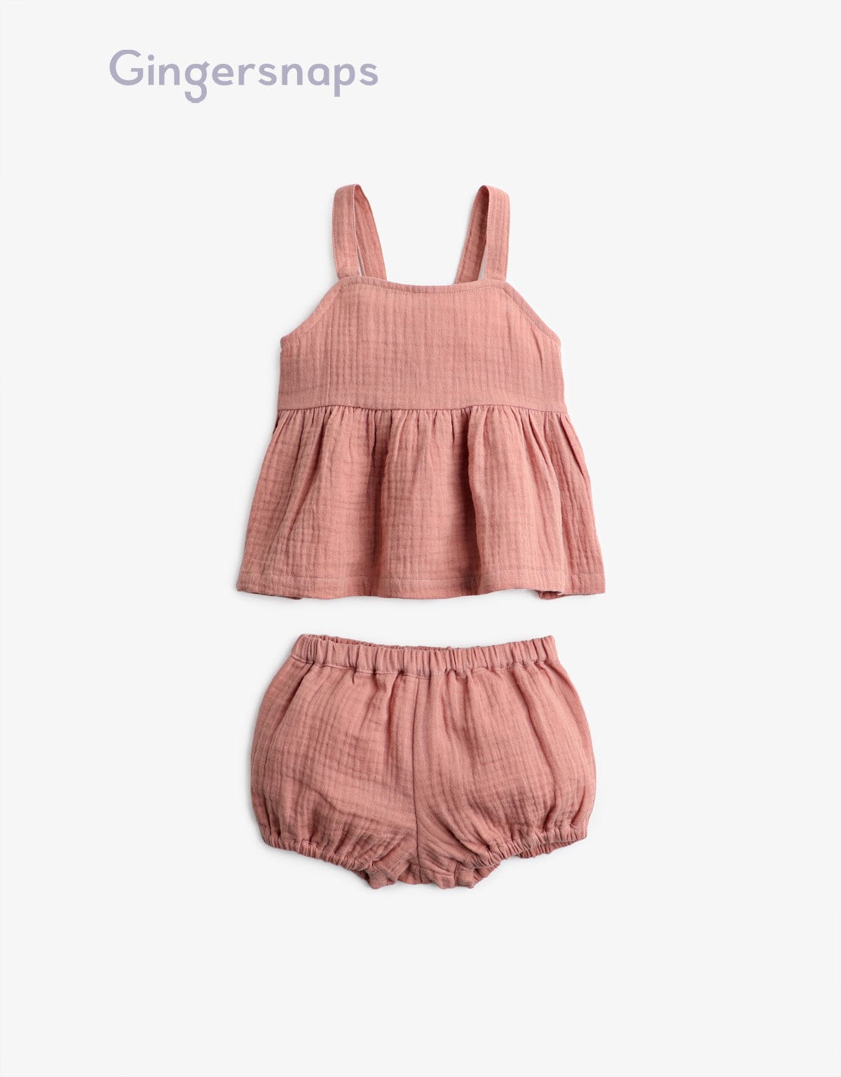 طقم كاجوال بناتي ببلوزة بحمالات وشورت