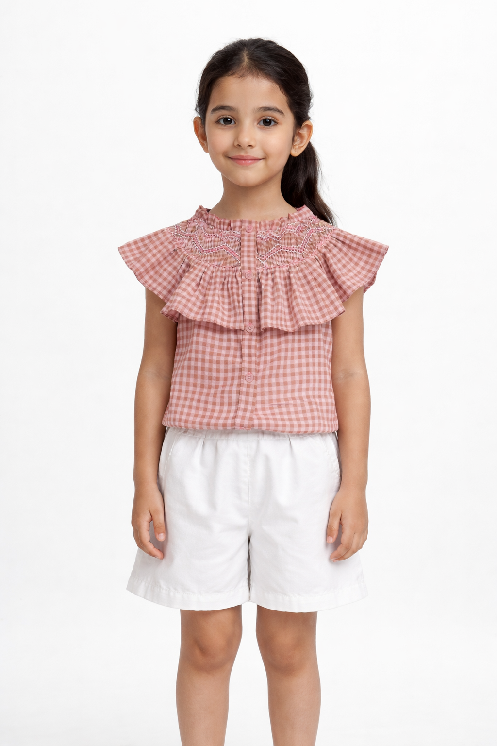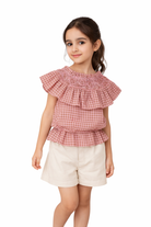 بلوزة منسوجة مربعات بكشكشة للبنات