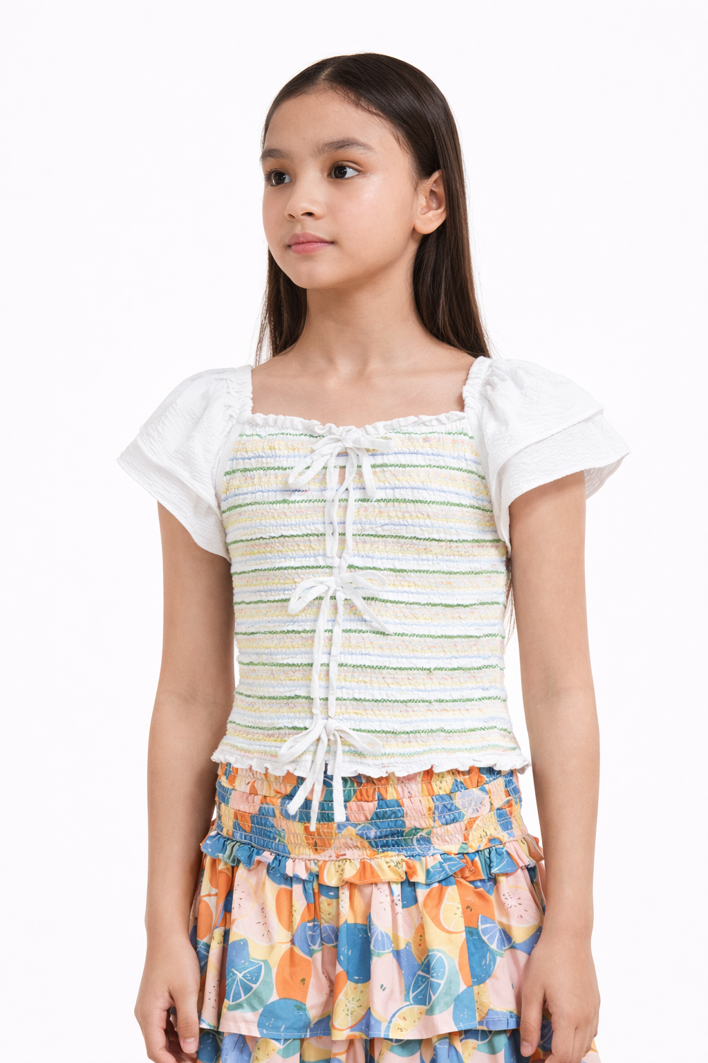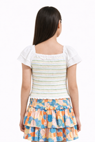 بلوزة بناتي مخطط بالعرض برباط كم قصير