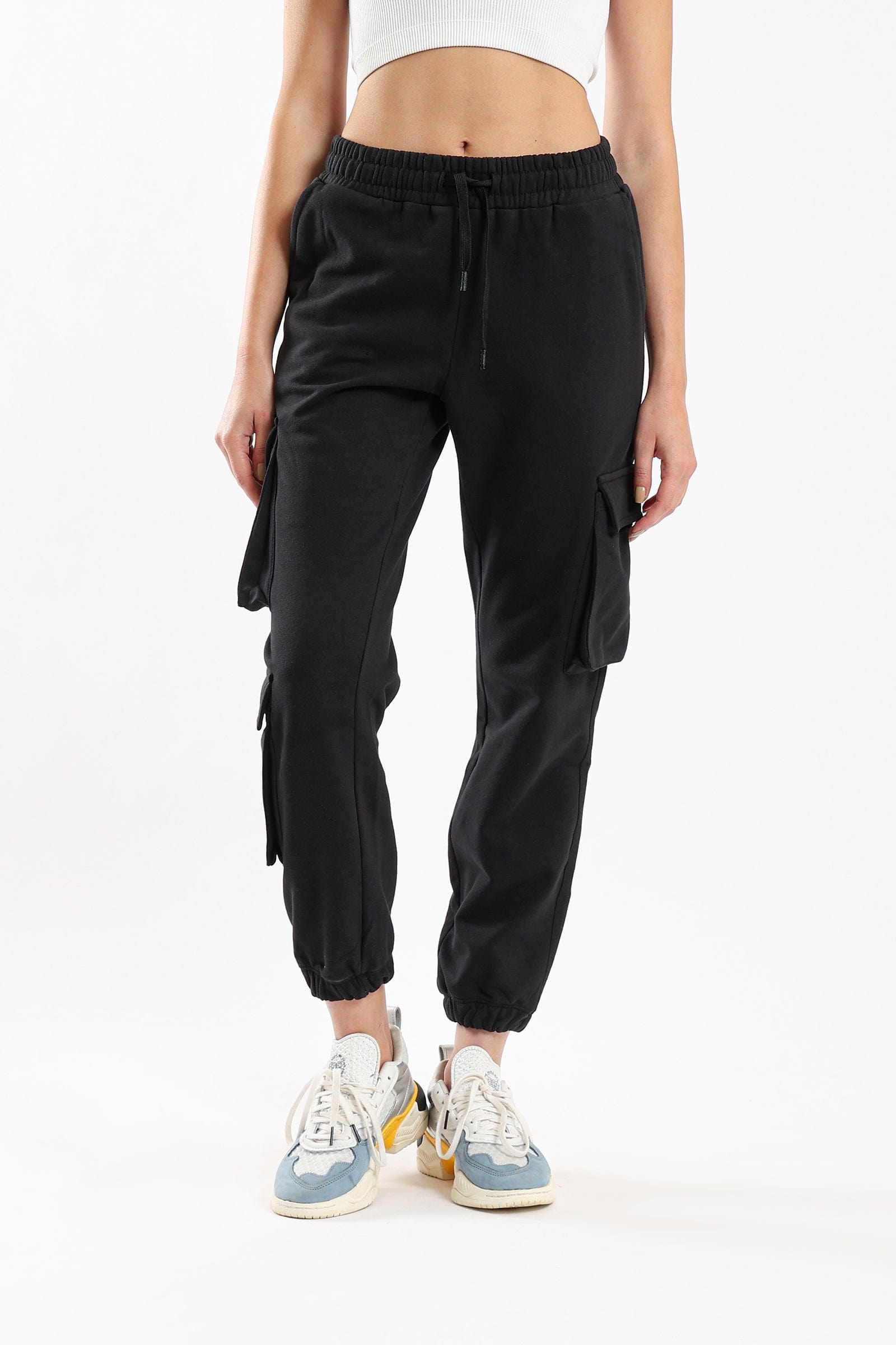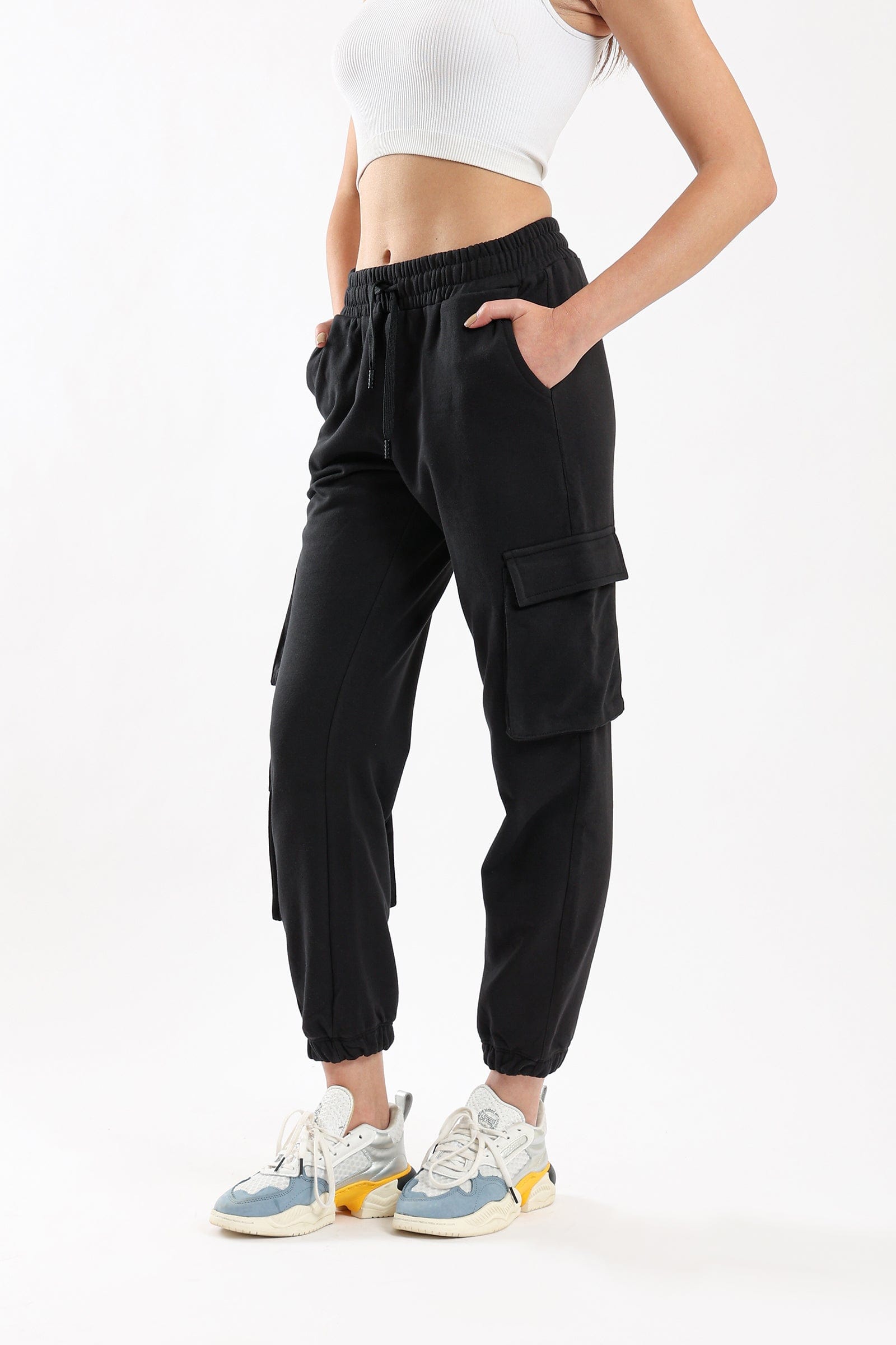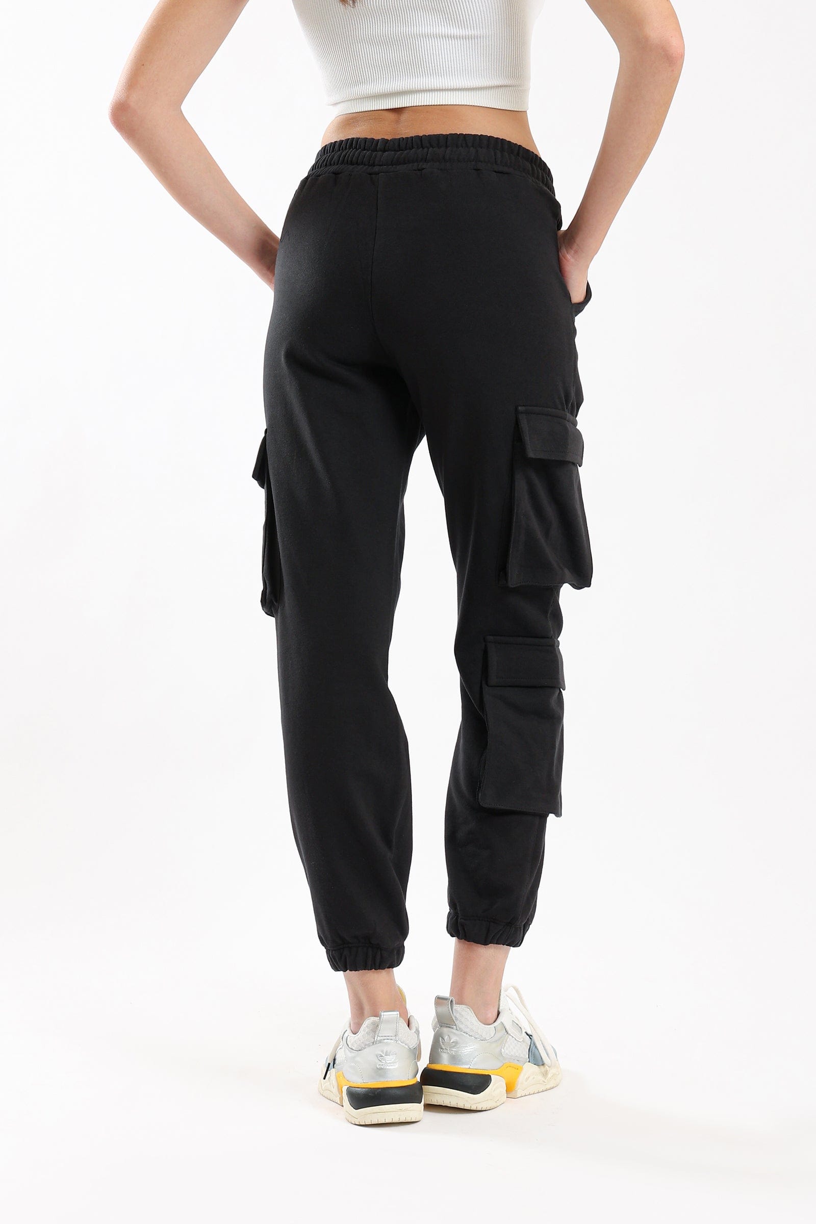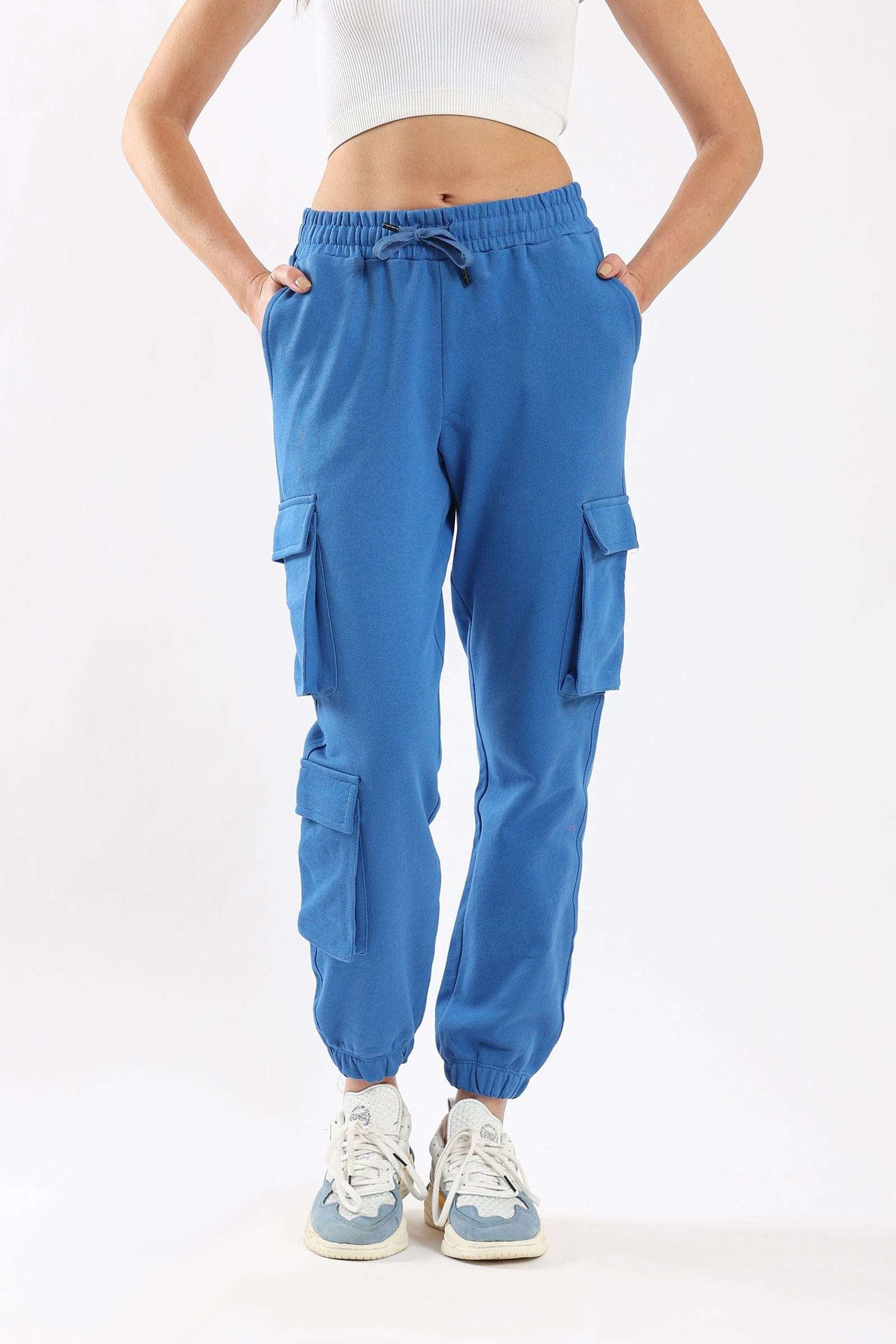 بنطلون كارجو نسائي بجيوب أمامية بخصر مطاطي