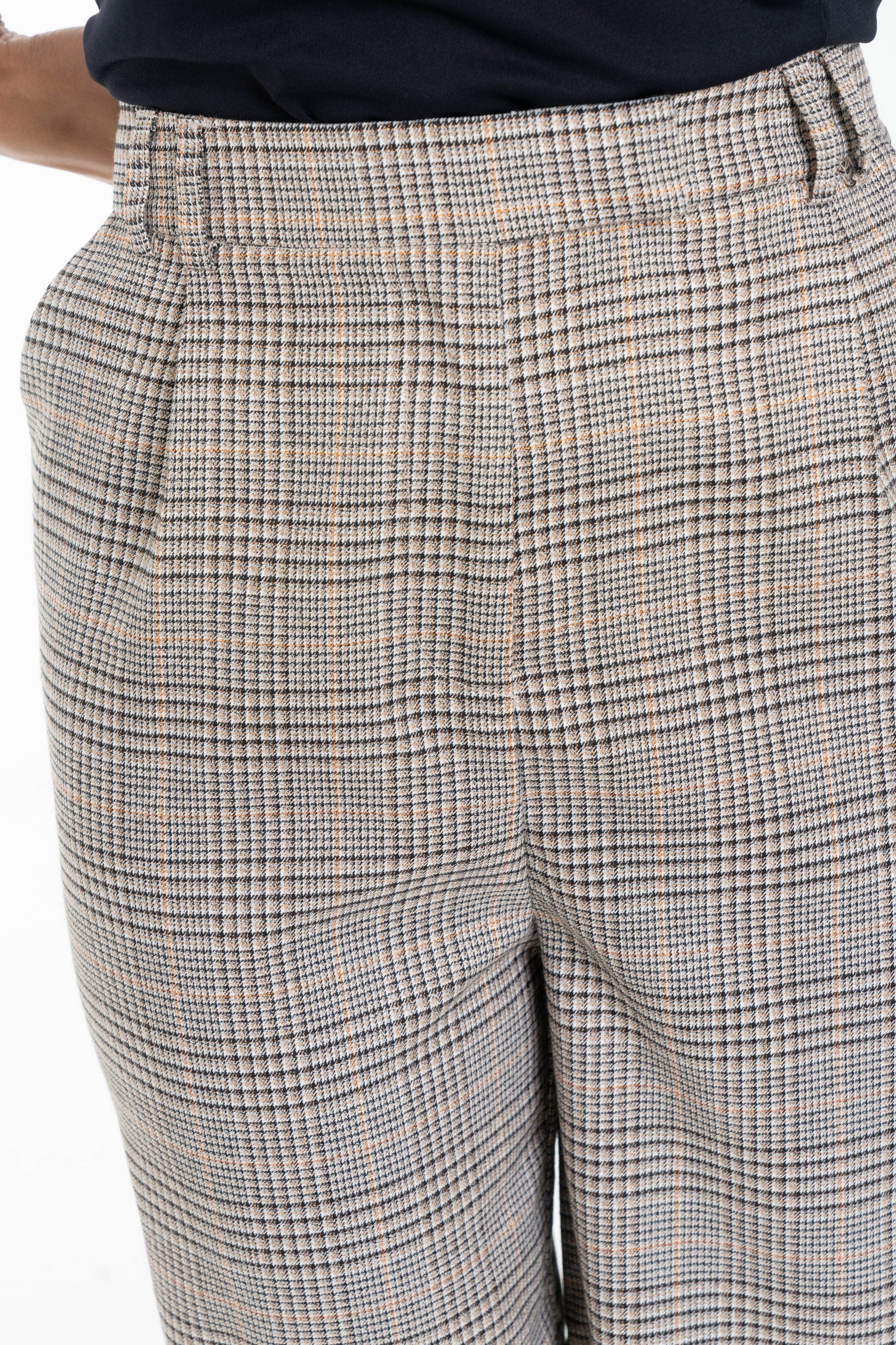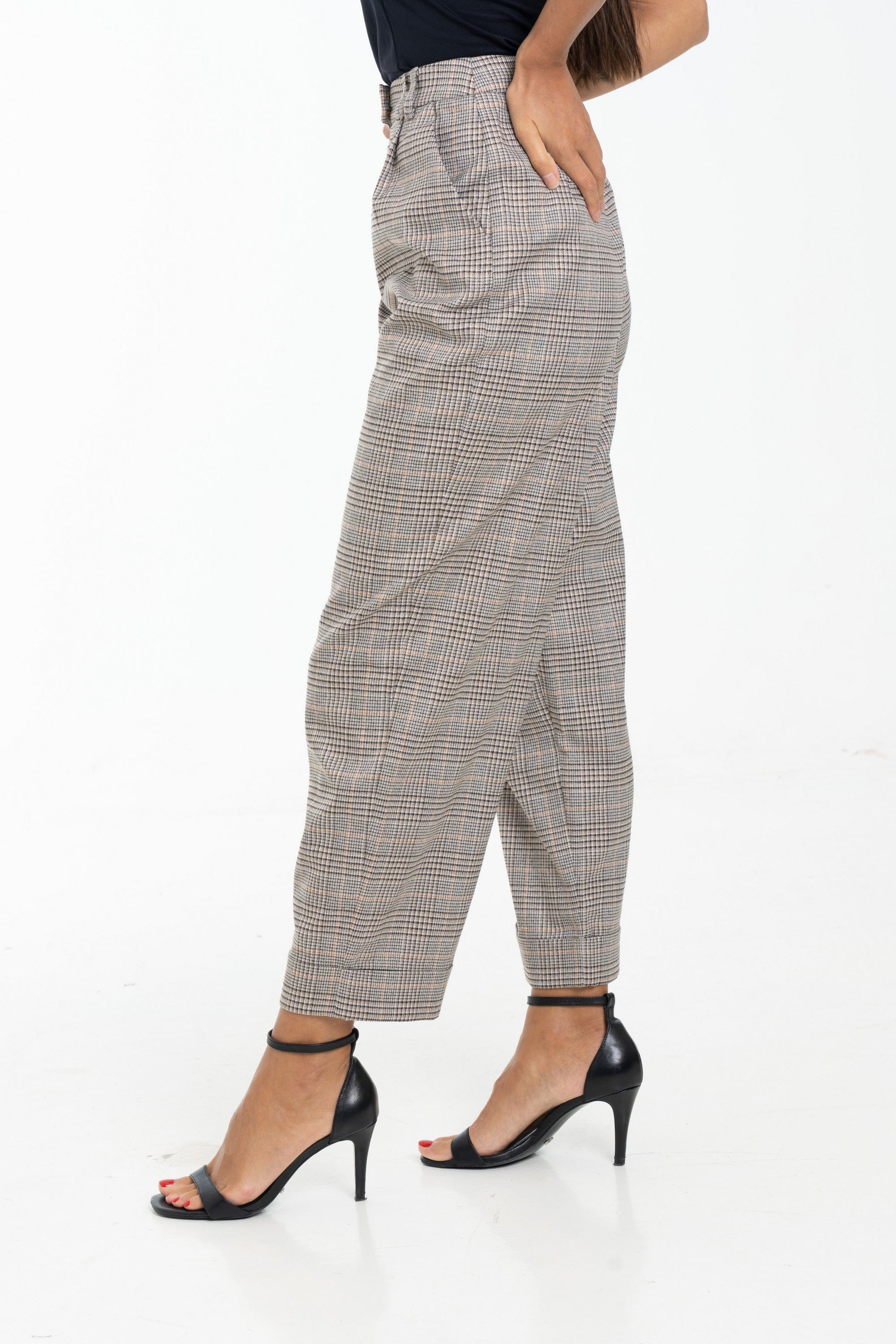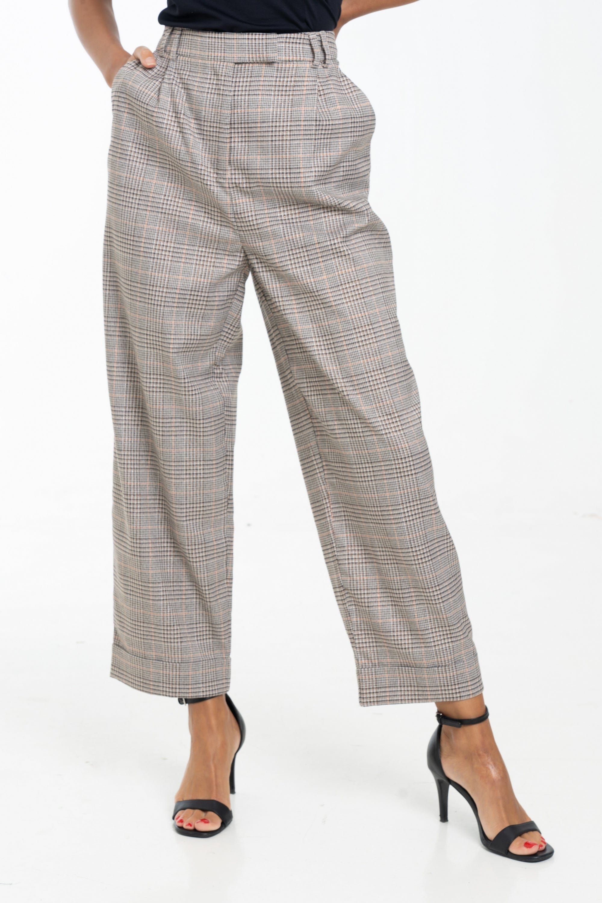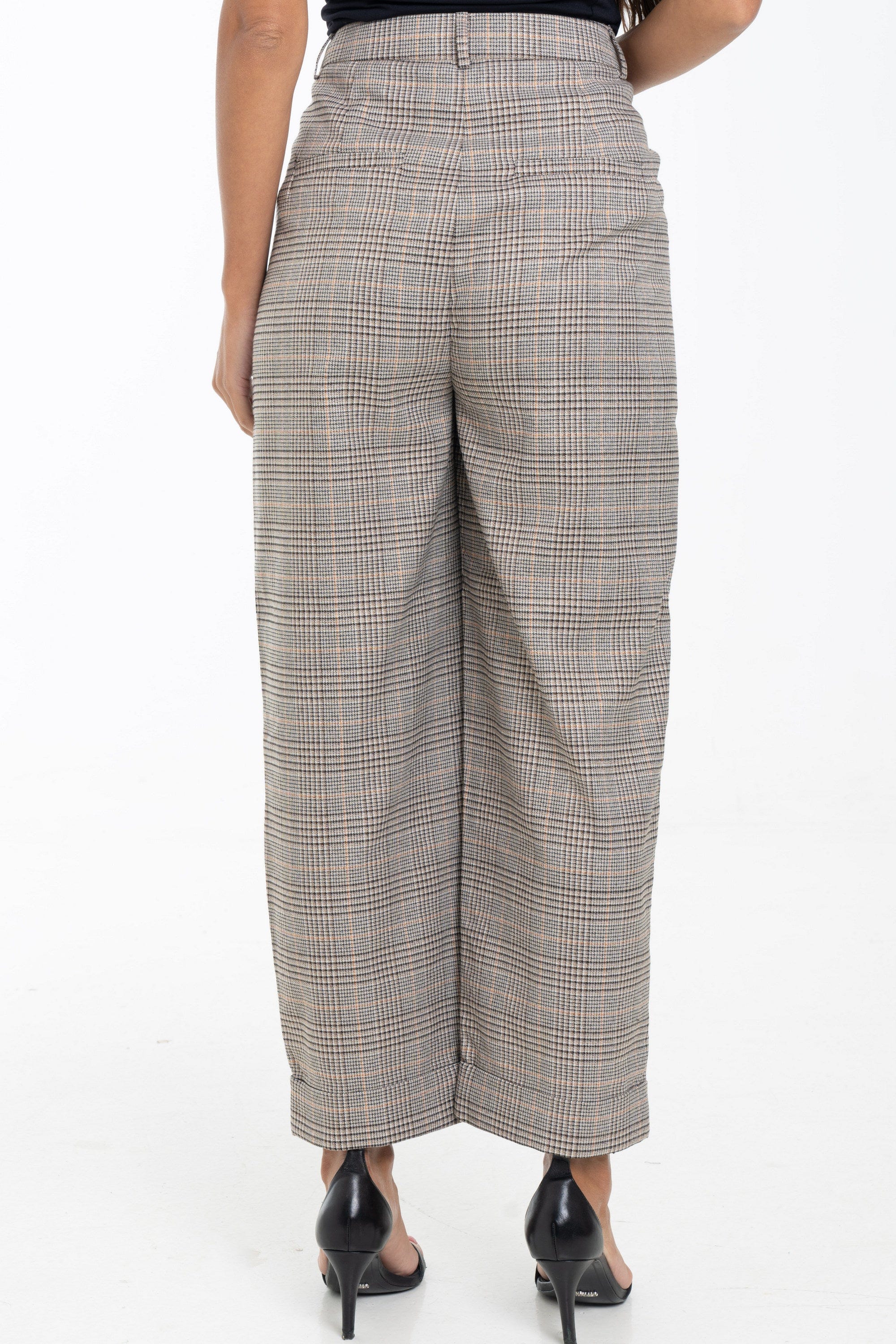 بنطلون كاروهات خصر مرتفع واسع نسائي