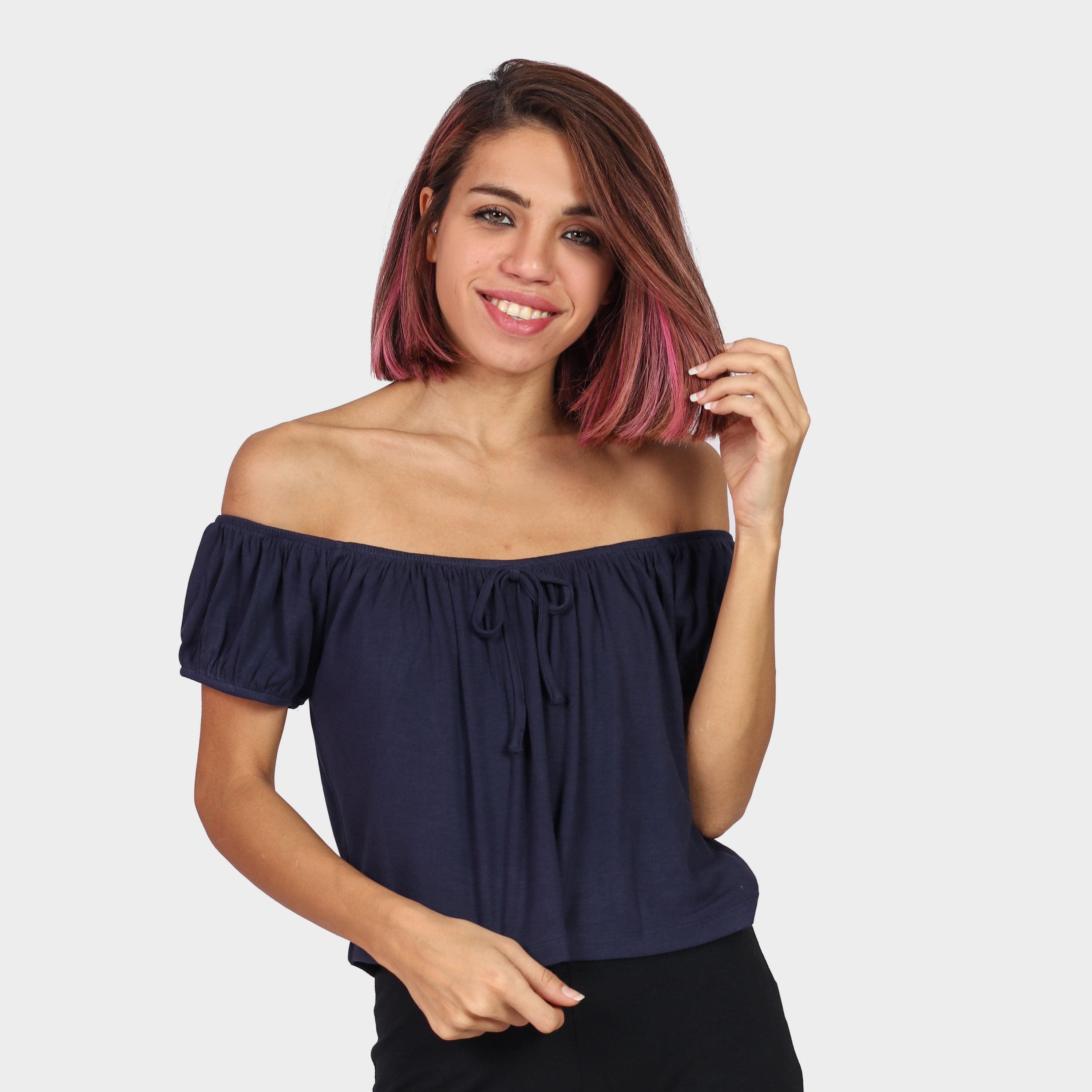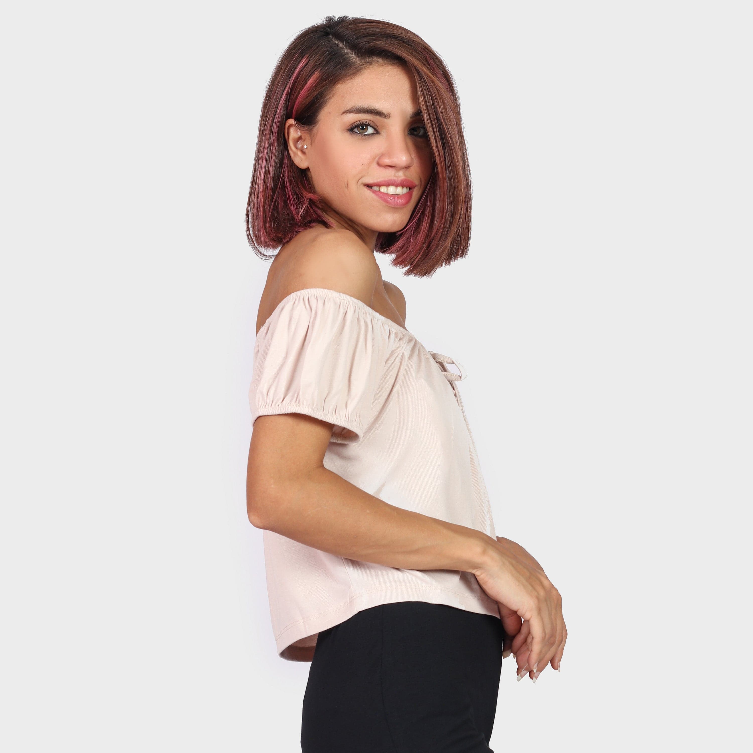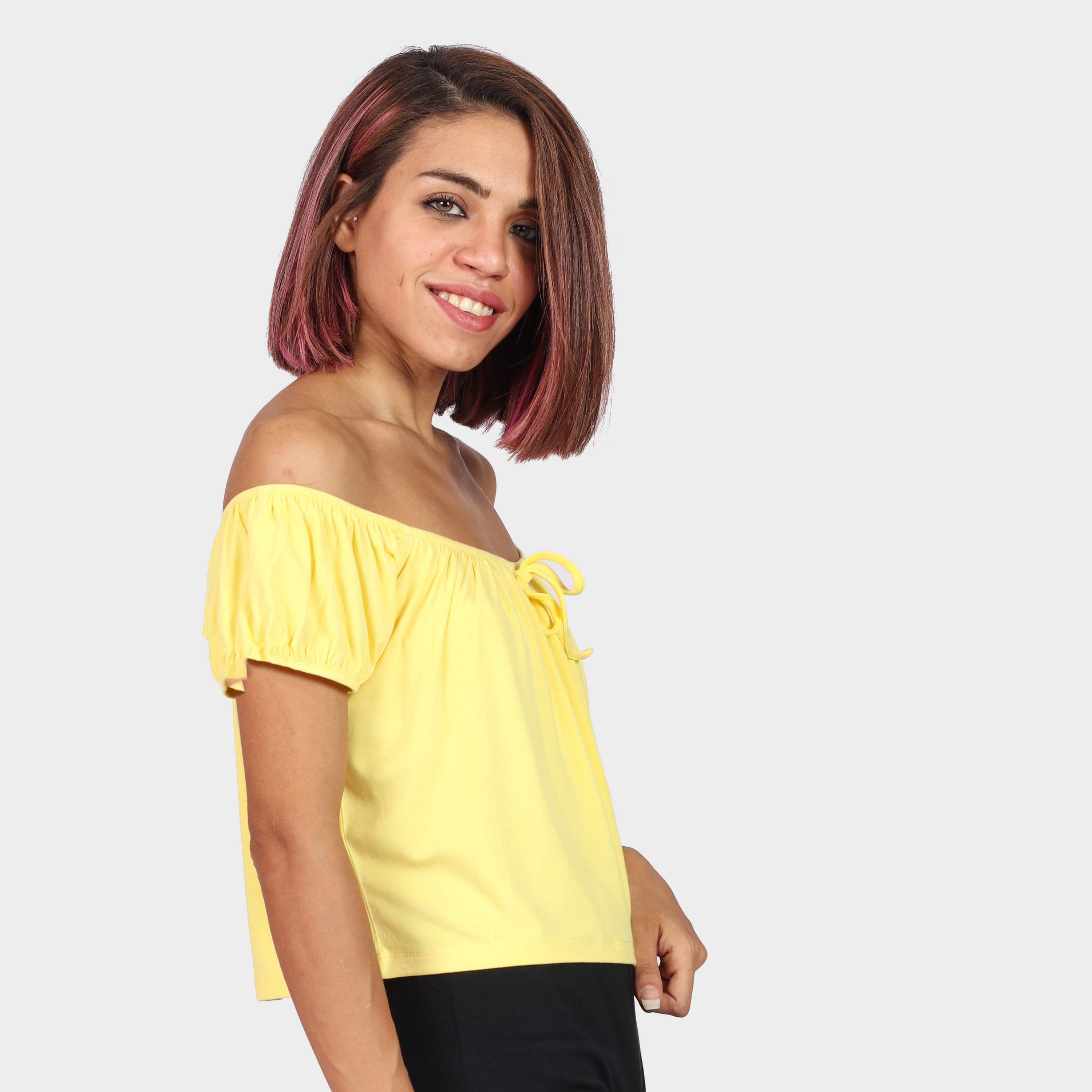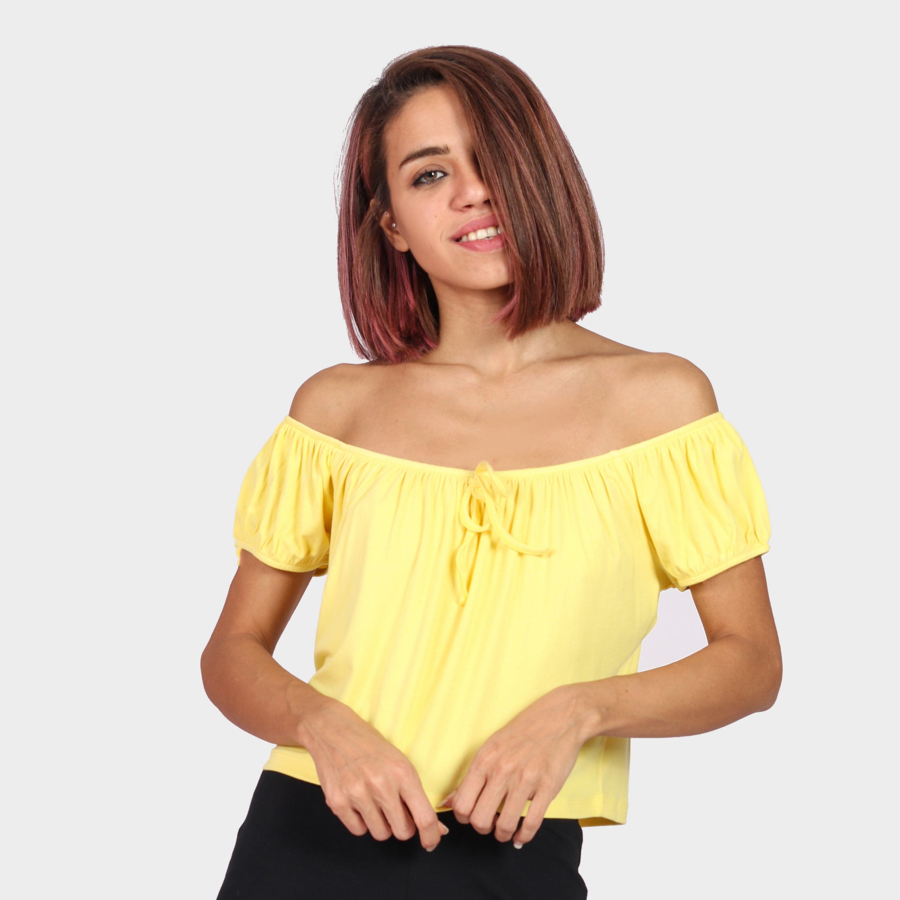 بلوزة بأكمام قصيرة اوف شولدر سادة