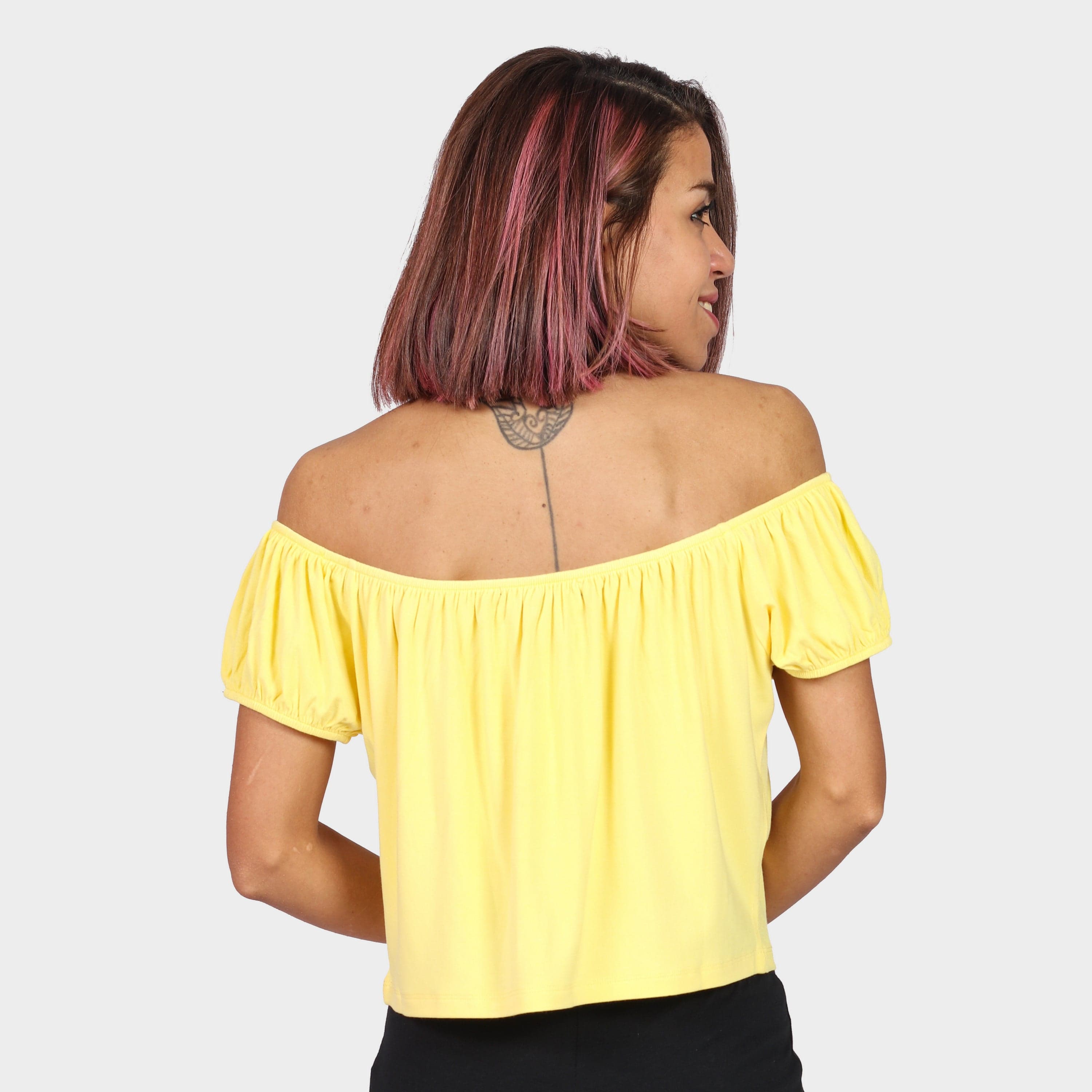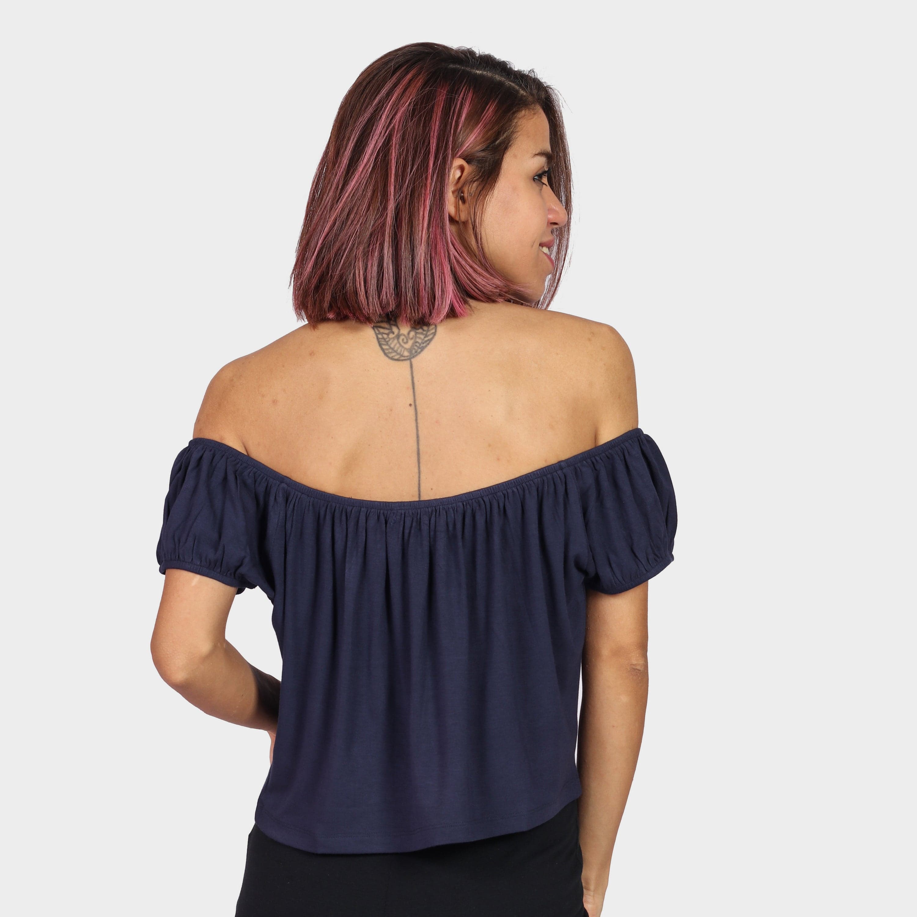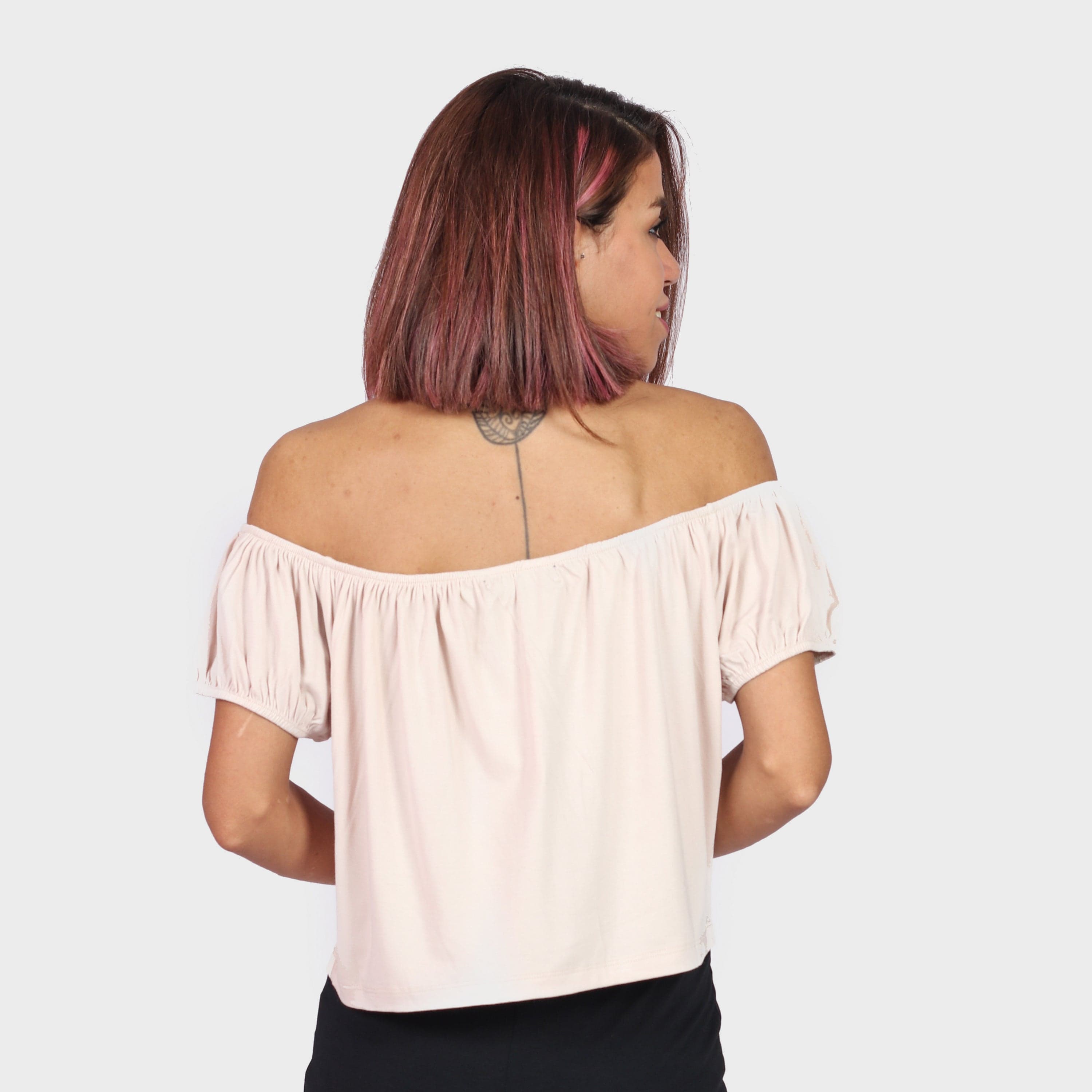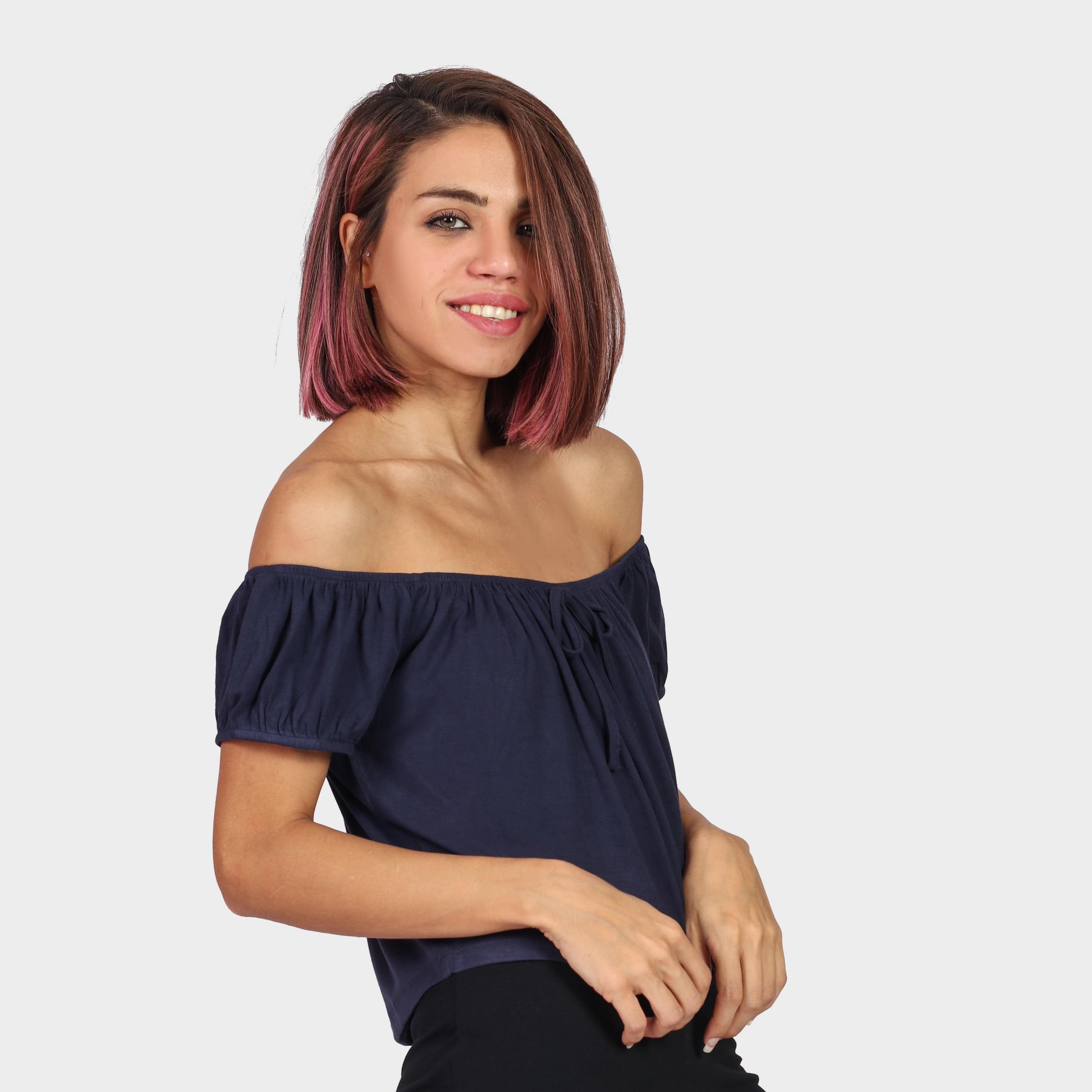 بلوزة بأكمام قصيرة اوف شولدر سادة