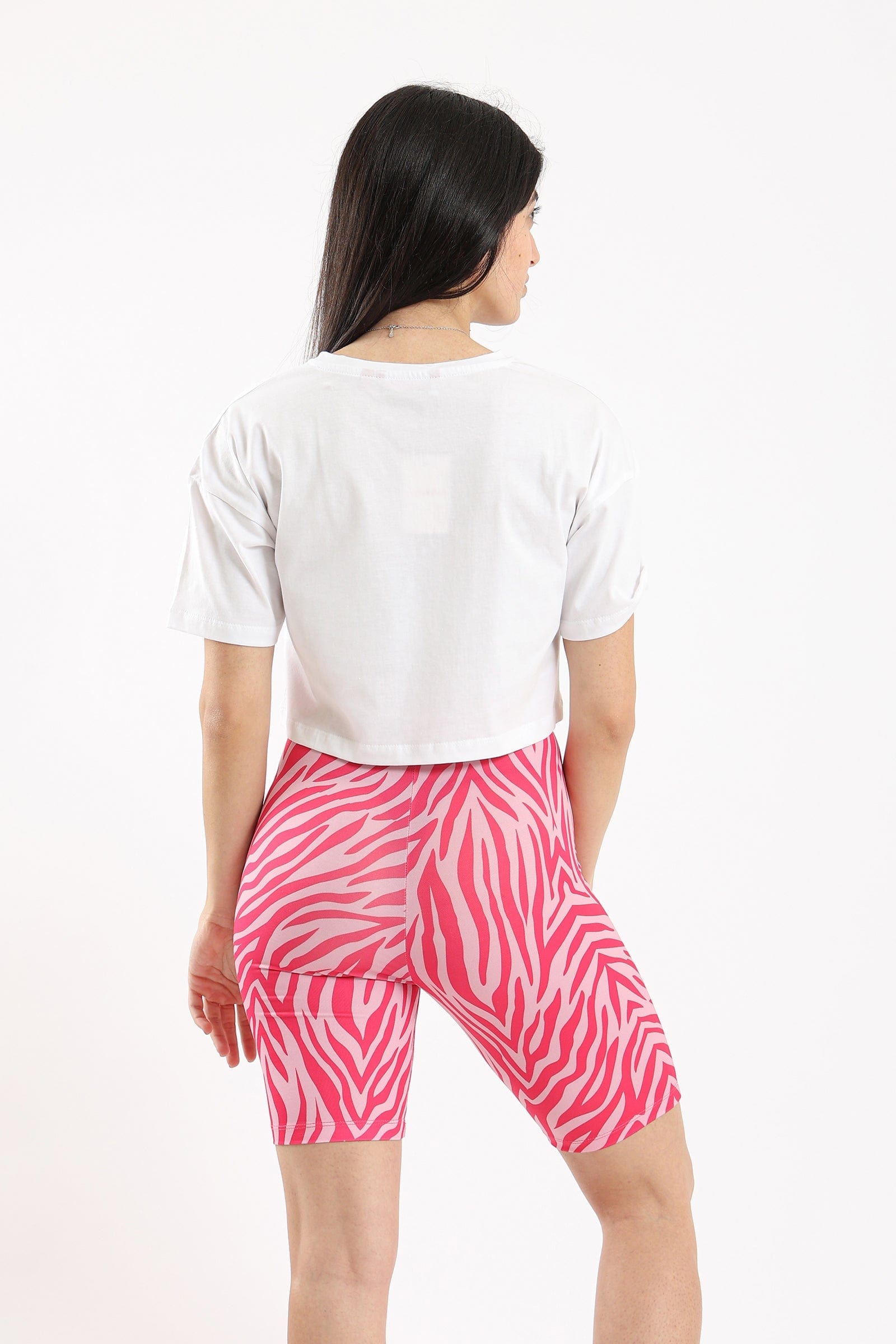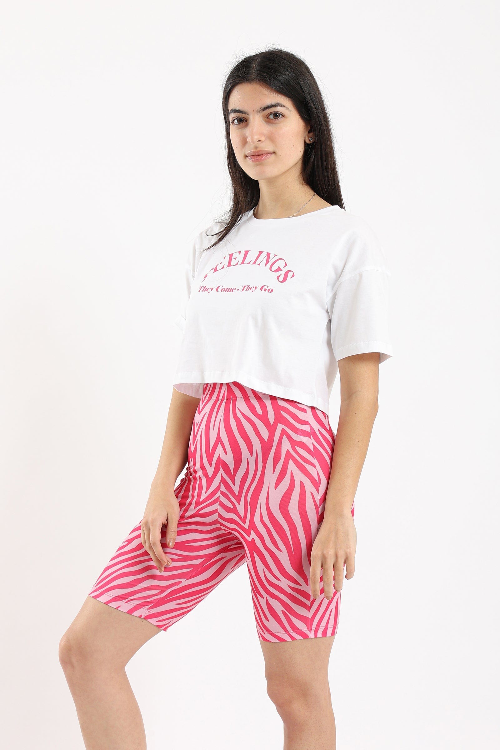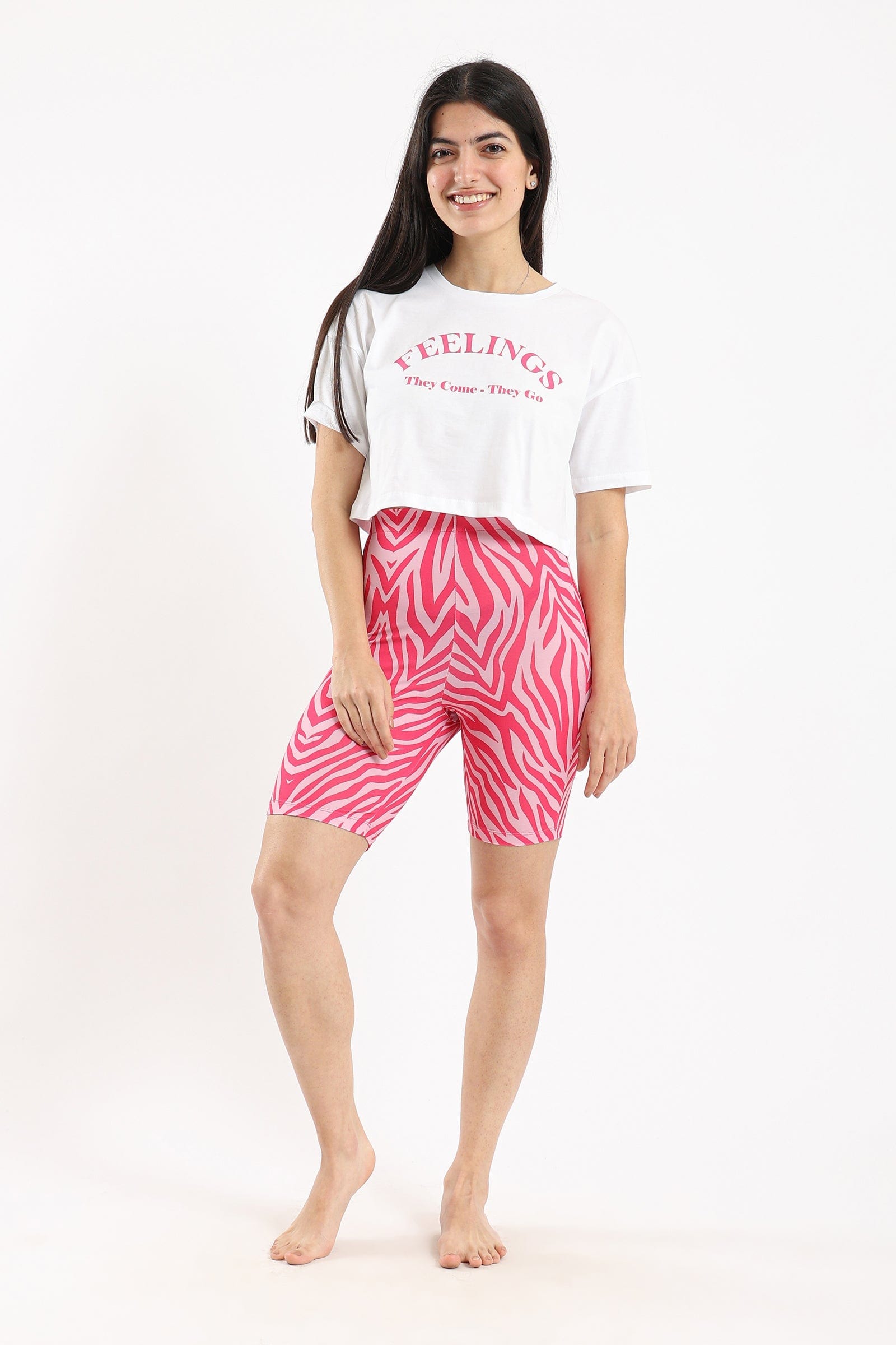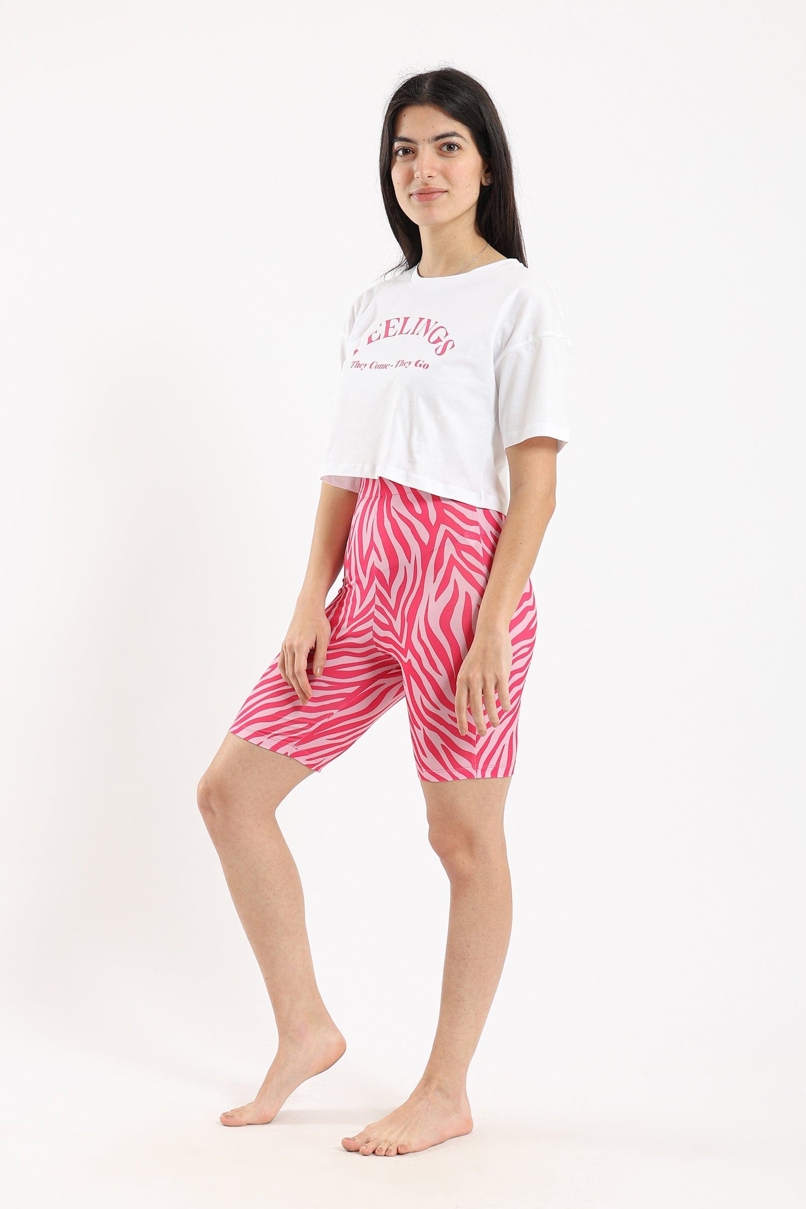 طقم بيجامة شورت منقوش وتيشيرت بطبعة