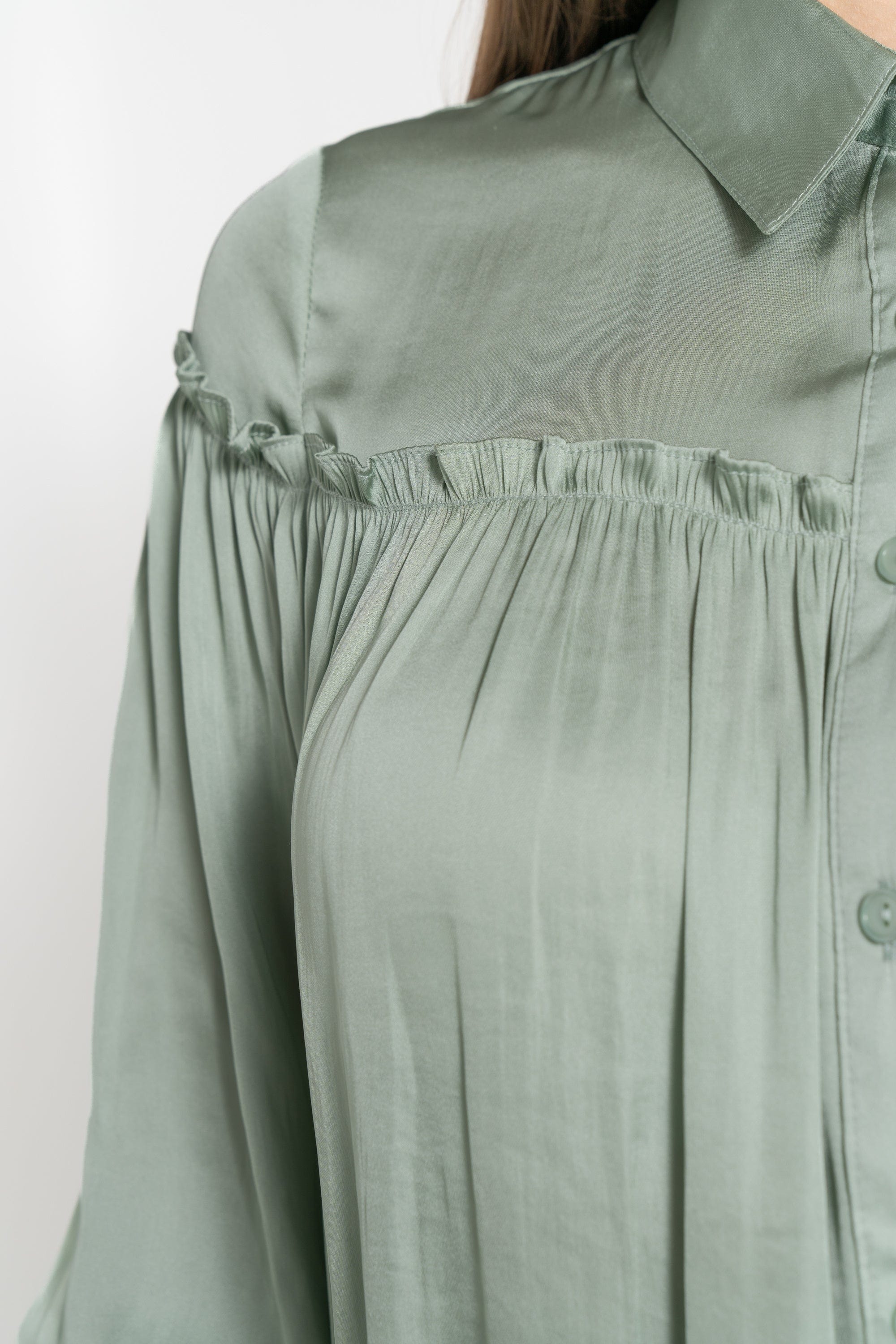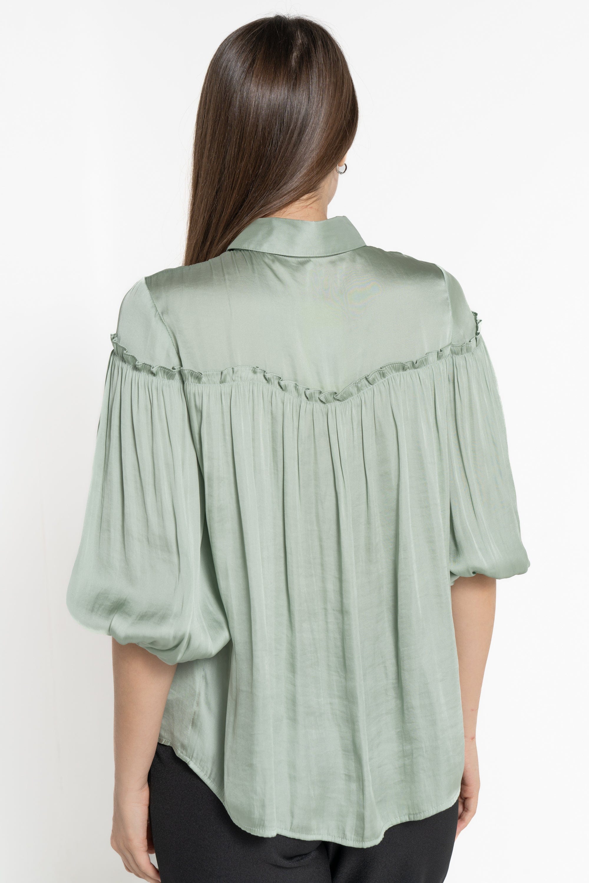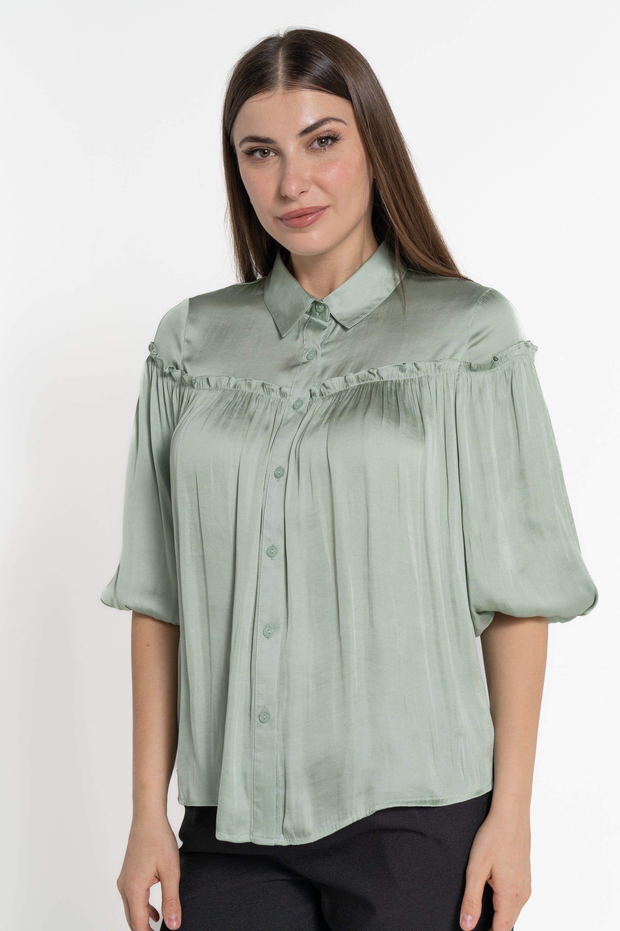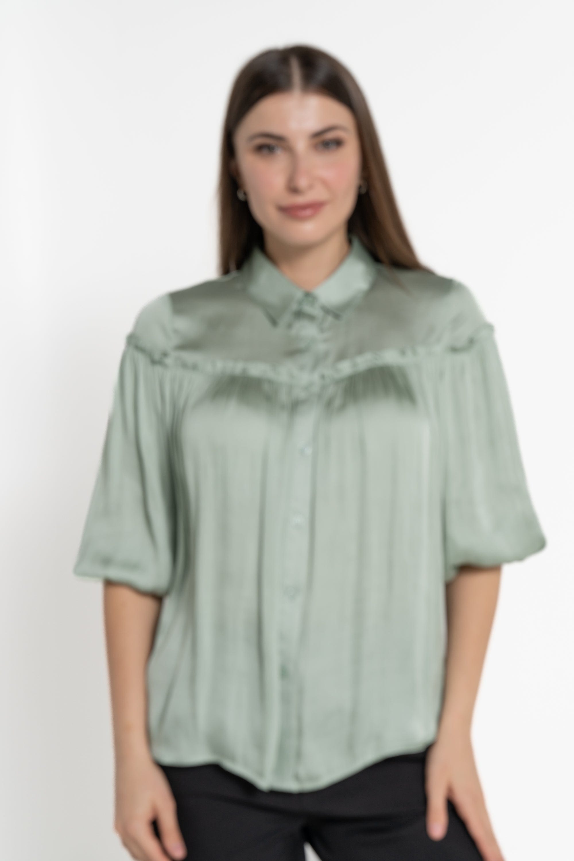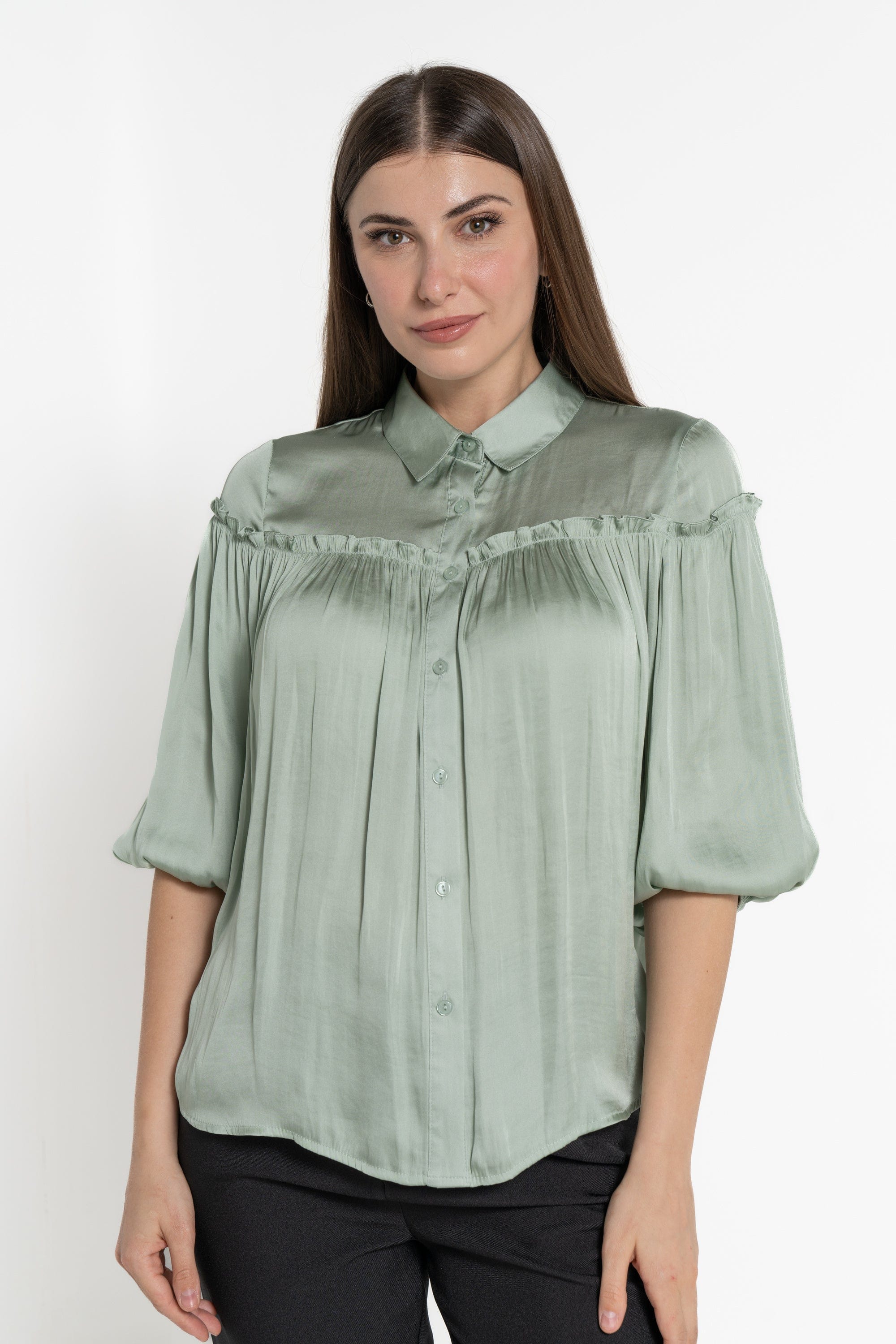 قميص بأكمام 3/4 سادة بأزرار أمامية