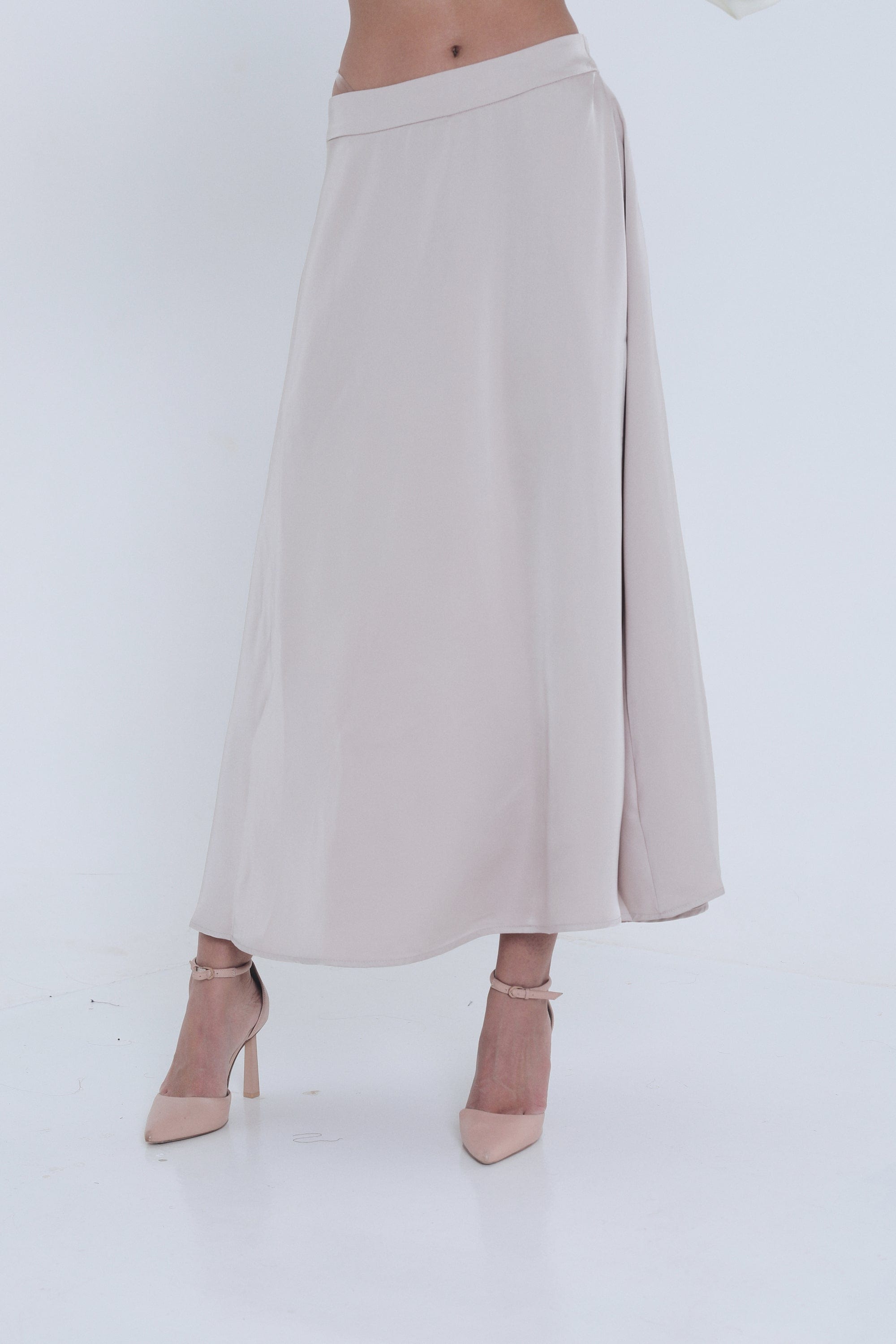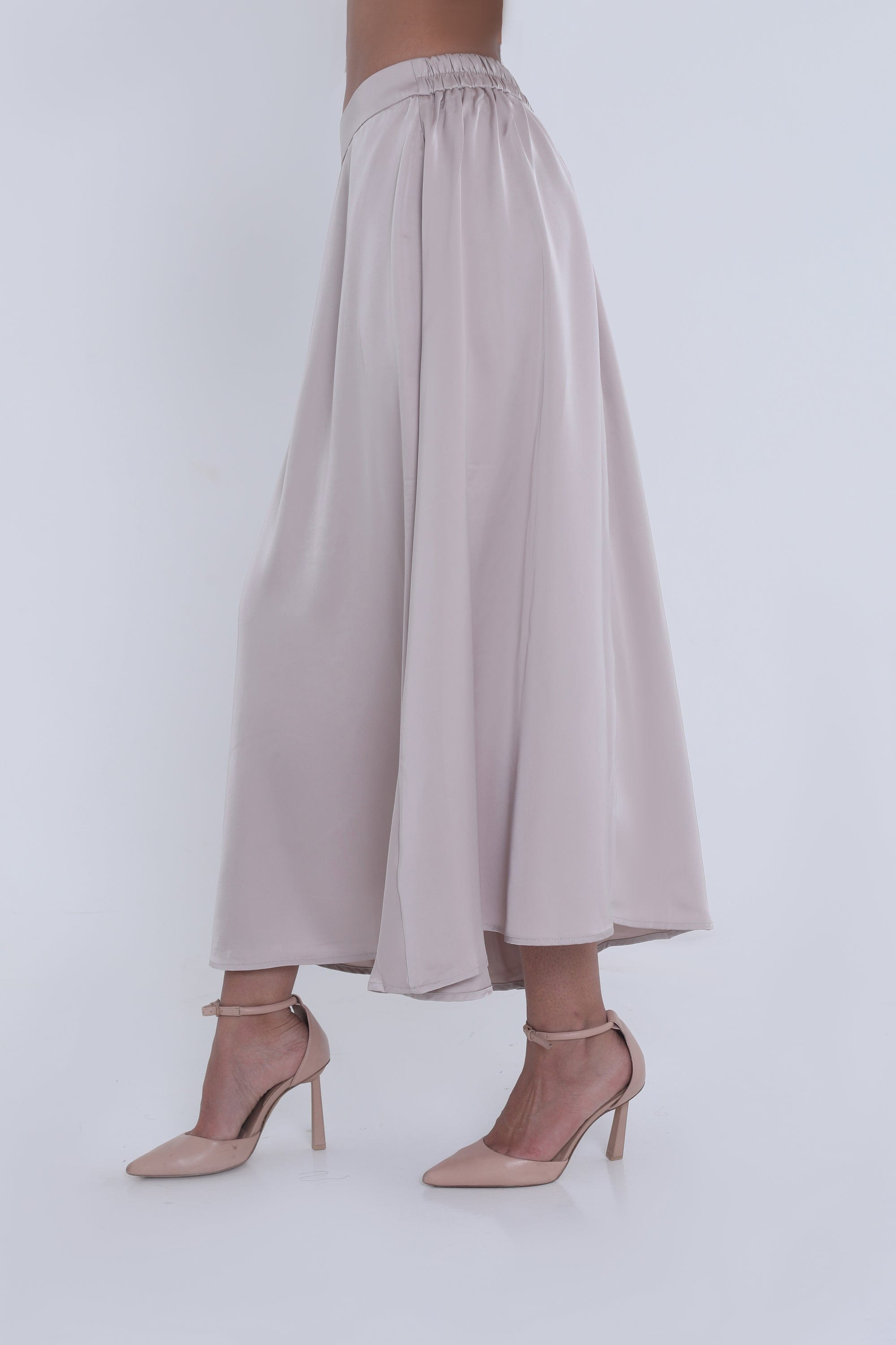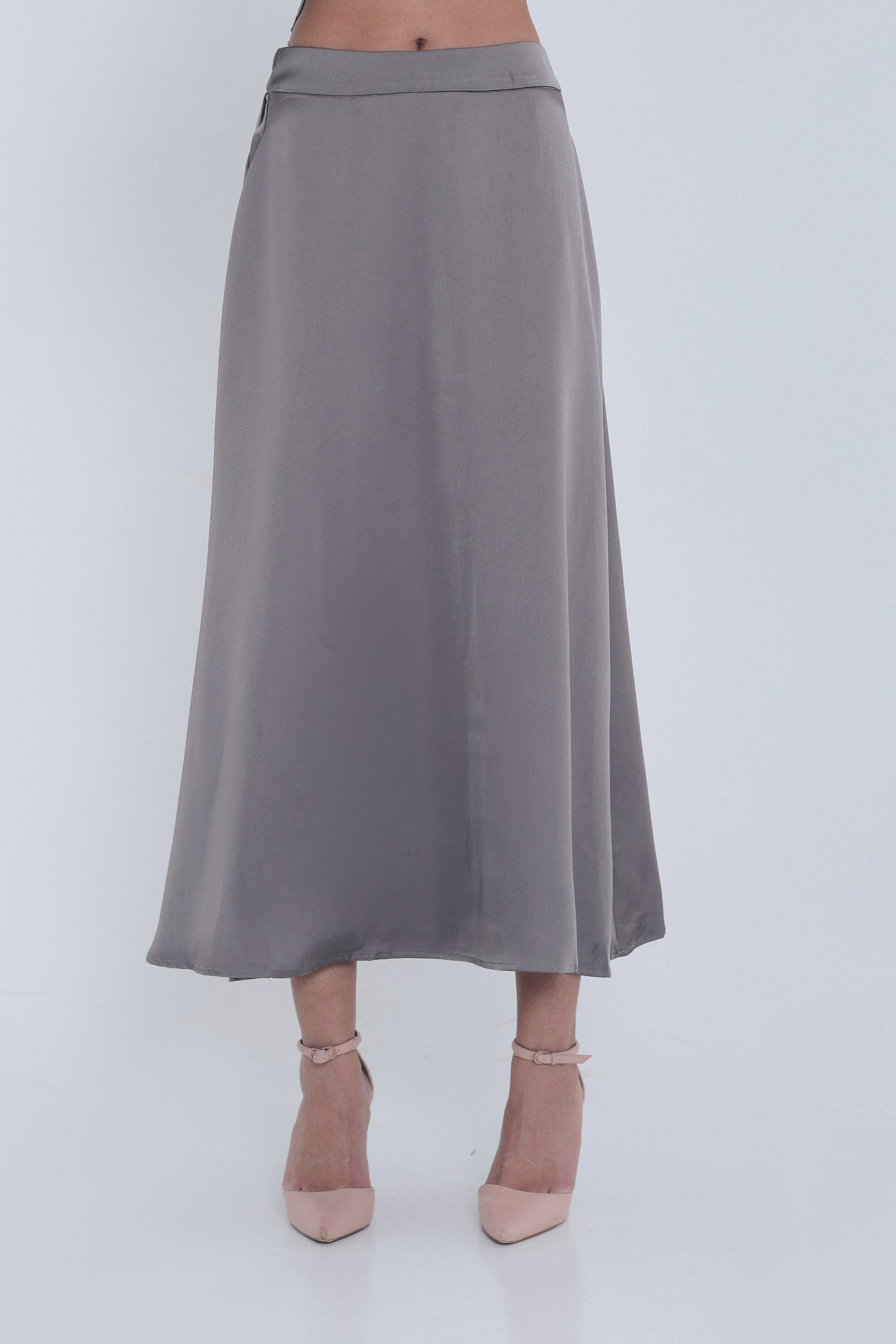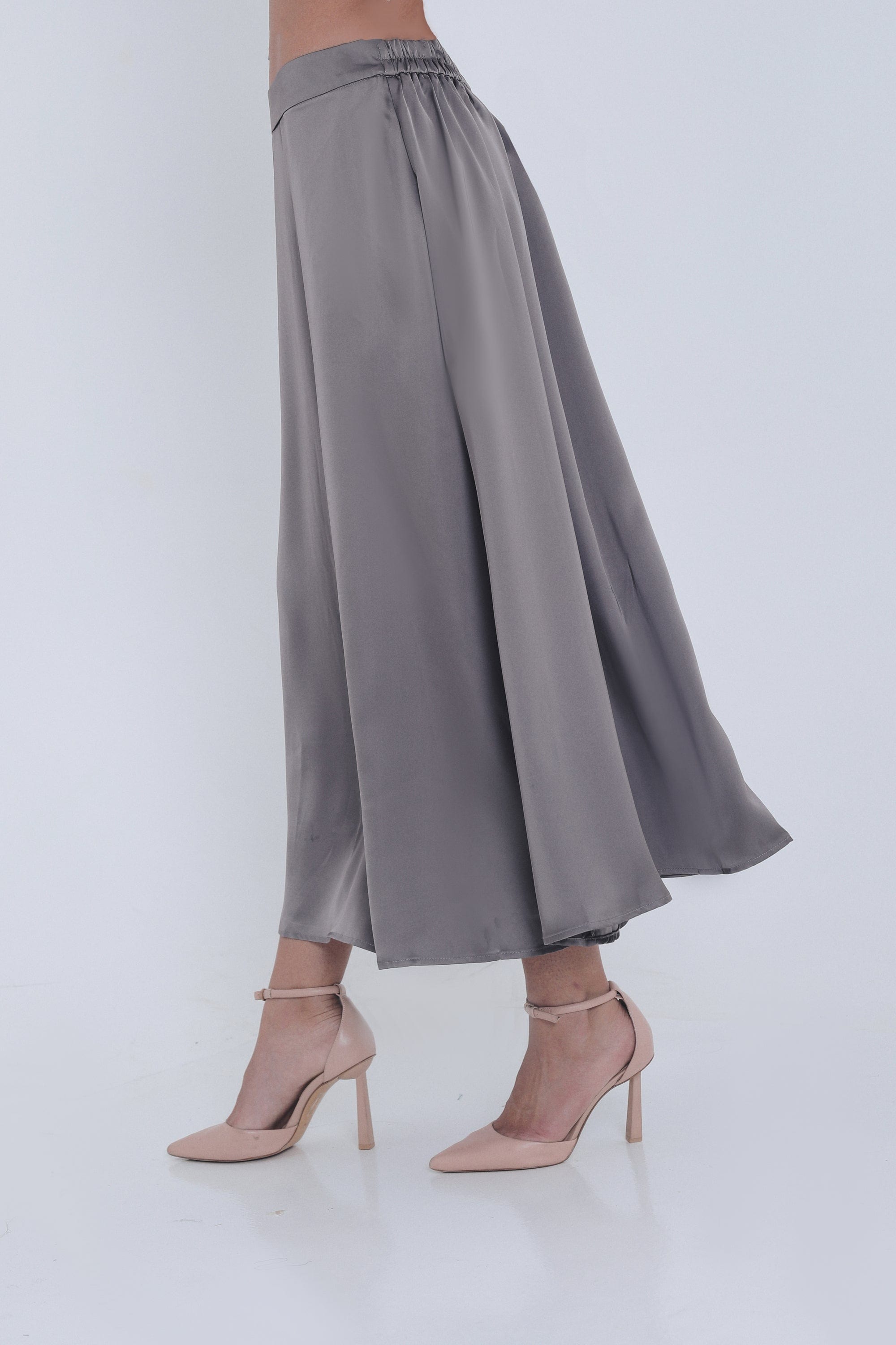 تنورة ميدي ناعمة واسعة بمطاط في الخلف
