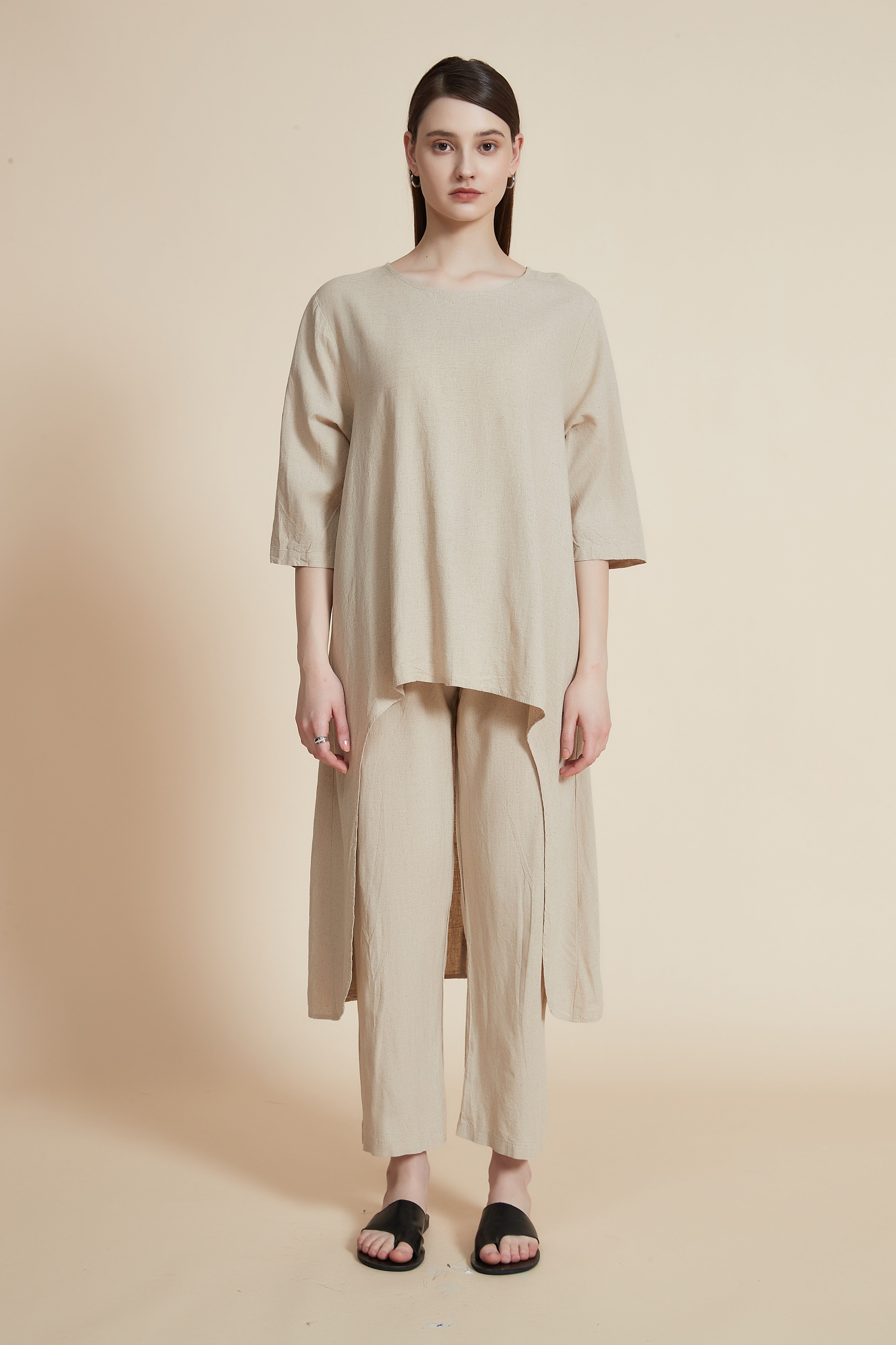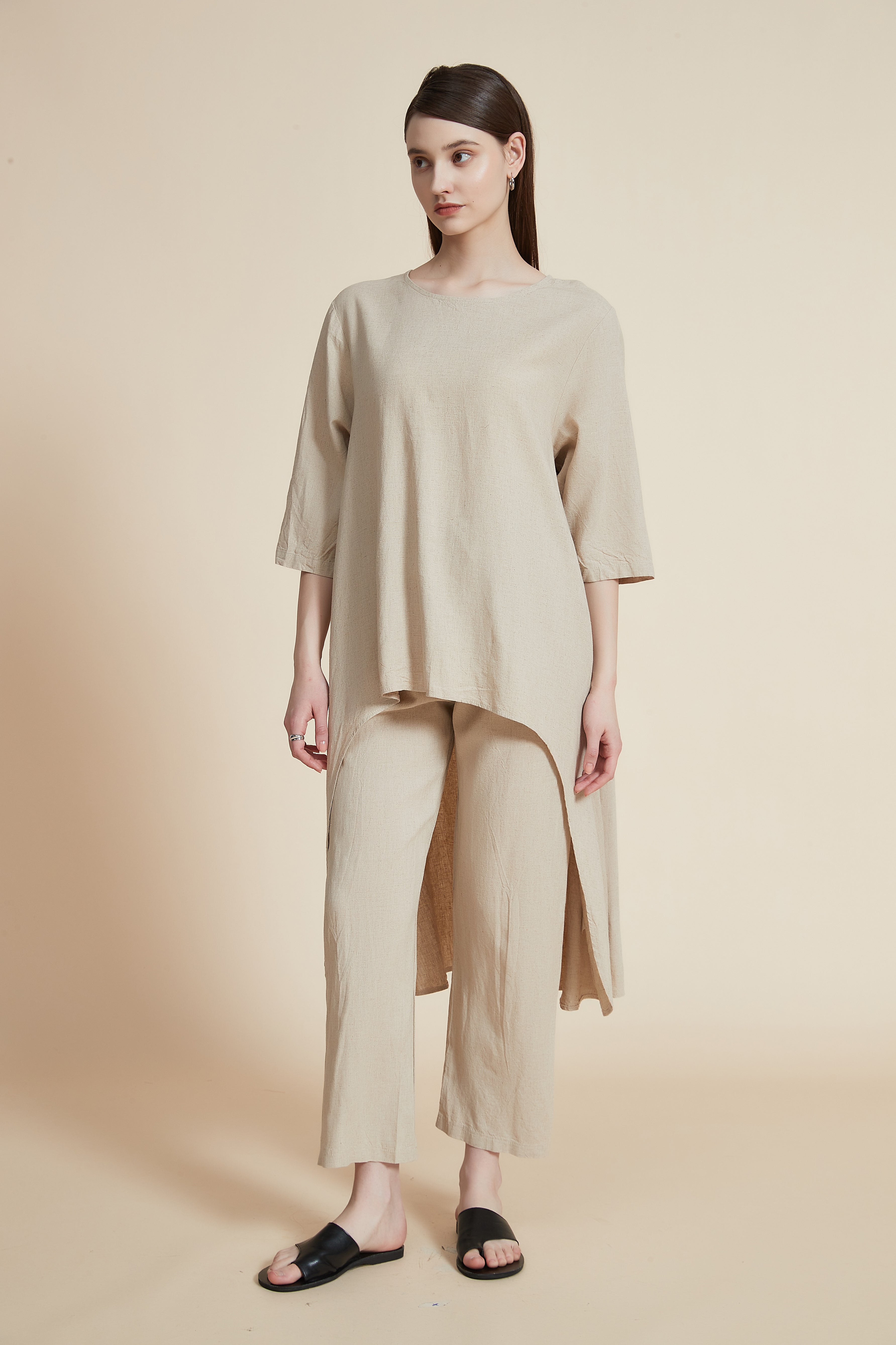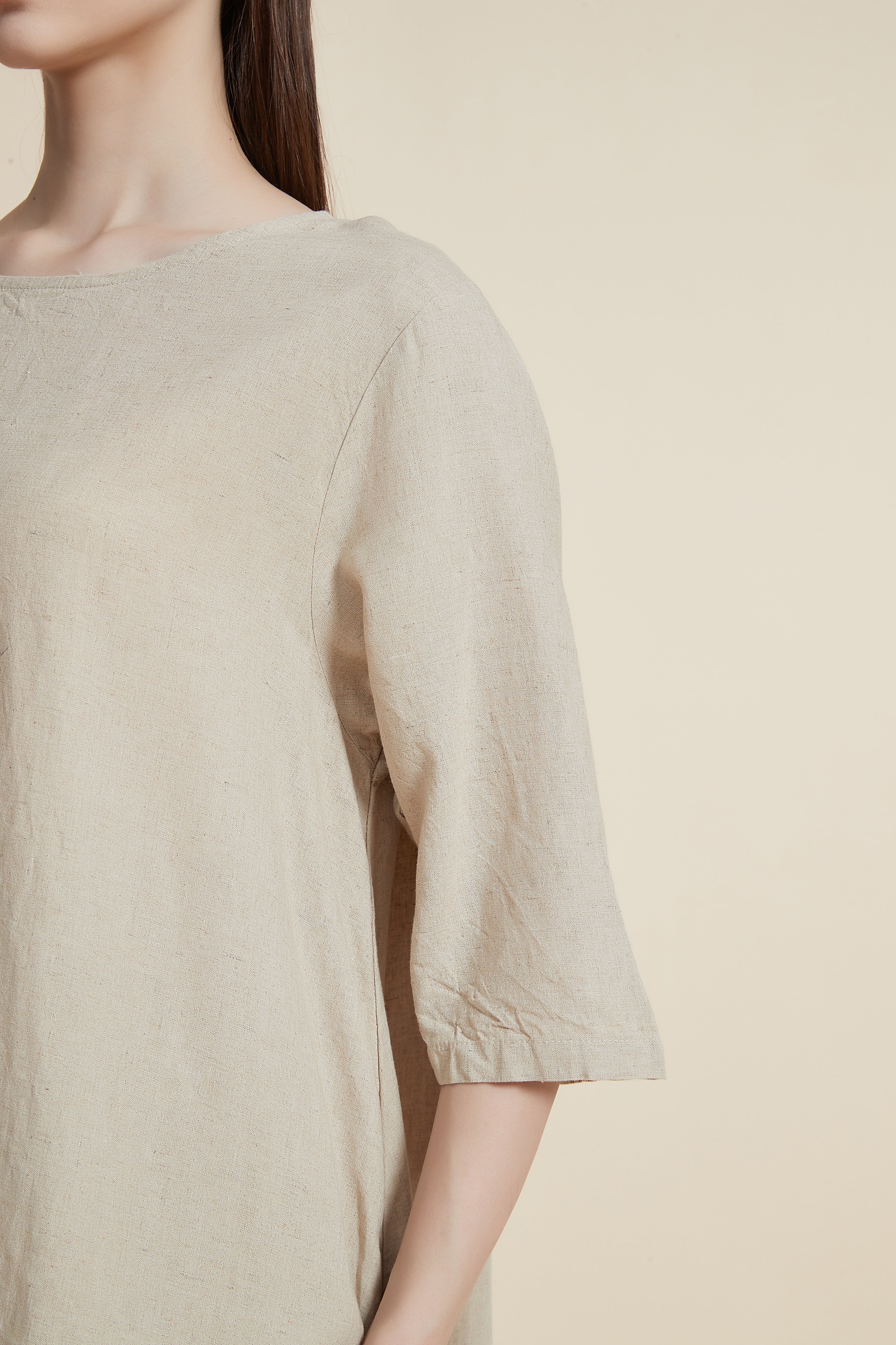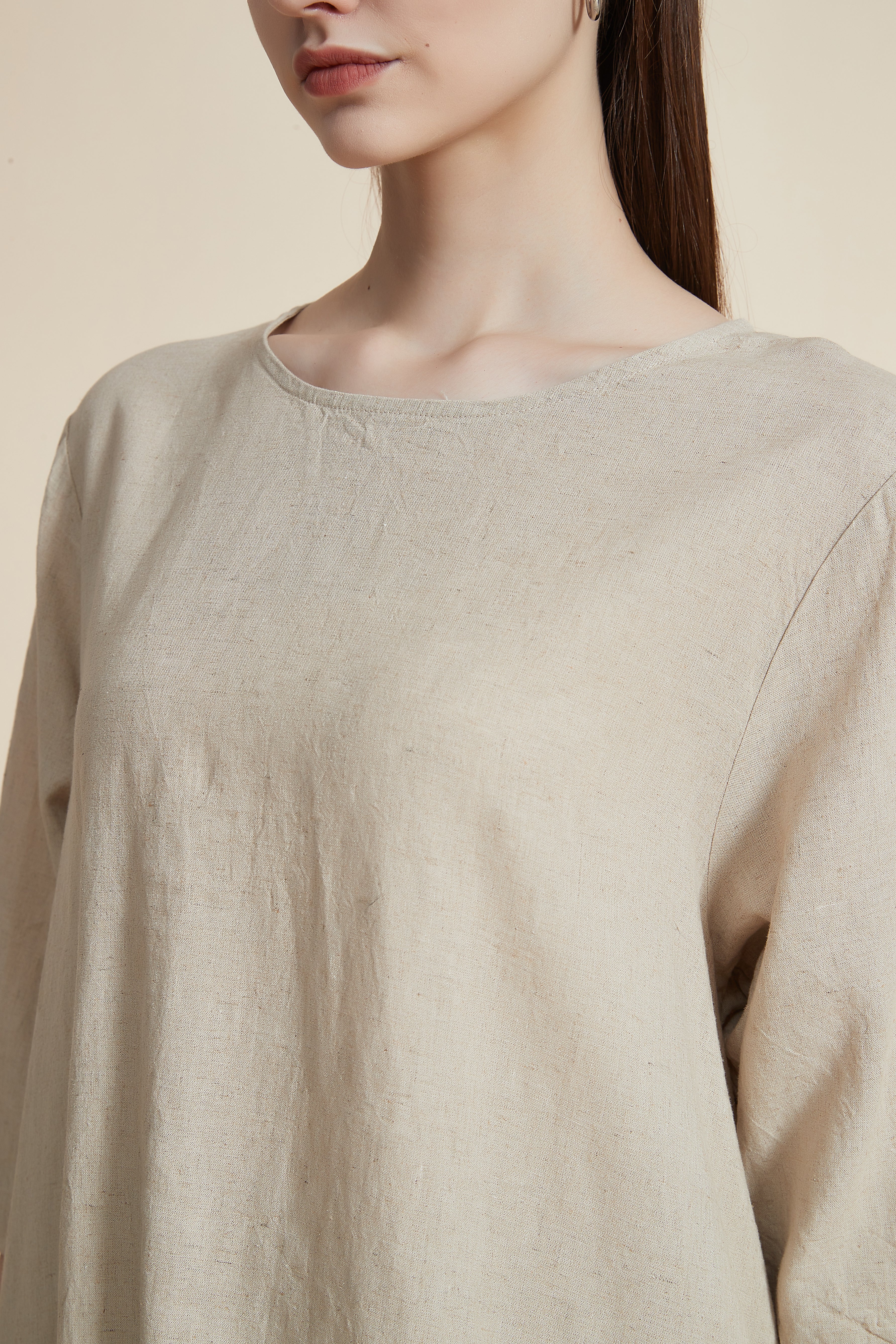 بلوزة نص كم طويلة من الخلف فتحة رقبة دائرية