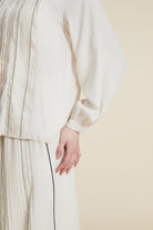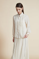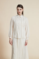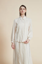 قميص مخطط بتفاصيل مطوية بأكمام طويلة