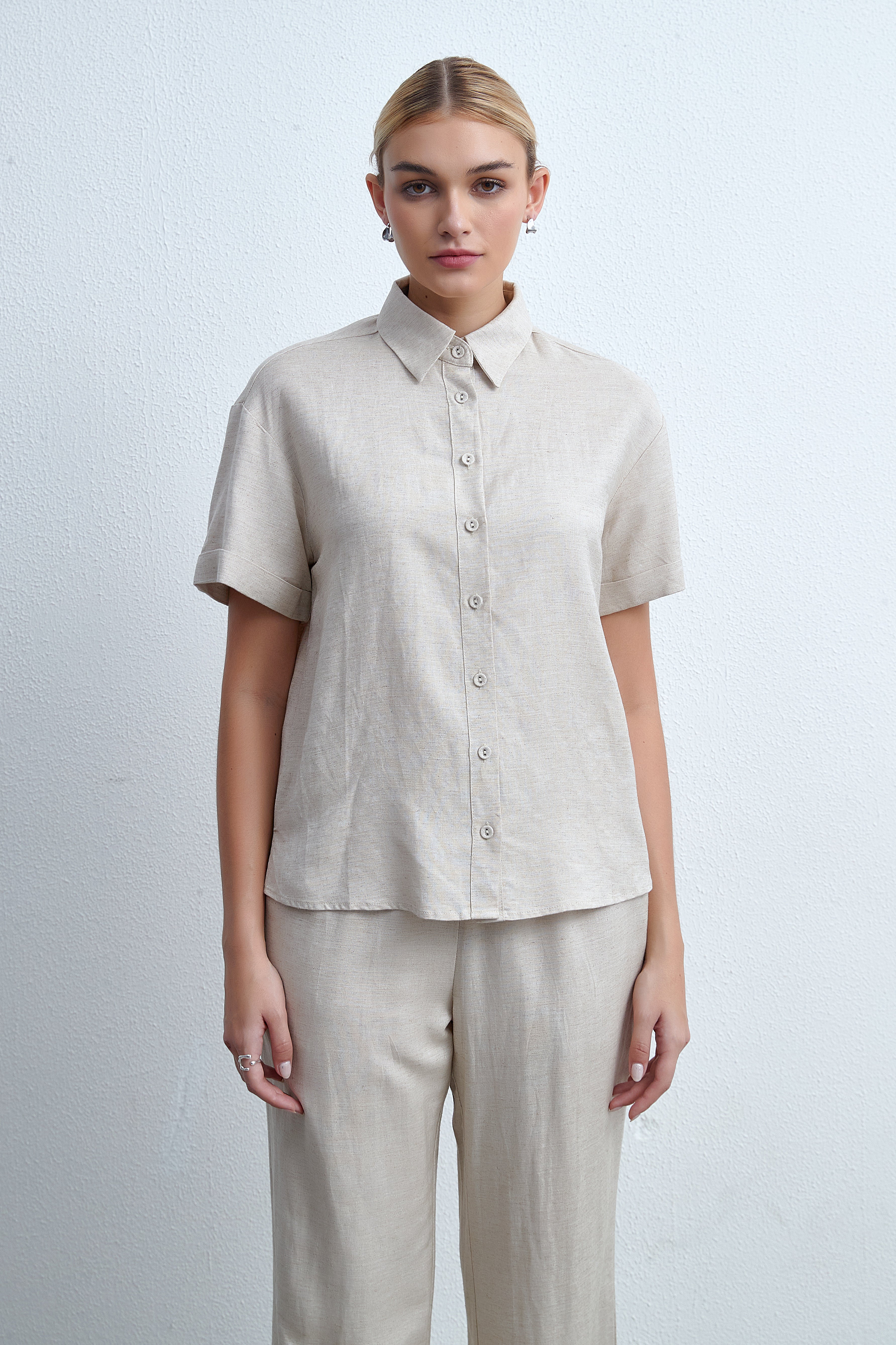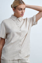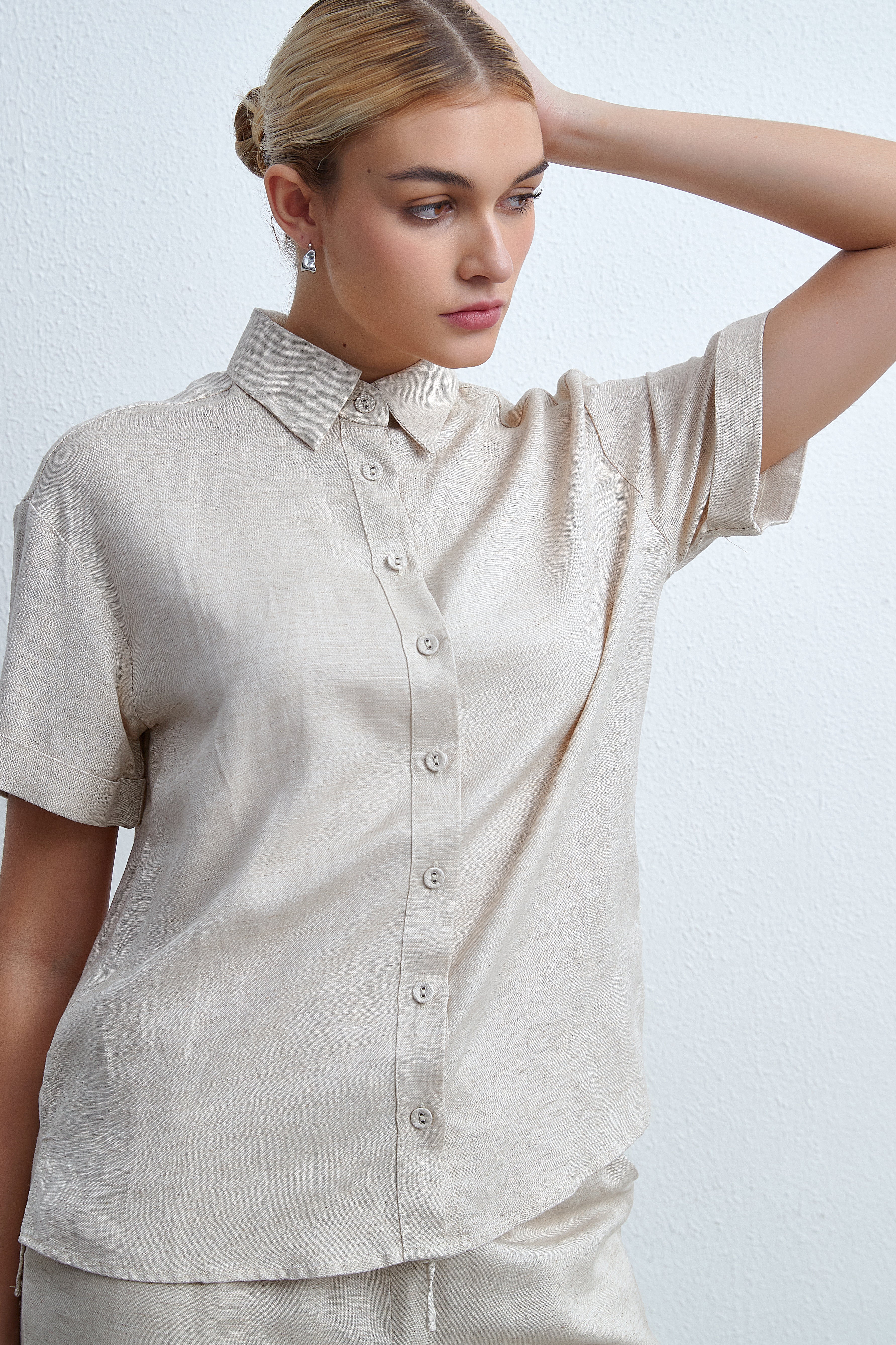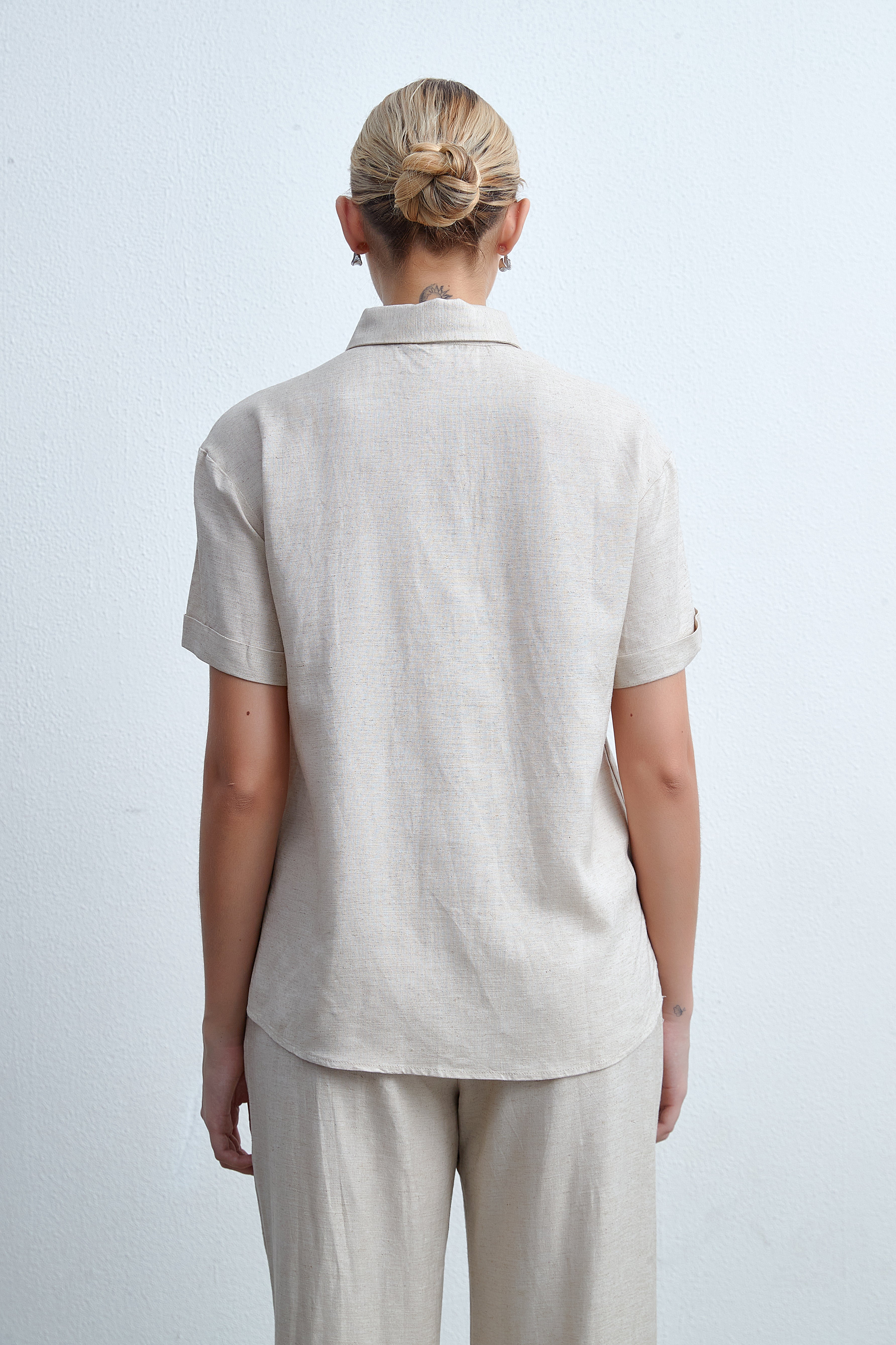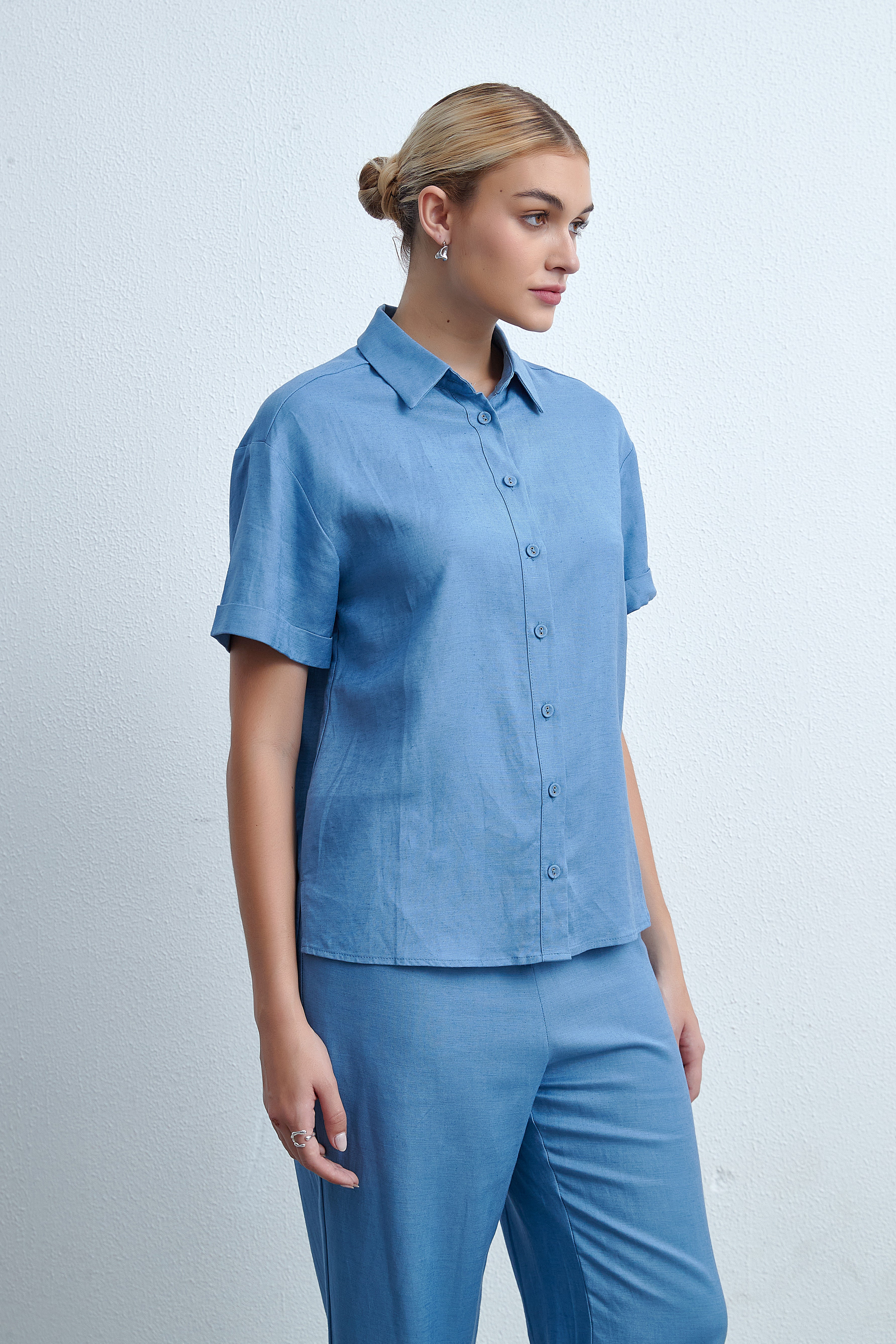 بلوزة سادة بلوزة بطول الخصر بكم قصير