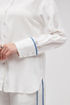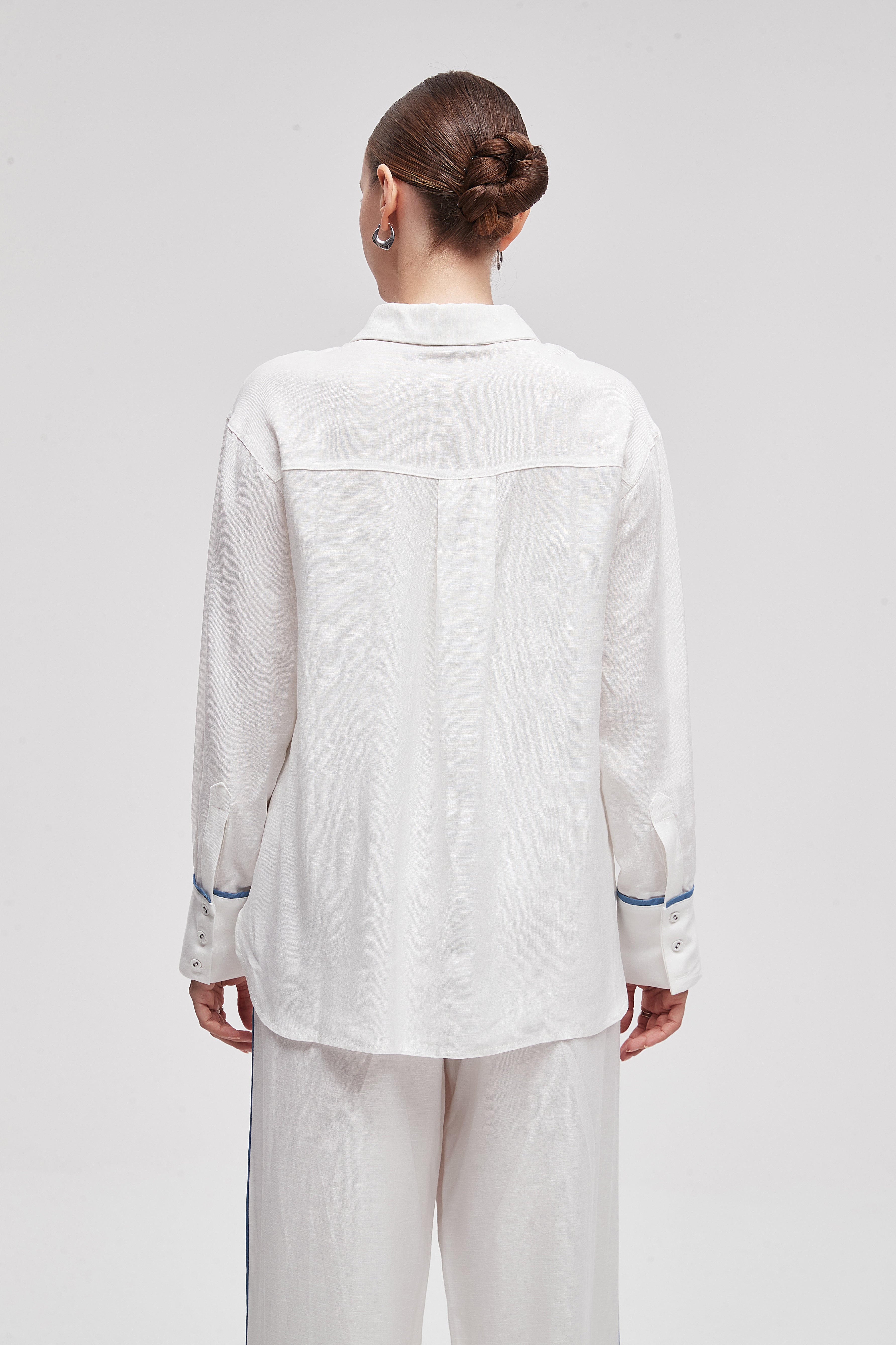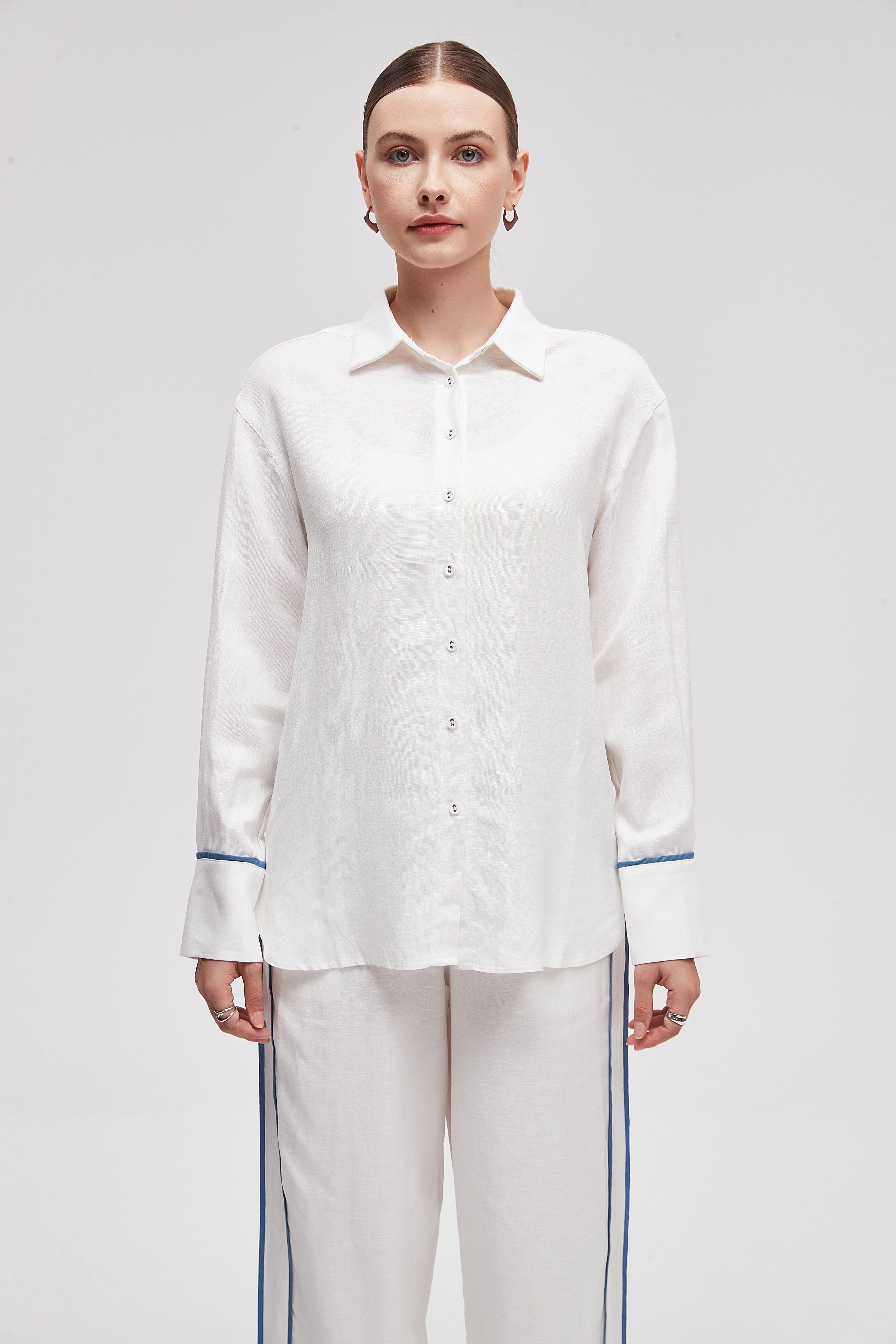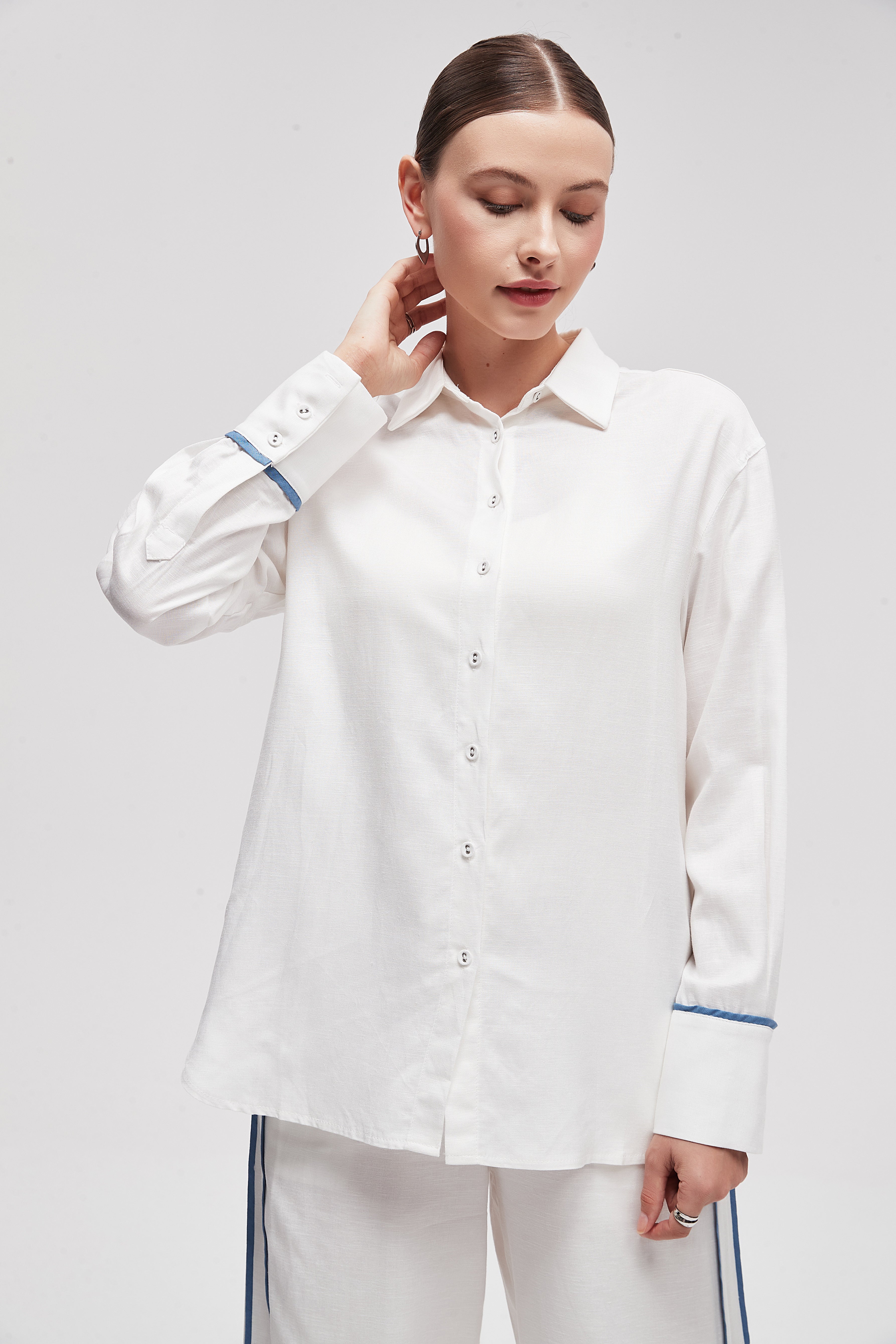 بلوزة بكم طويل وياقة قميص مع أزرار أمامية