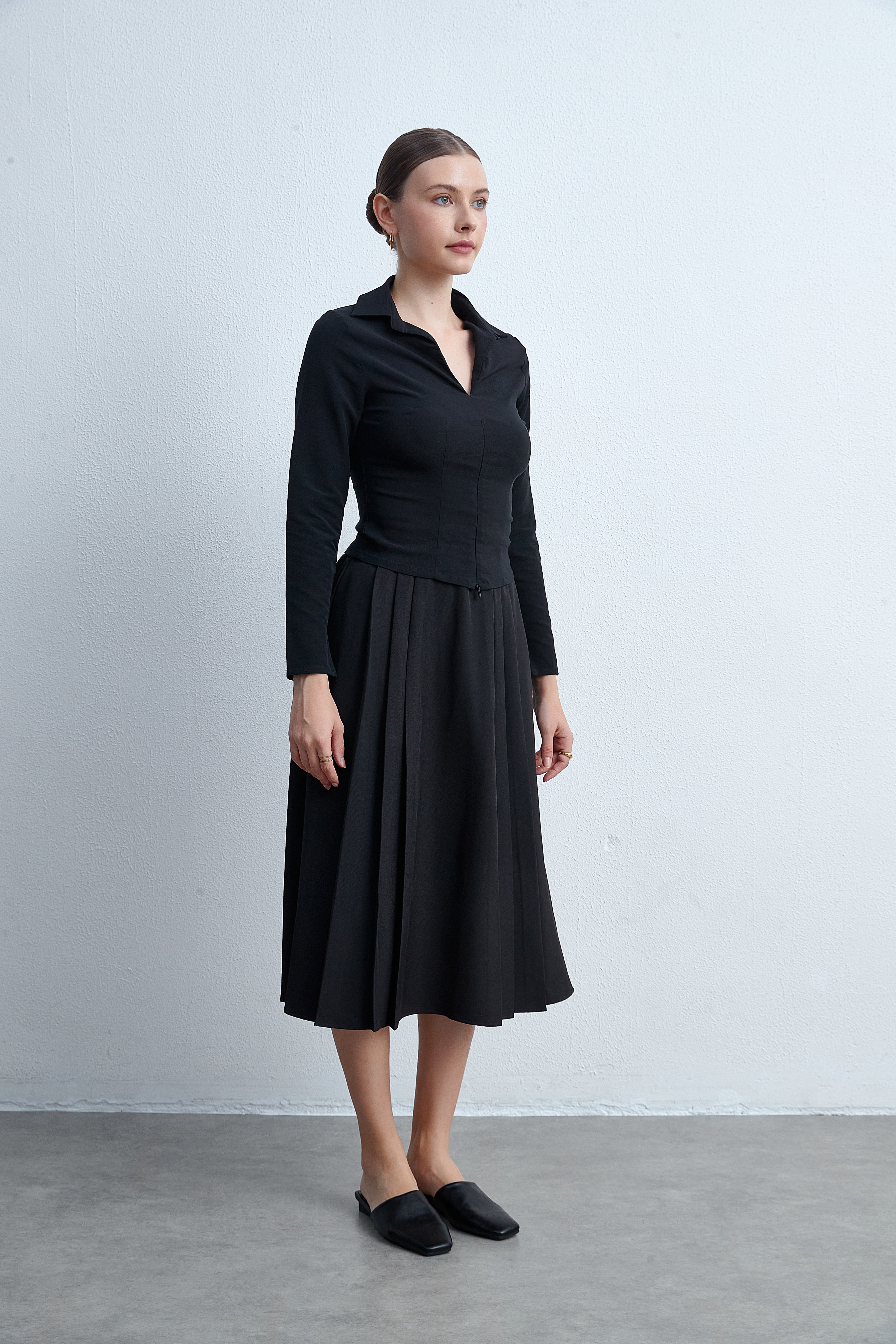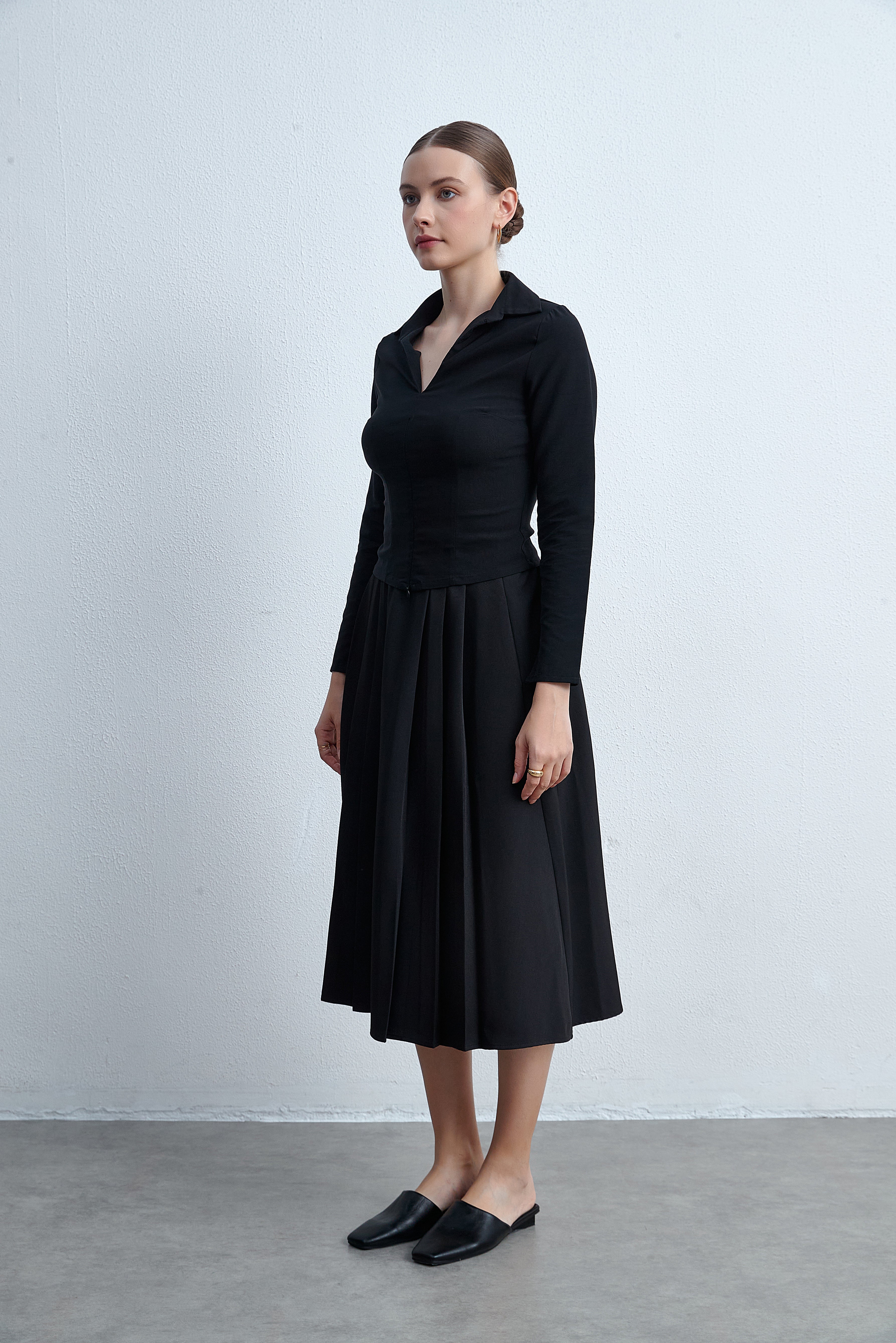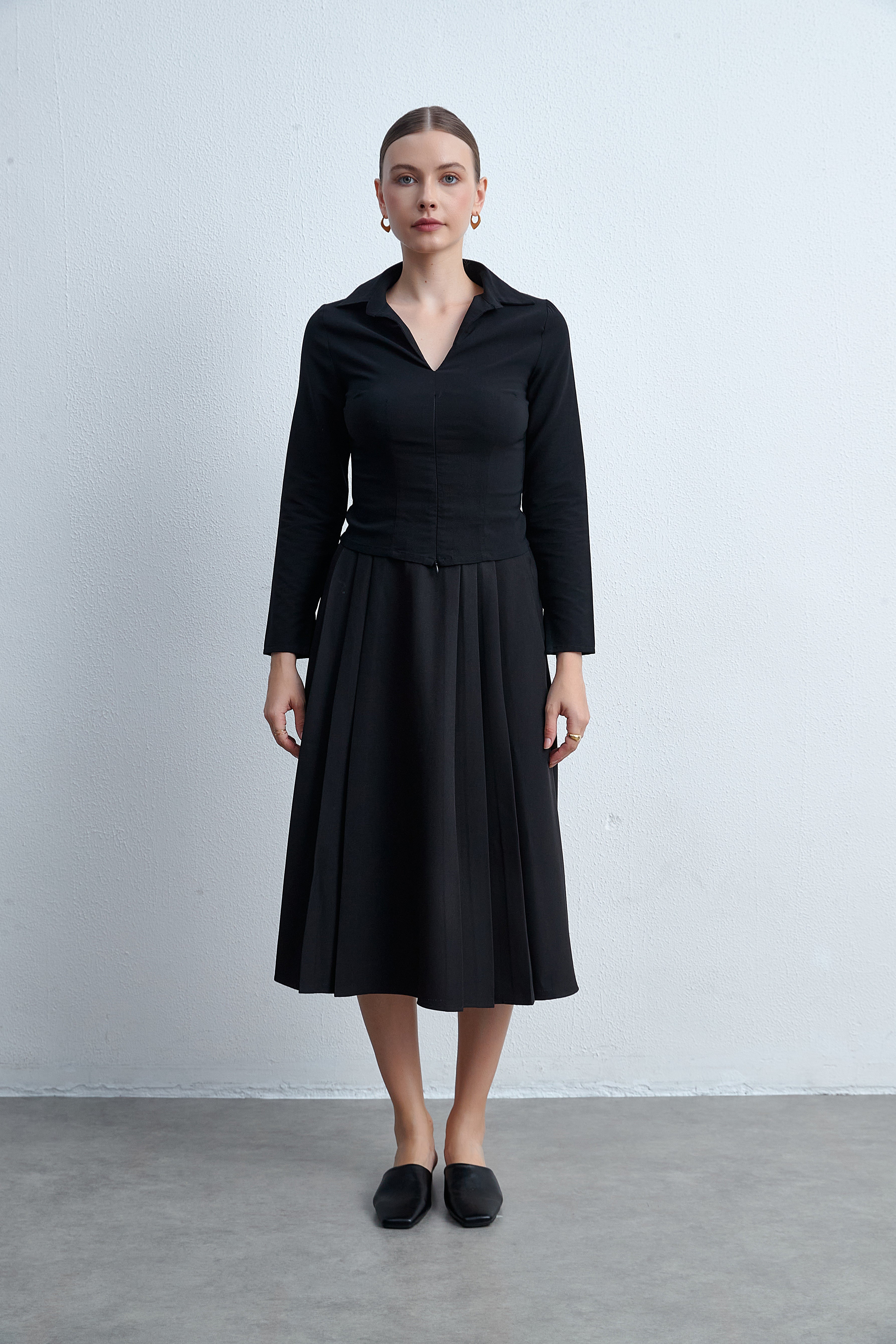 تنورة ميدي بقصة واسعة سادة