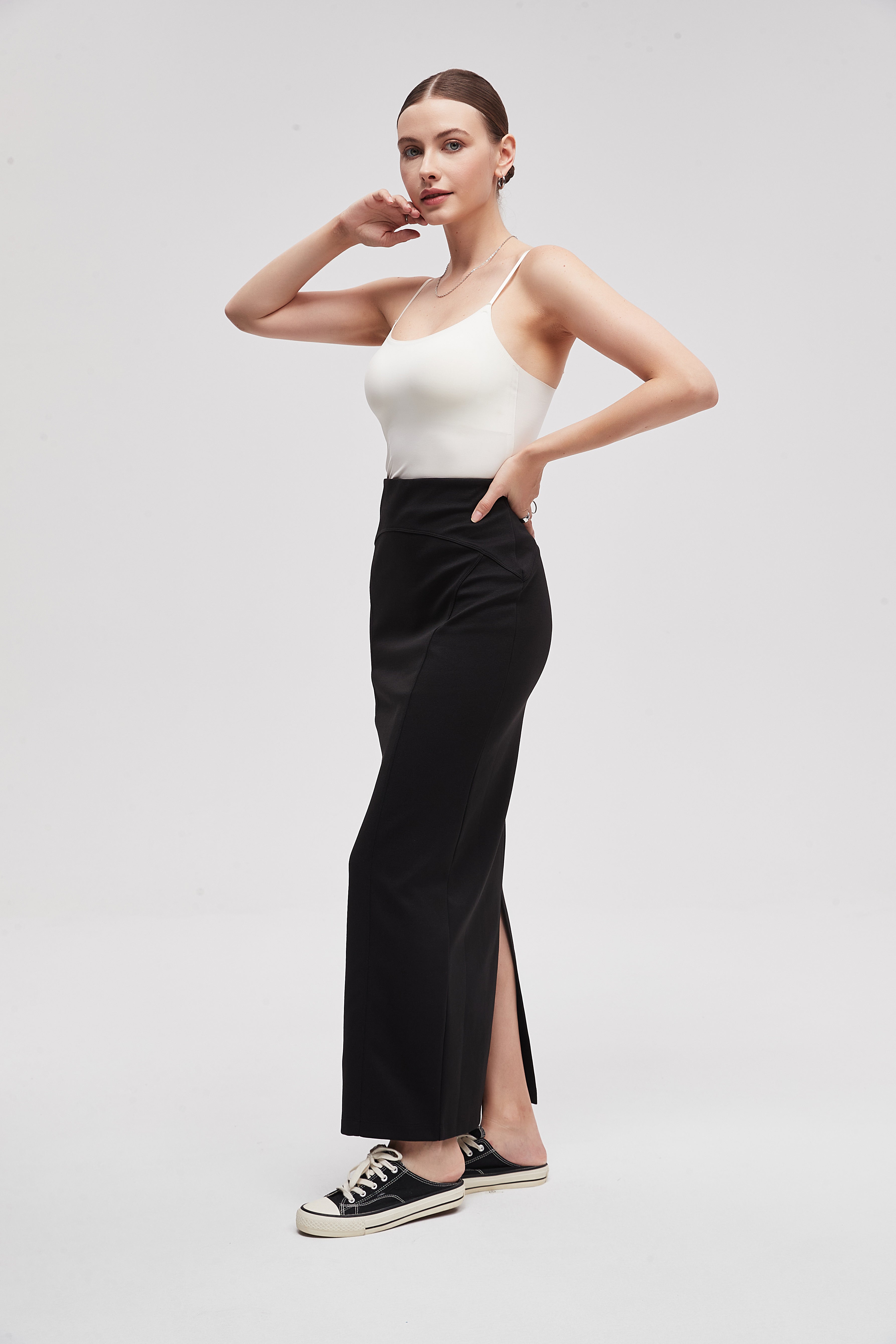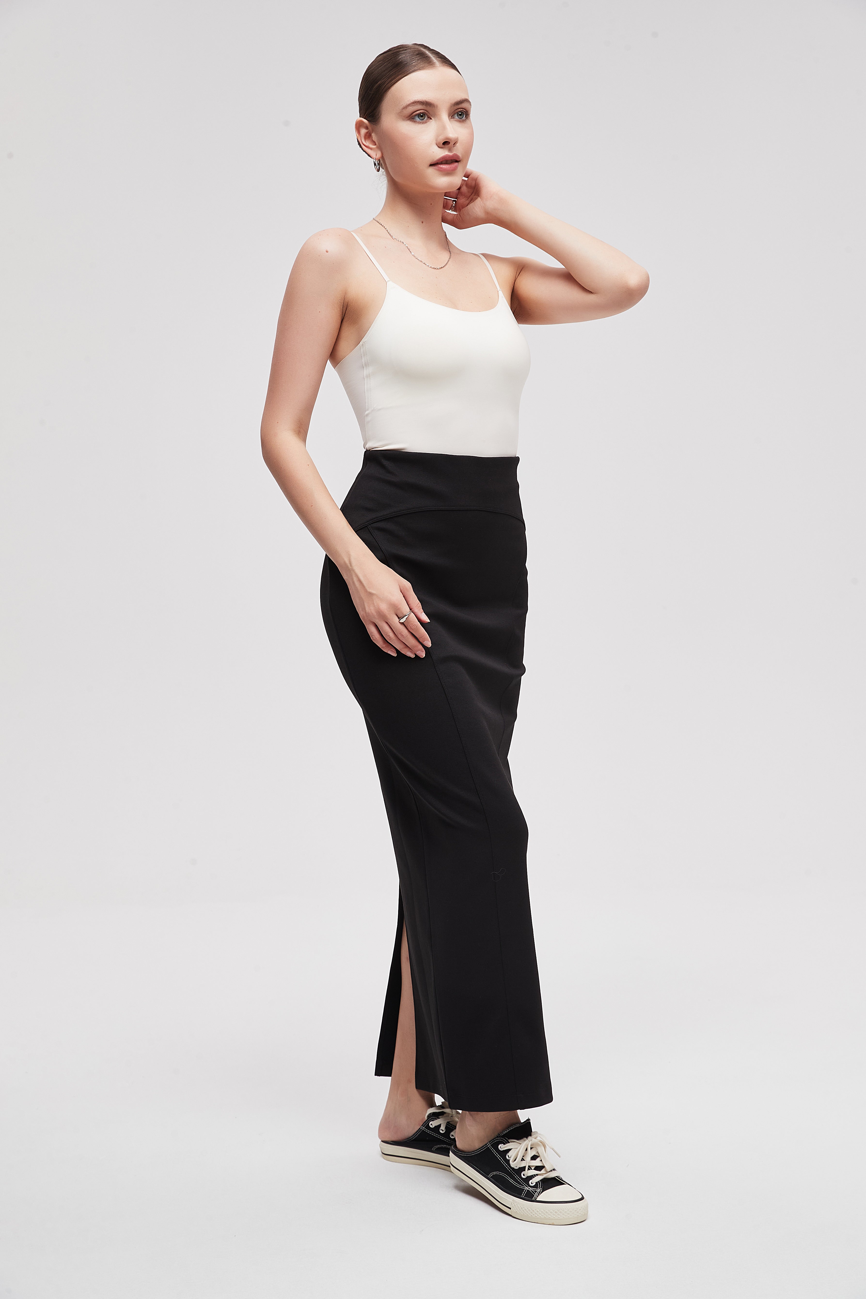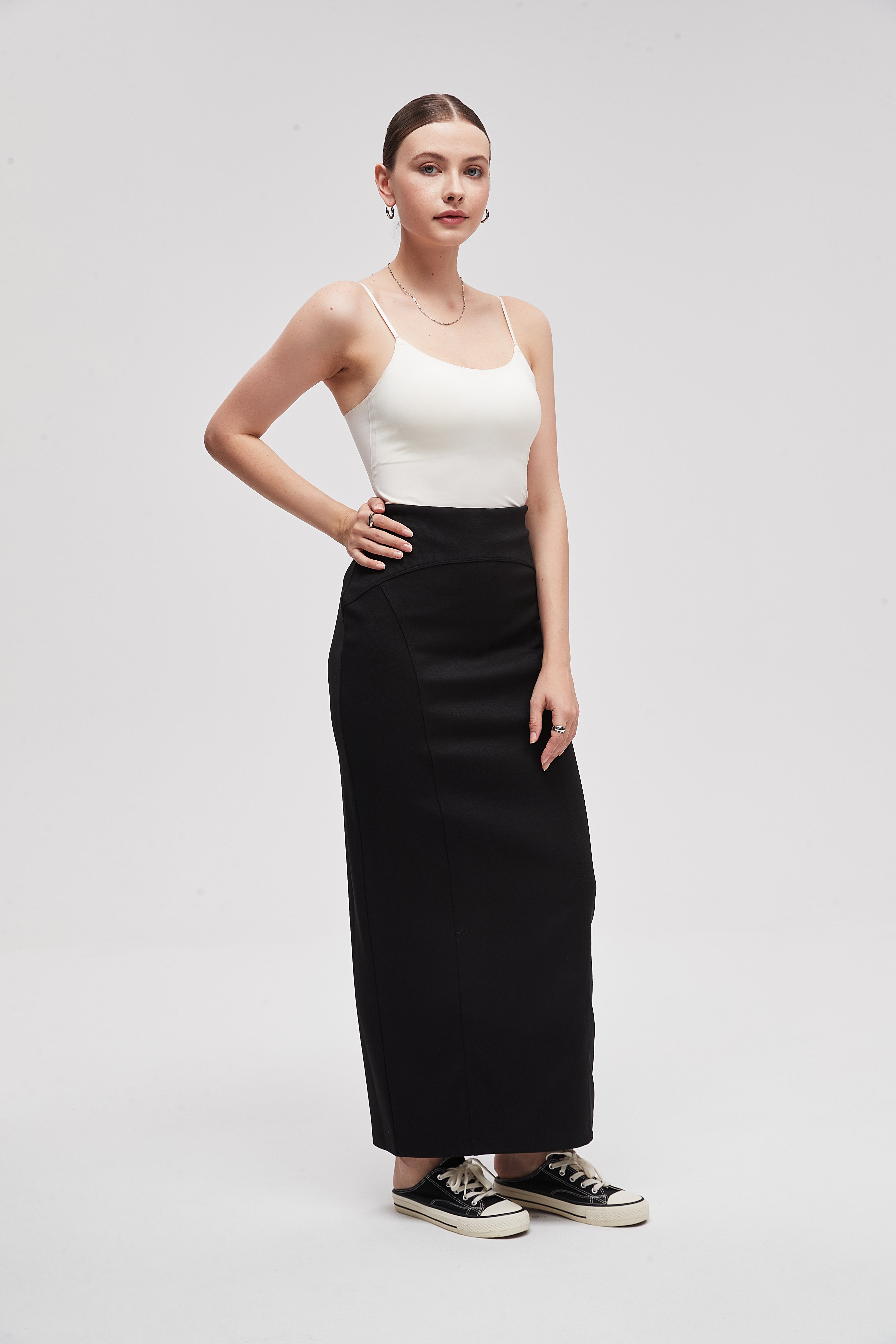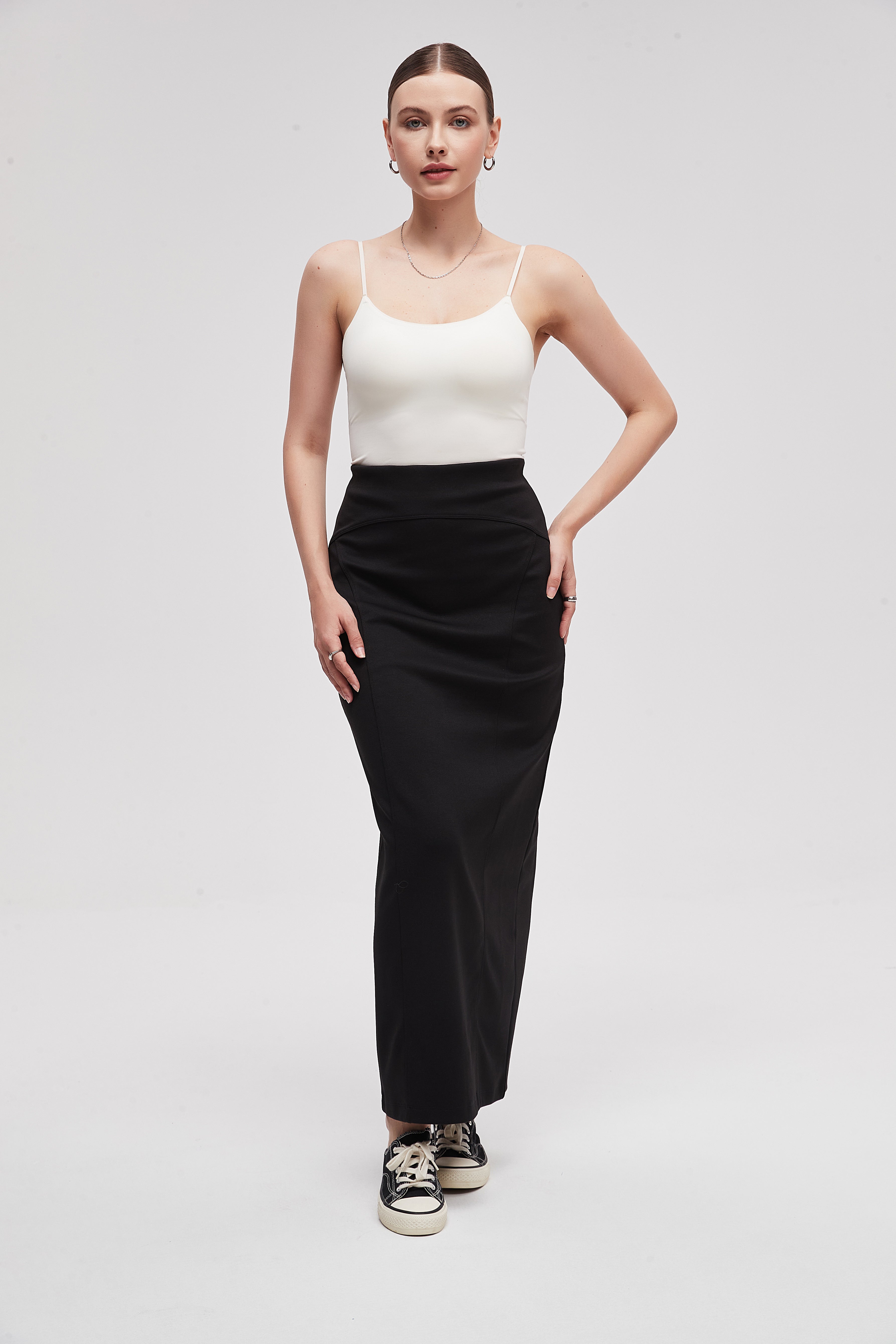 تنورة طويلة سادة بقصة محبوكة
