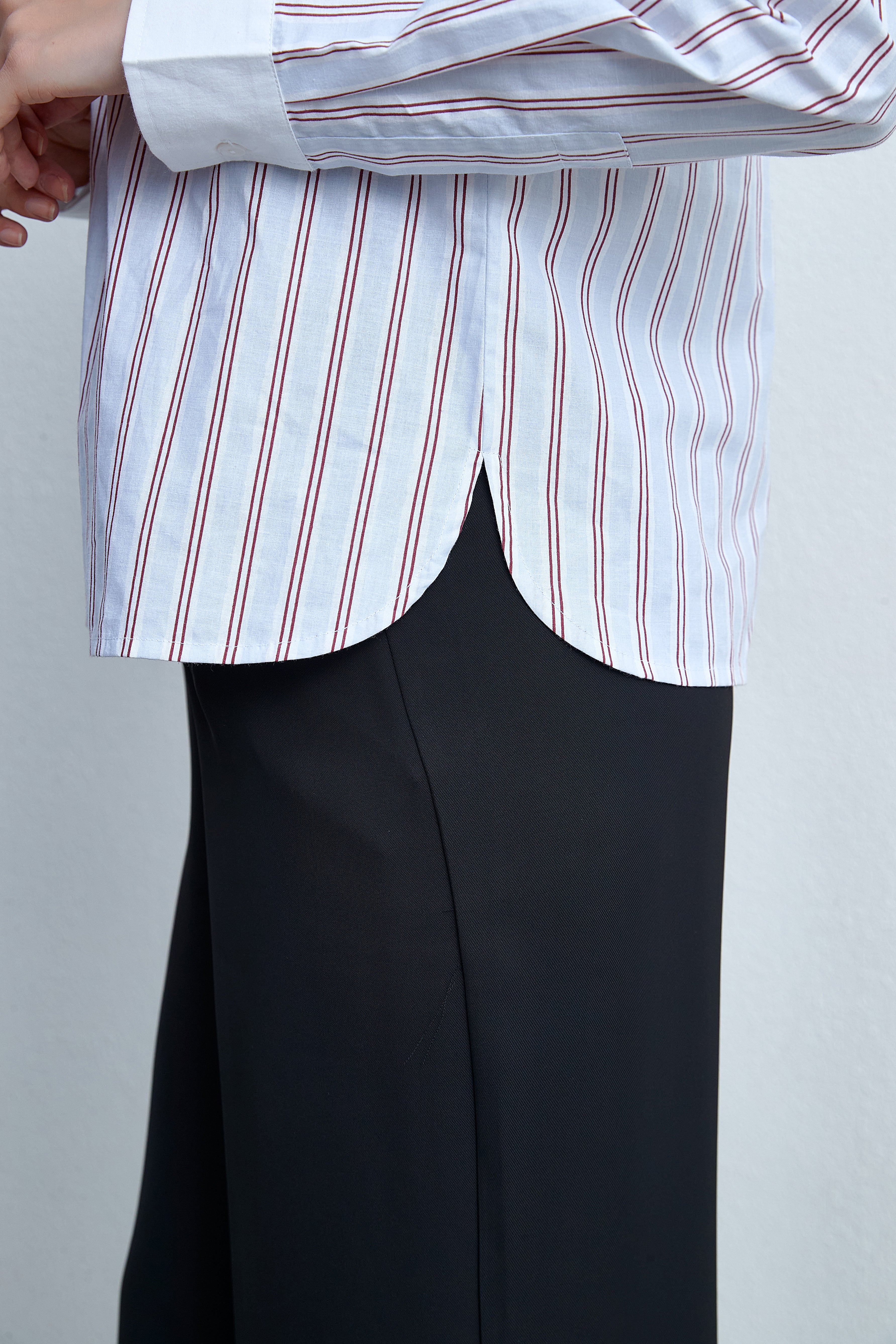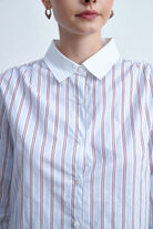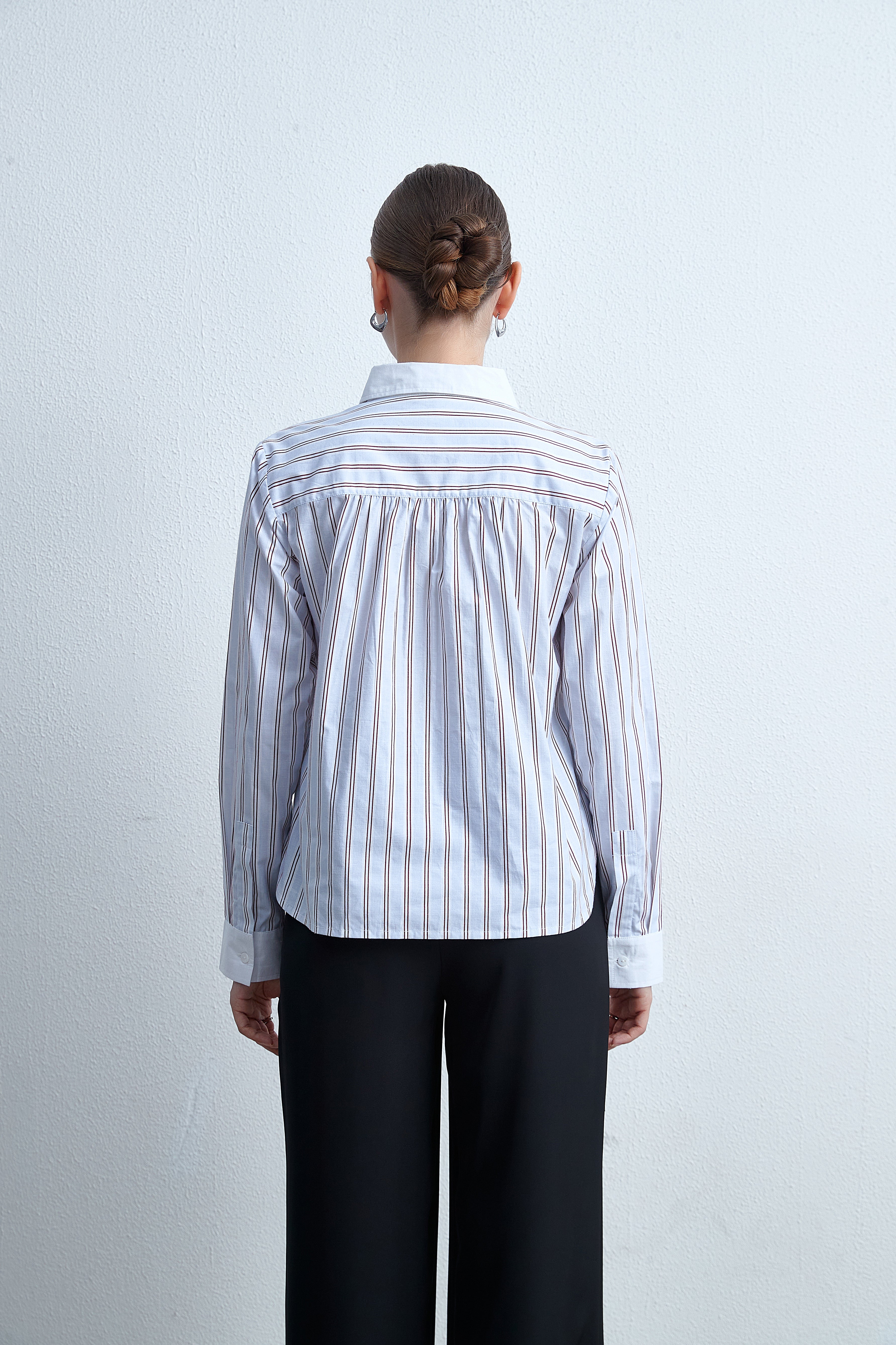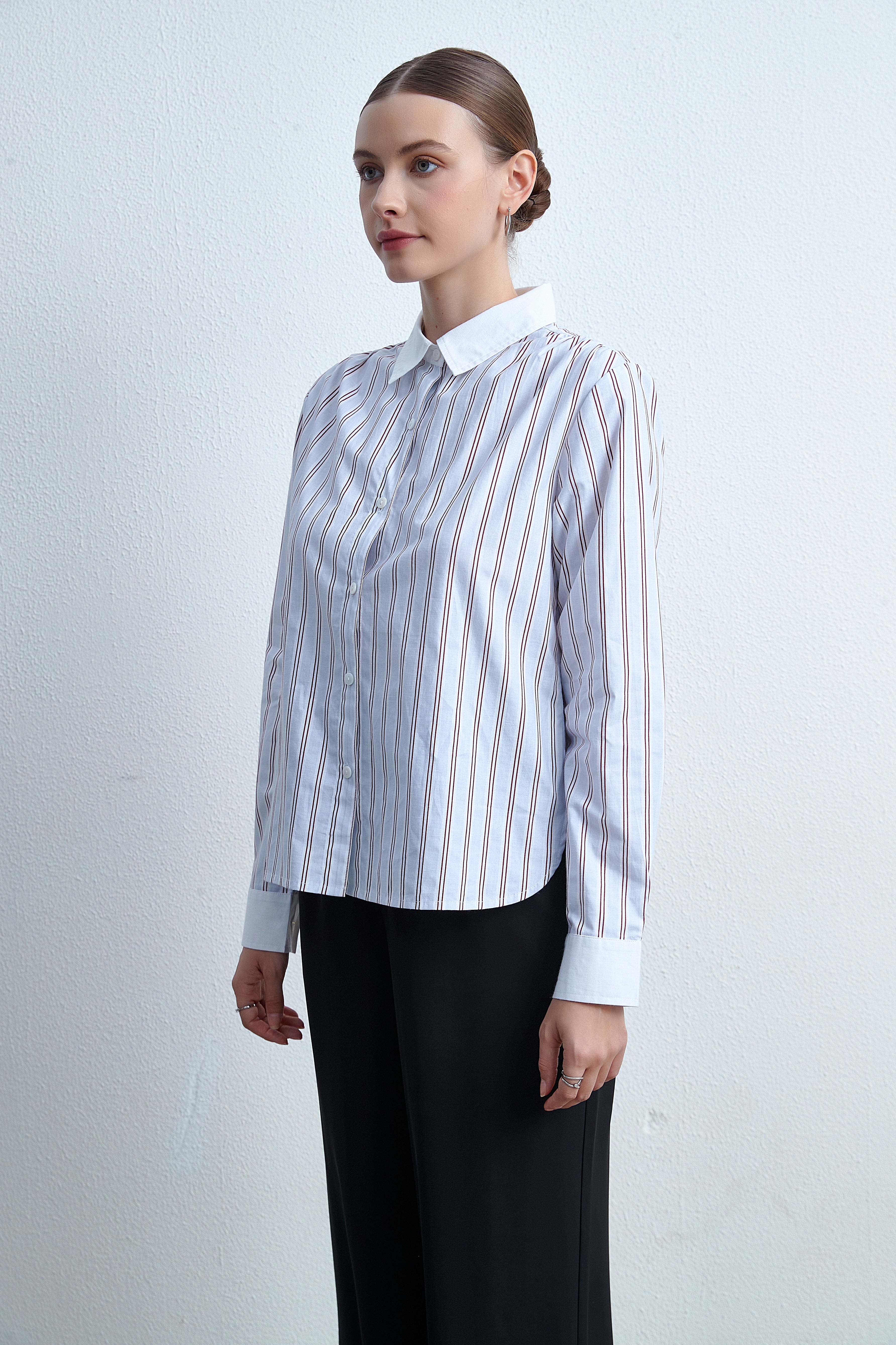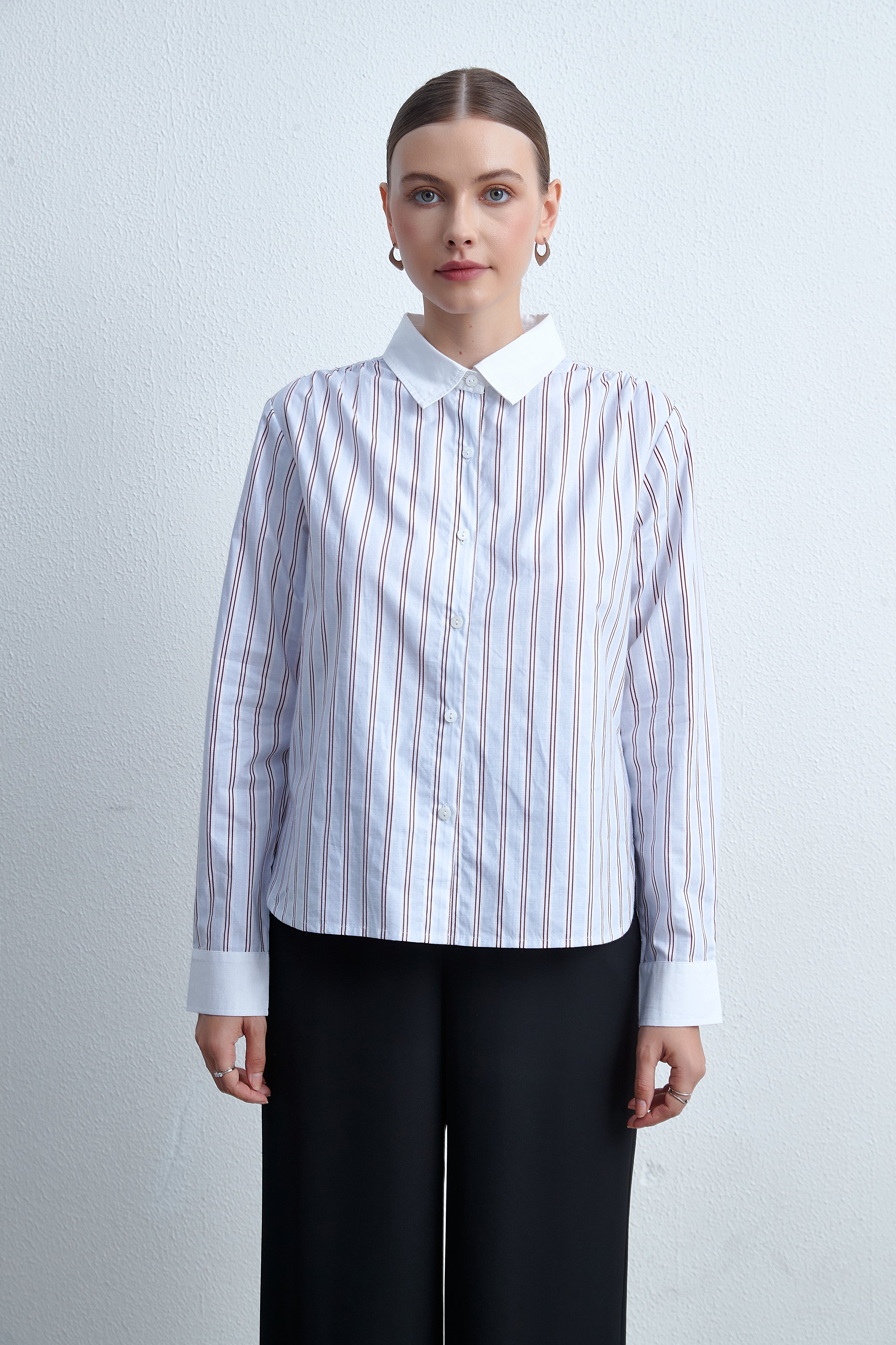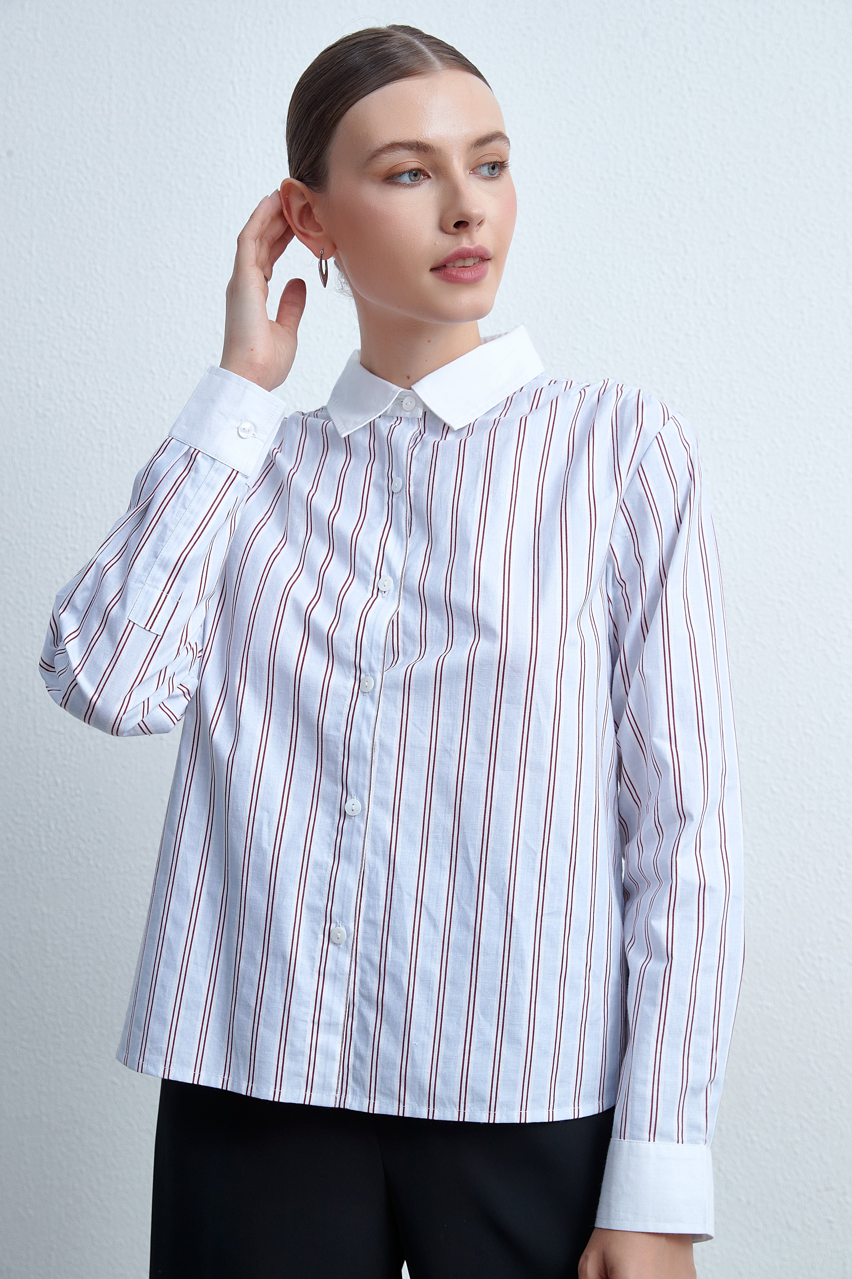 بلوزة مخططة بالطول بكم طويل وياقة قميص