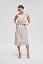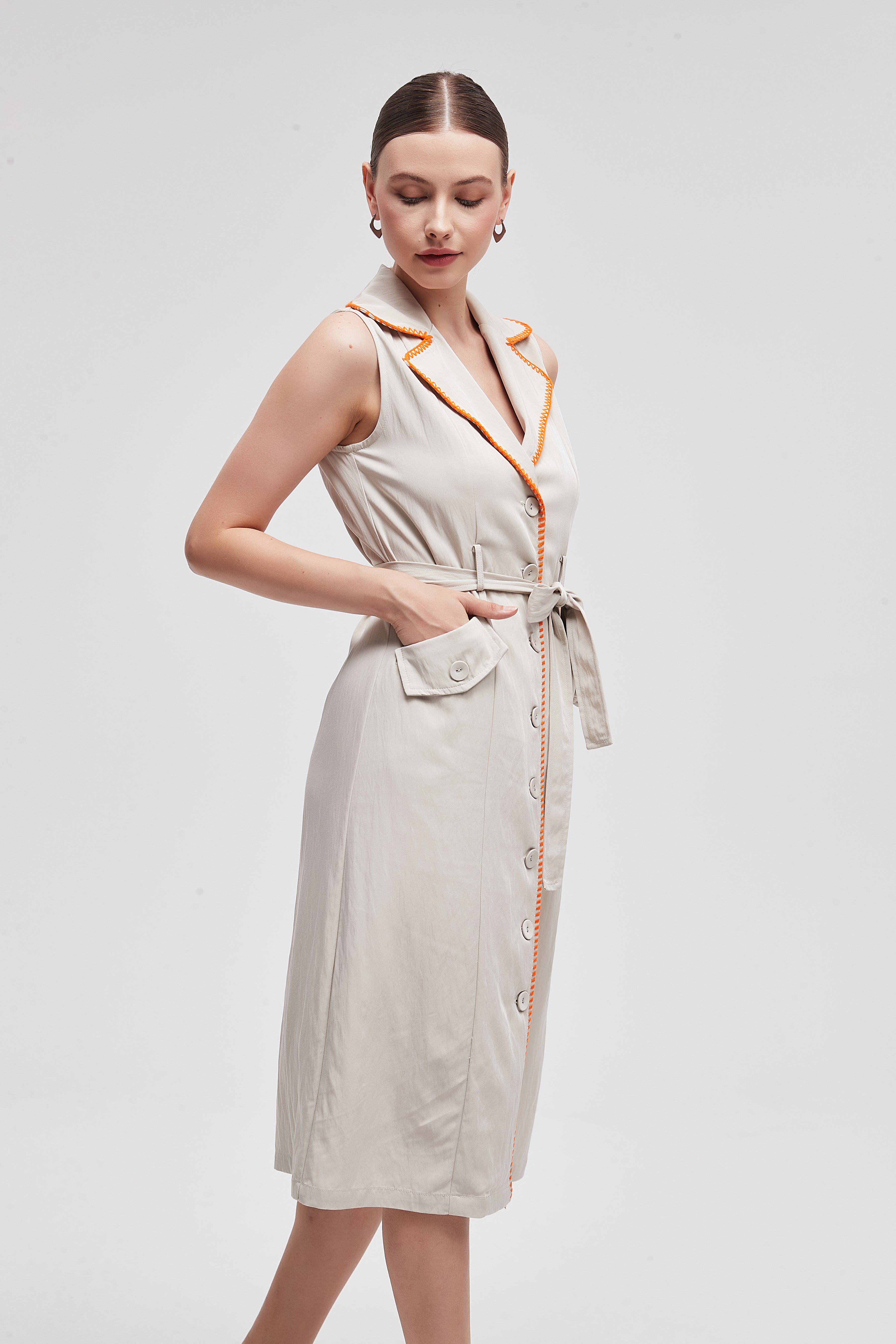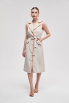 فستان بدون أكمام ميدي مع حزام على الخصر
