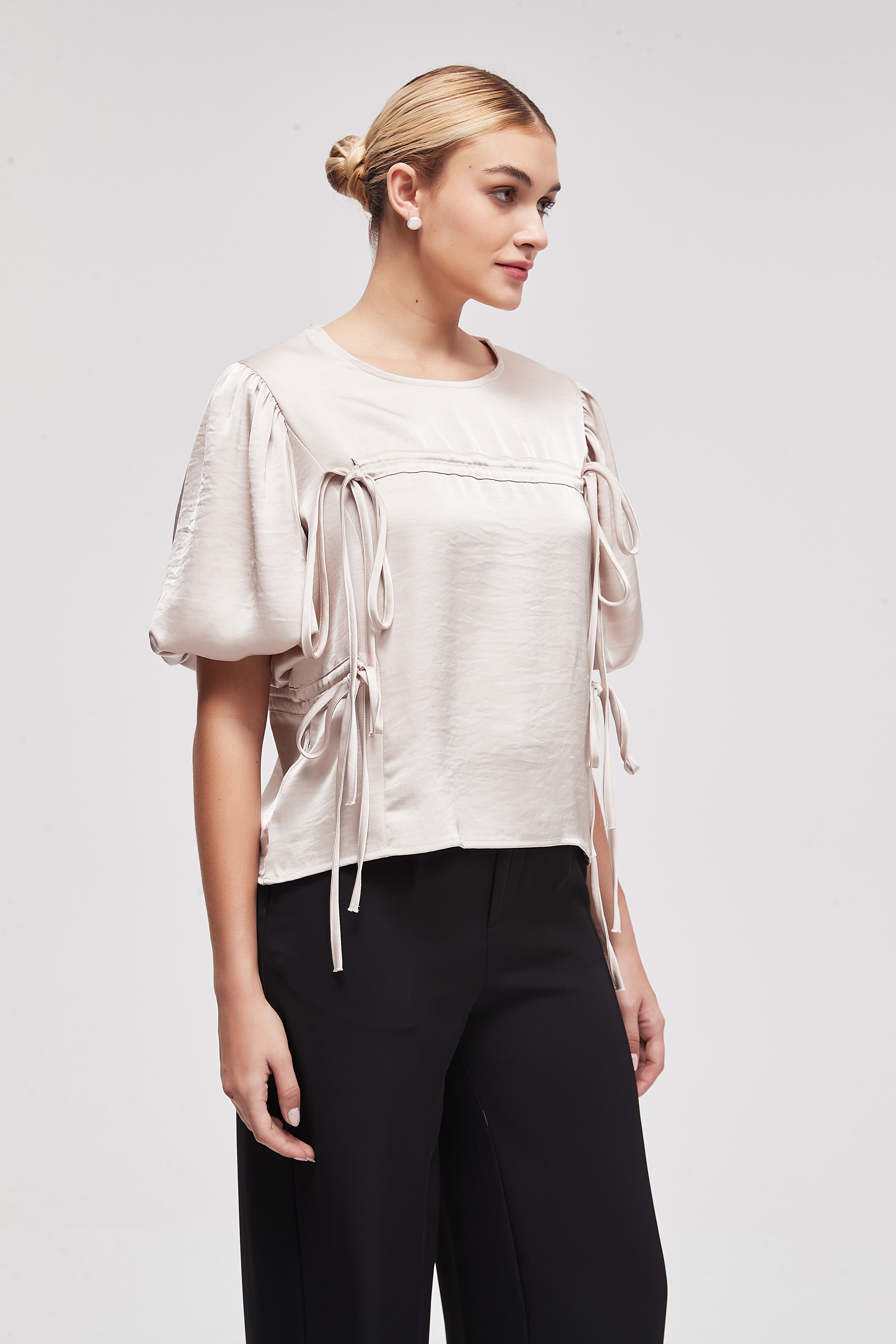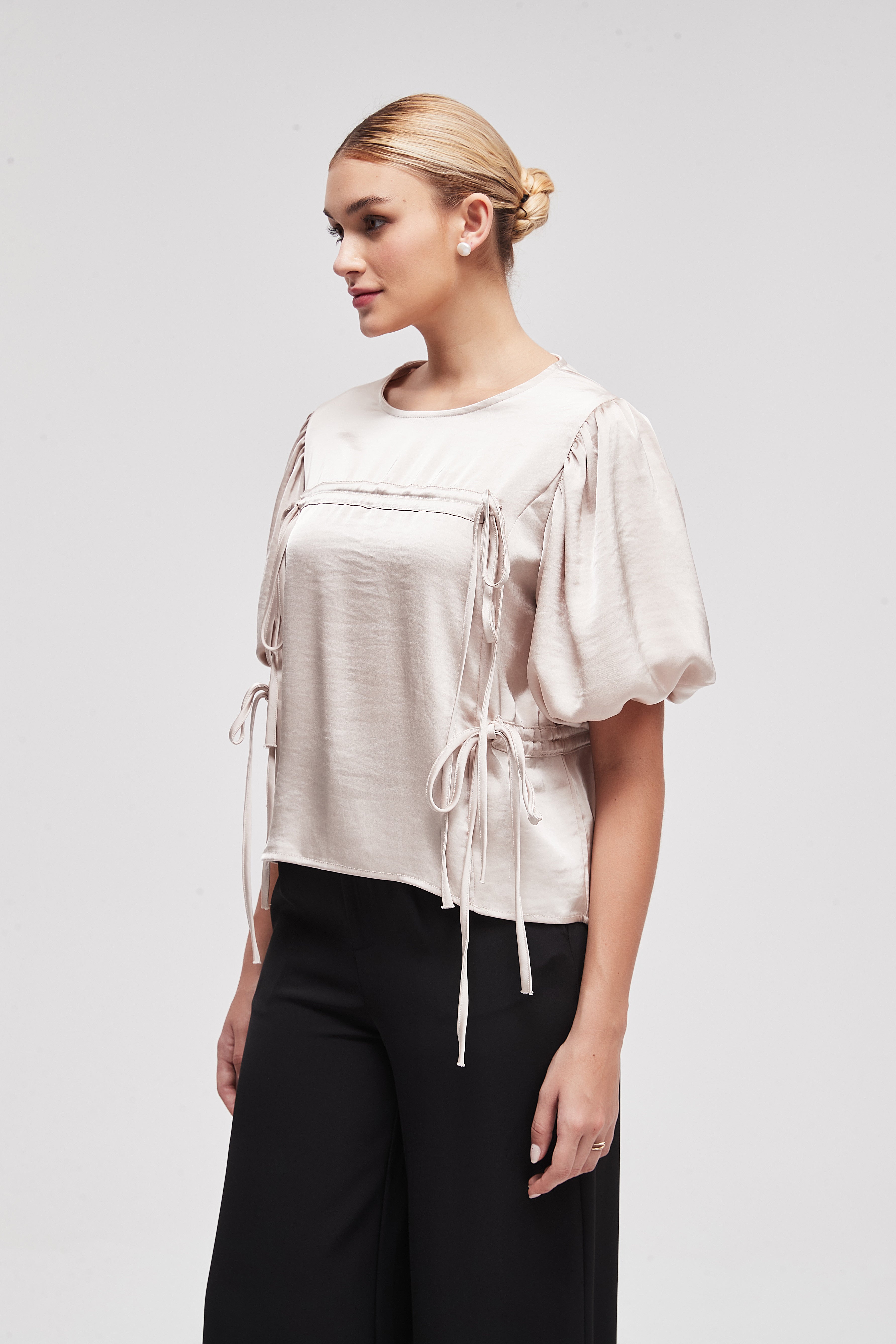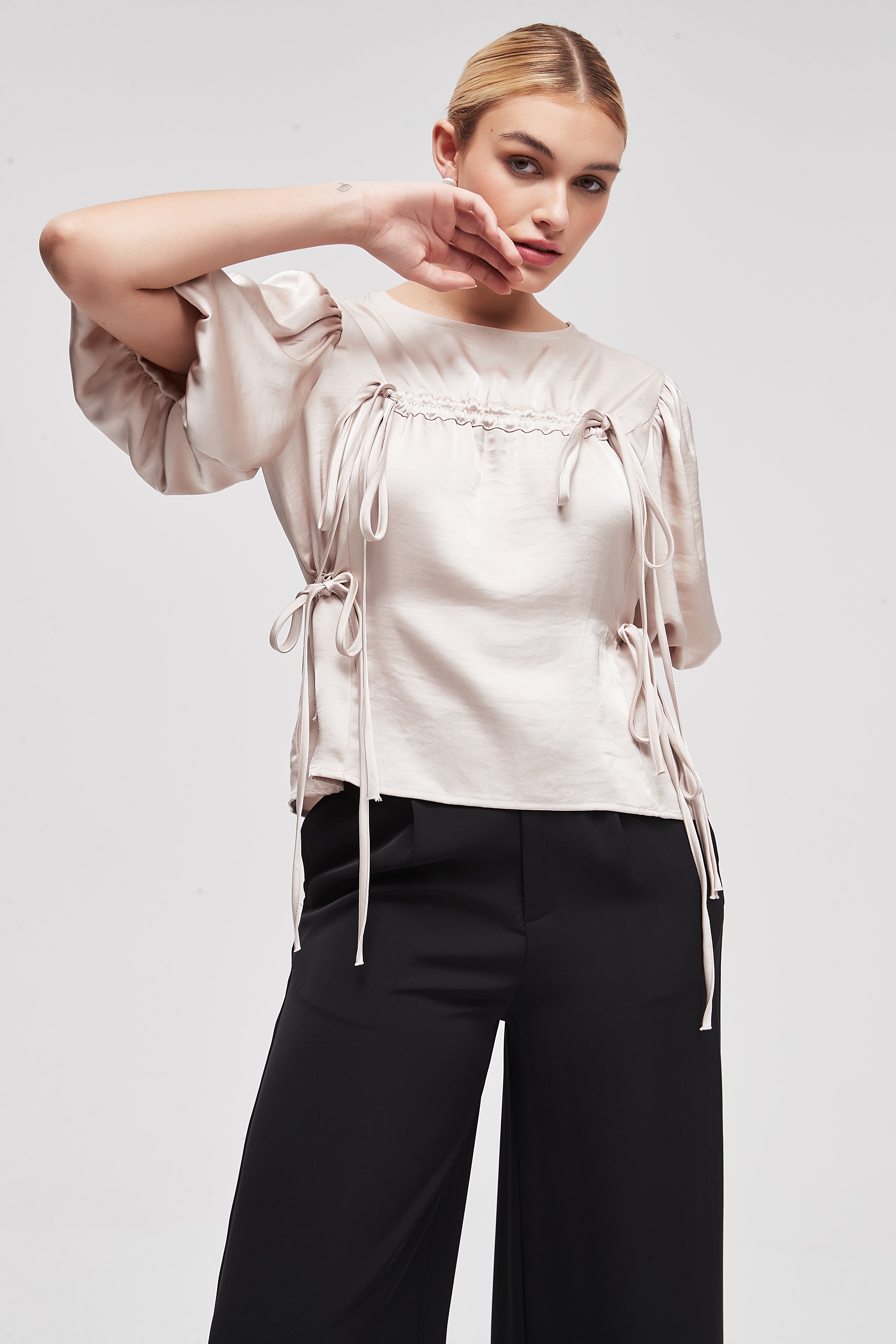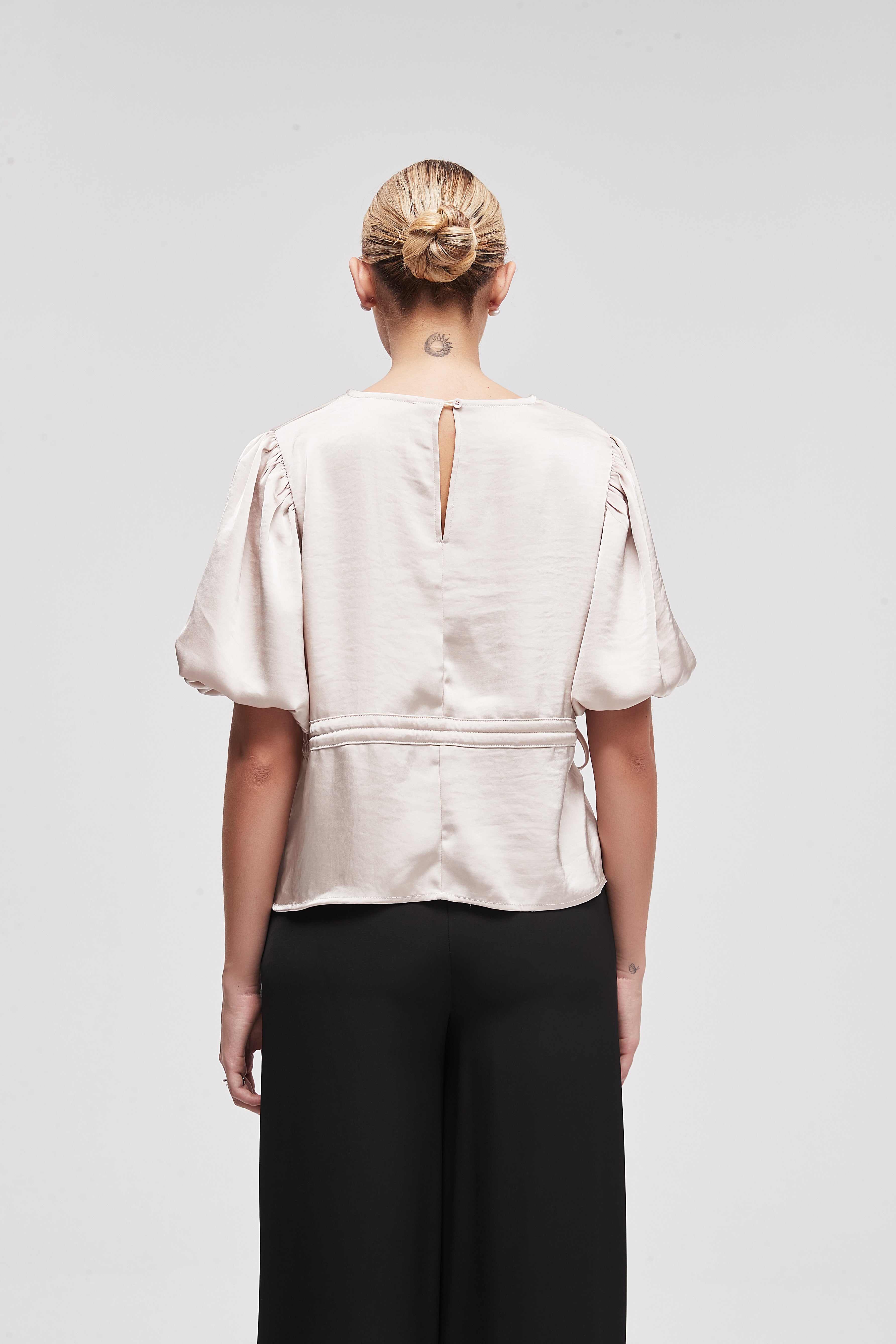 بلوزة نصف كم سادة بطول الخصر