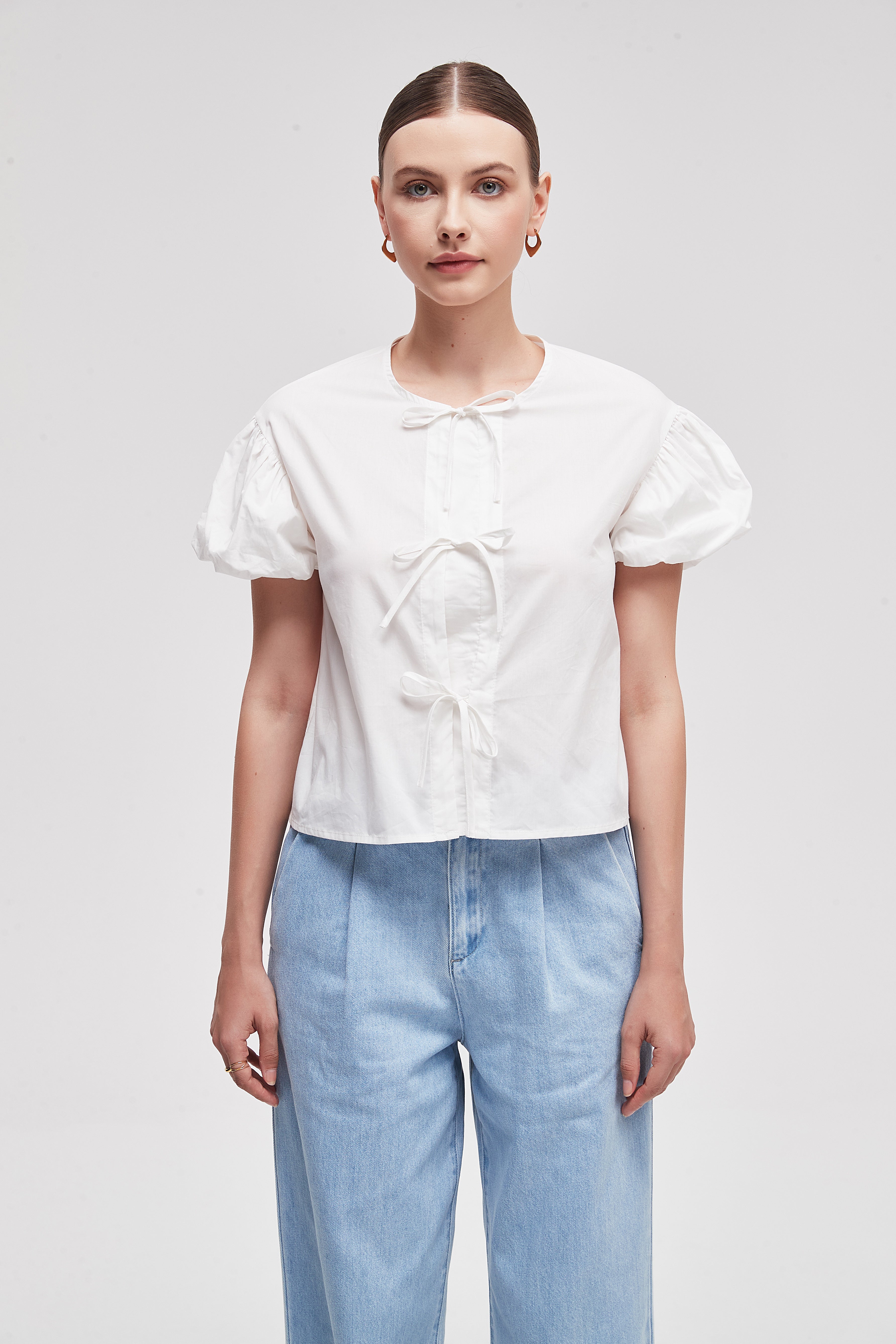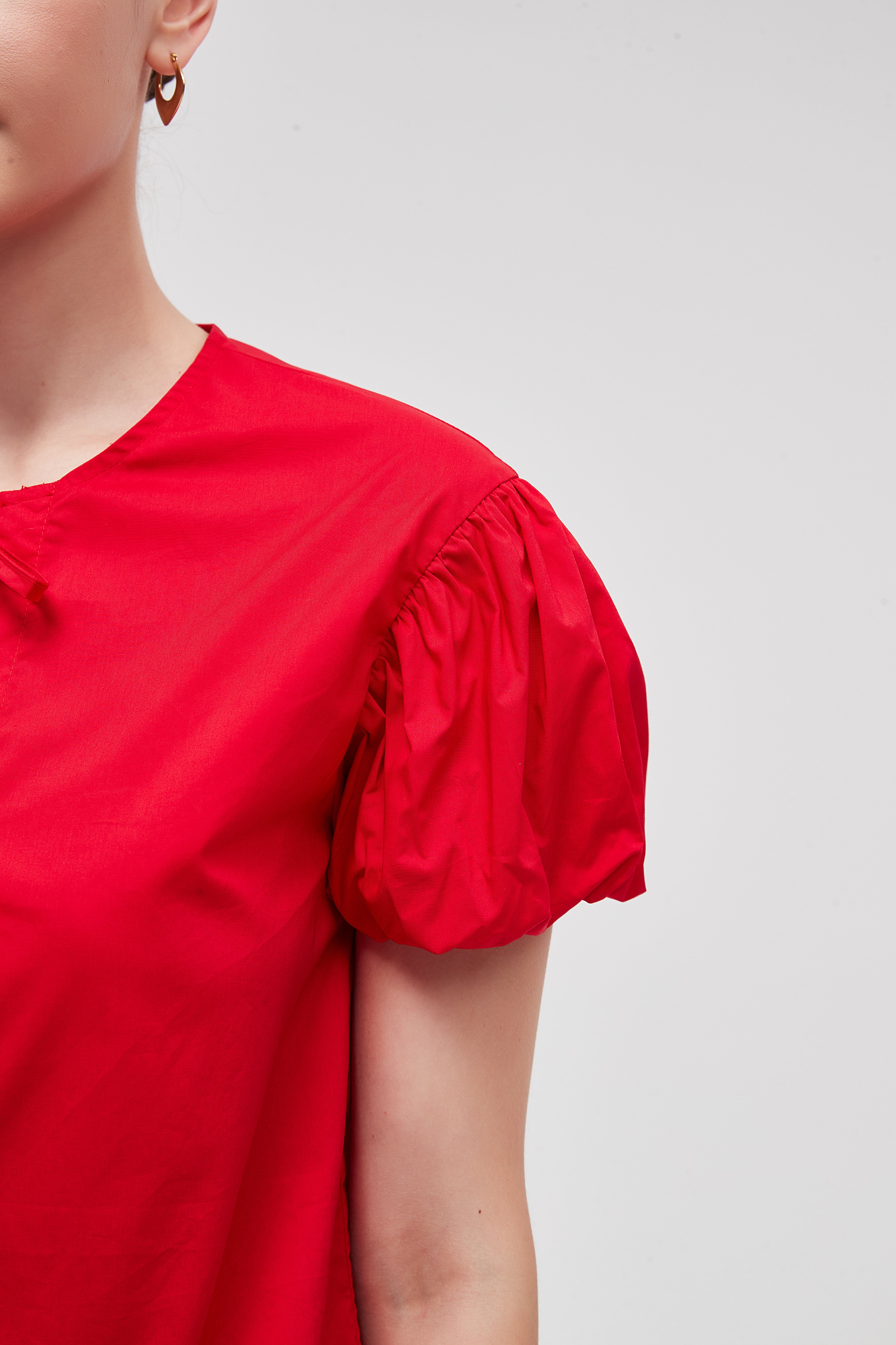 بلوزة سادة بكم قصير وفتحة رقبة مستديرة