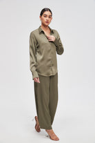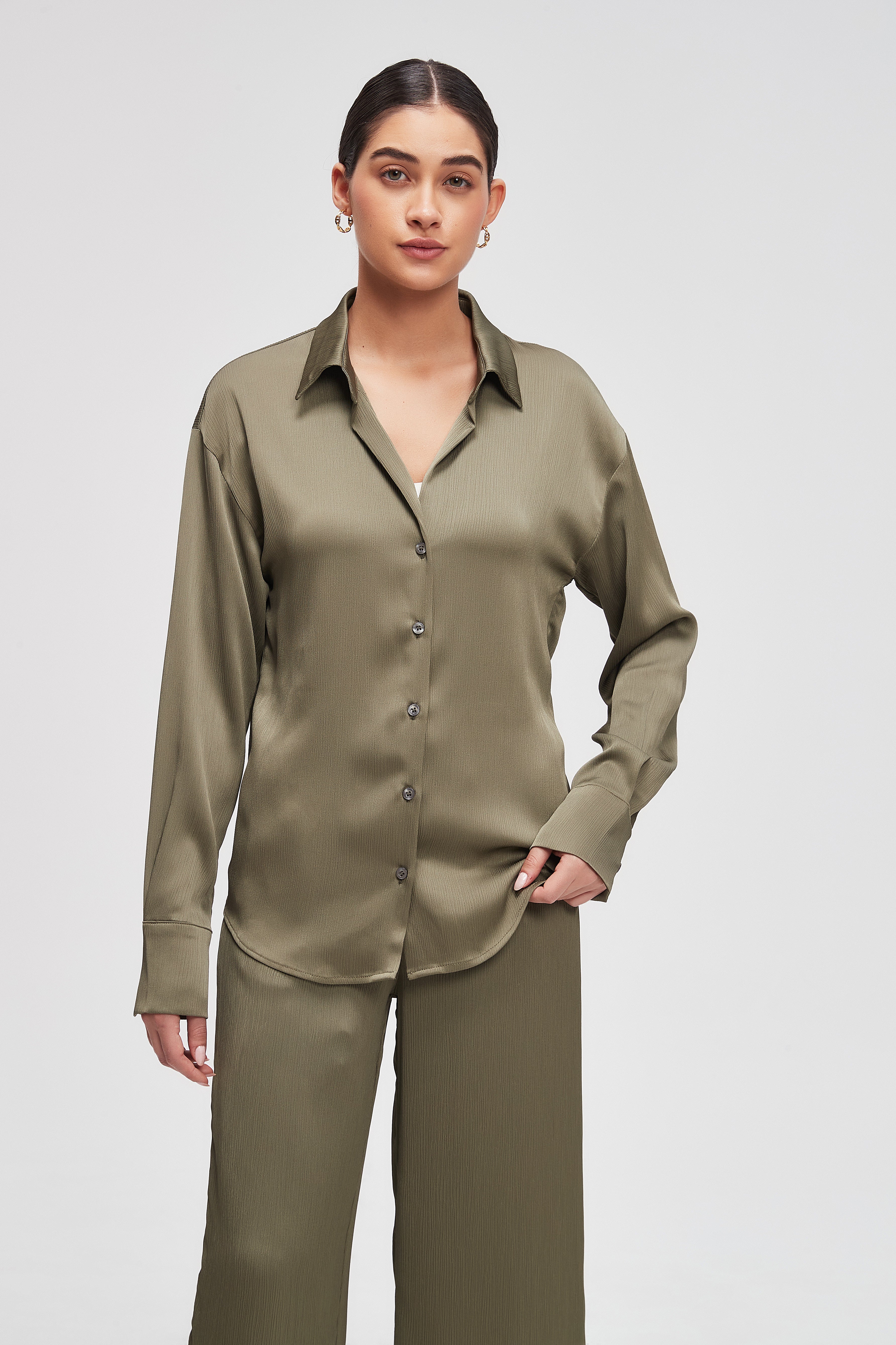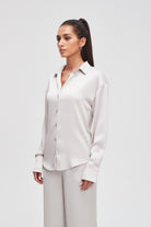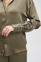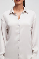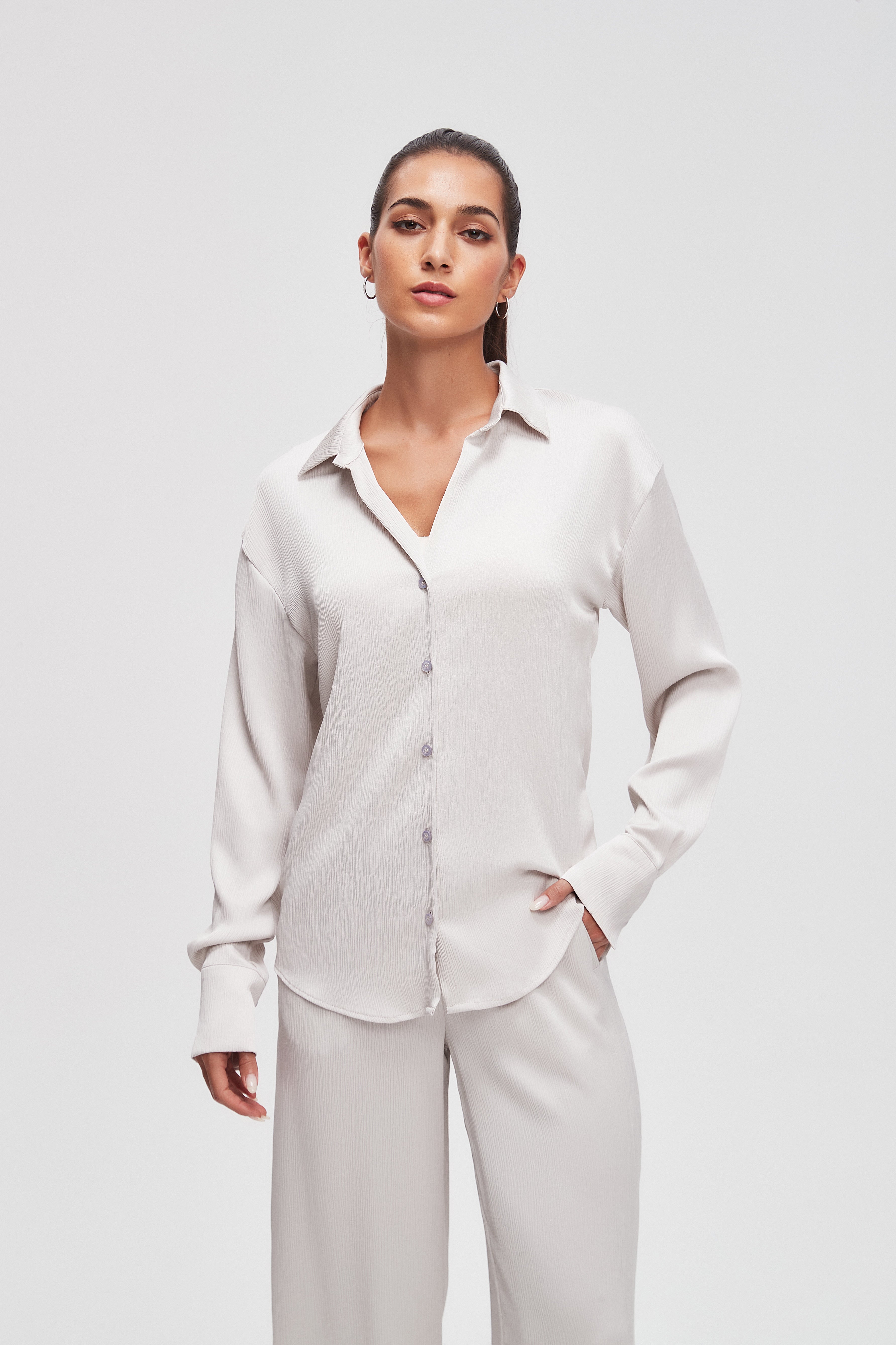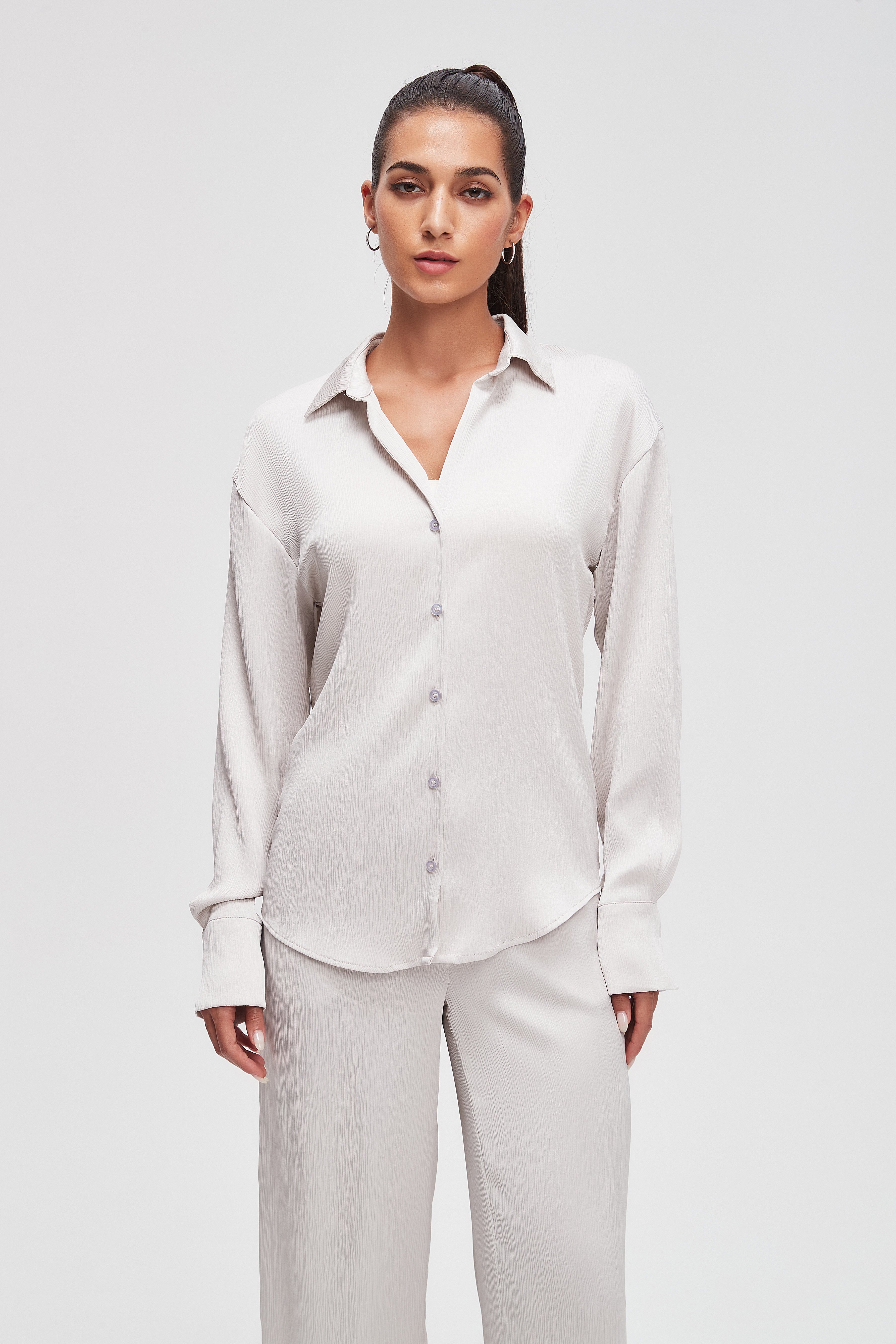 بلوزة بأزرار أمامية وأكمام طويلة مع ياقة قميص