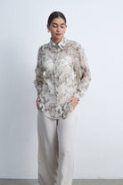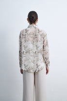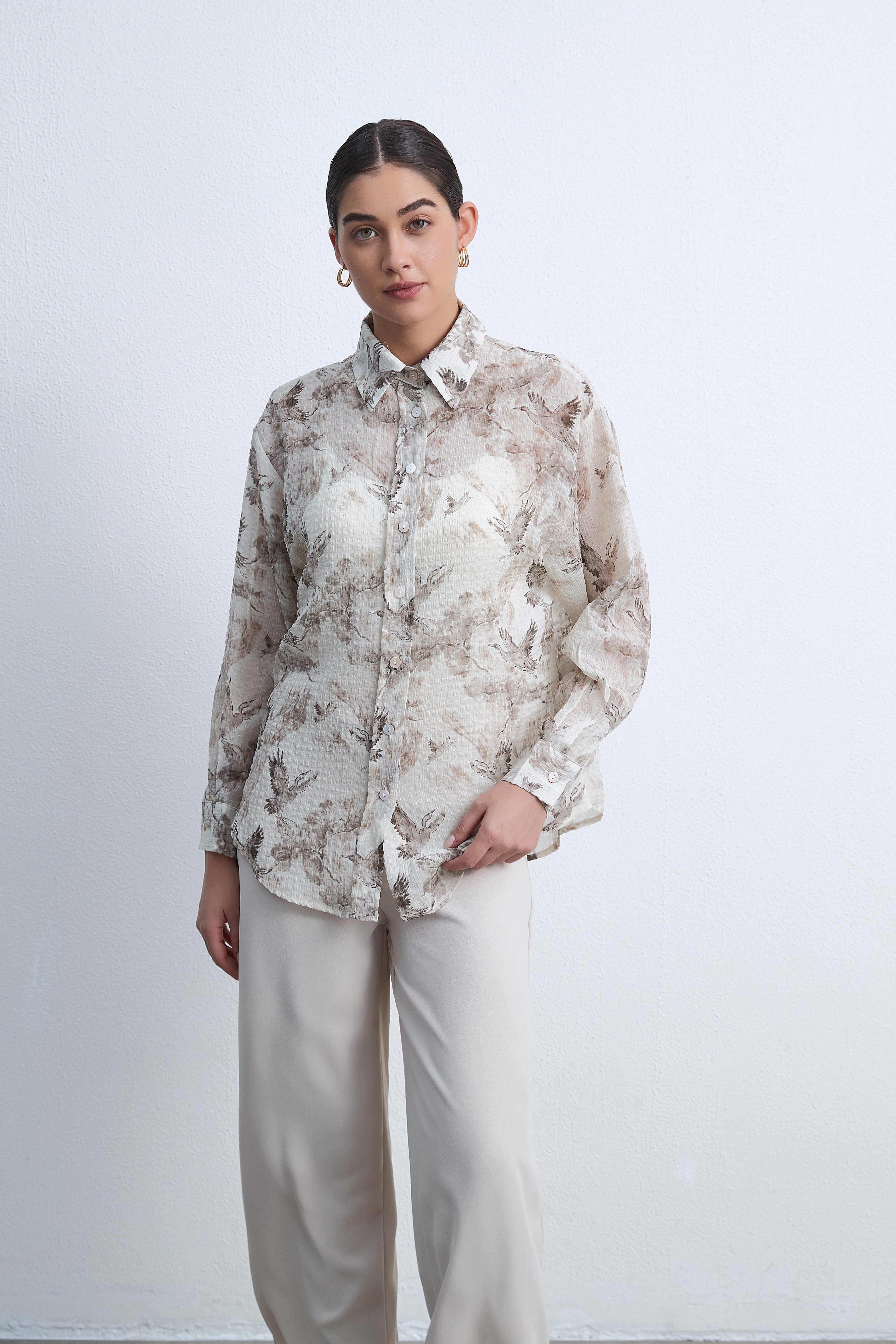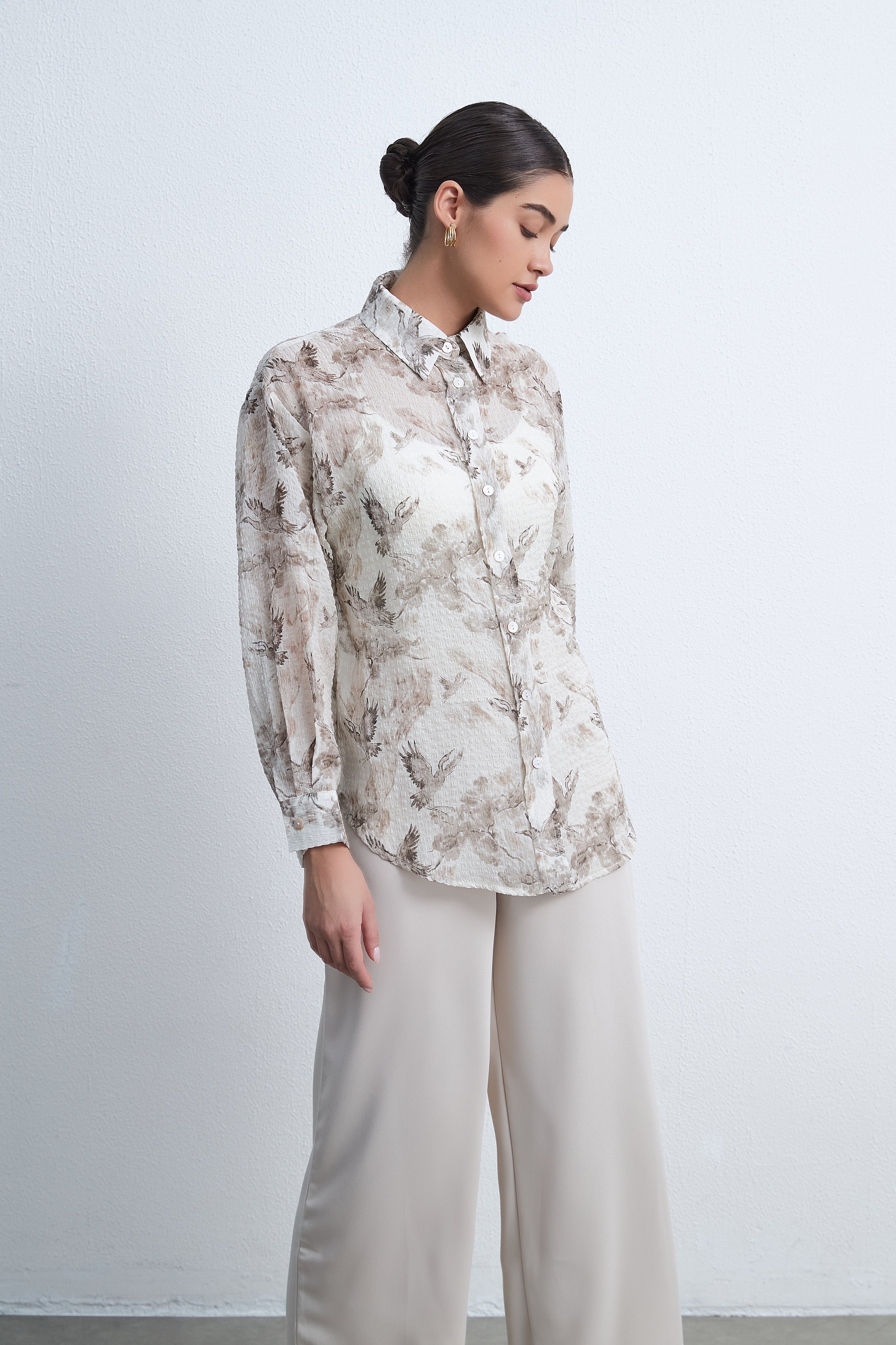 بلوزة مشجرة بياقة قميص وأكمام طويلة