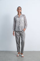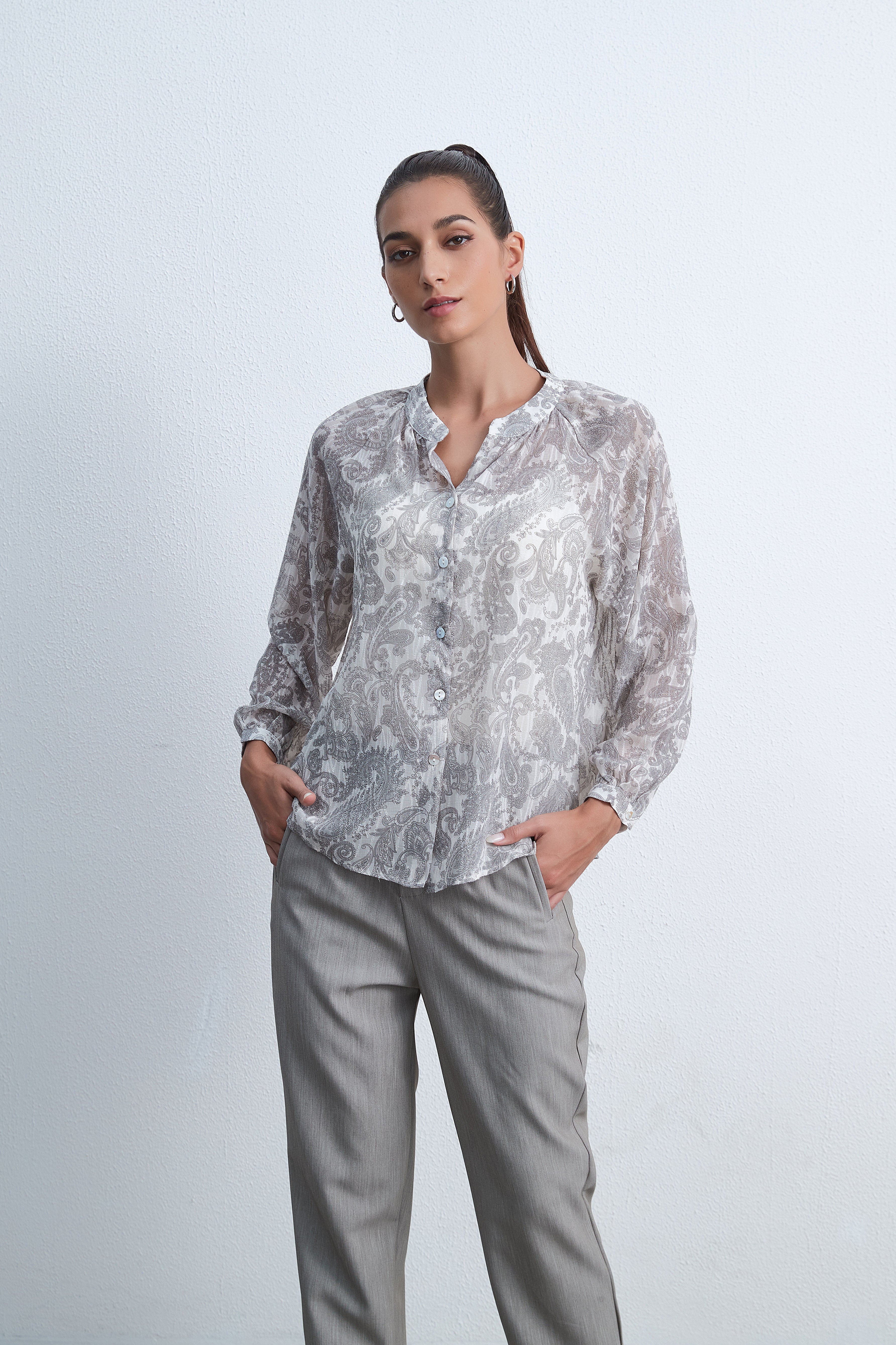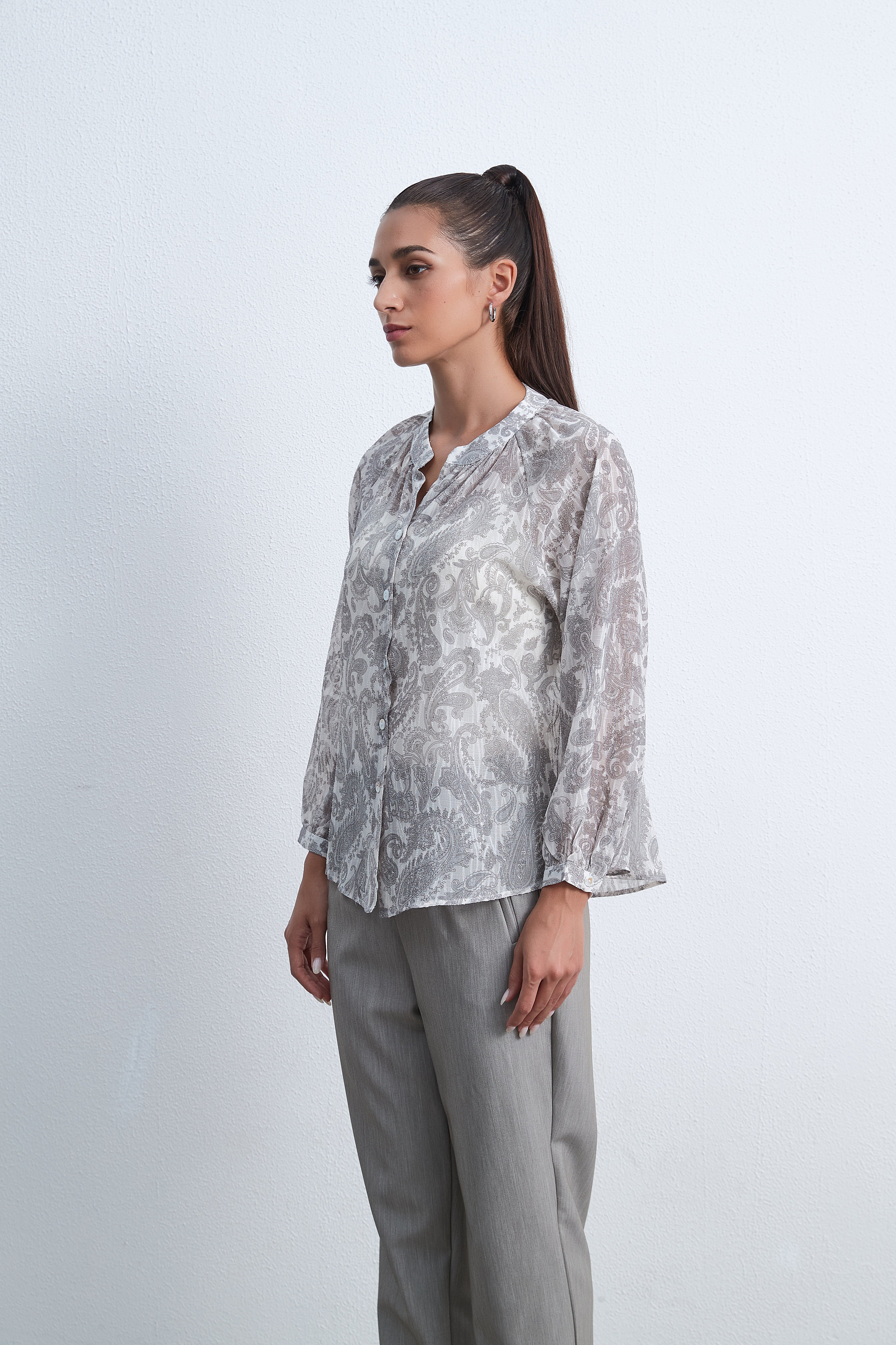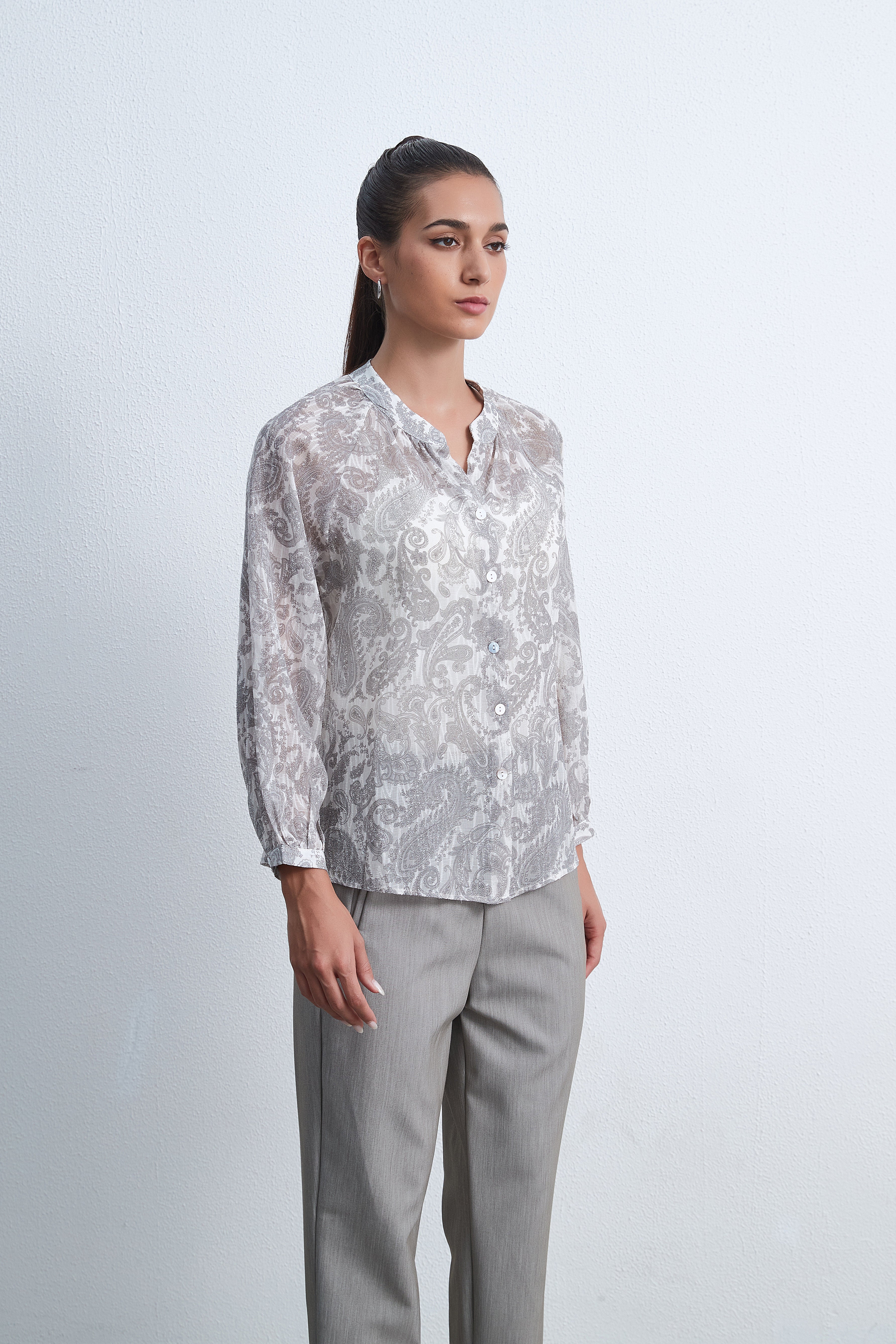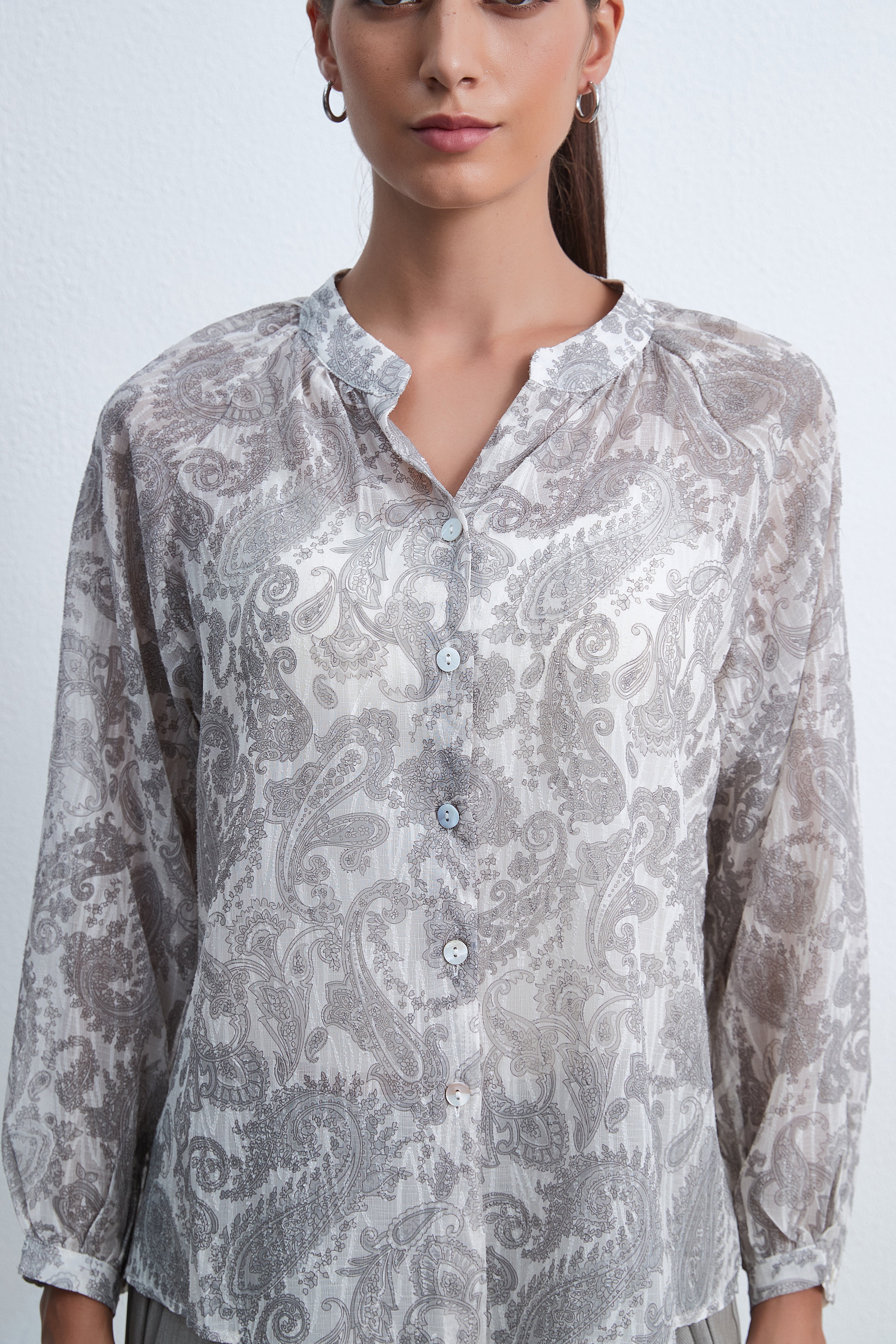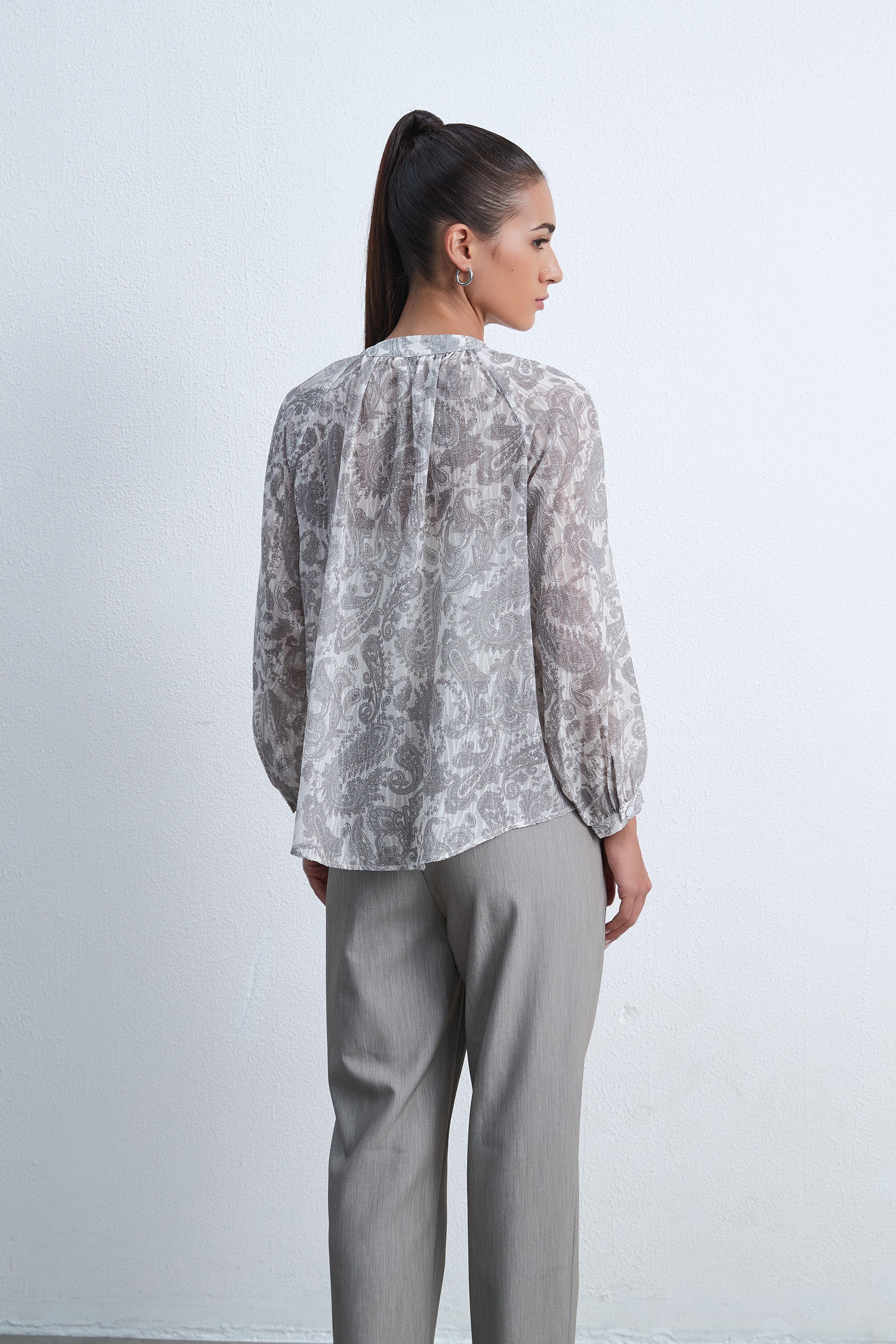 بلوزة منقوشة بأكمام طويلة