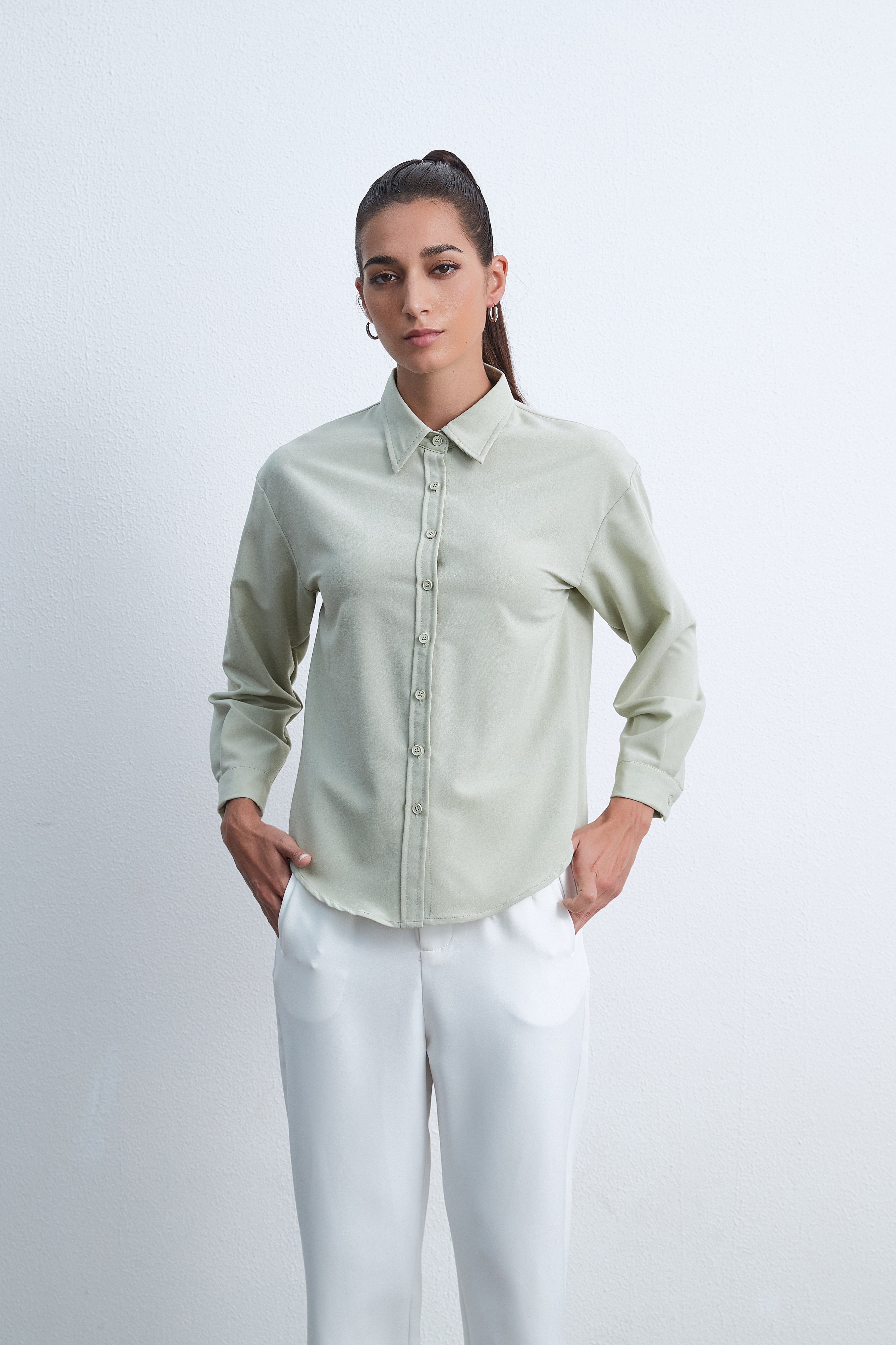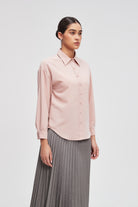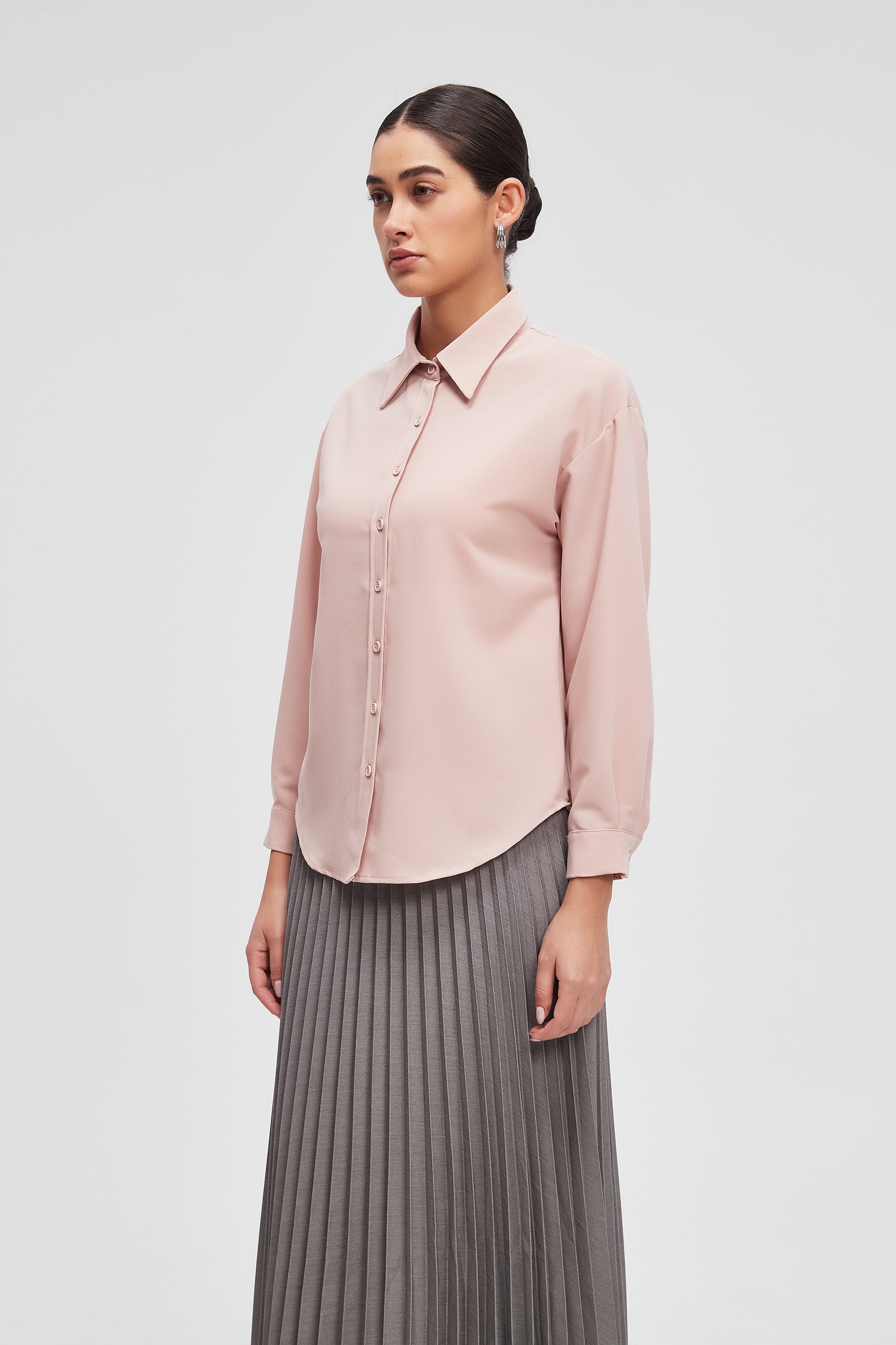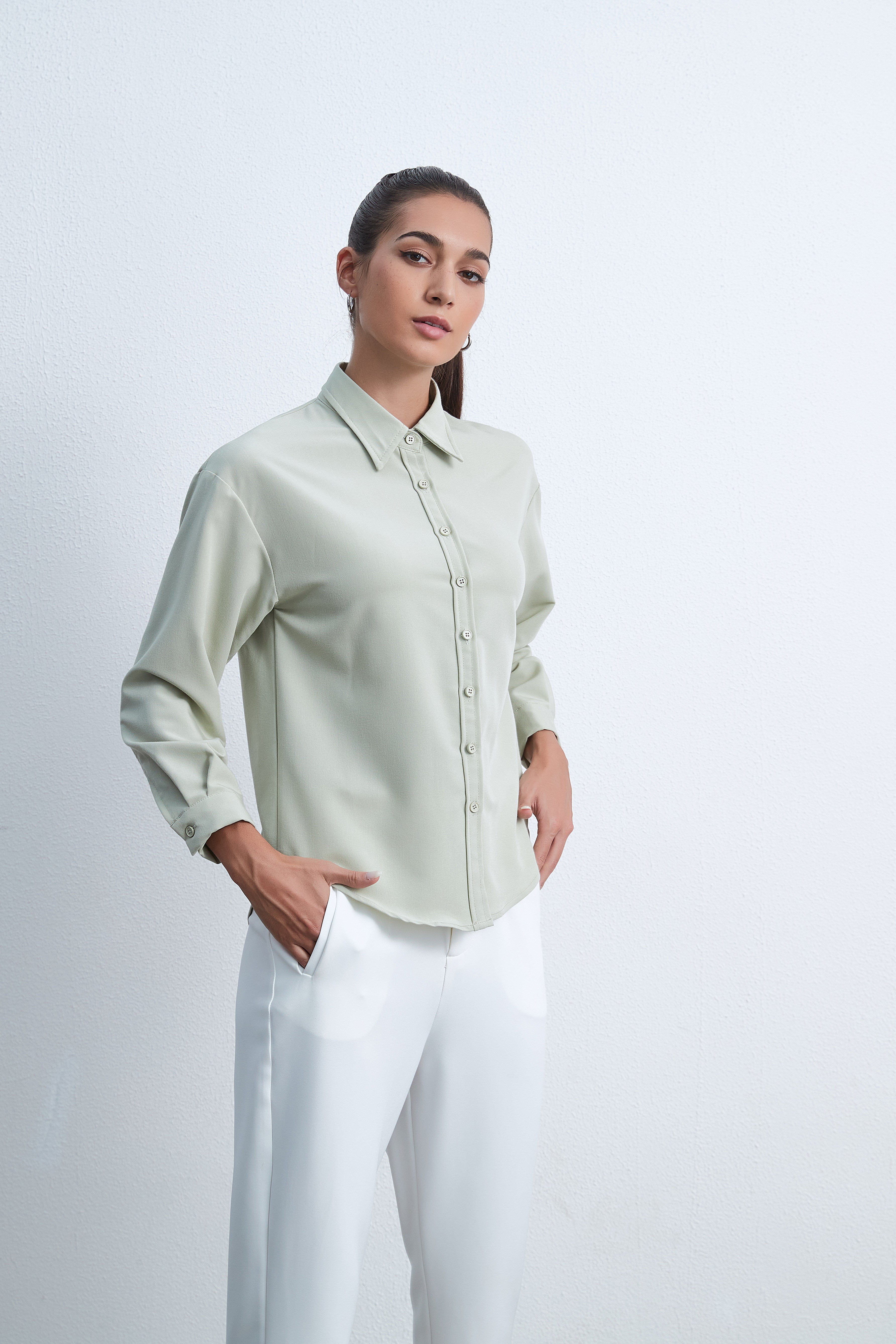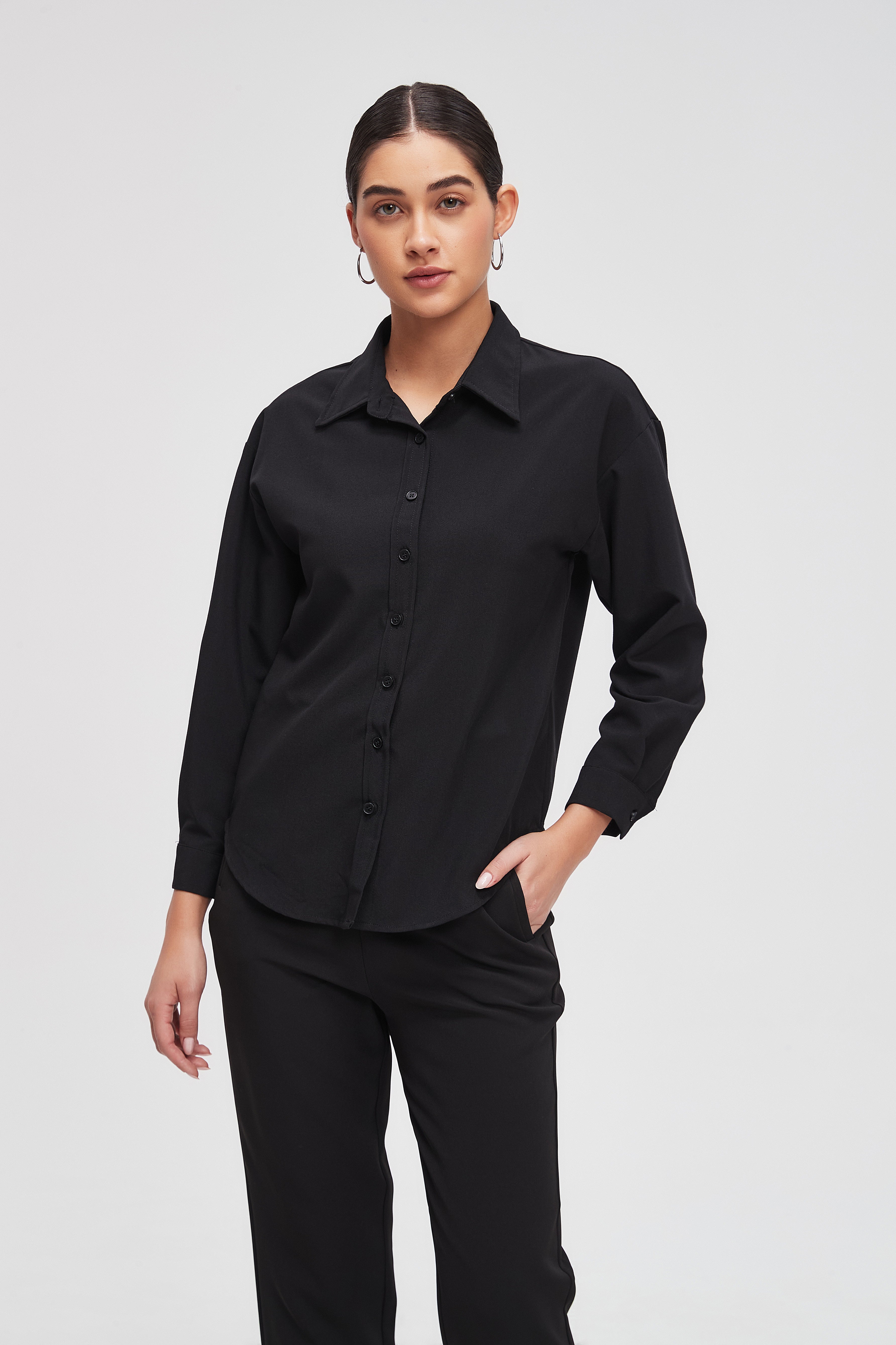 بلوزة سادة بأزرار أمامية وياقة قميص