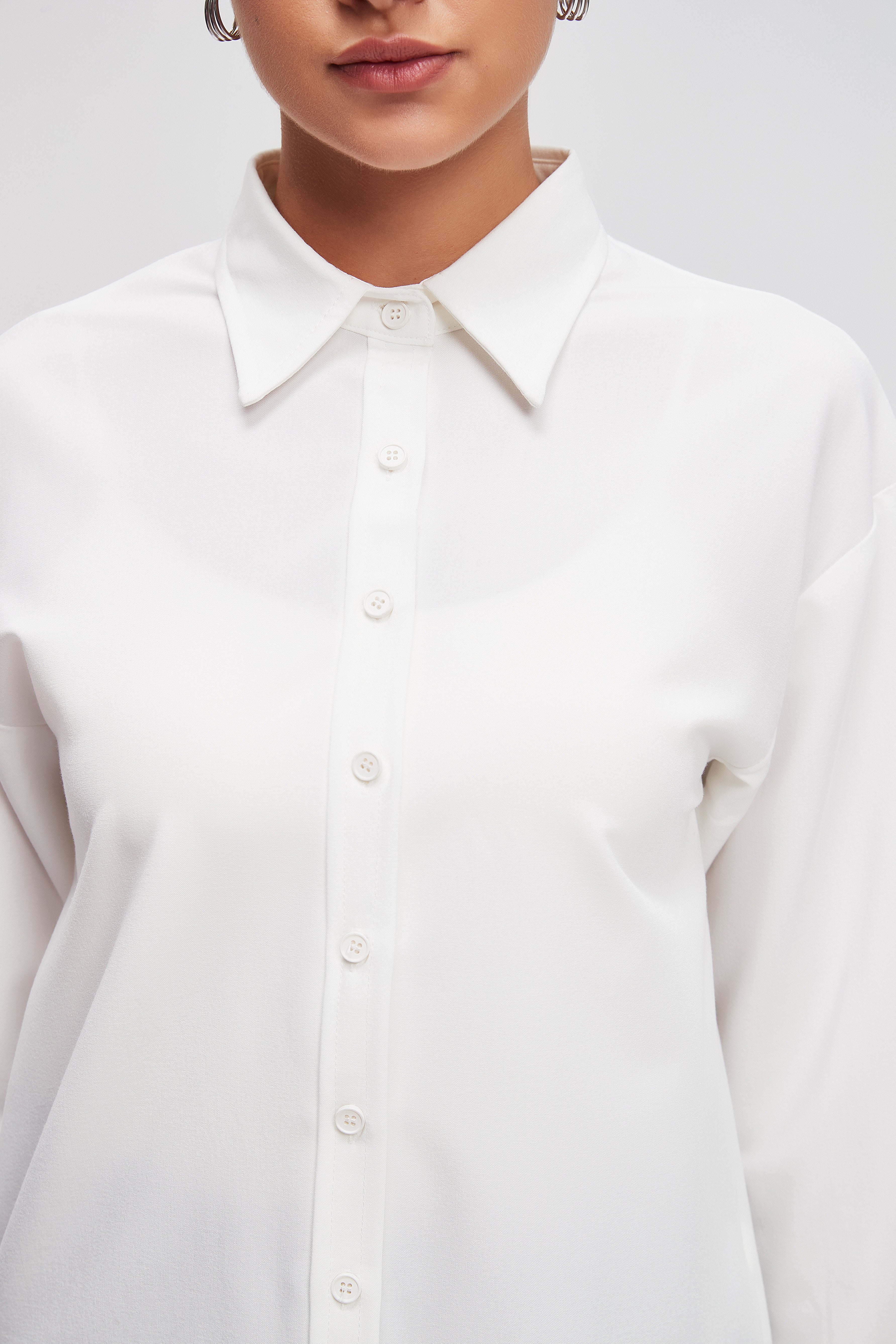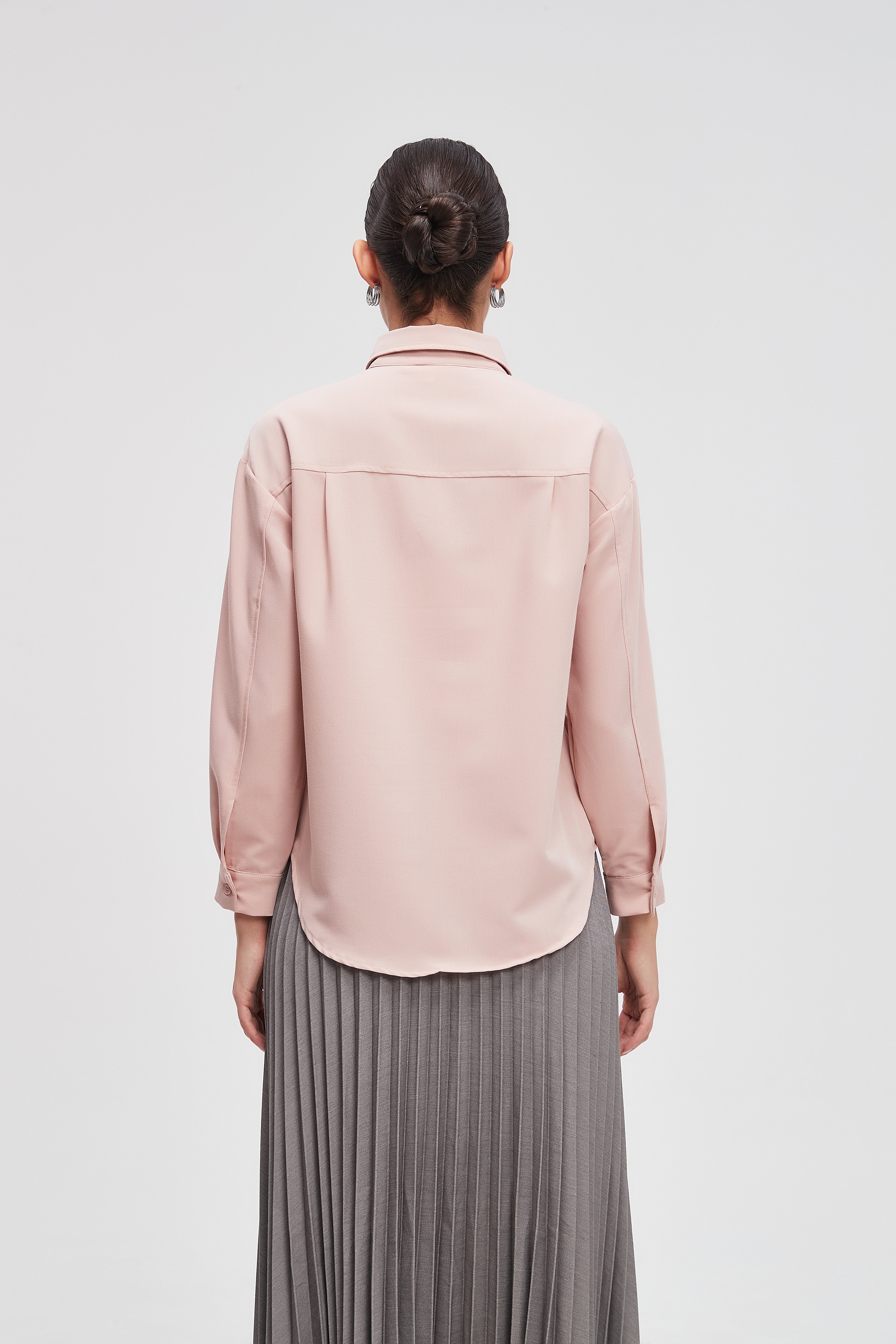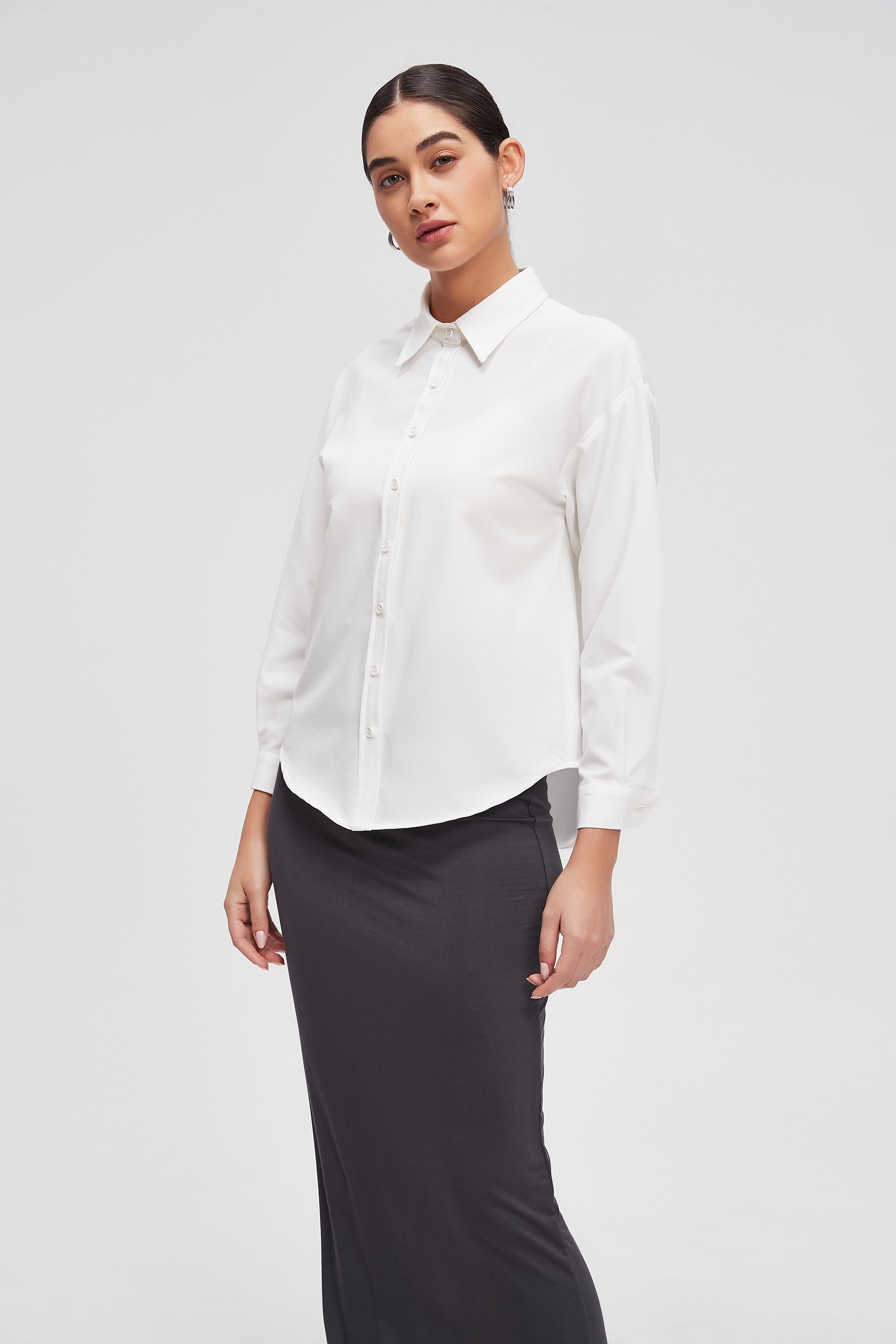 بلوزة سادة بأزرار أمامية وياقة قميص