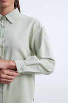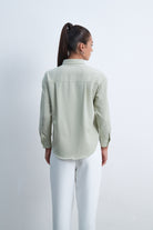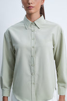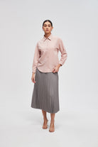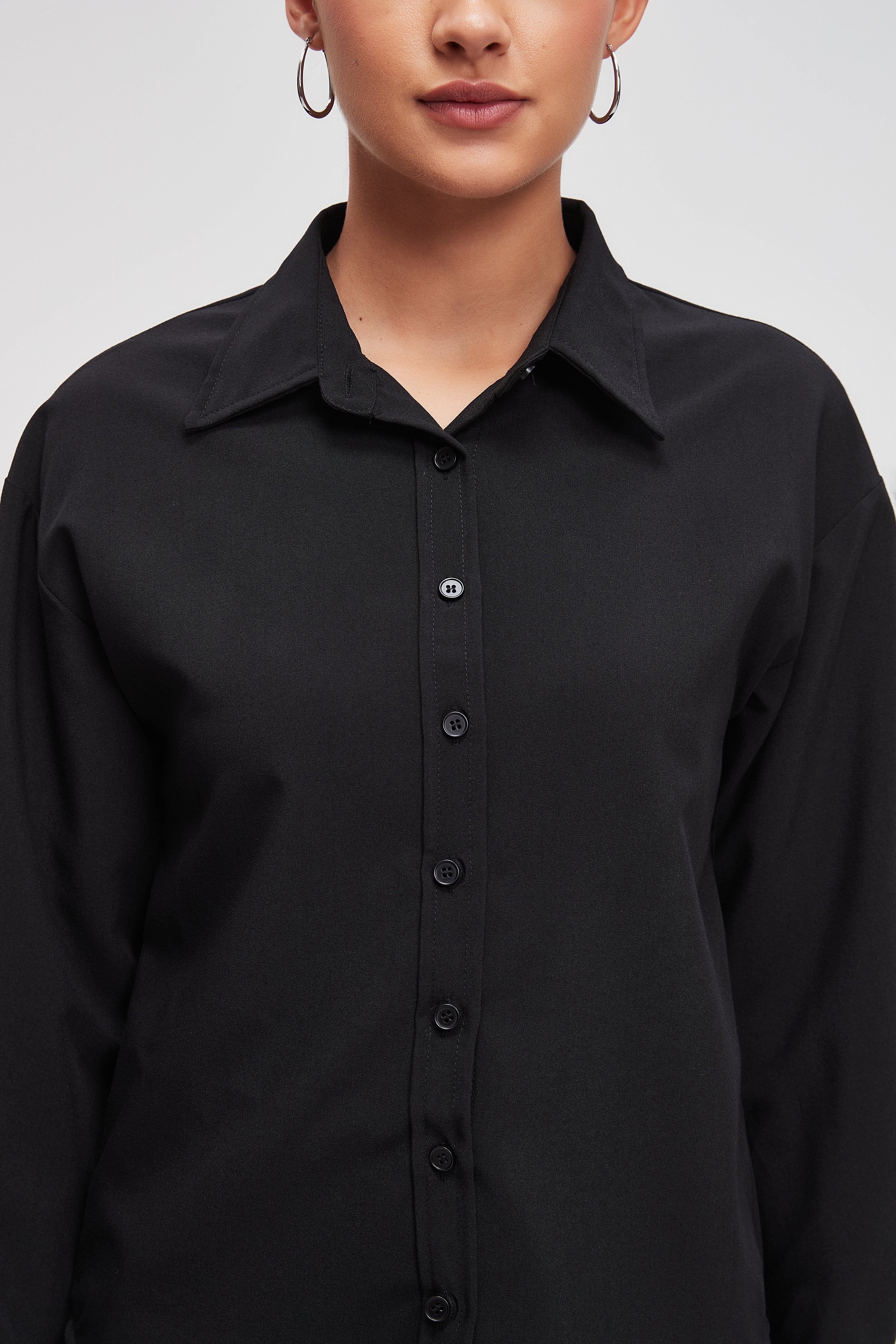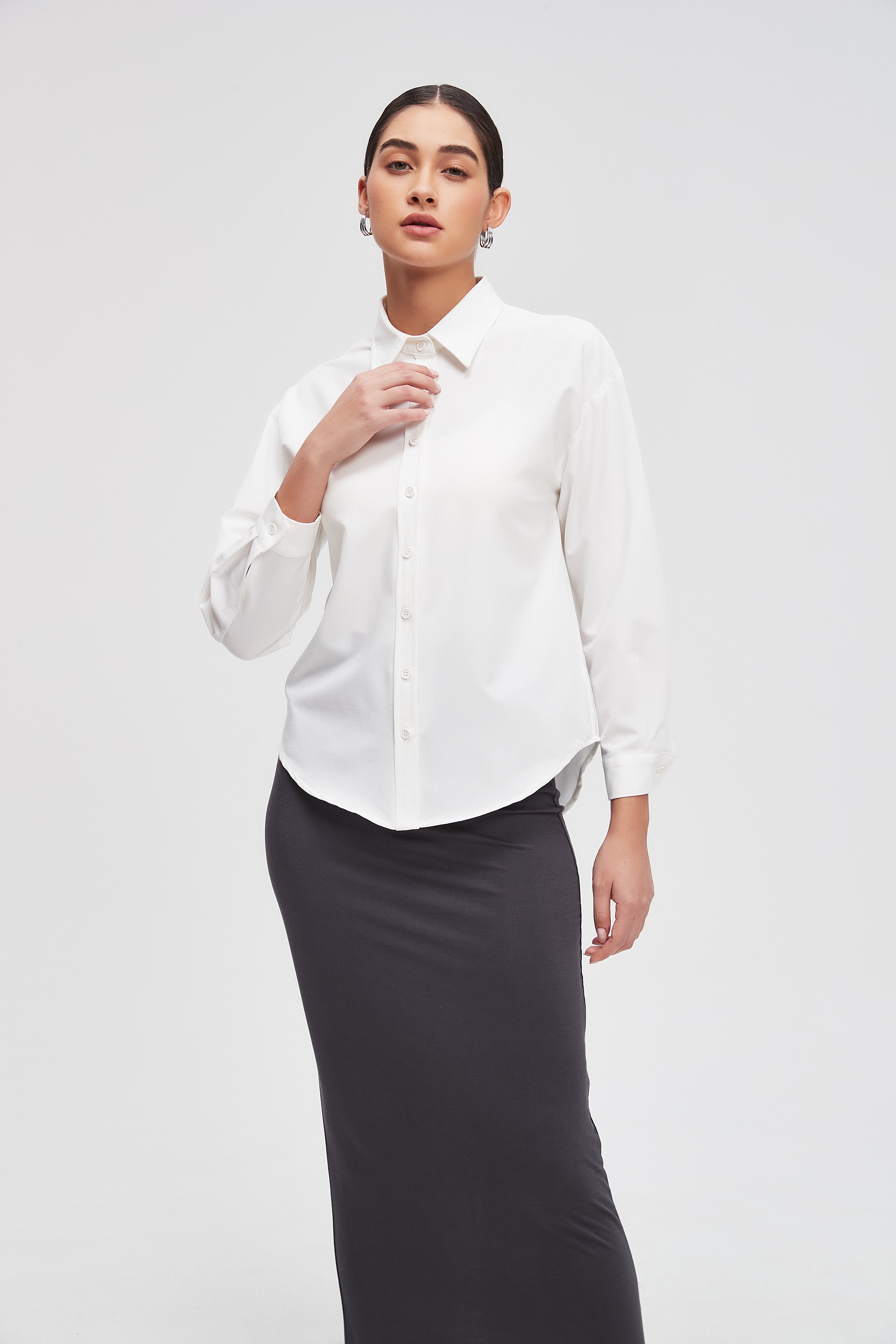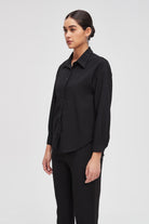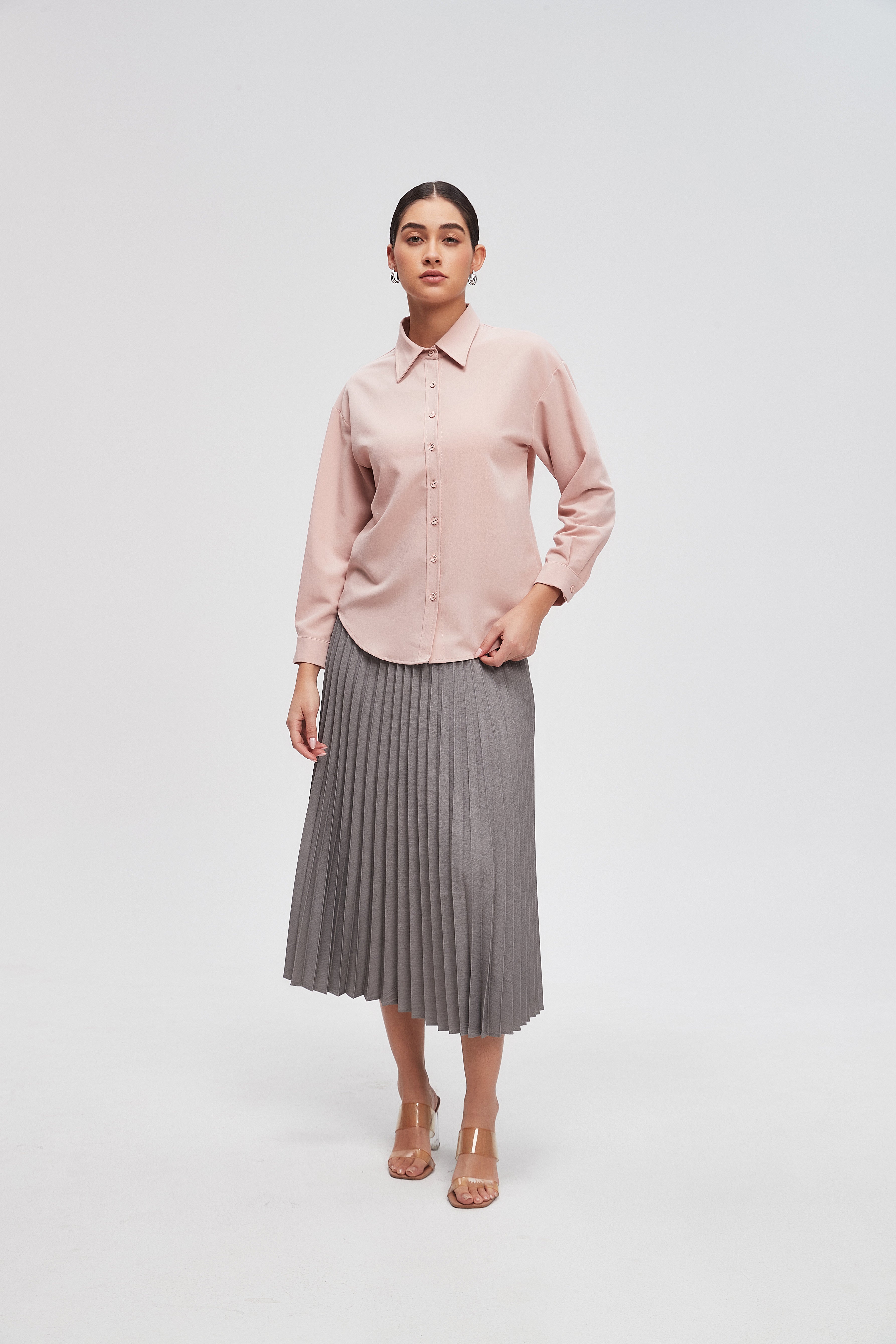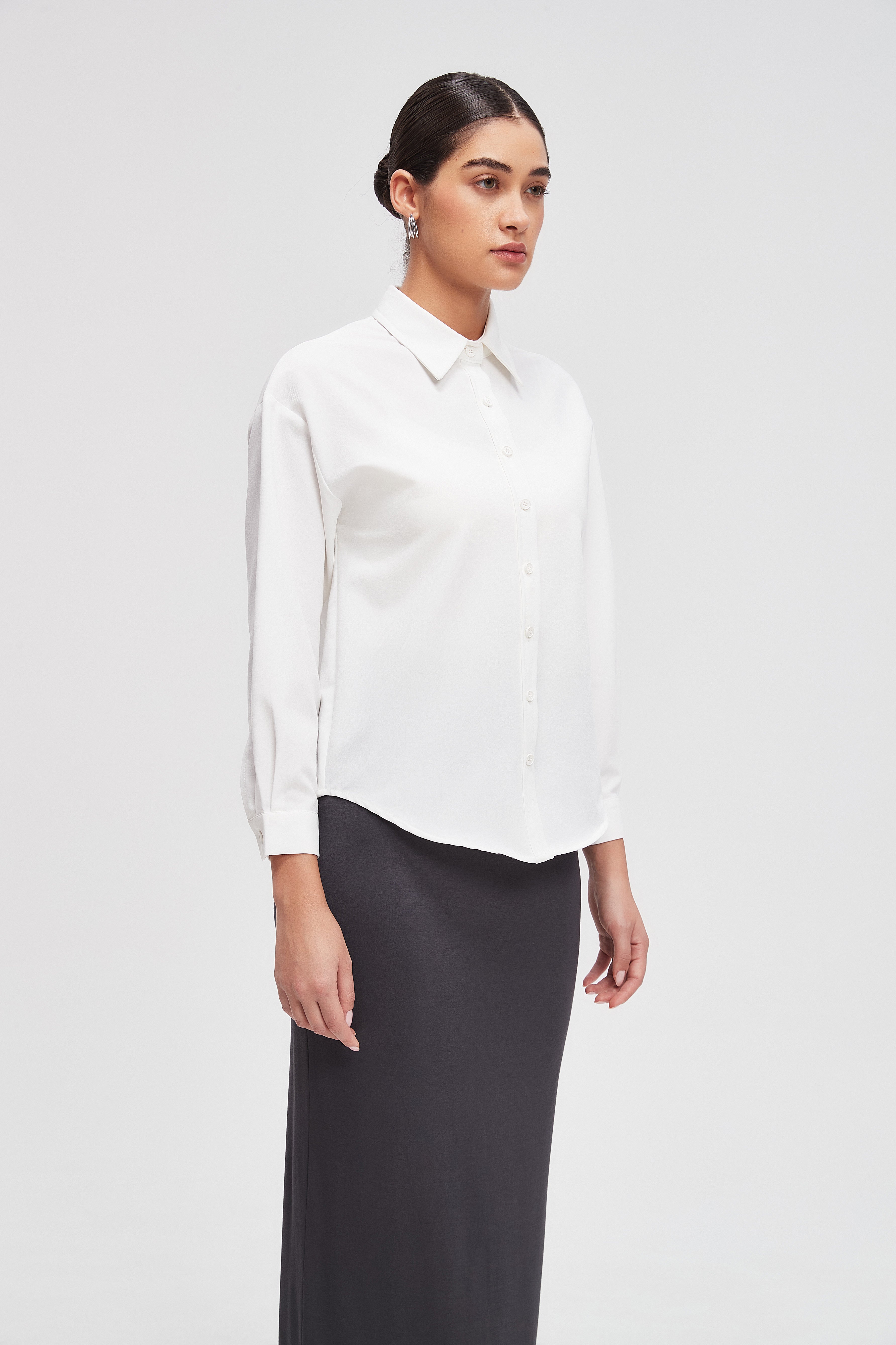 بلوزة سادة بأزرار أمامية وياقة قميص