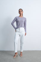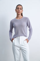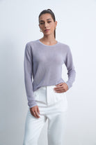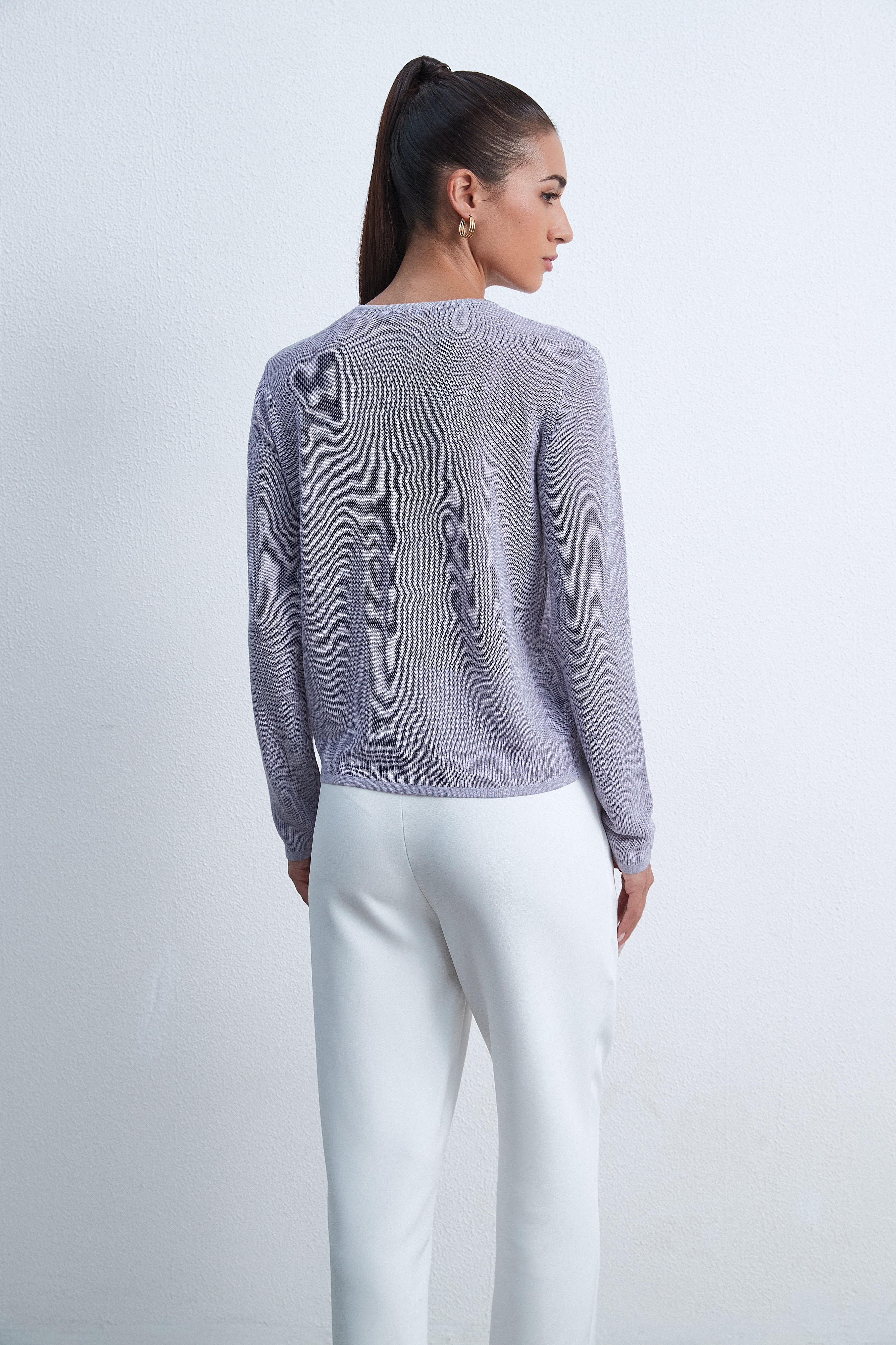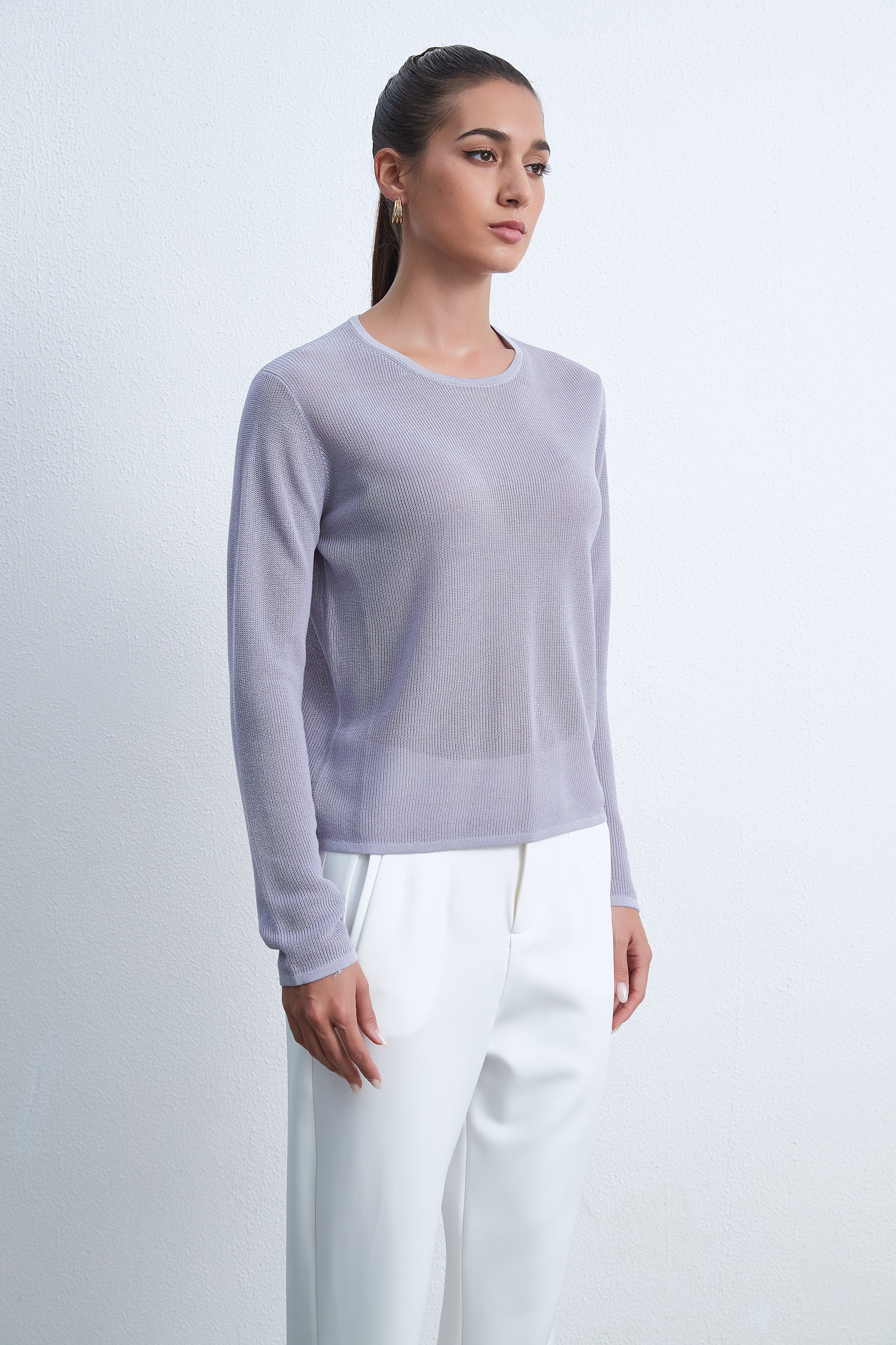 بلوزة بكم طويل سادة برقبة مستديرة