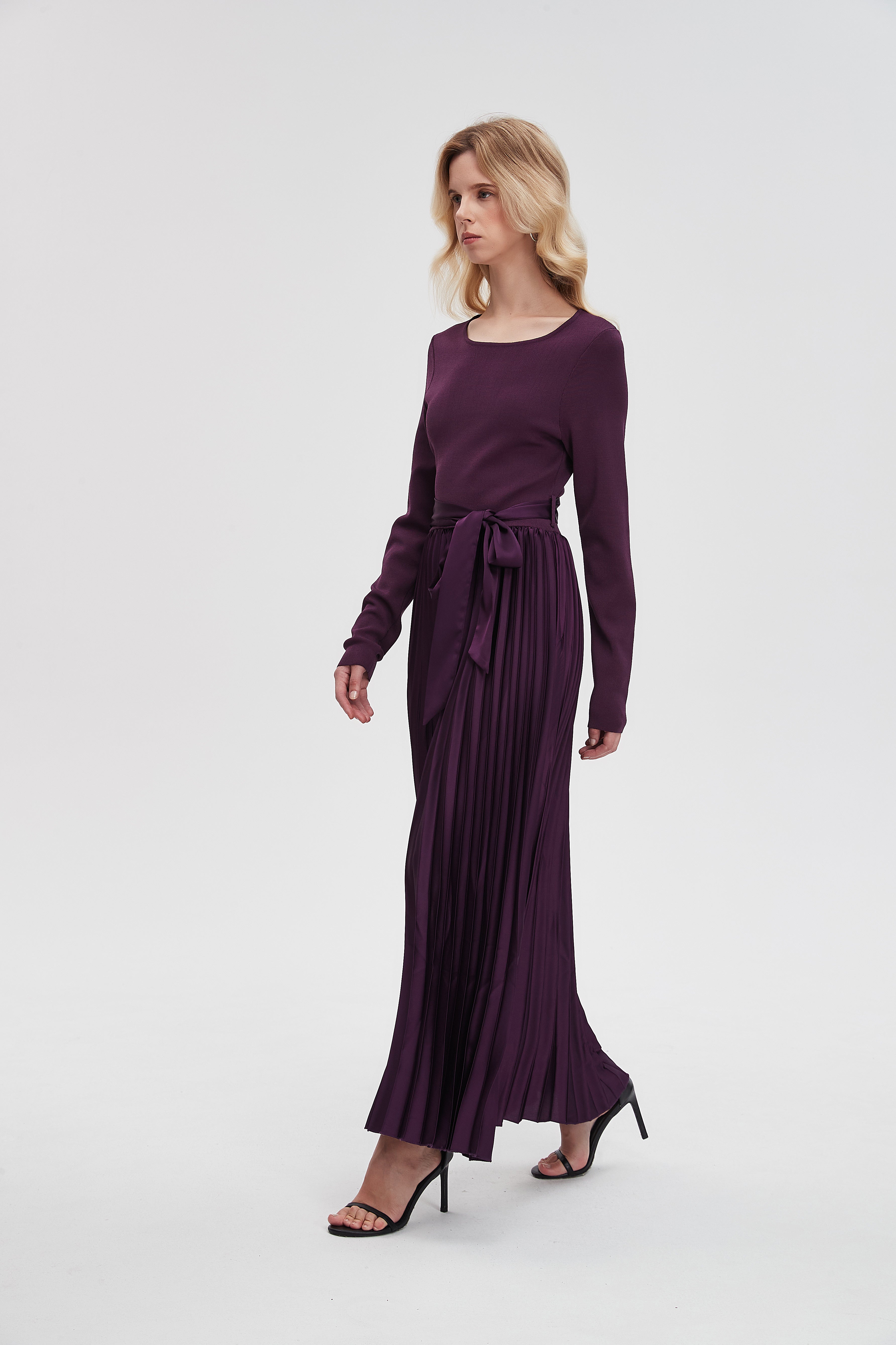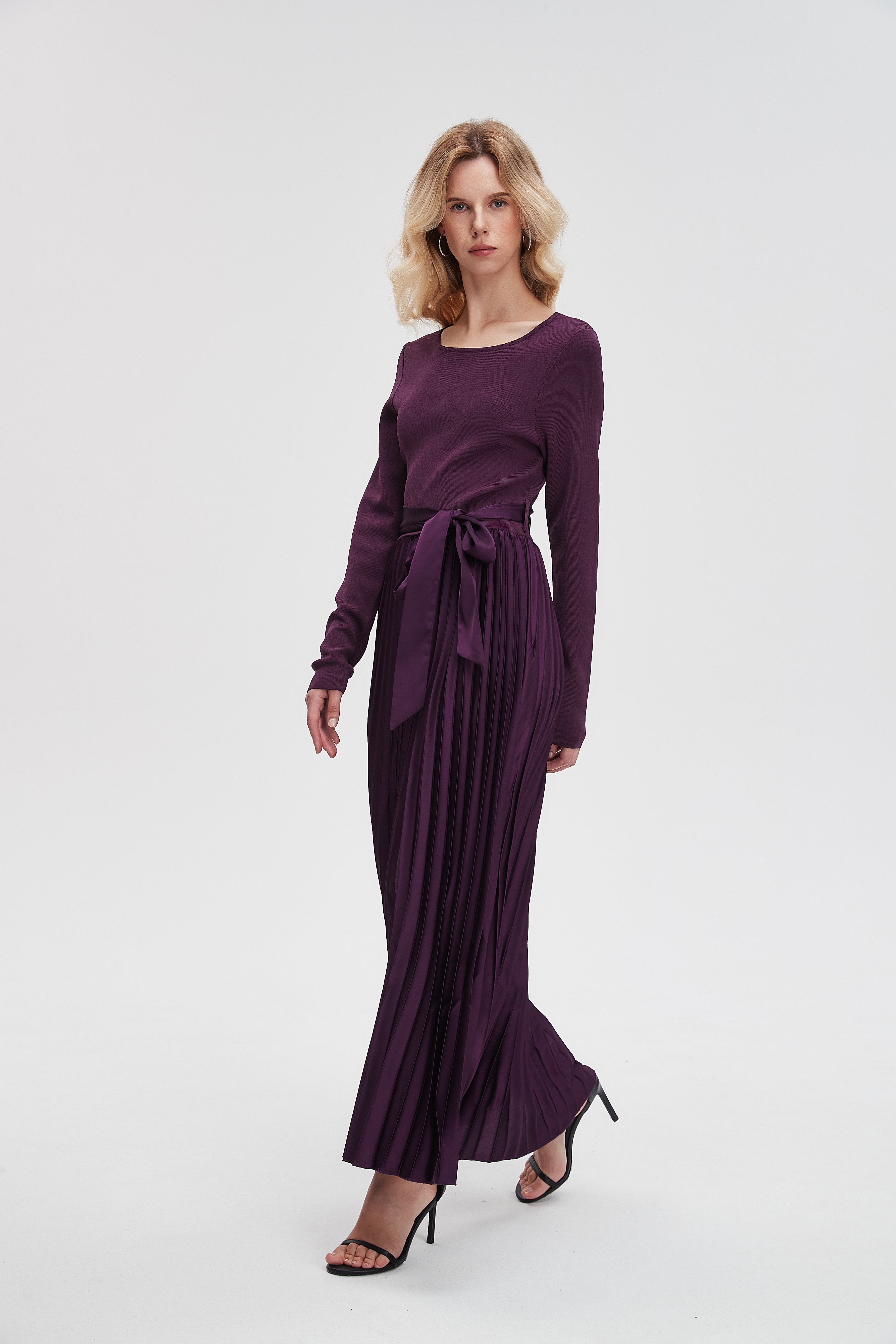 فستام ماكسي بأكمام طويله بحزام من الخصر والجزء السفلي باليلسيه