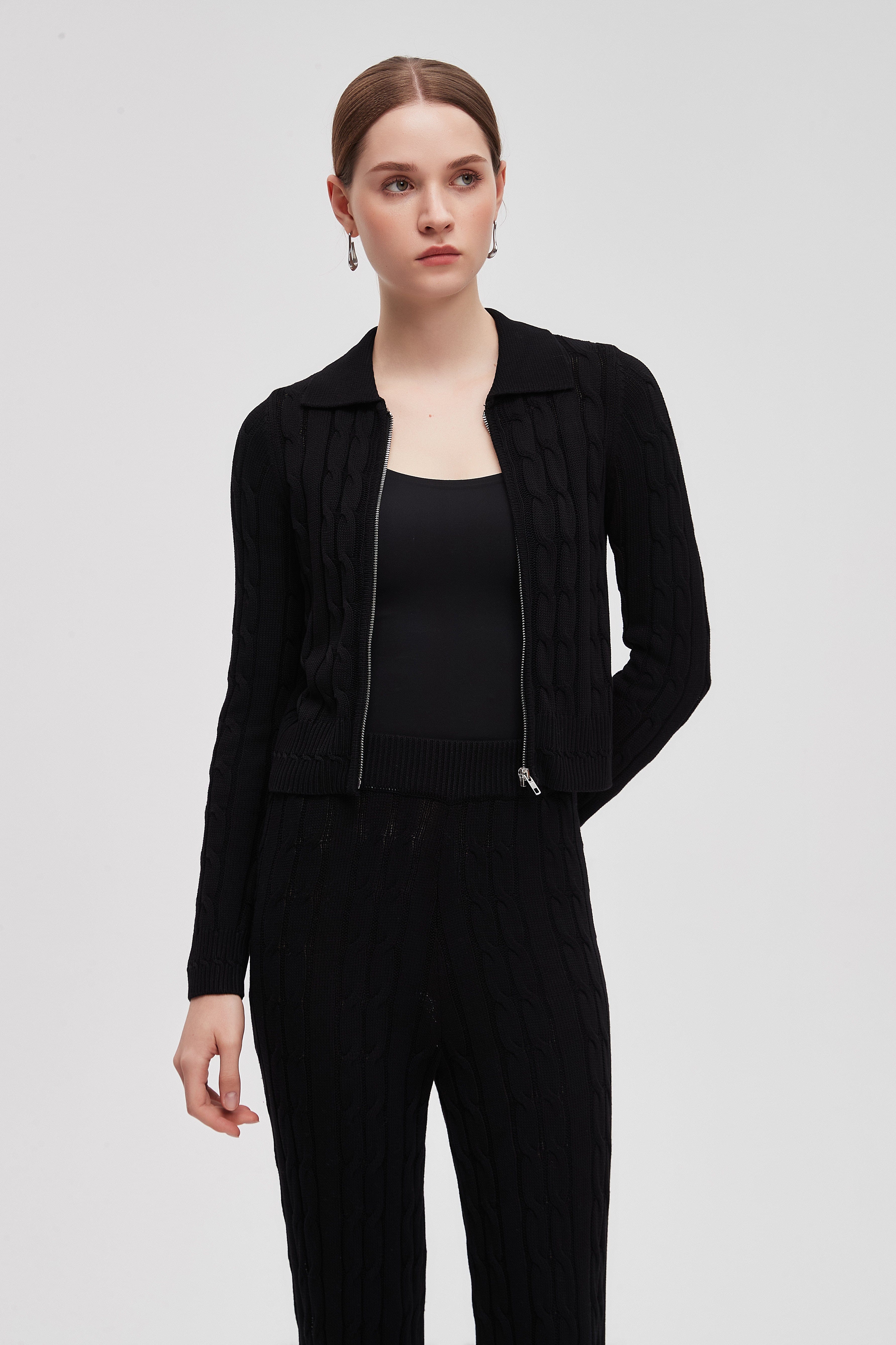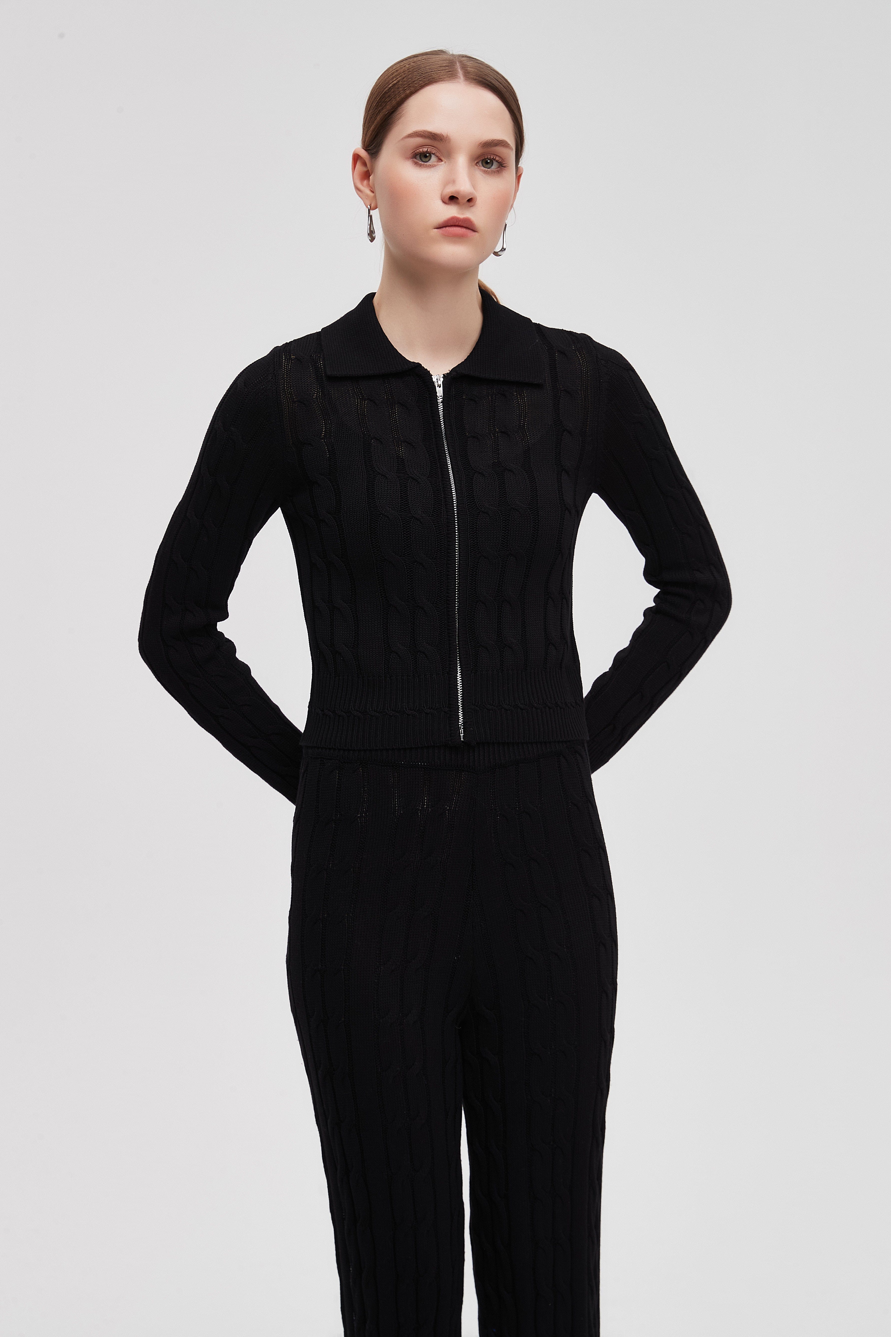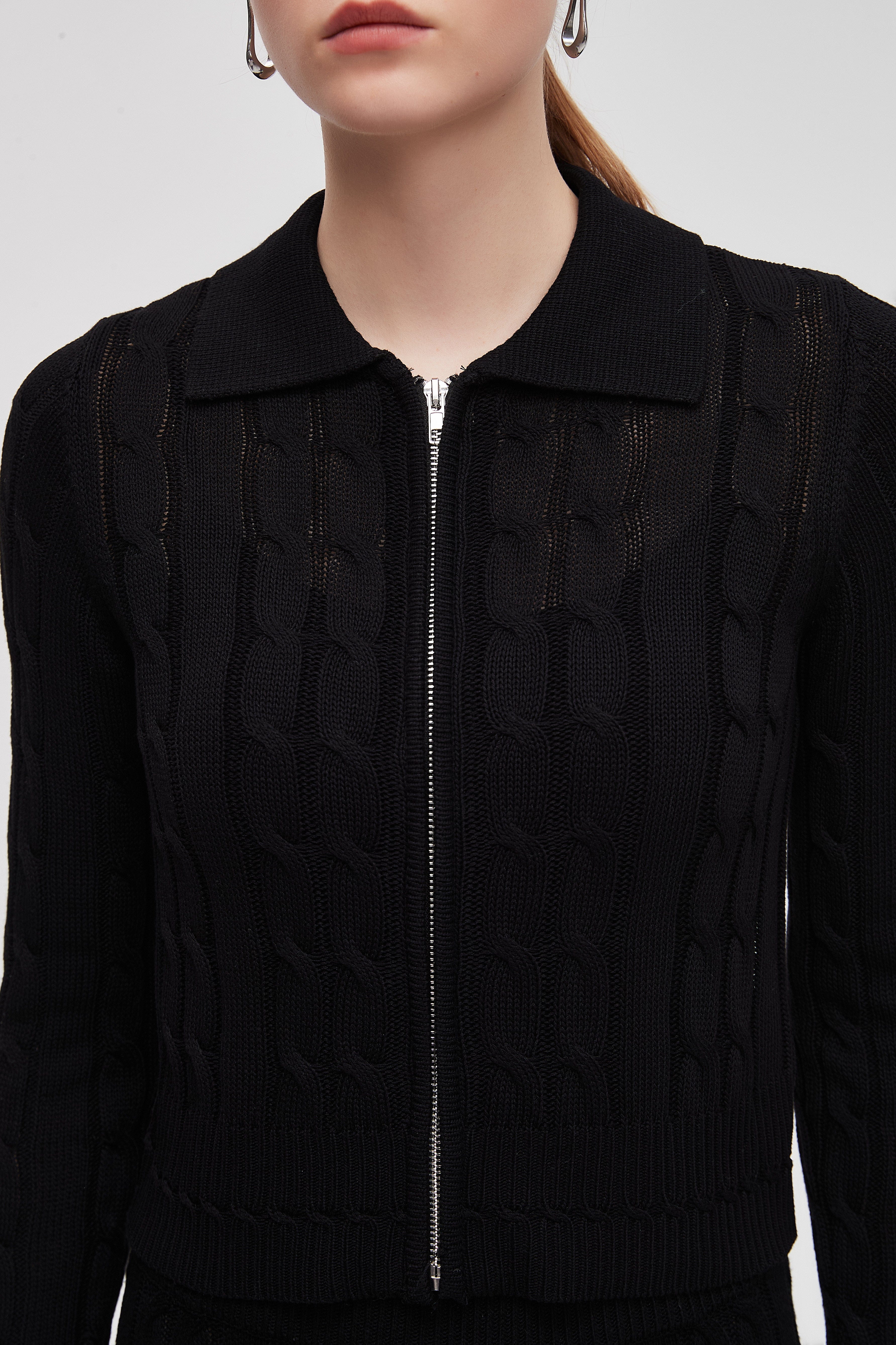 بلوزة مضلعة بكم طويل مع سحاب