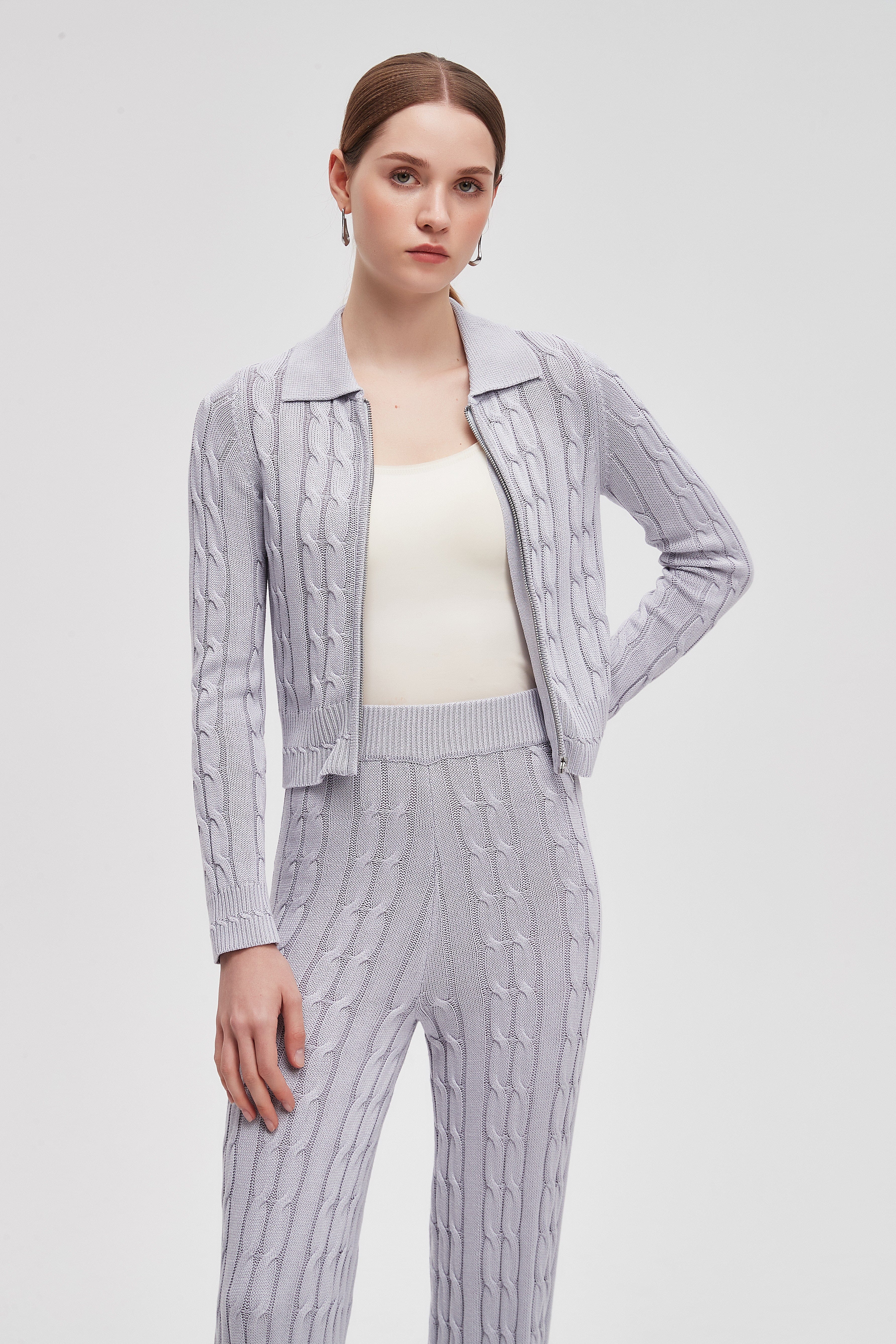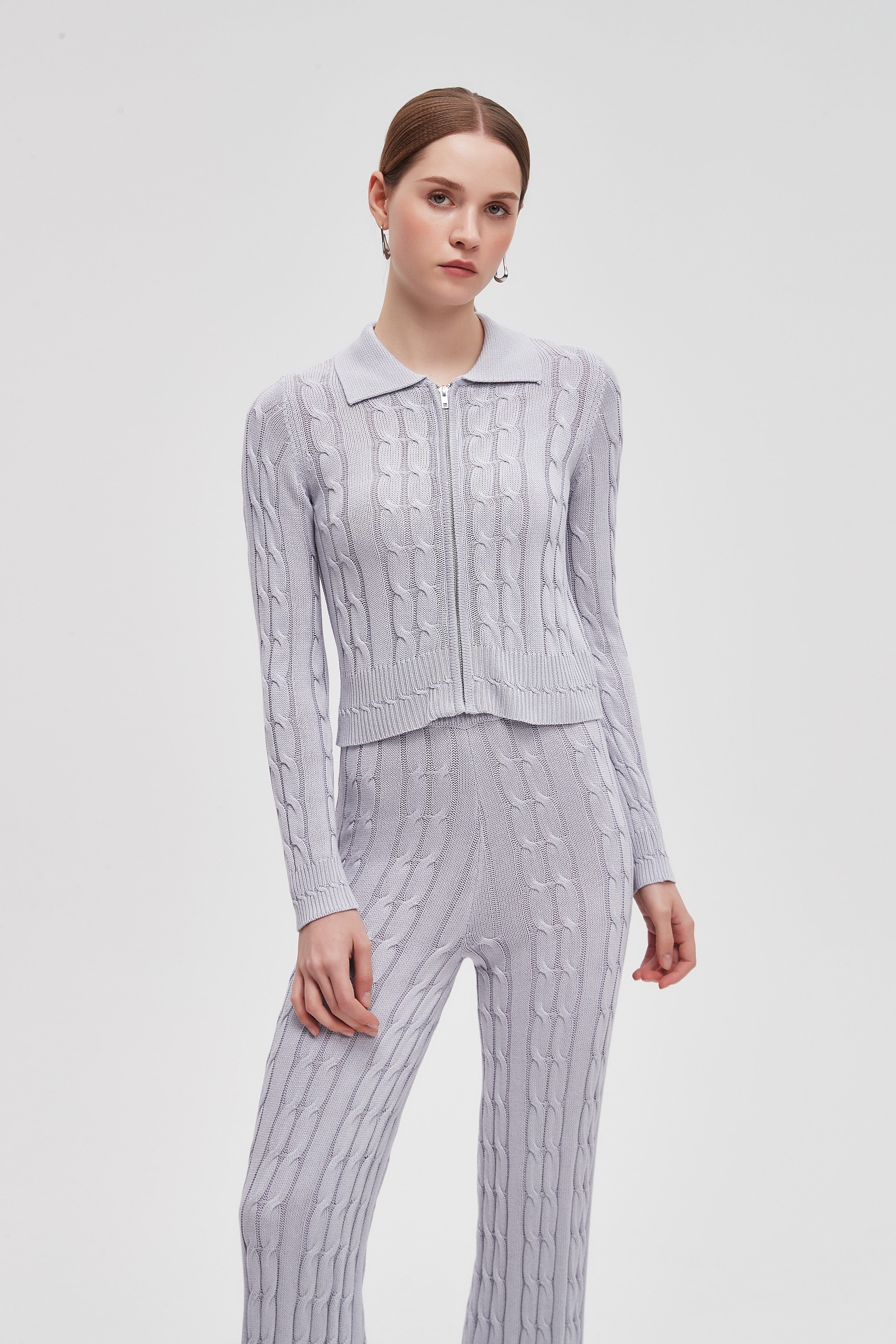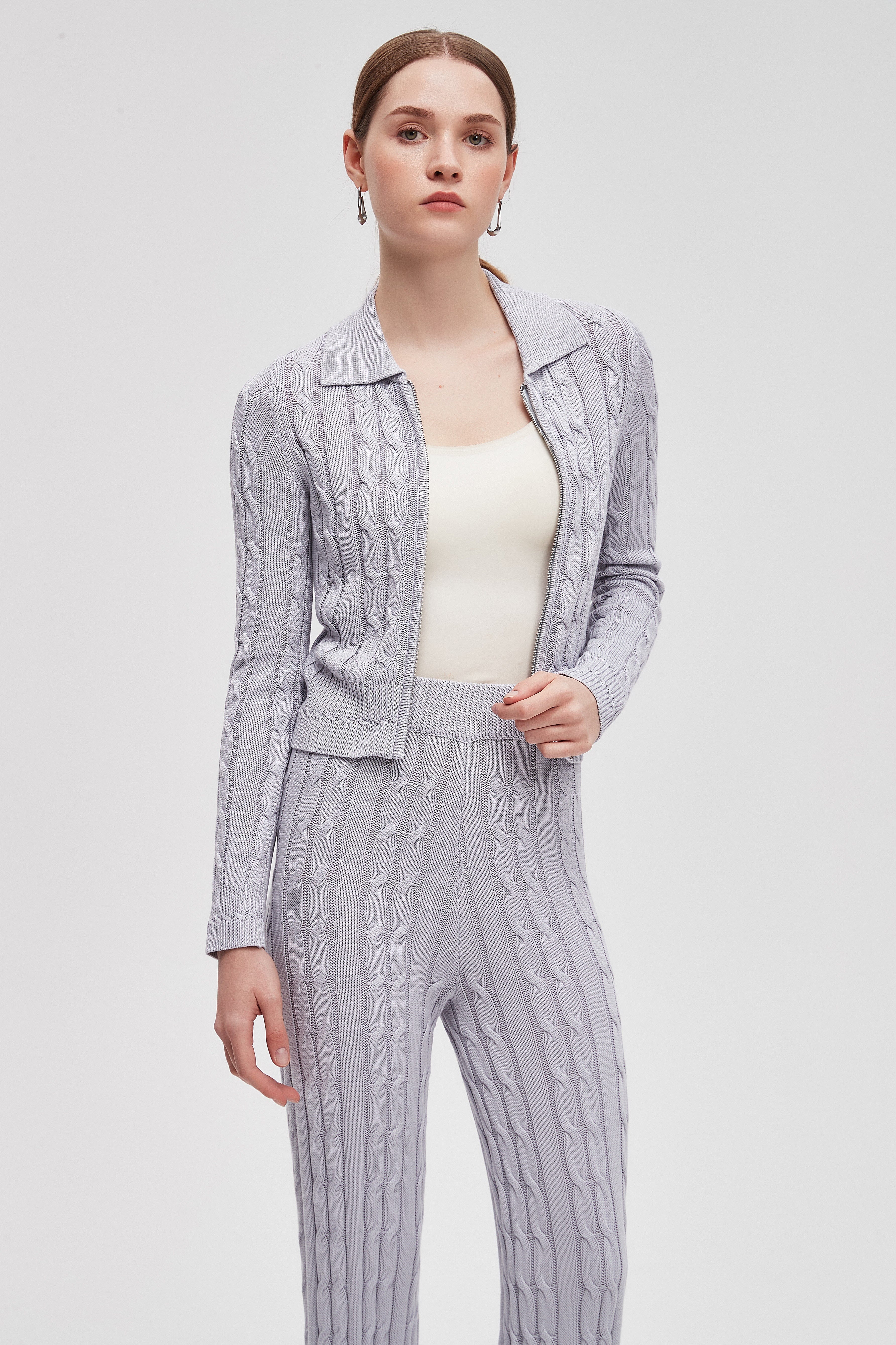 بلوزة مضلعة بكم طويل مع سحاب