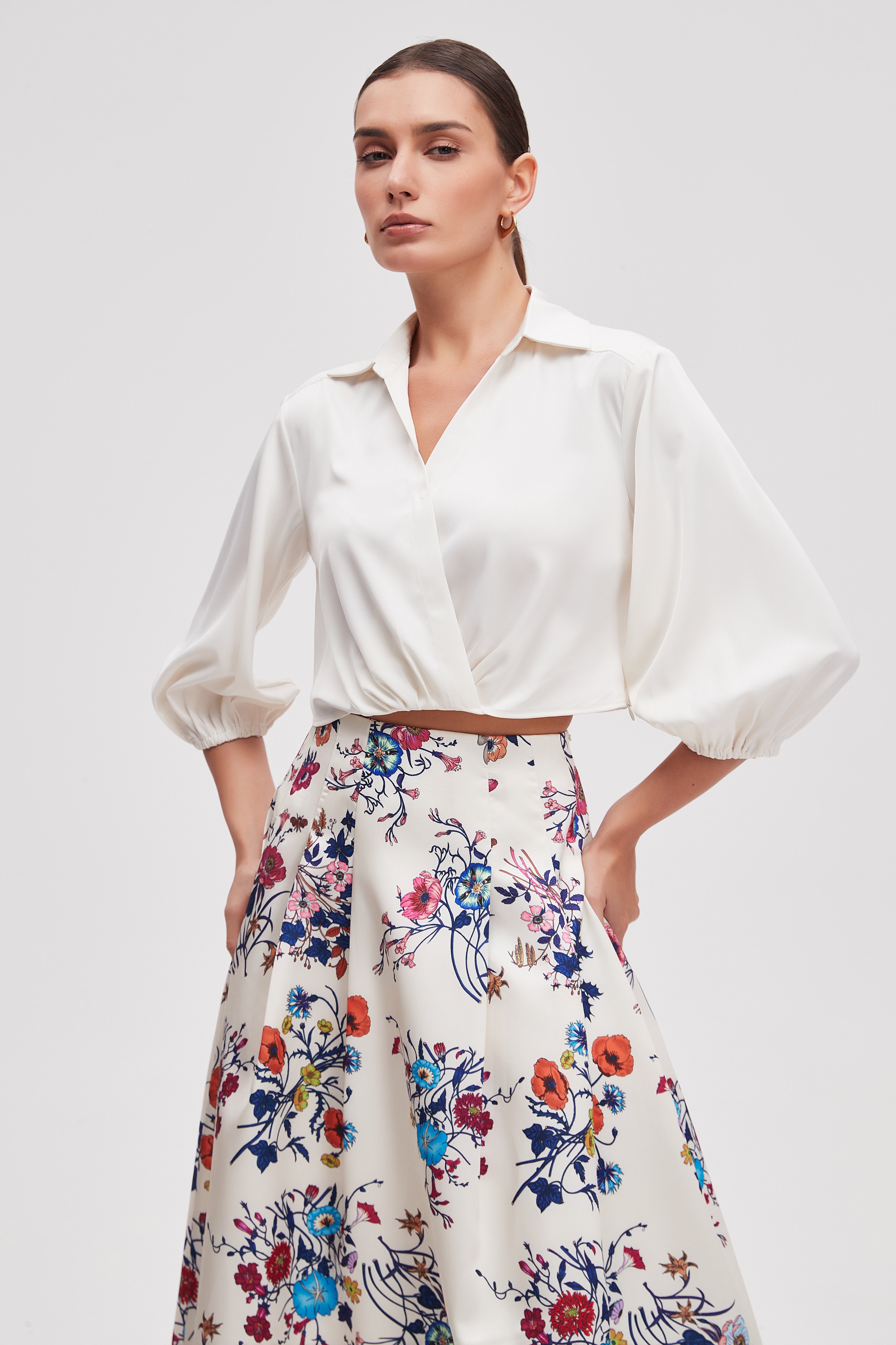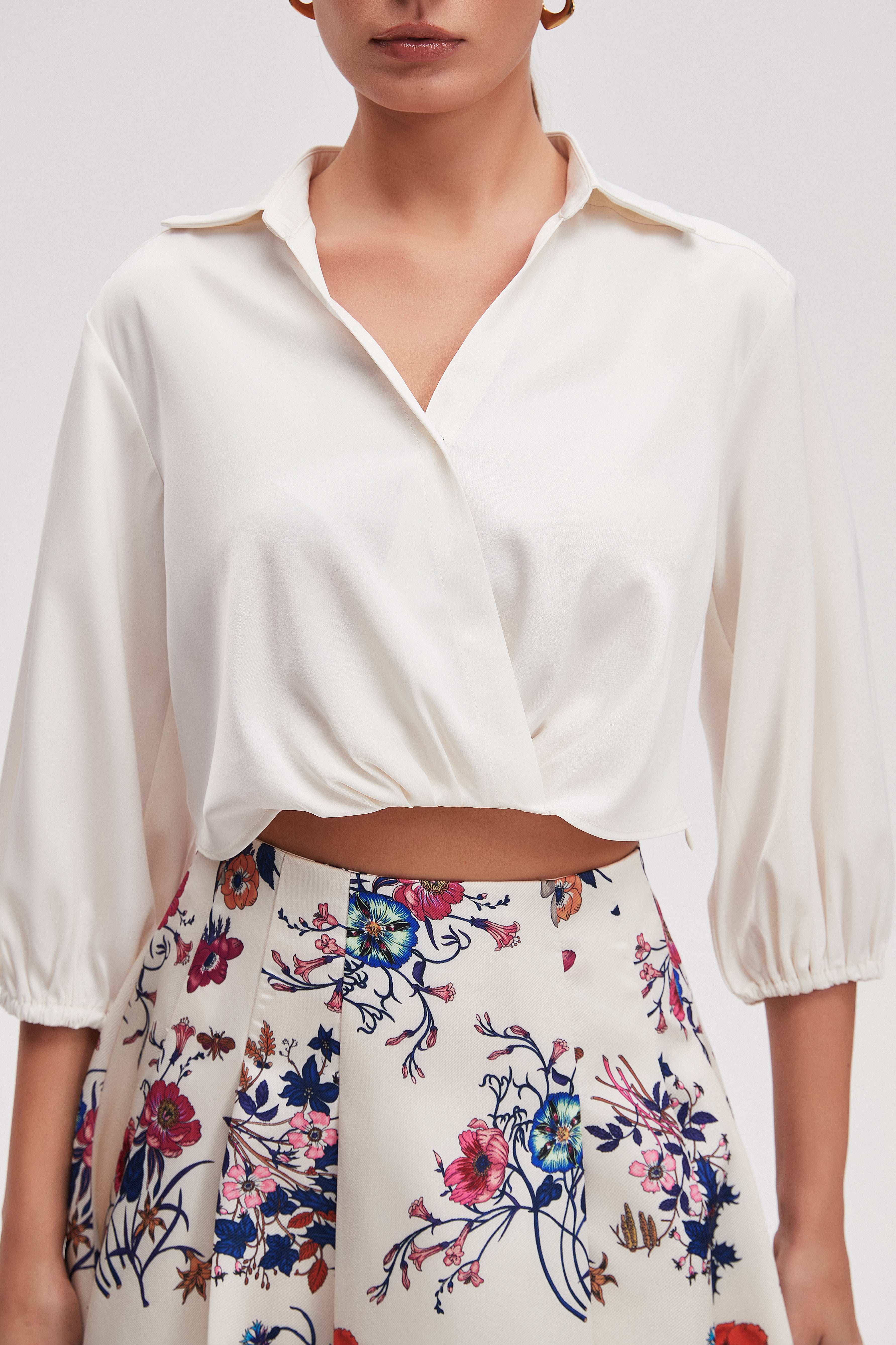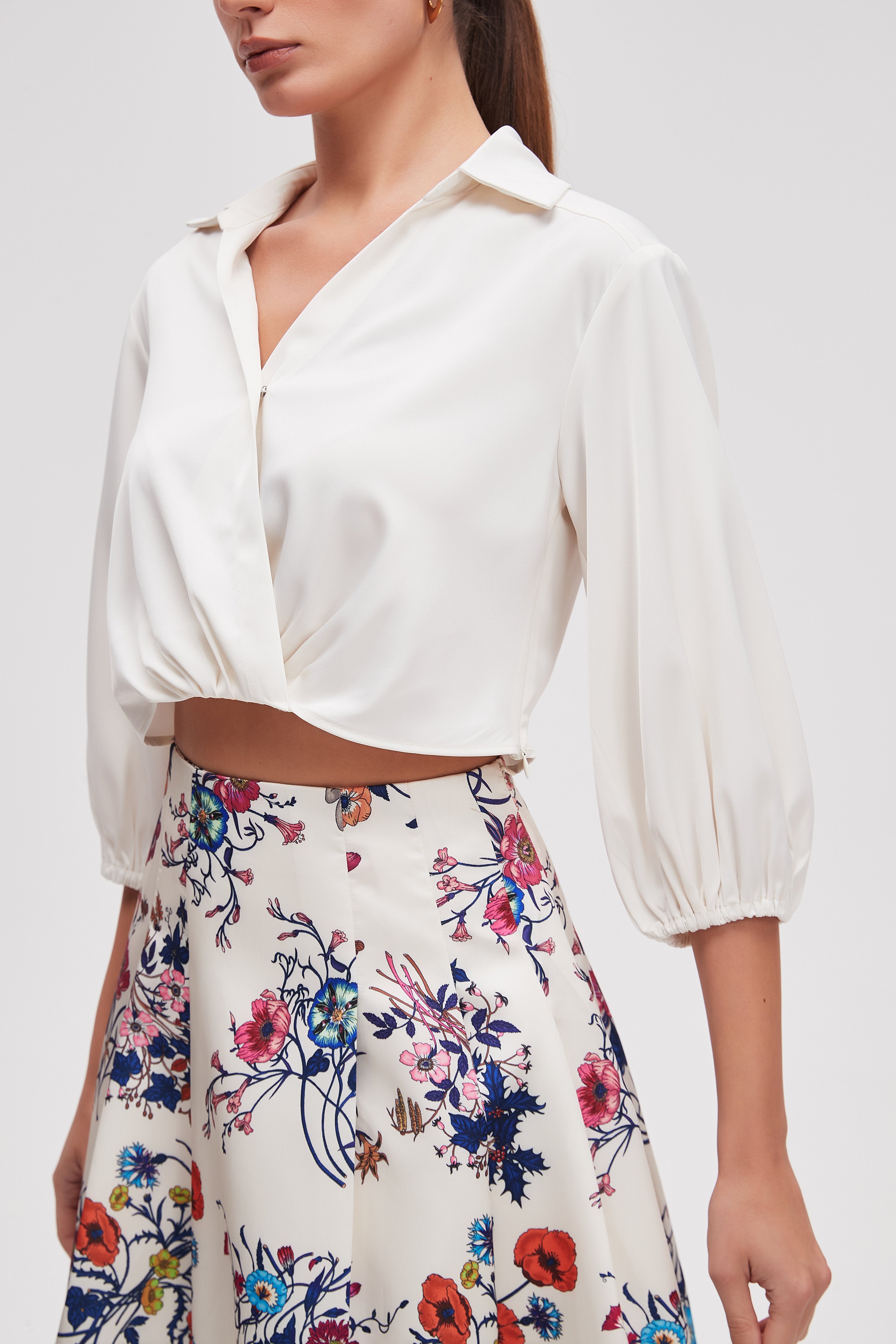 بلوزة قصيرة سادة 3/4 كم