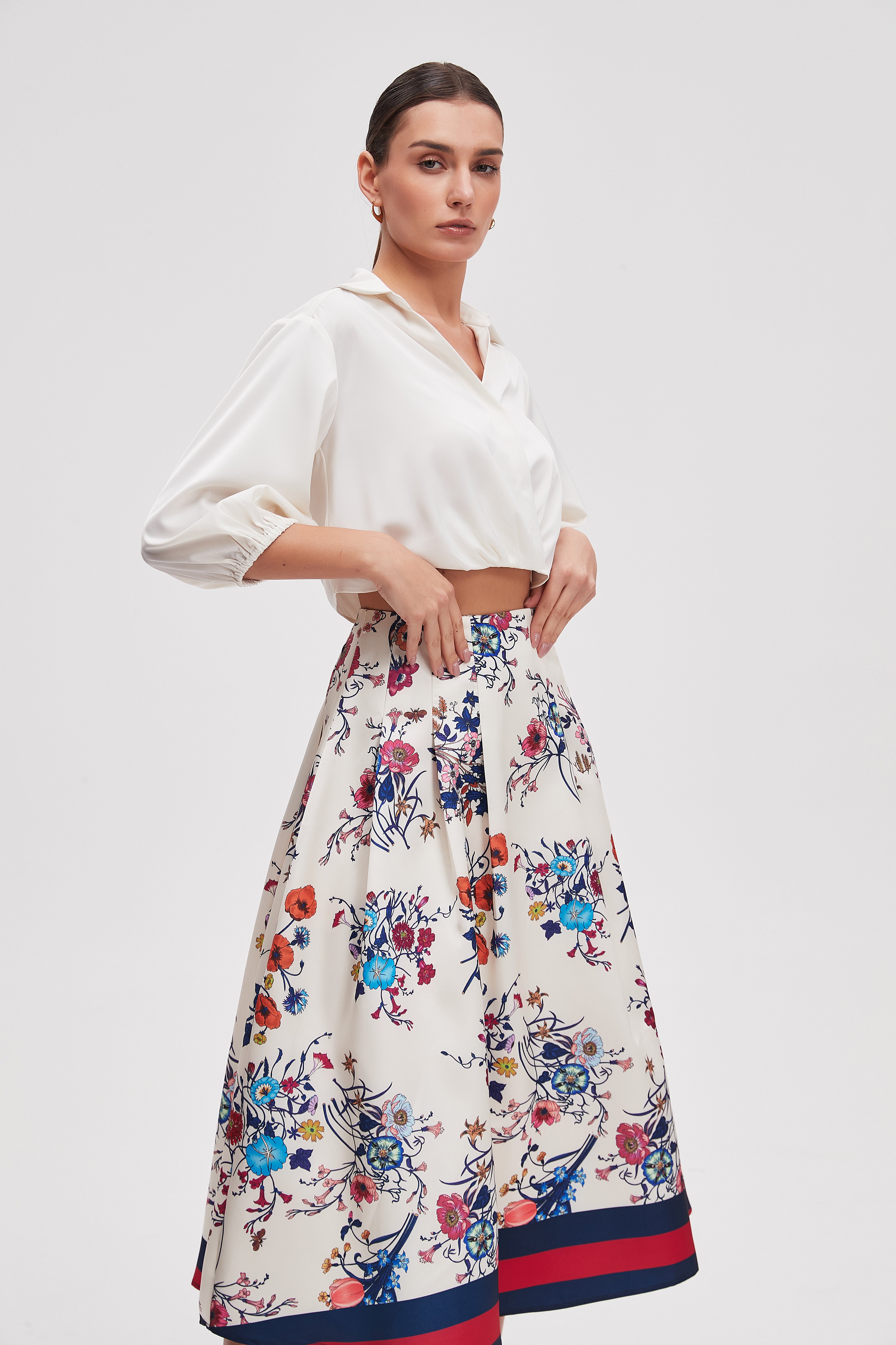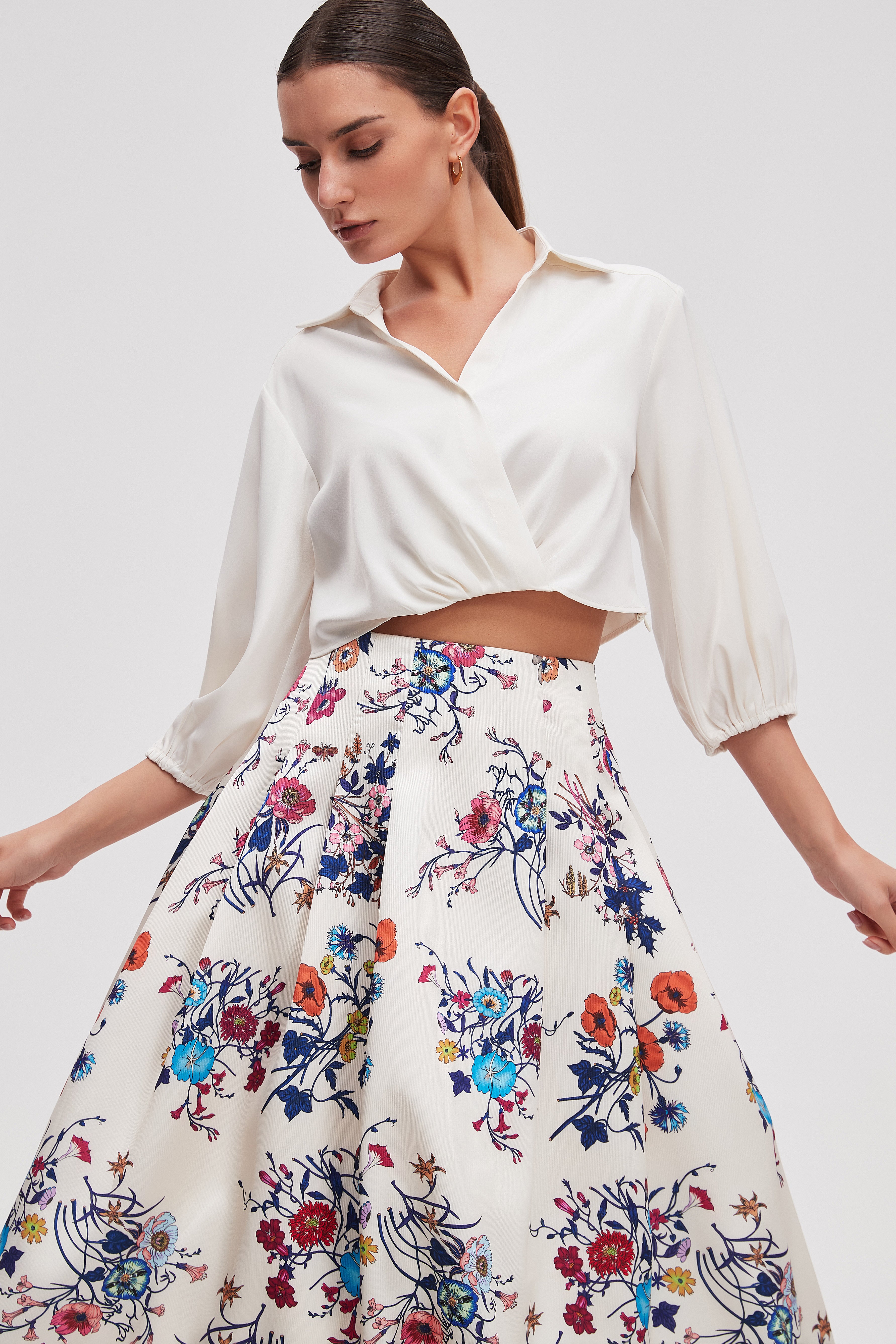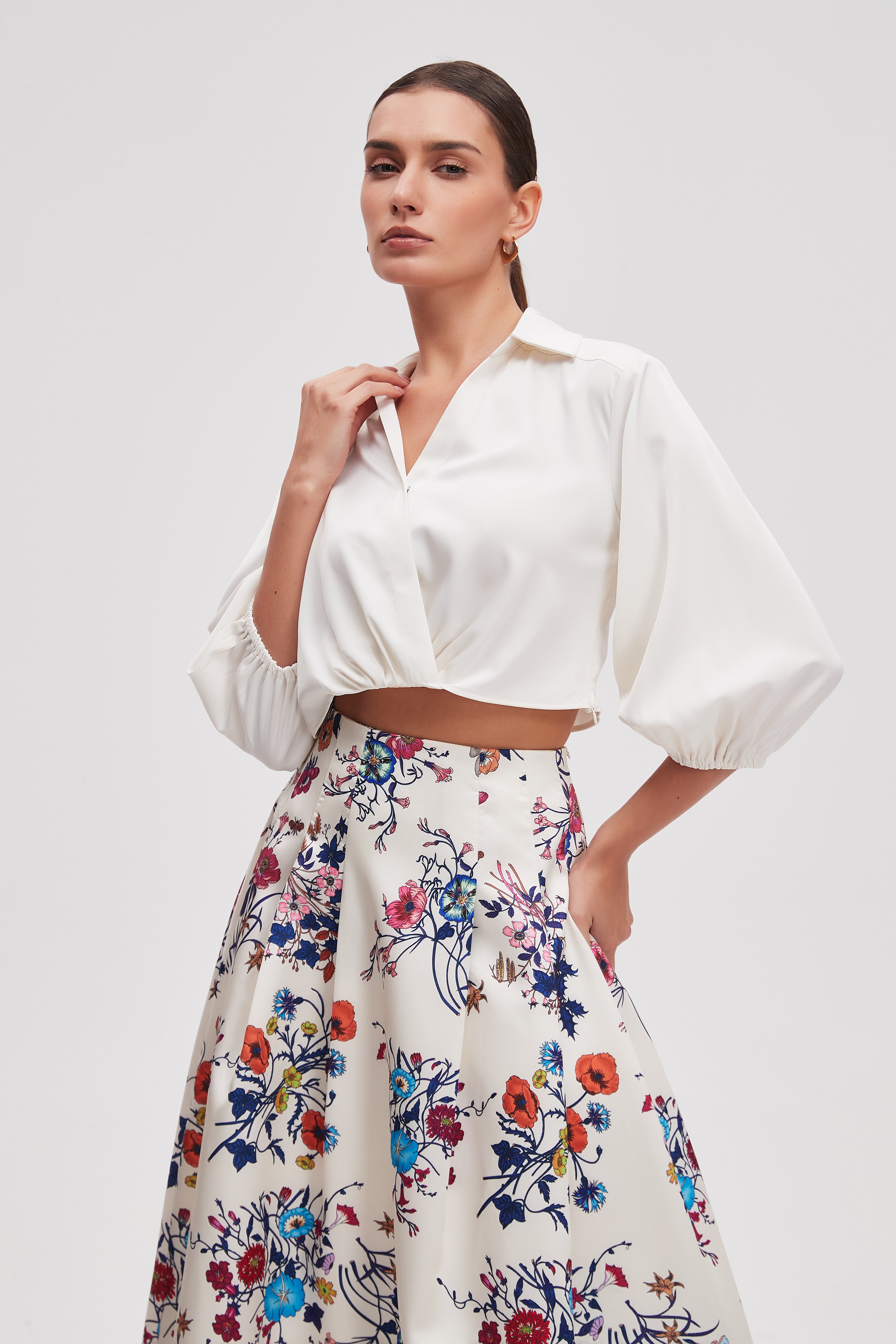 بلوزة قصيرة سادة 3/4 كم