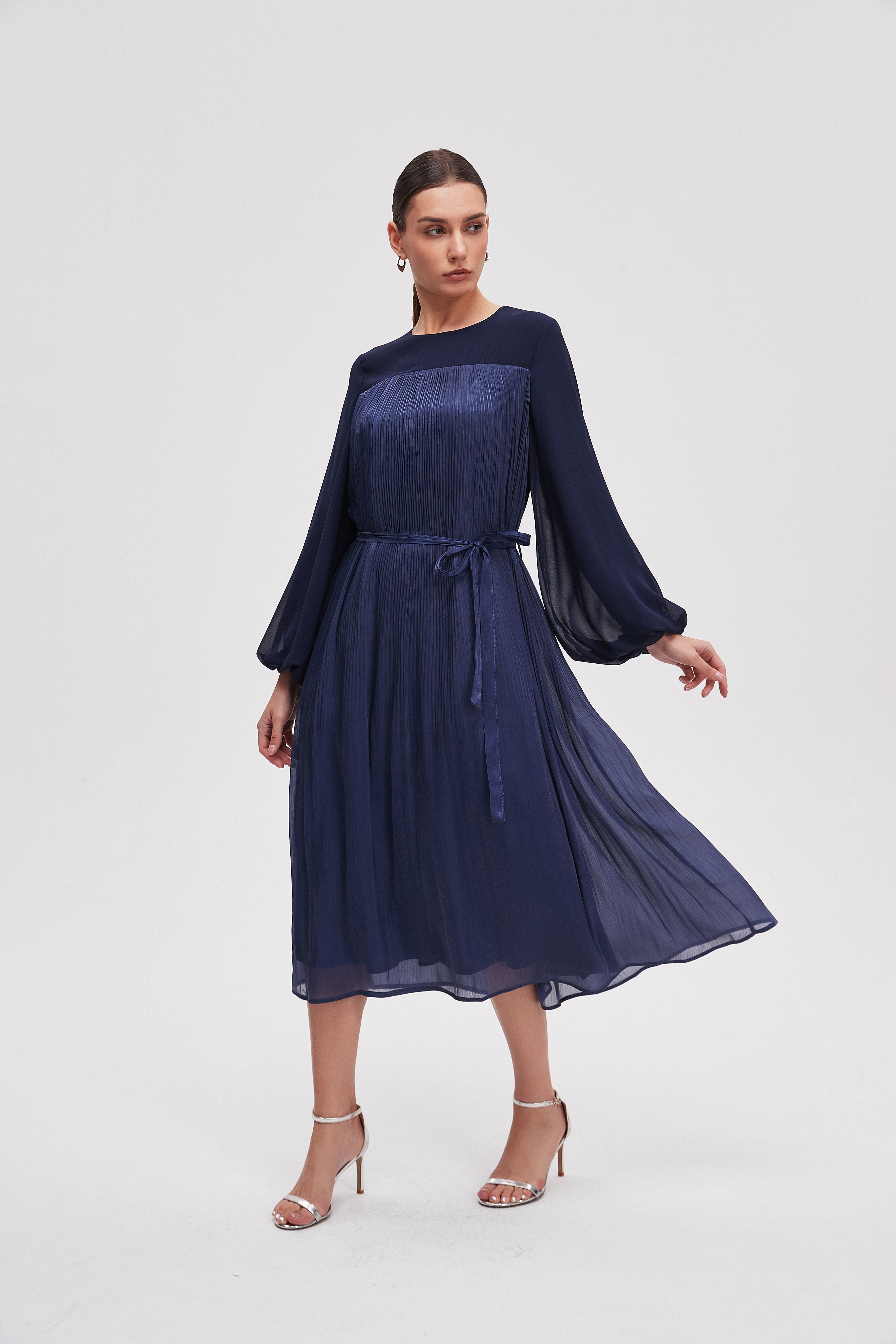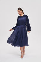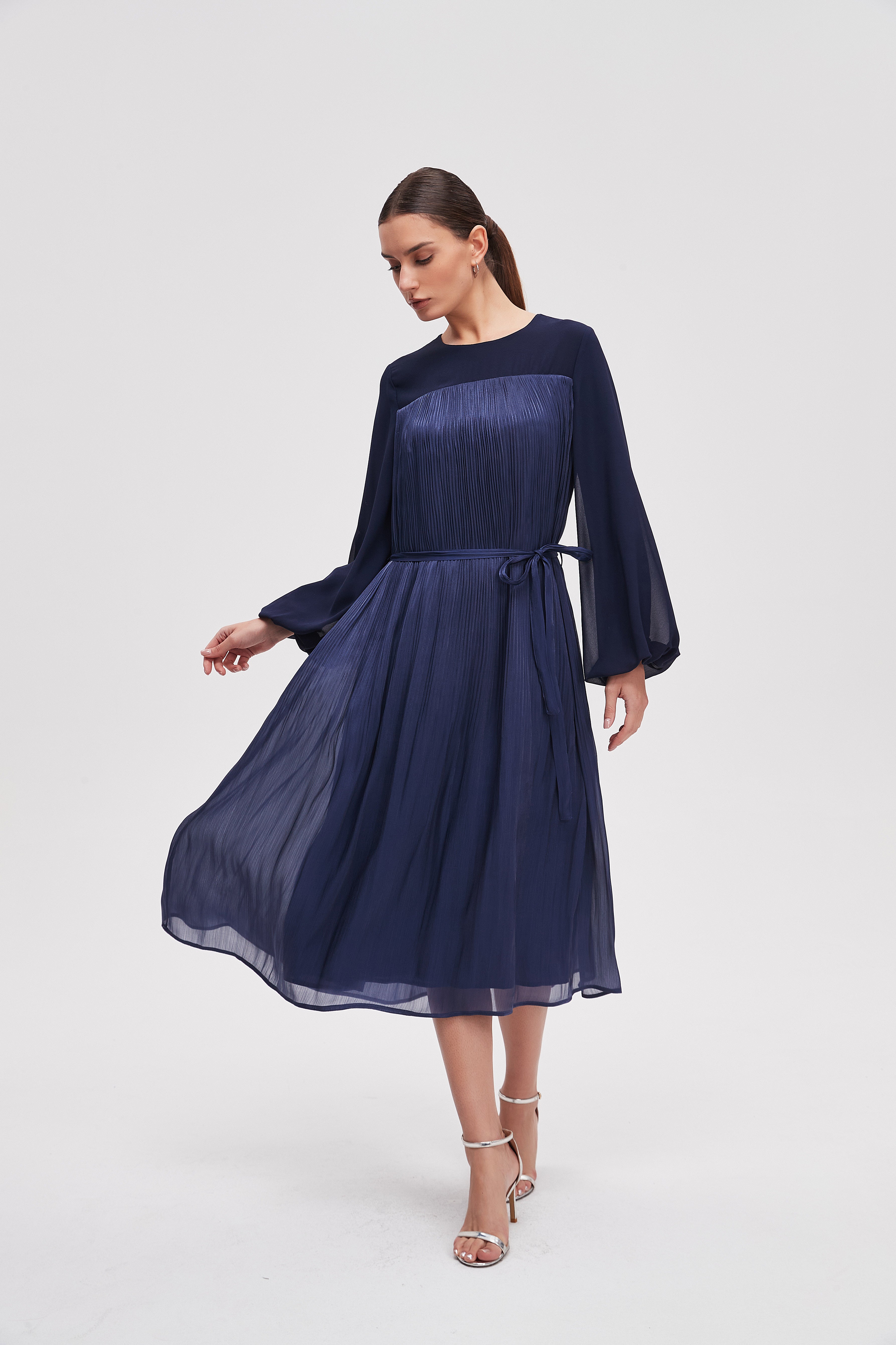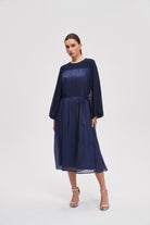 فستان ميدي سادة كم طويل